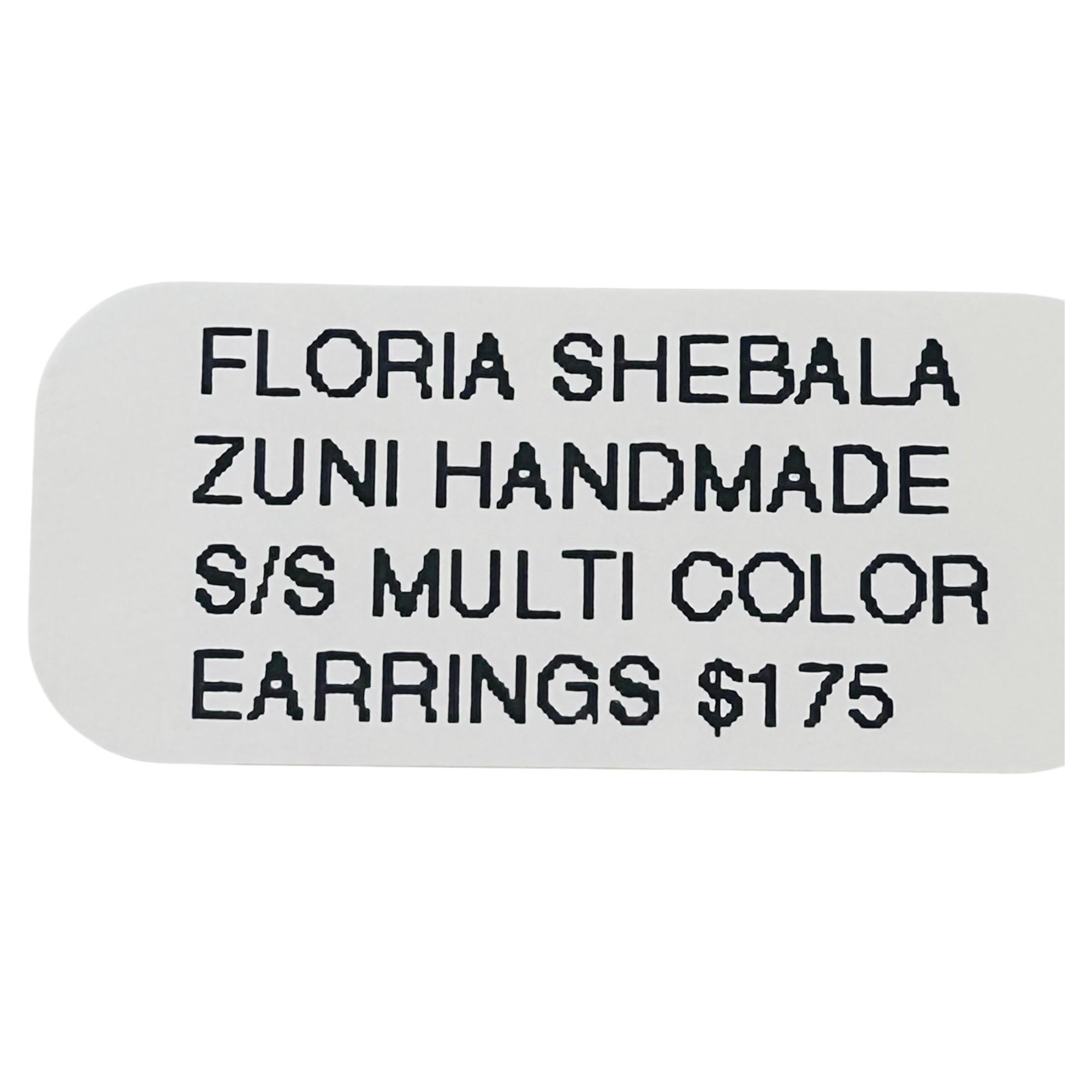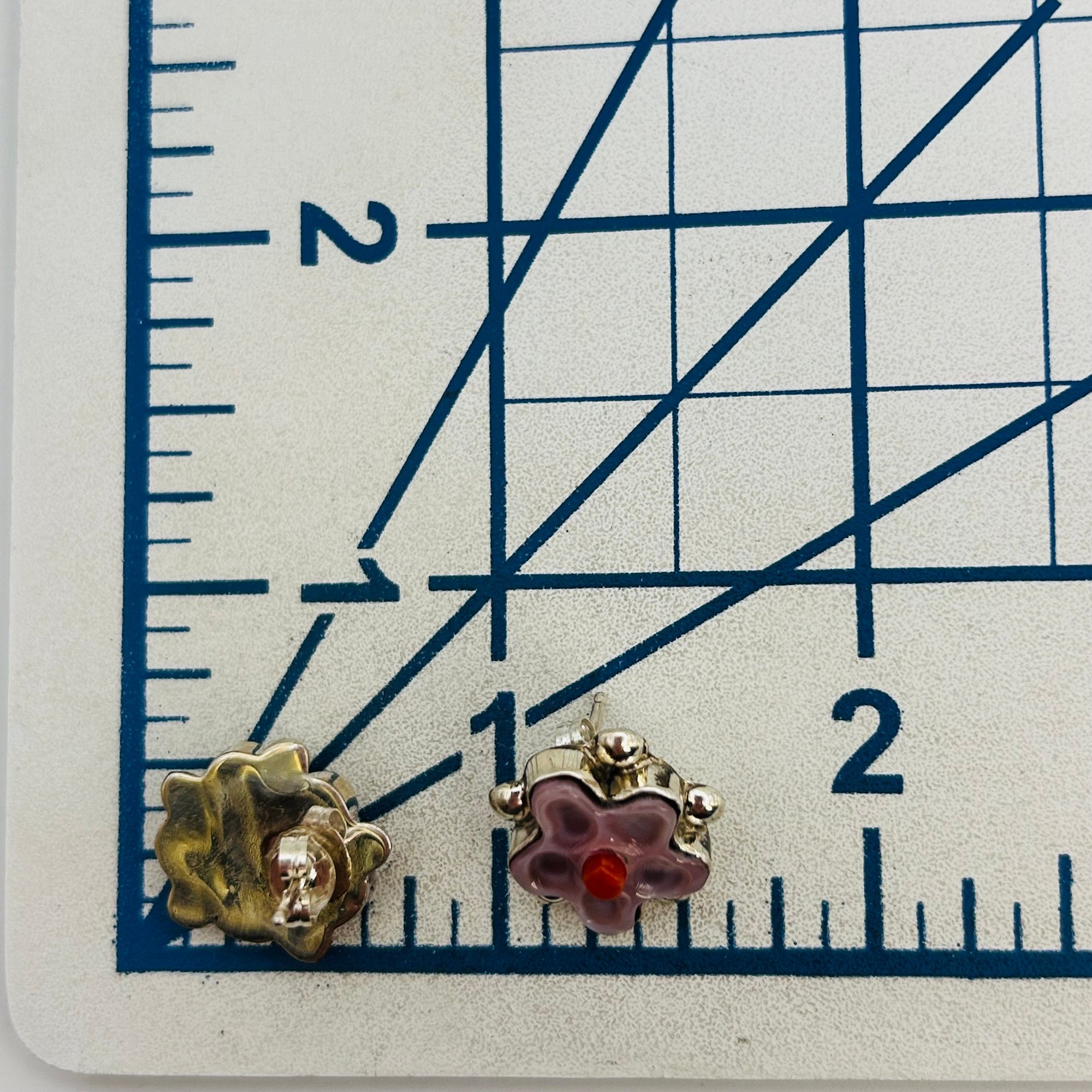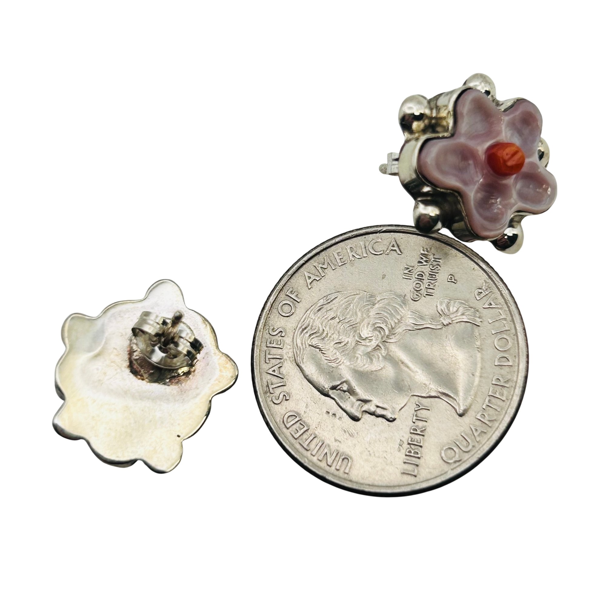 Floria Shebala Zuni Sterling Multi Color mother of pearl and coral flower stud back Earrings 3.73 grams