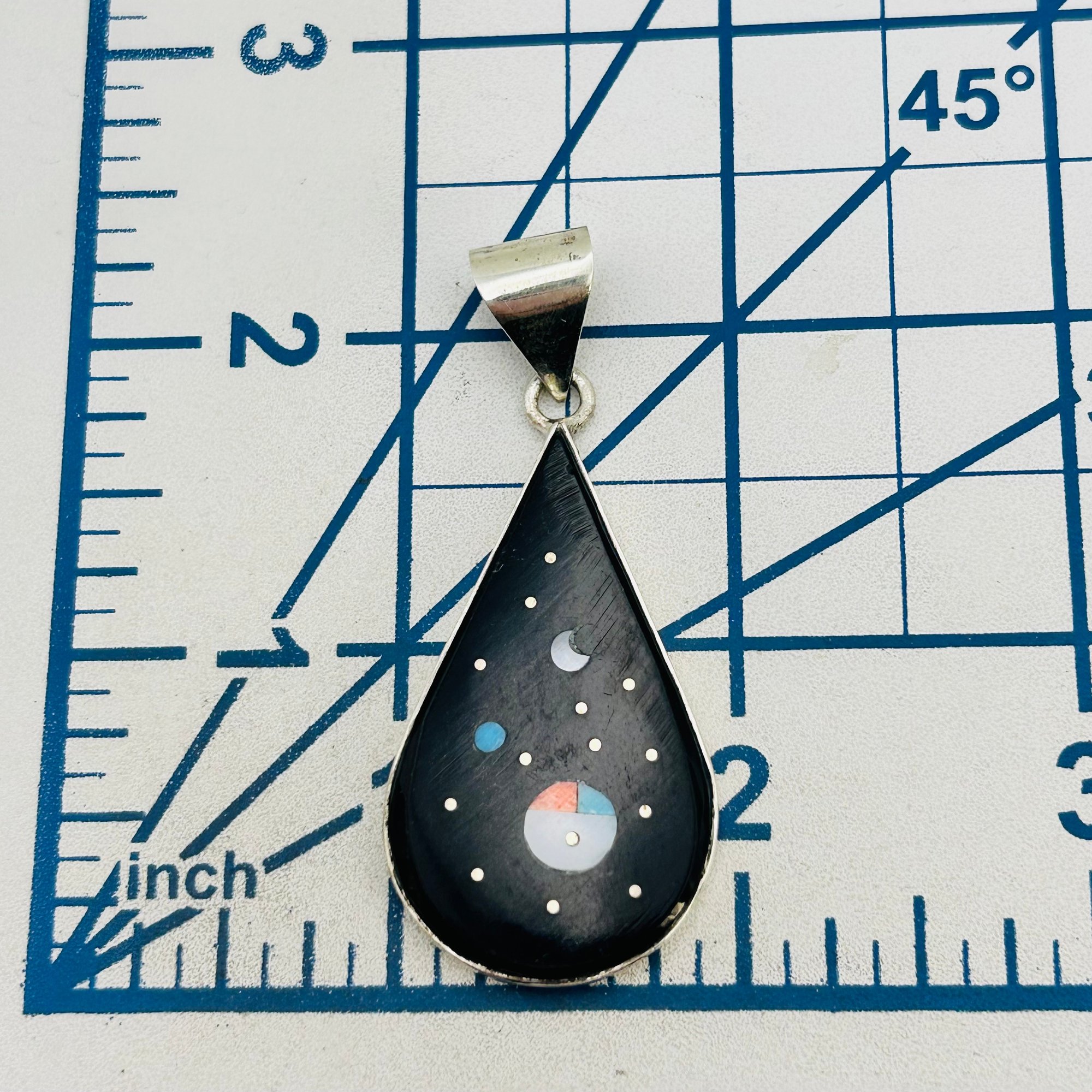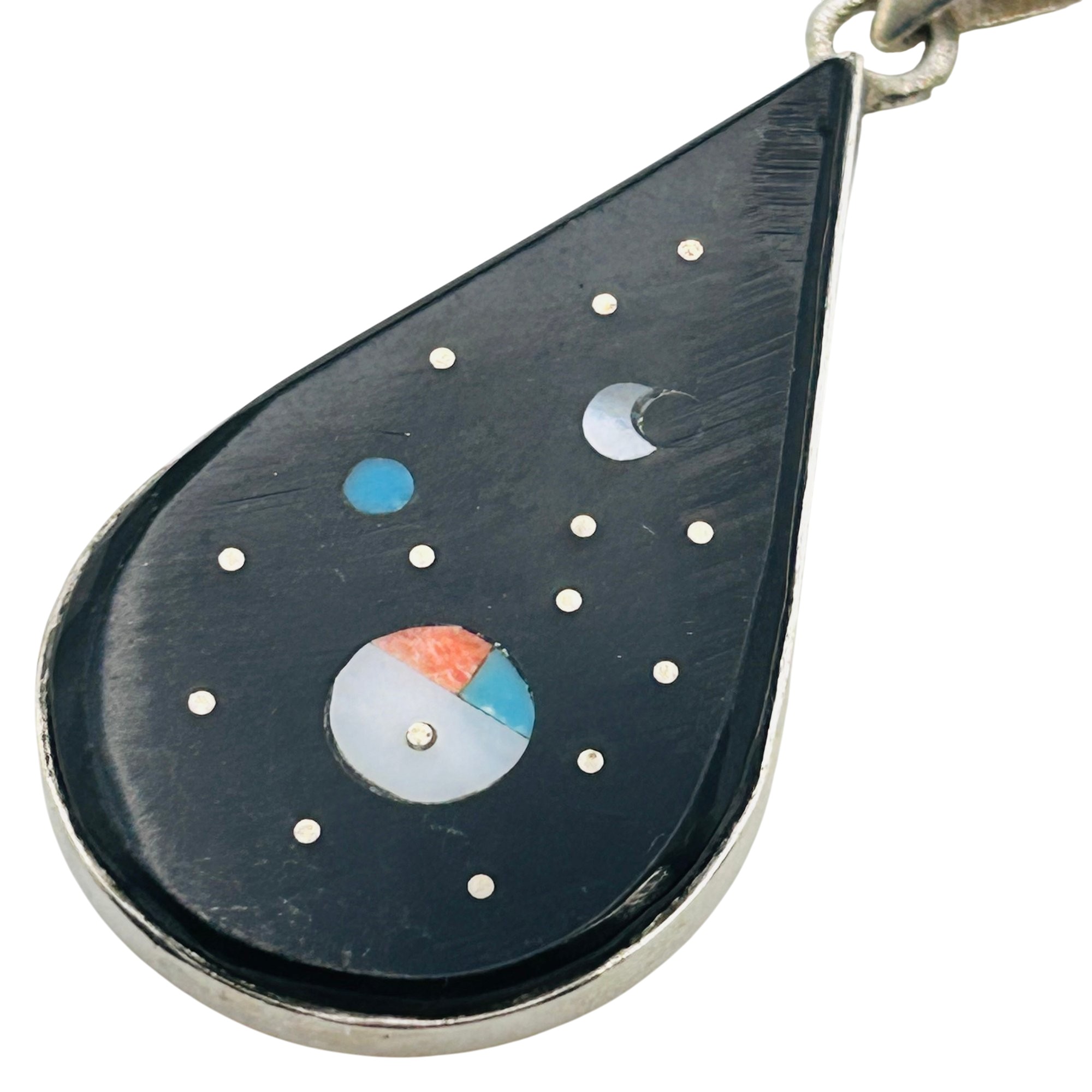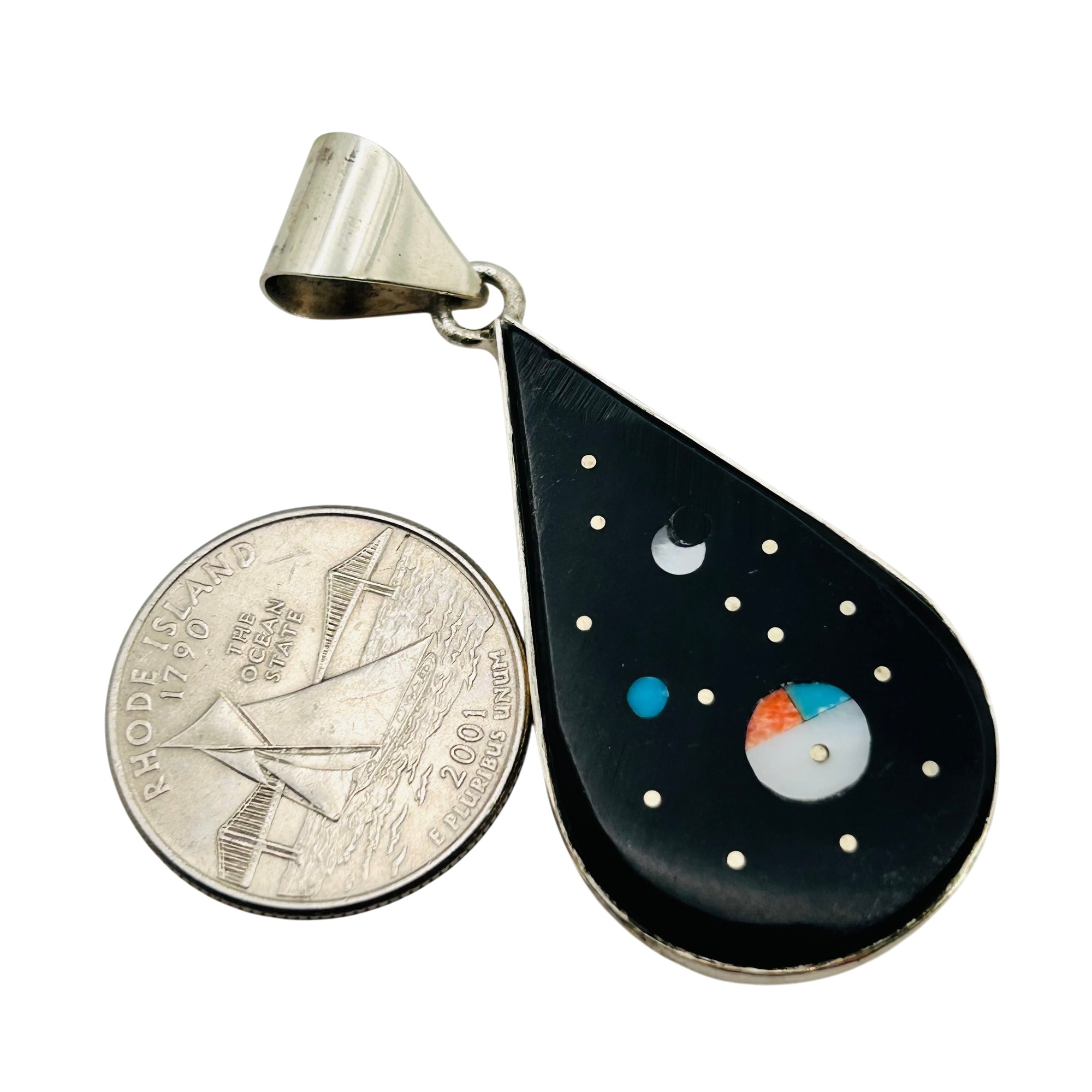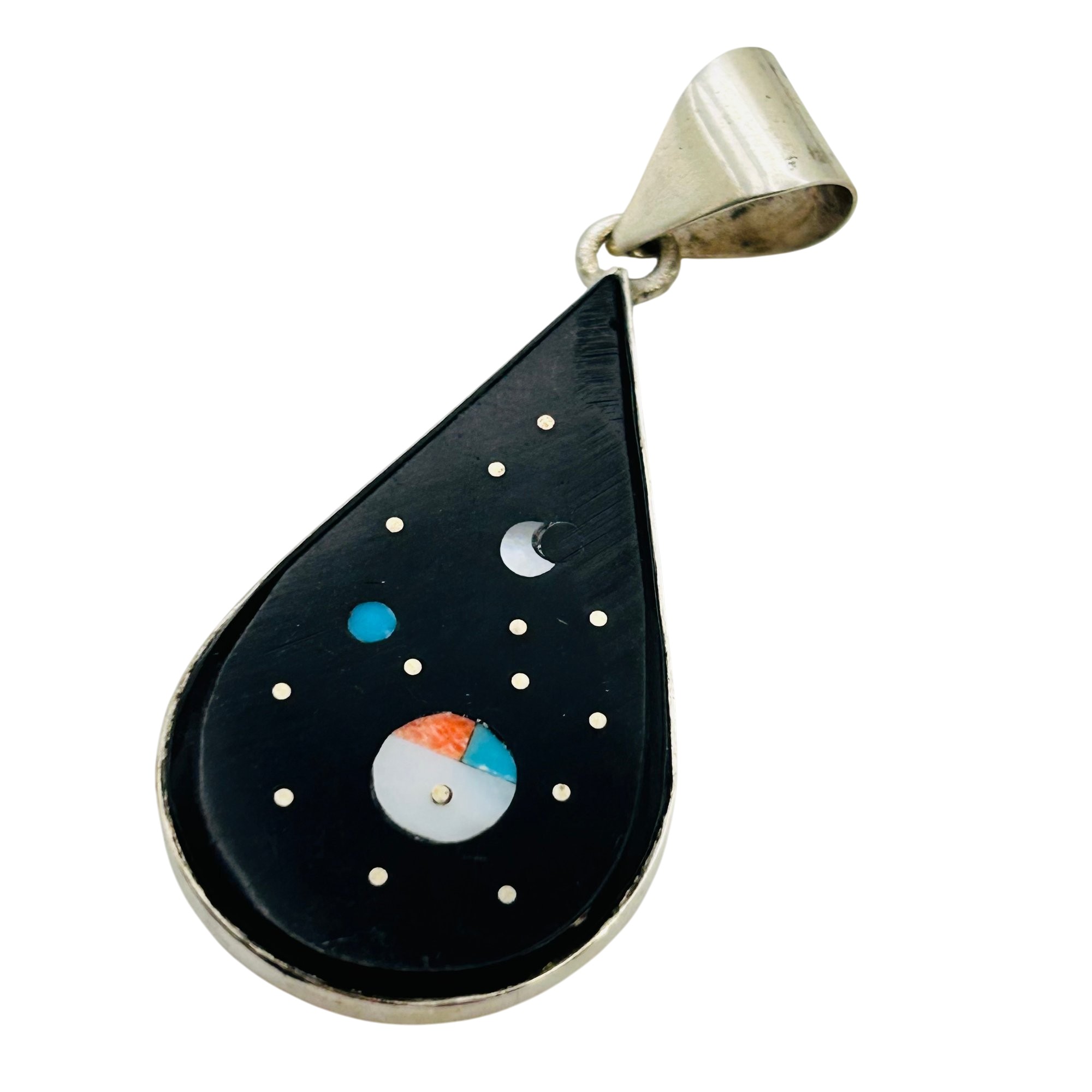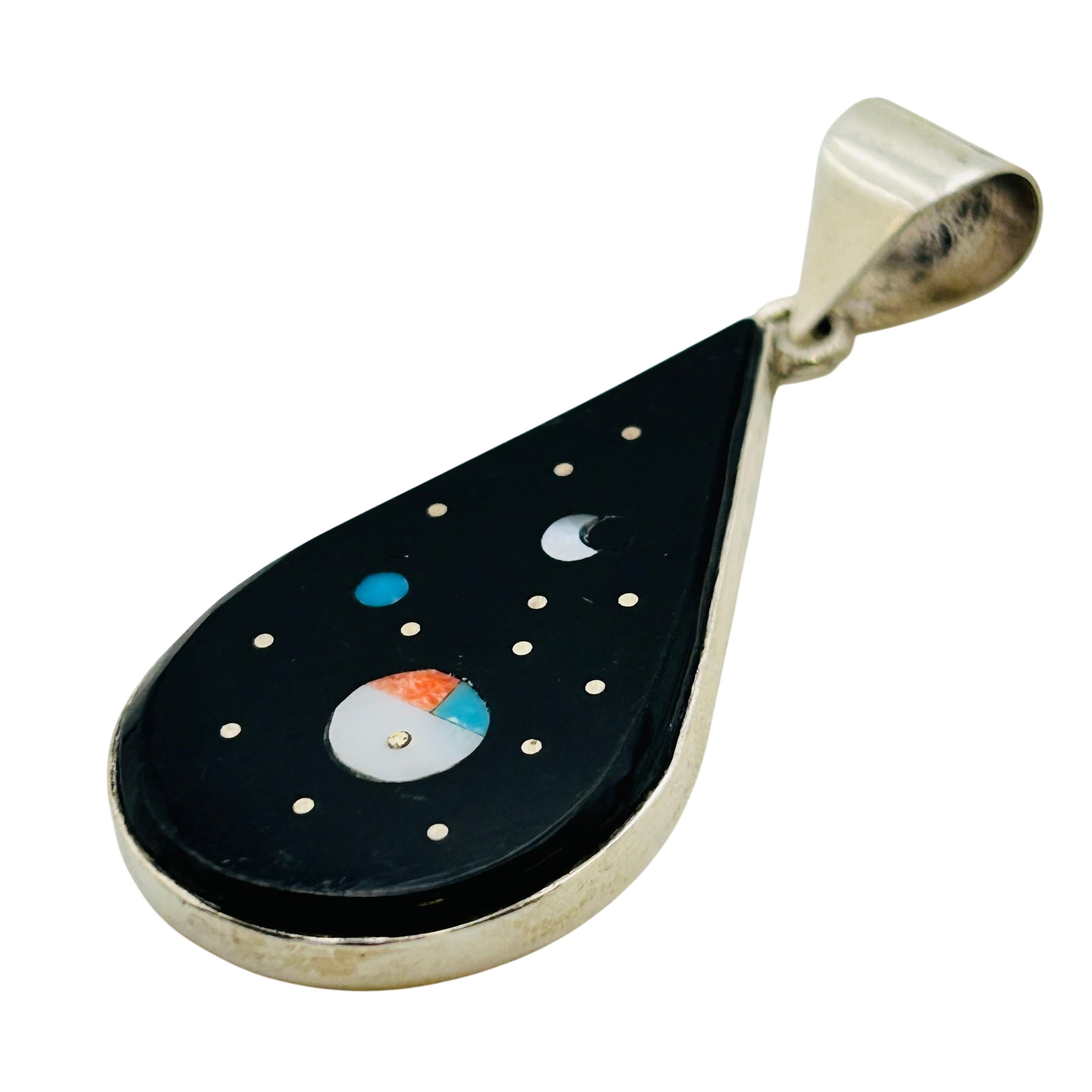 Harold Smith Navajo Sterling Pueblo Night Sky Inlay Multi-Stone Pendant 7.74grams