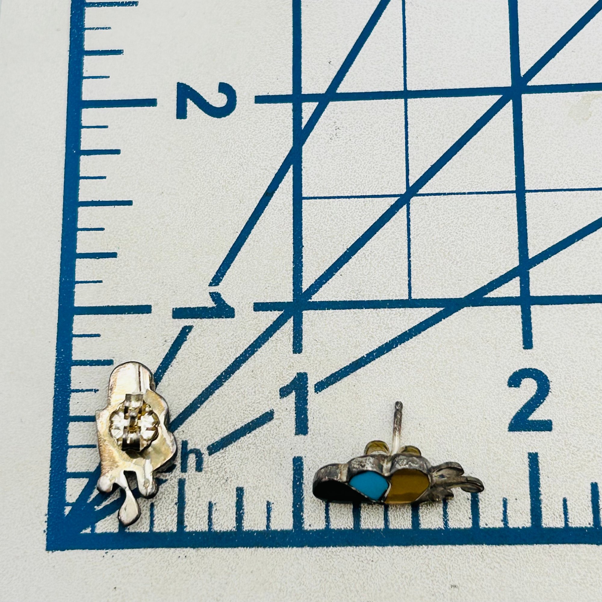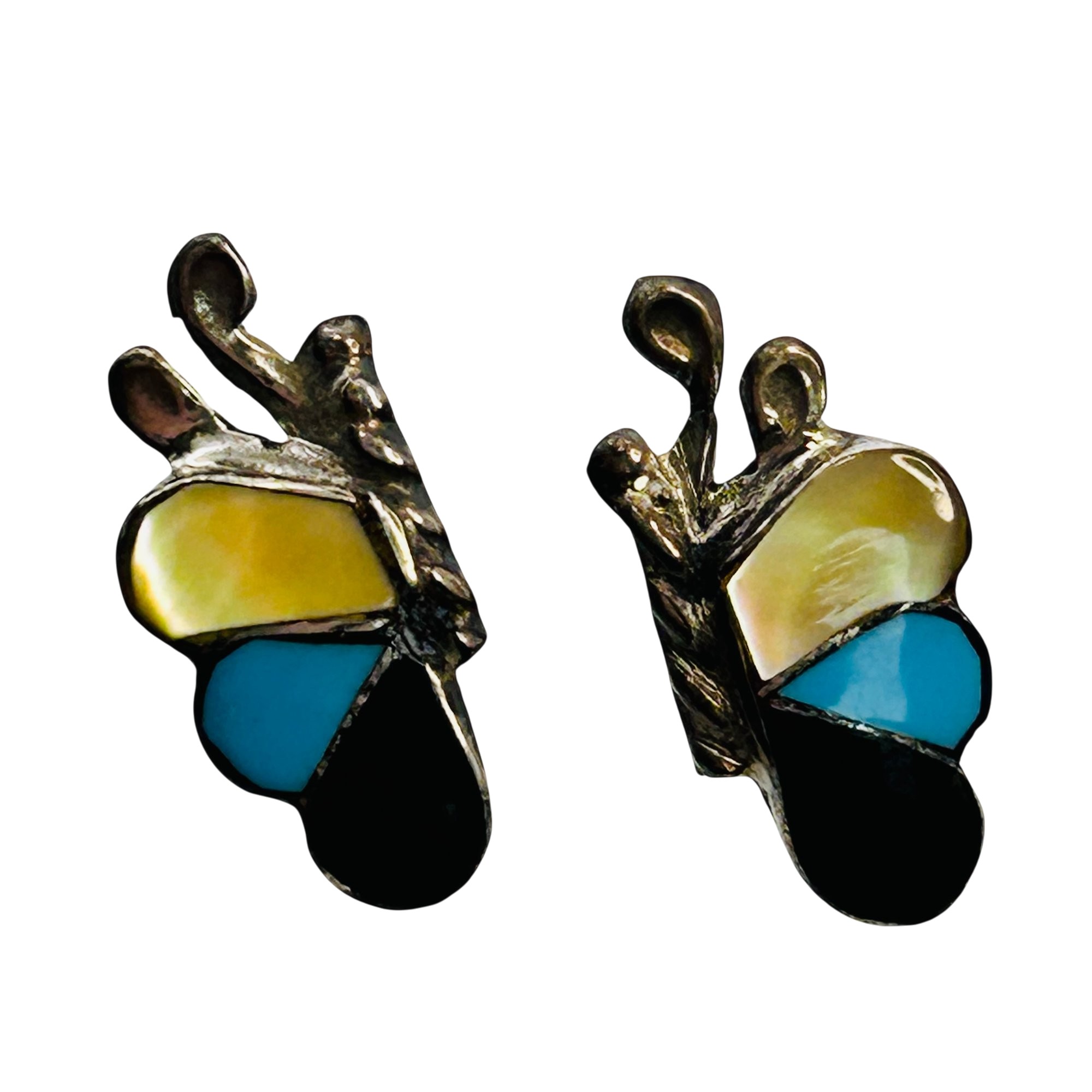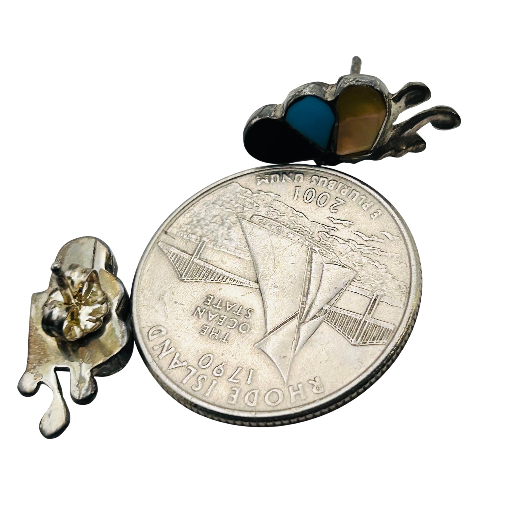 Vincent Hooee Zuni Sterling multi stone Mother of Pearl Turquoise Onyx Pushback earrings 2.22 grams