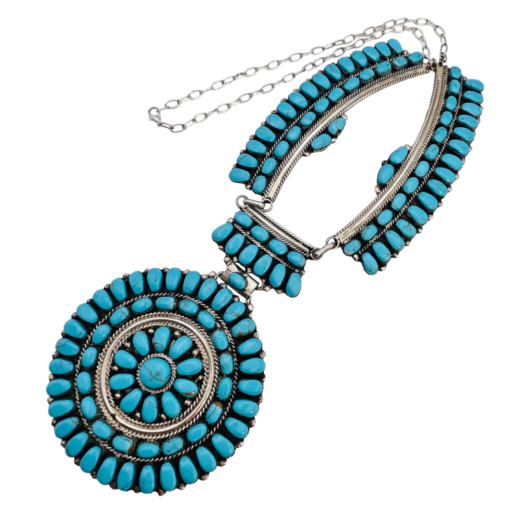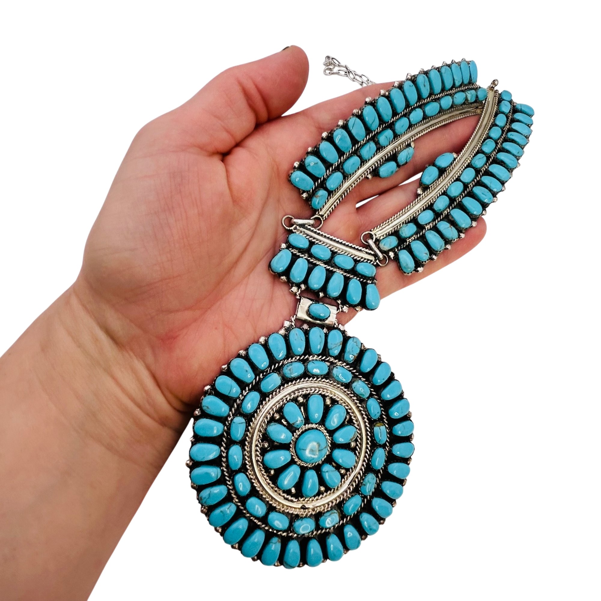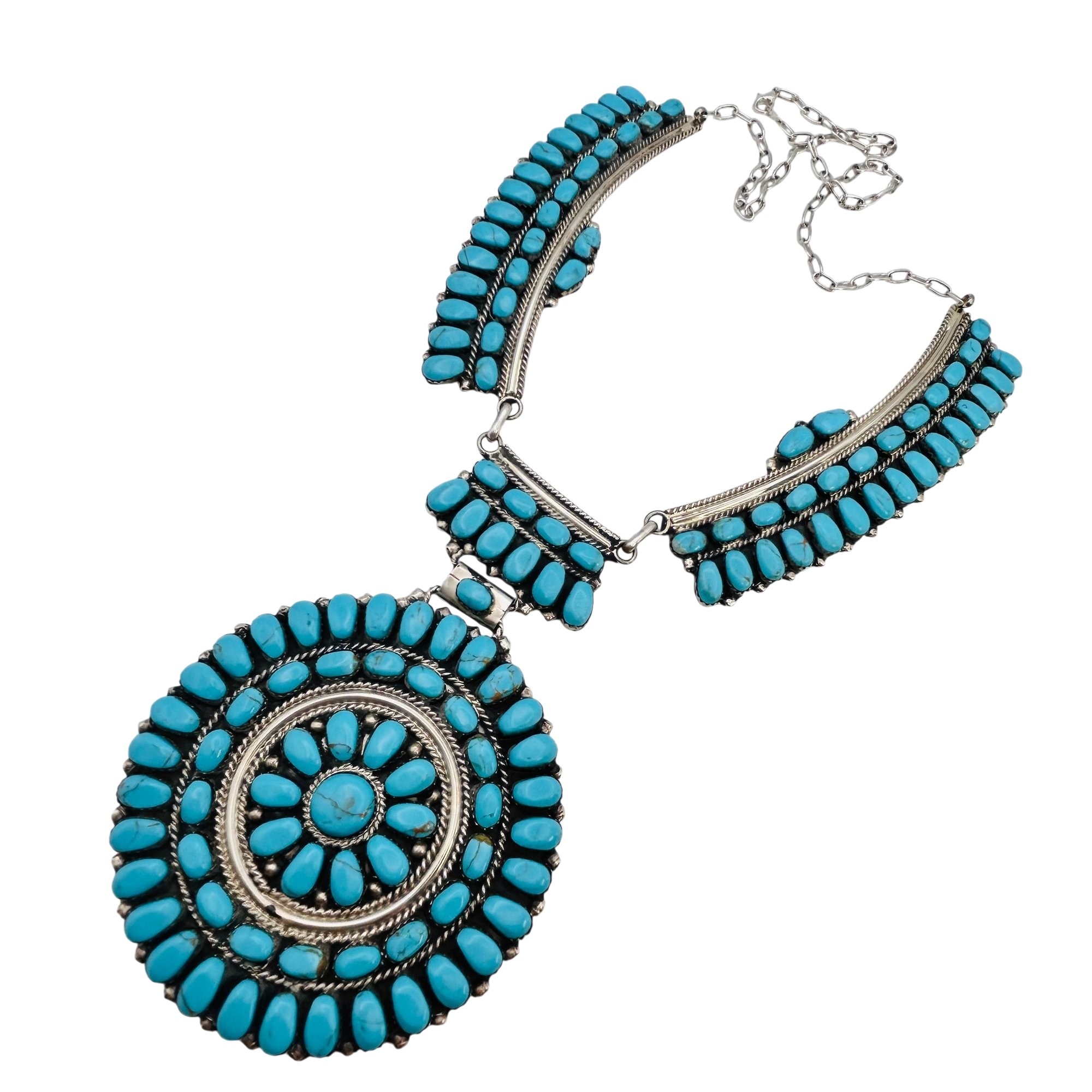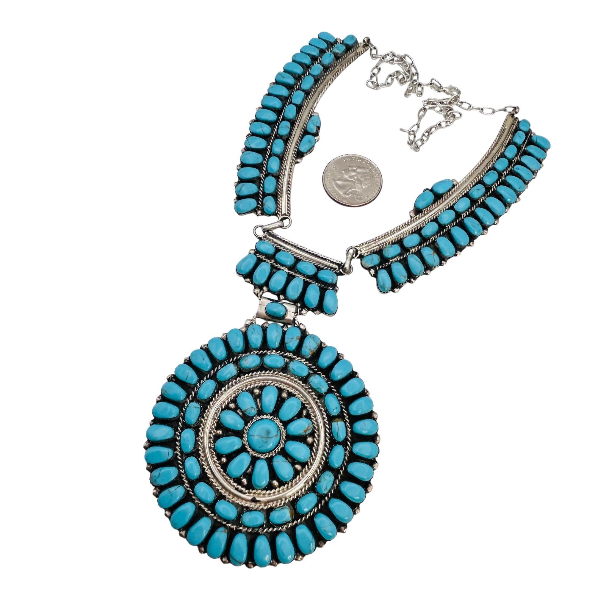 Juliana William Navajo Sterling Statement Turquoise Cluster Necklace 20inch and 109.32 grams