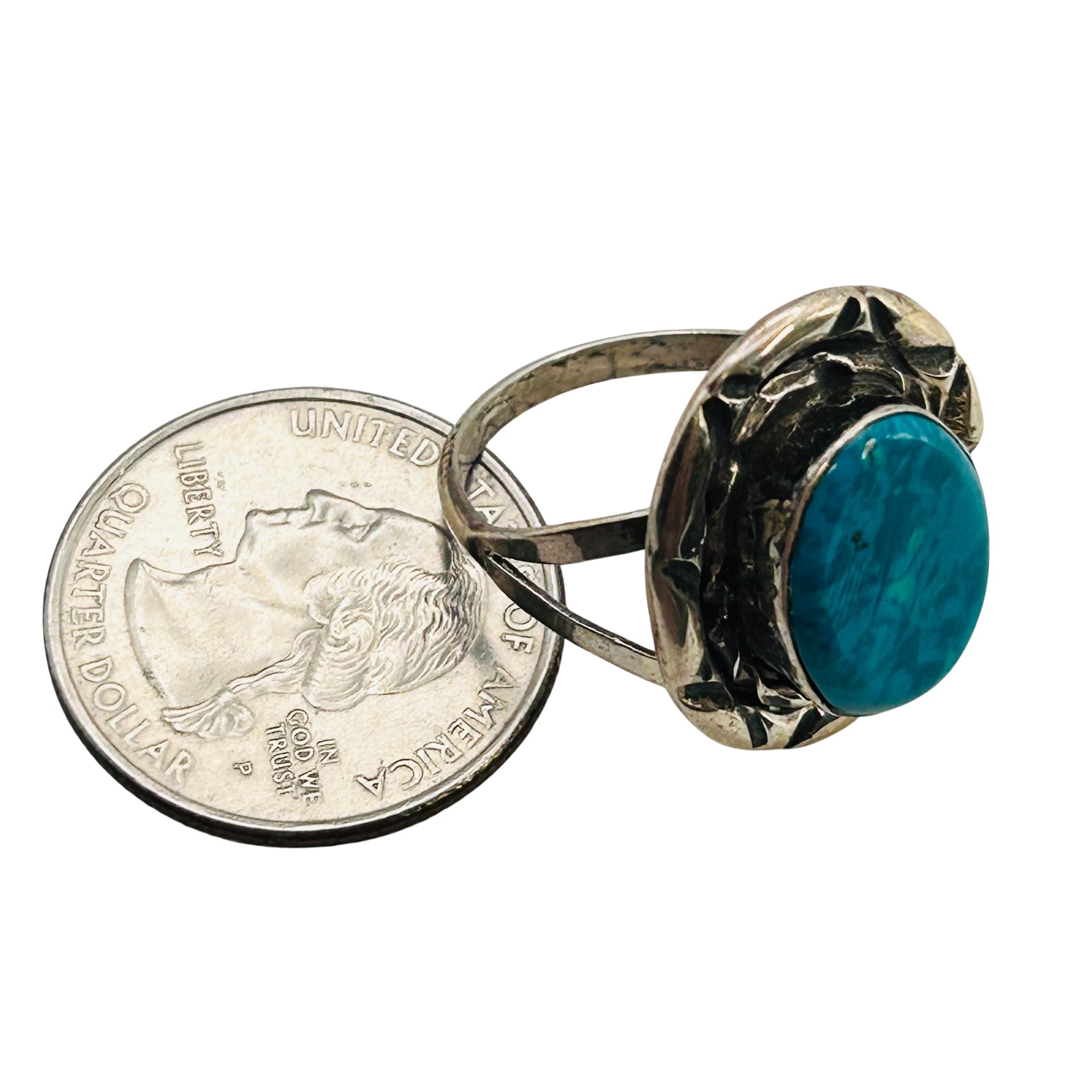 Rob Martinez Navajo Sterling Kingman Turquoise Round Ring SZ.10 6.3 grams