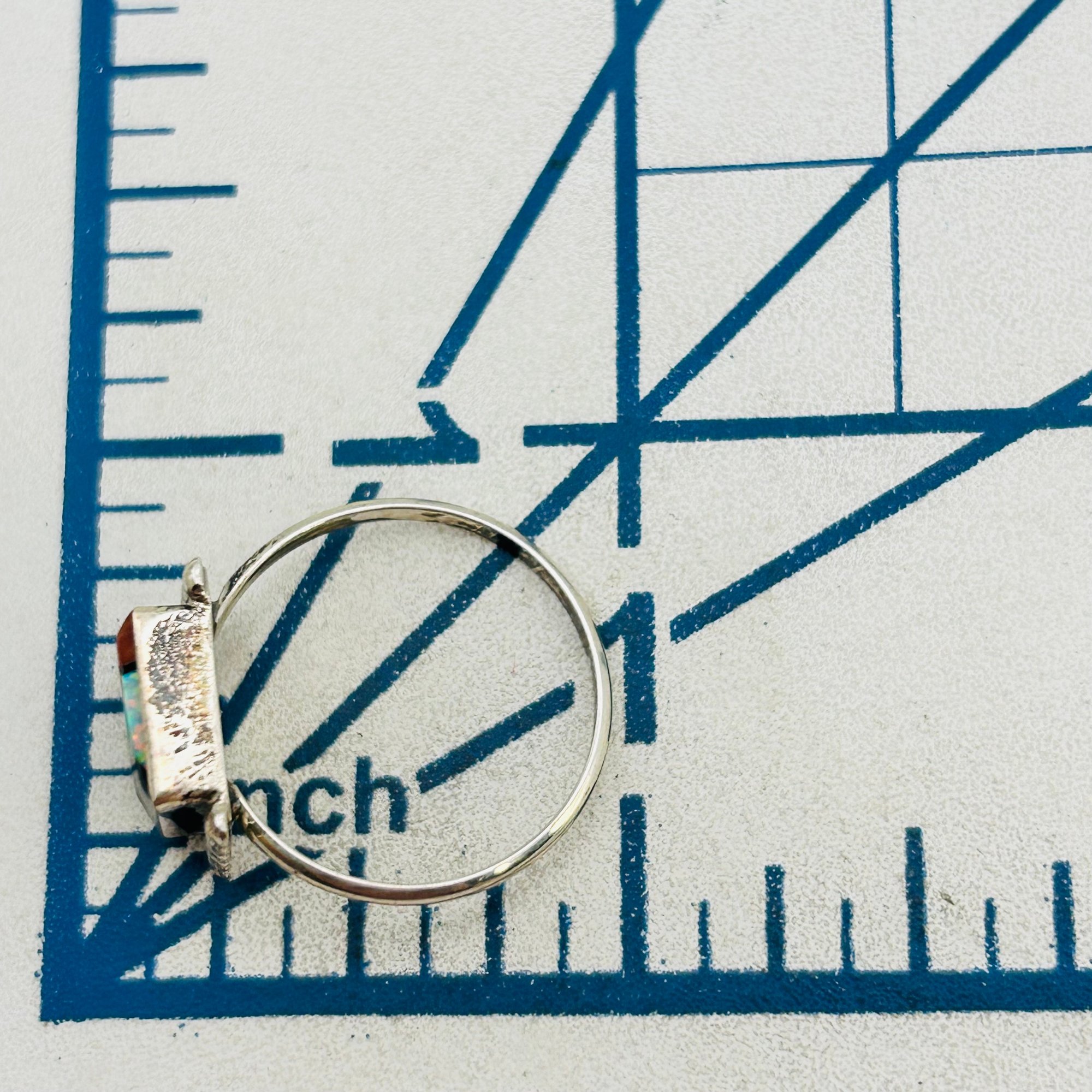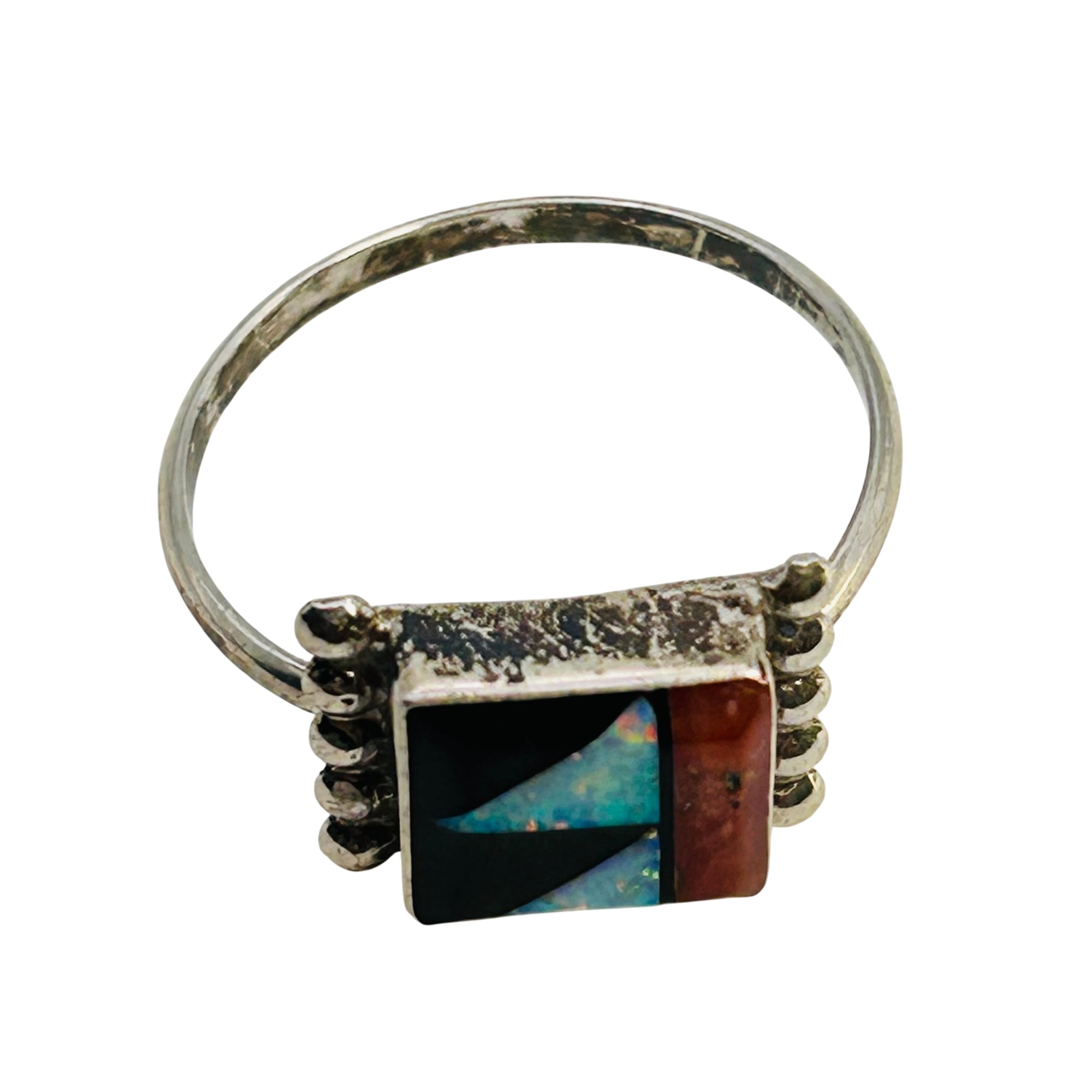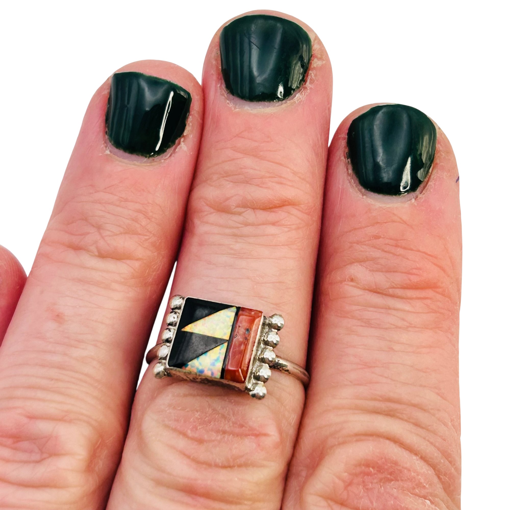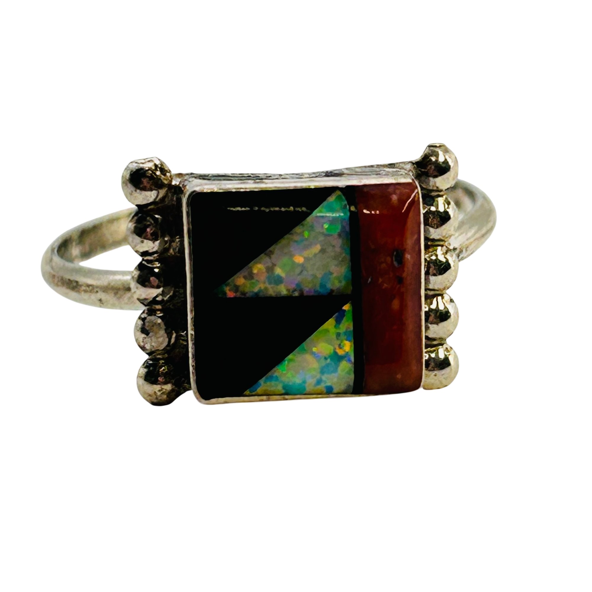 Tyron Martinez Zuni Sterling Multi color Inlay Opal and Coral Ring SZ. 7