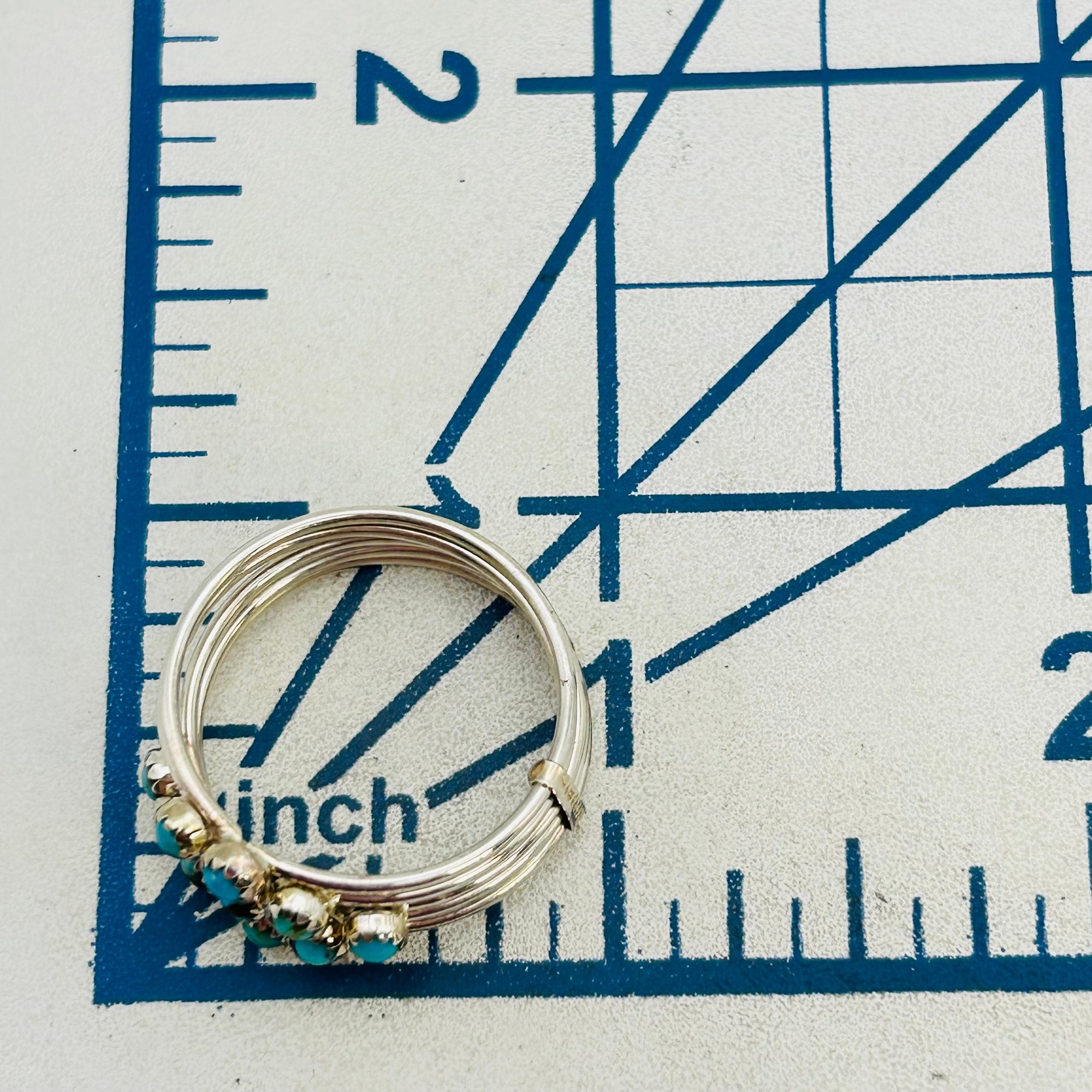 Navajo Sterling Turquoise multi band ring SZ.9 3.31 grams