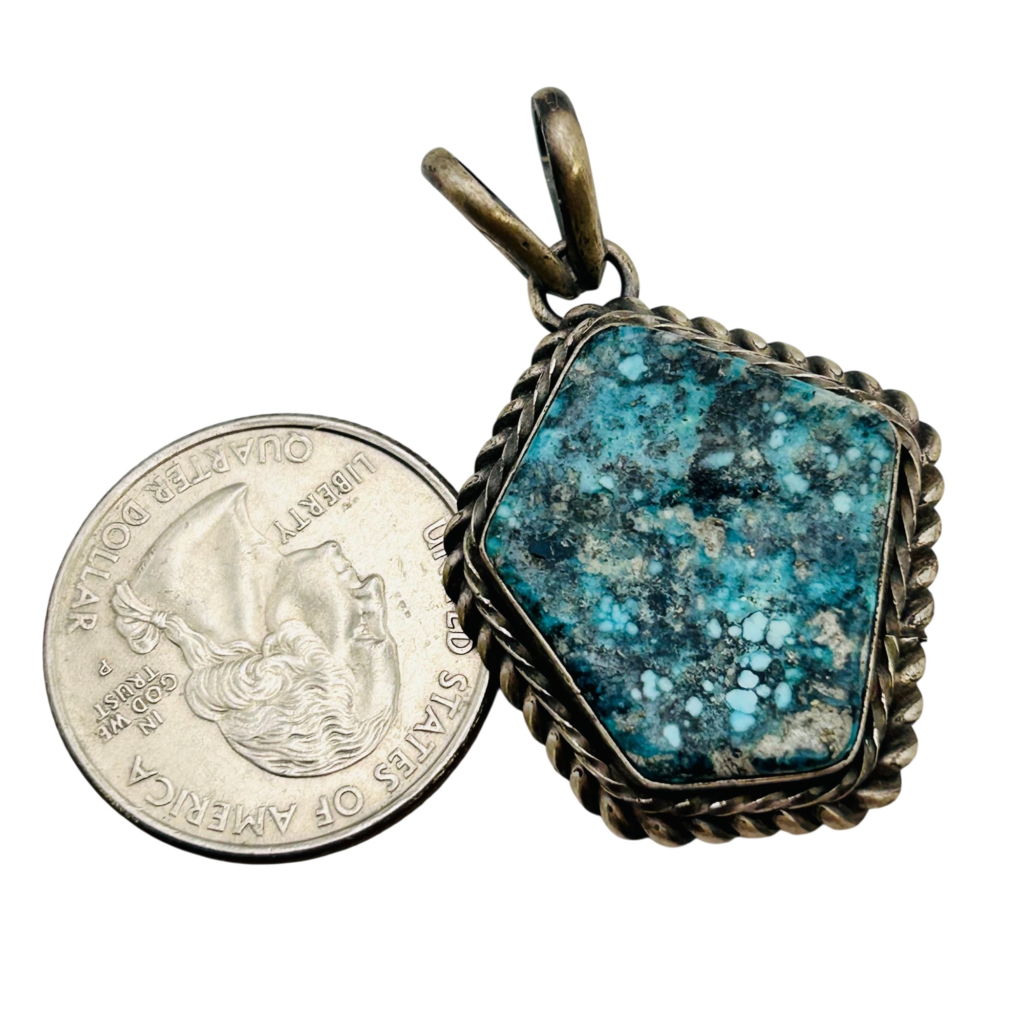 Eli Skeets Navajo Sterling Sonoran Turquoise Pendant 10.06 Grams
