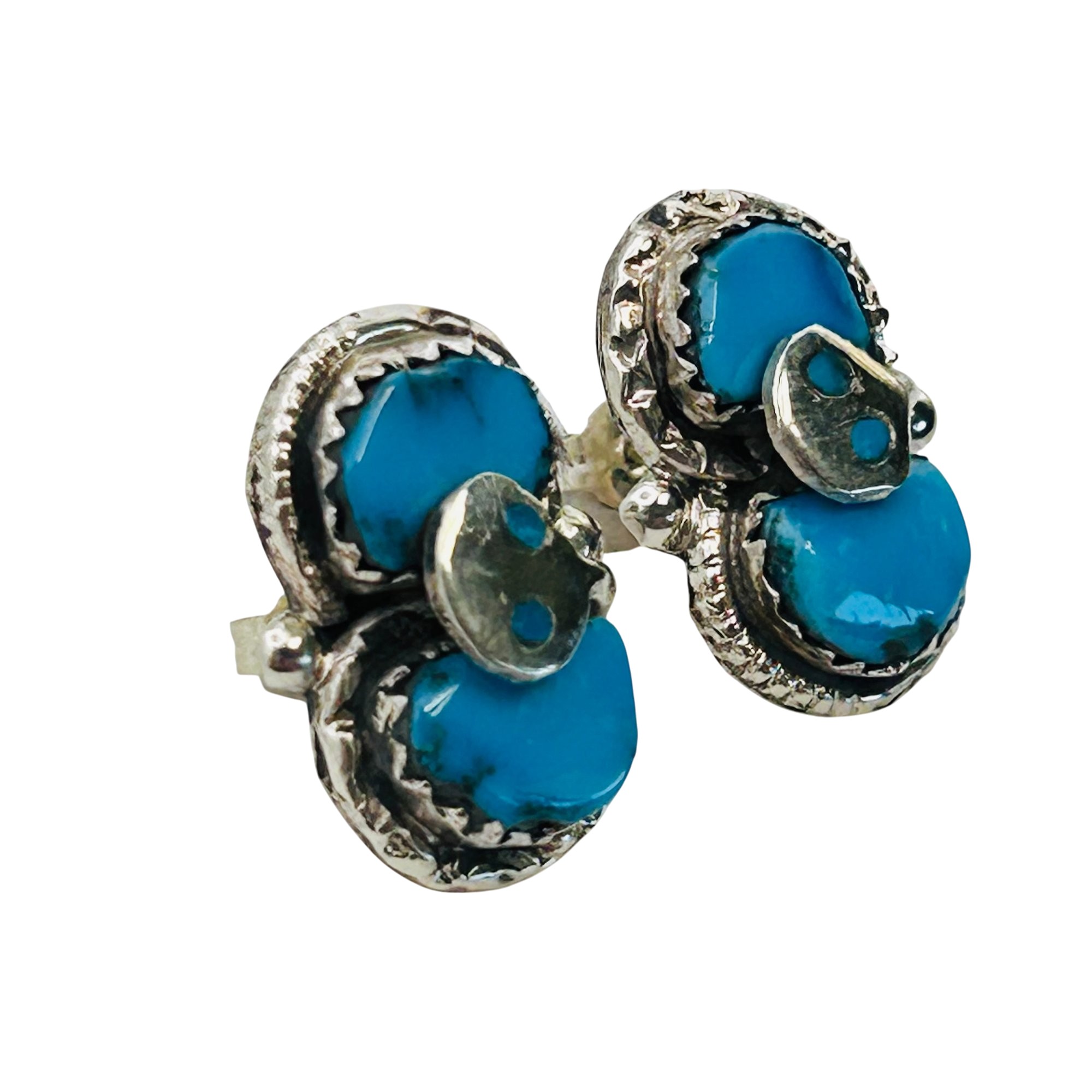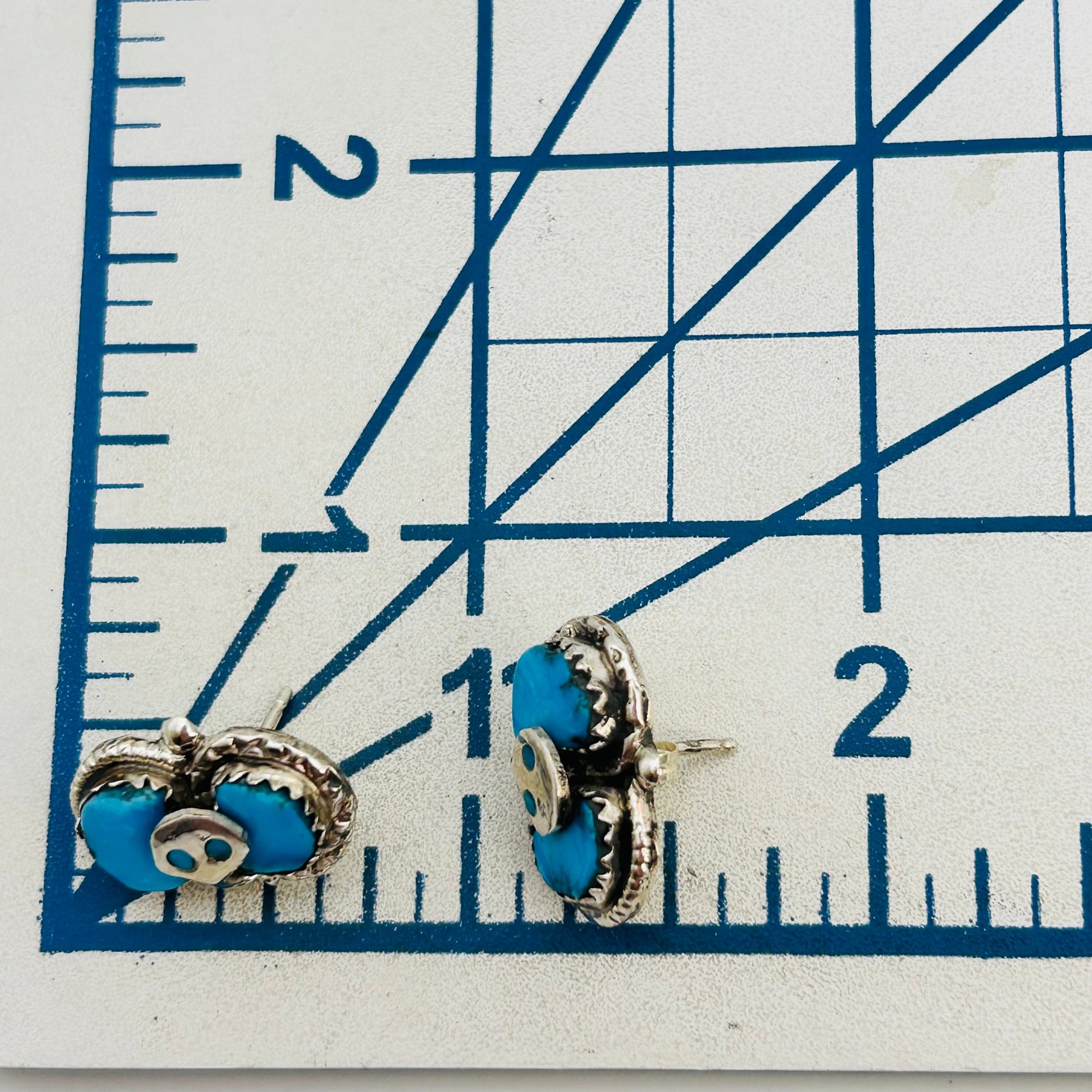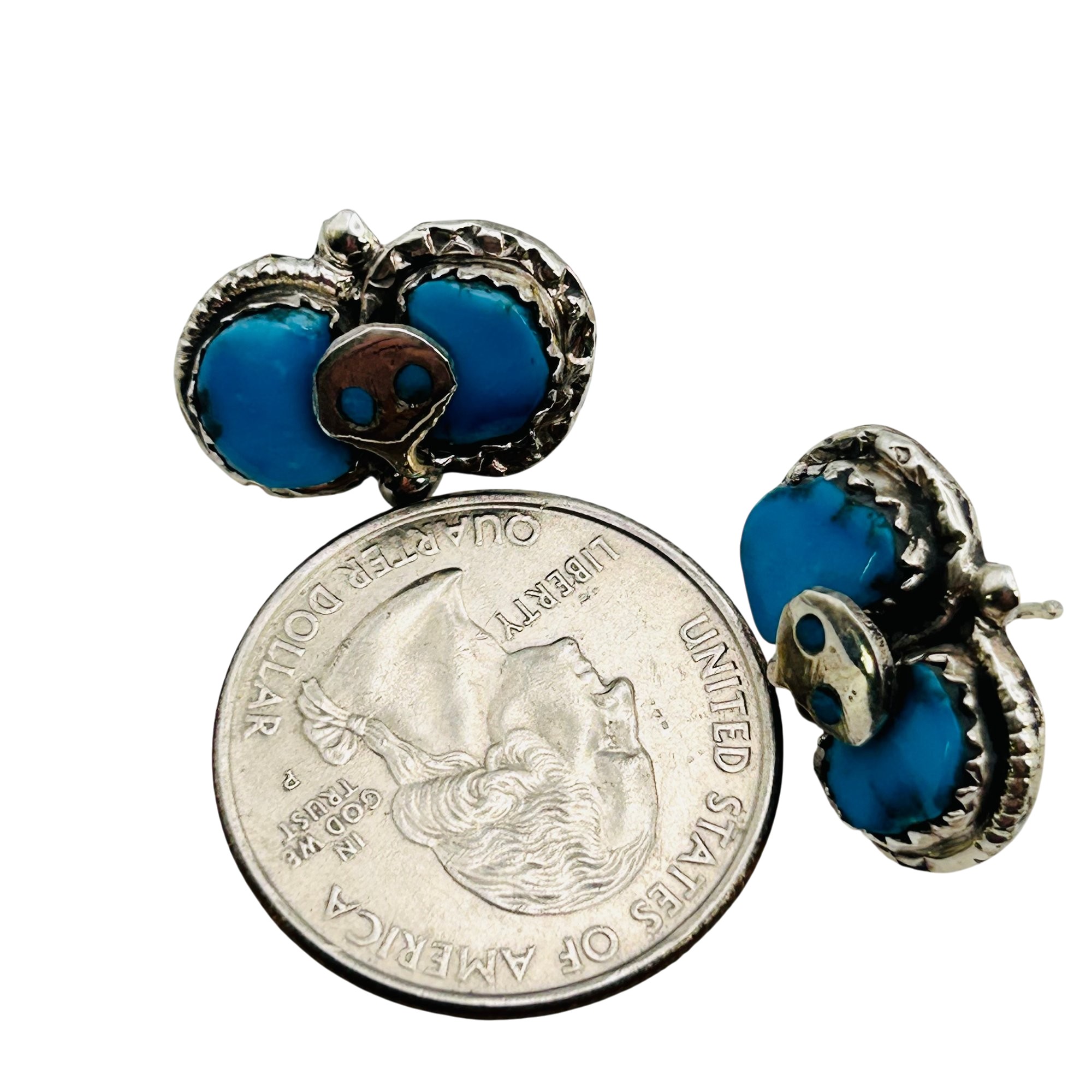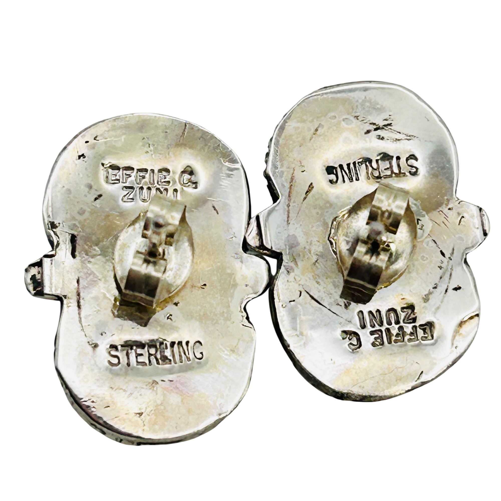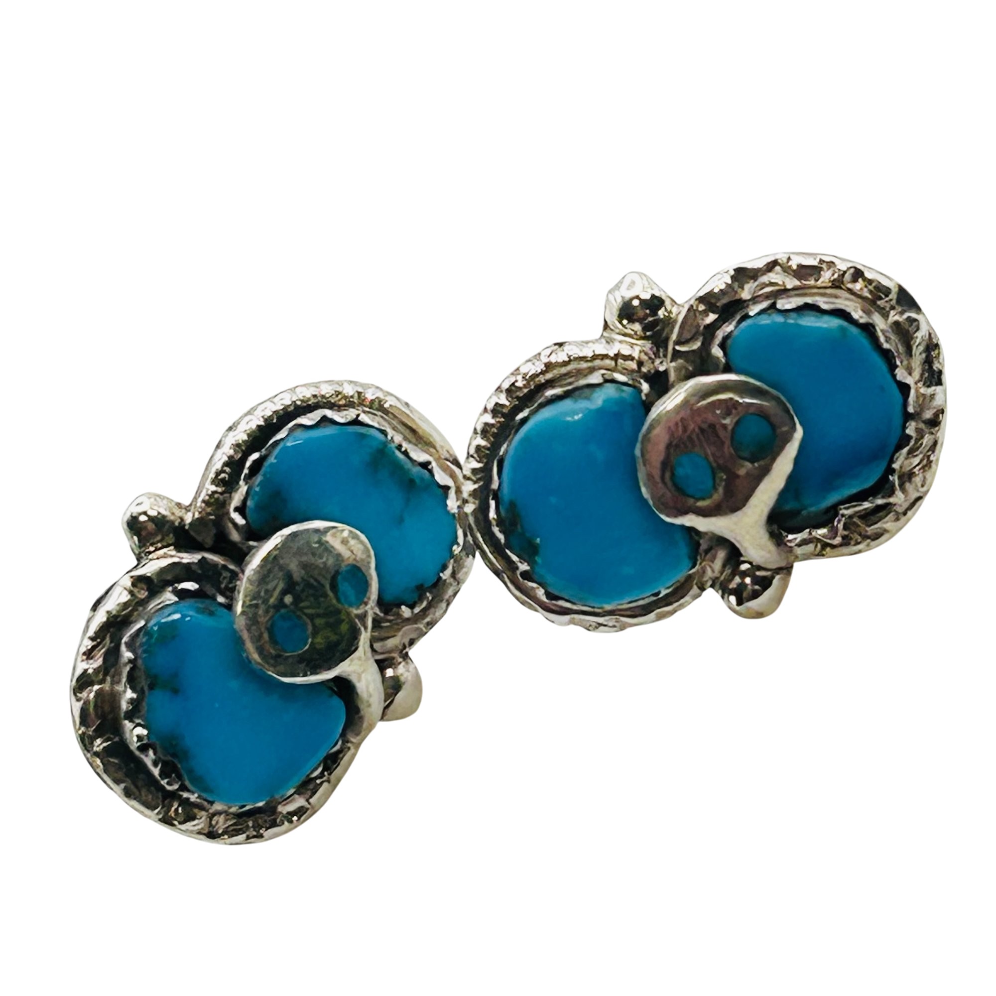 Effie Calavaza Zuni Sterling Kingman Turquoise Snake Pushback Earrings 5.83 grams