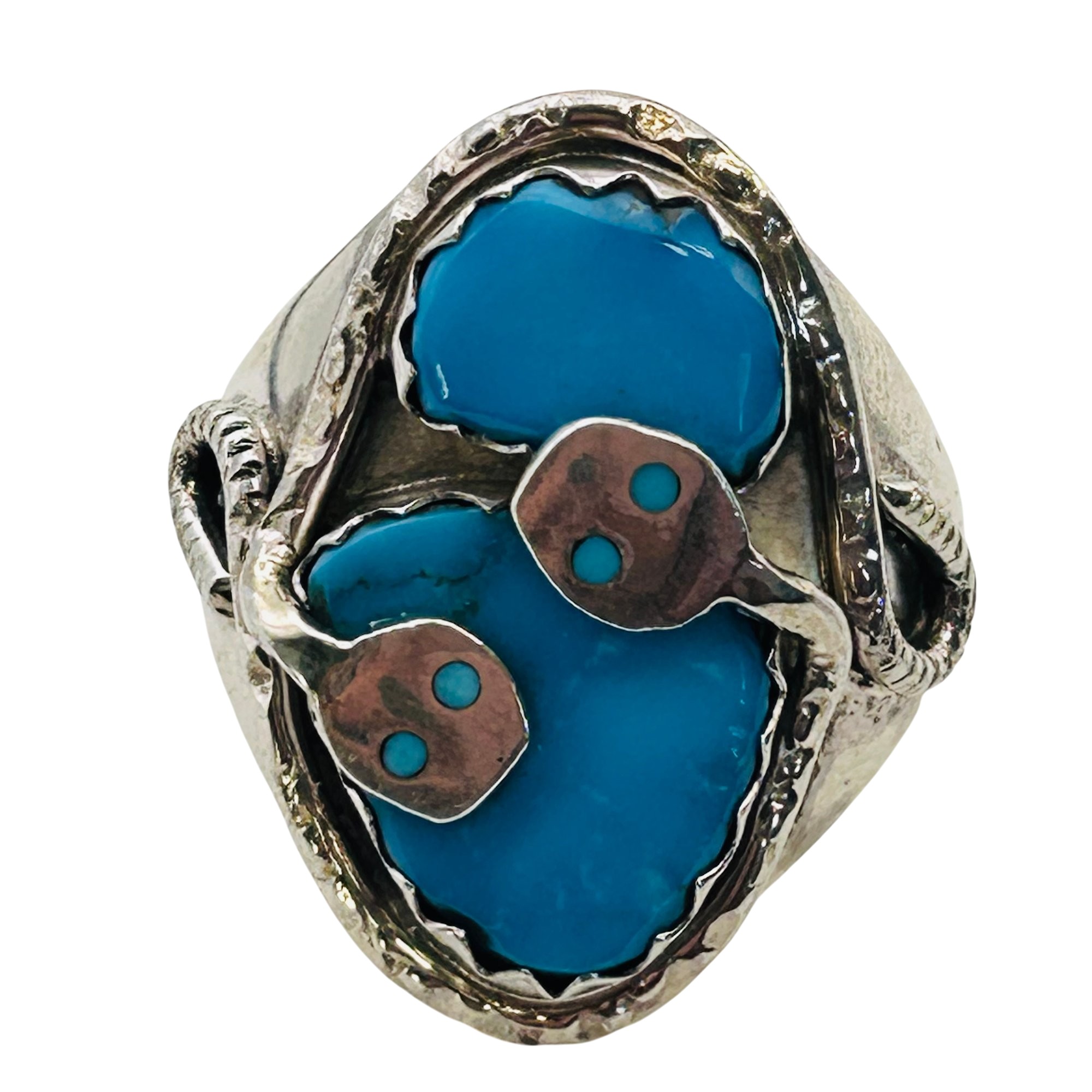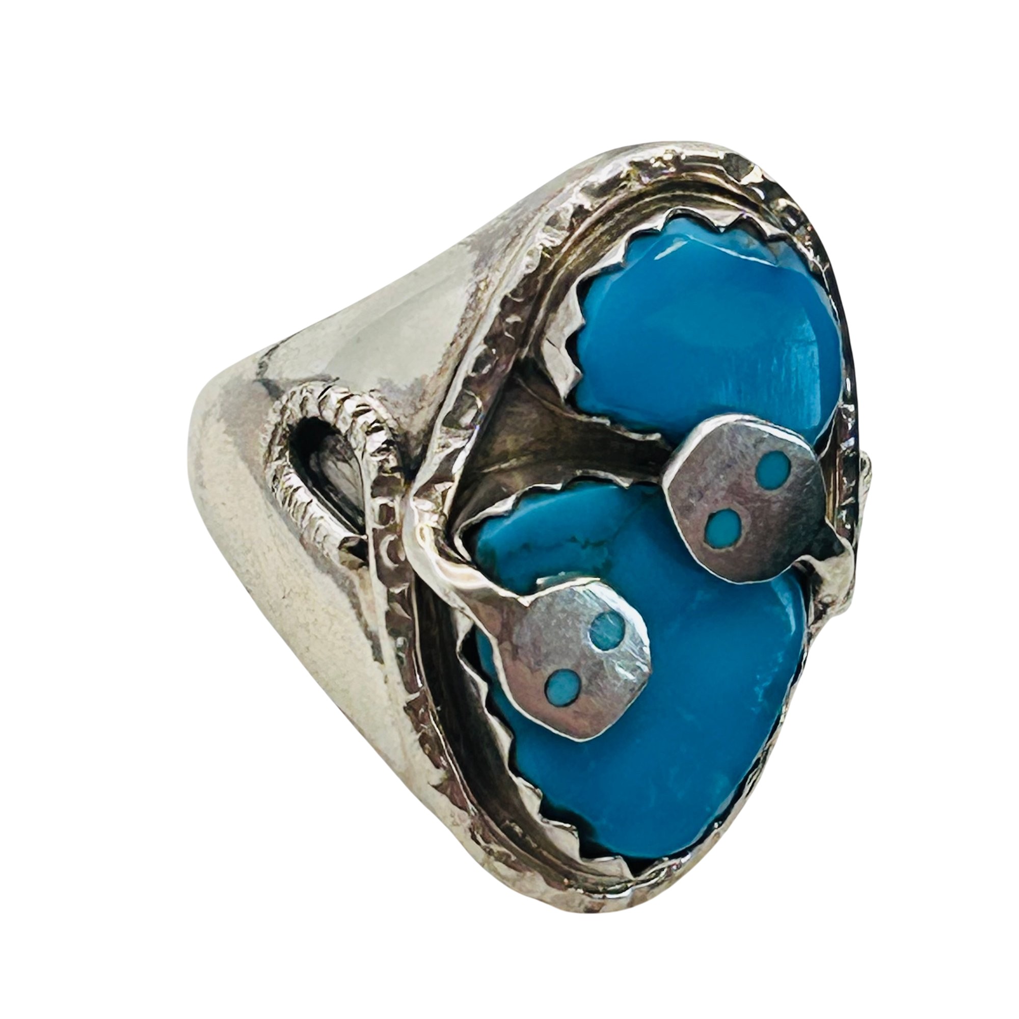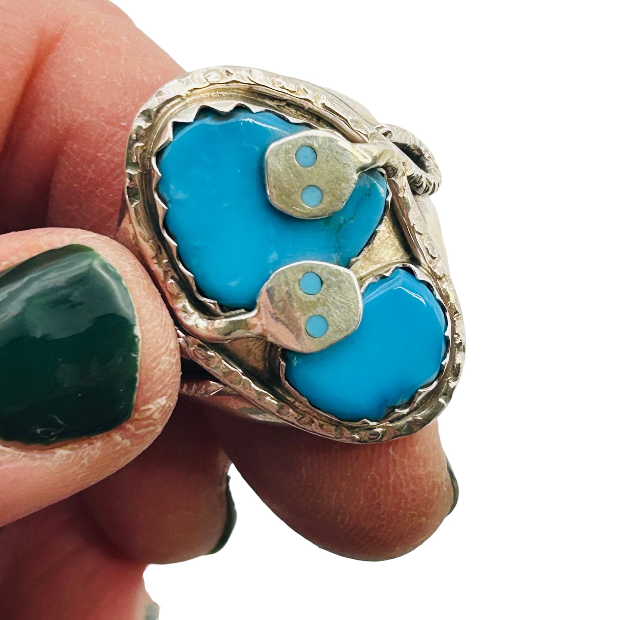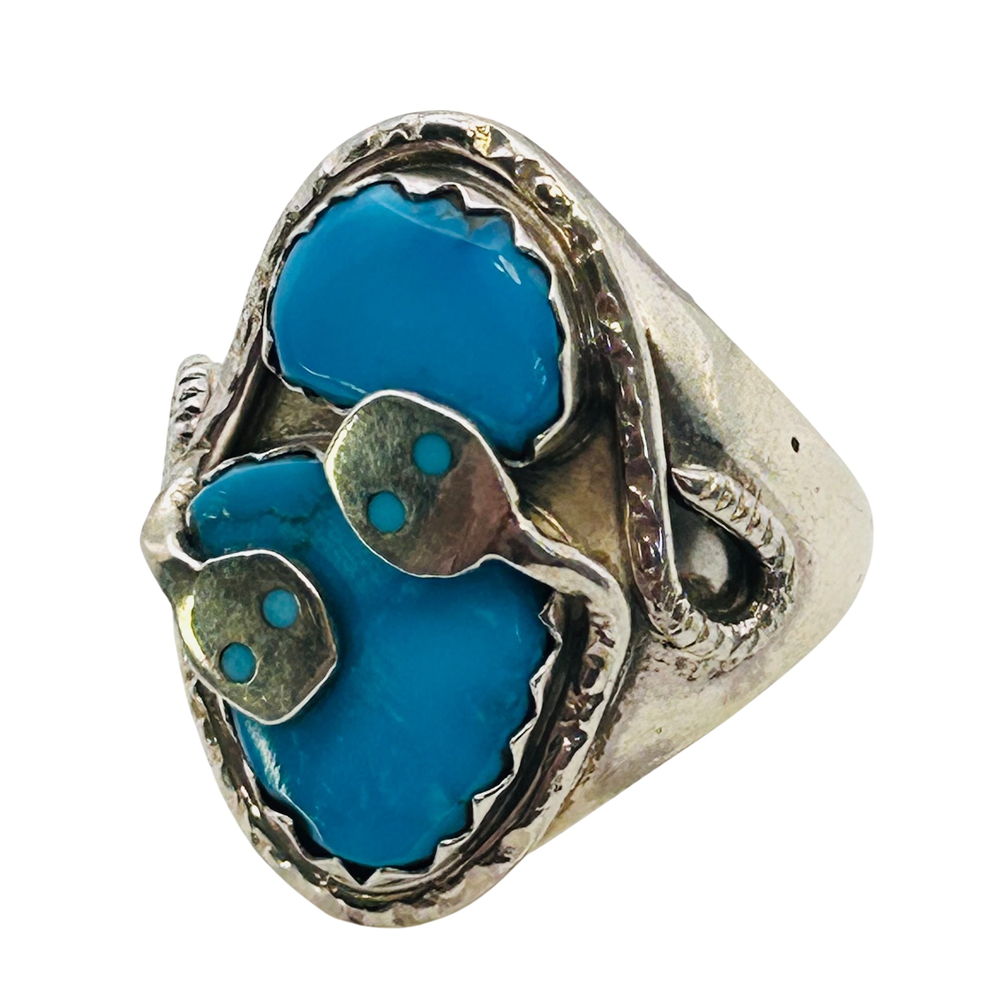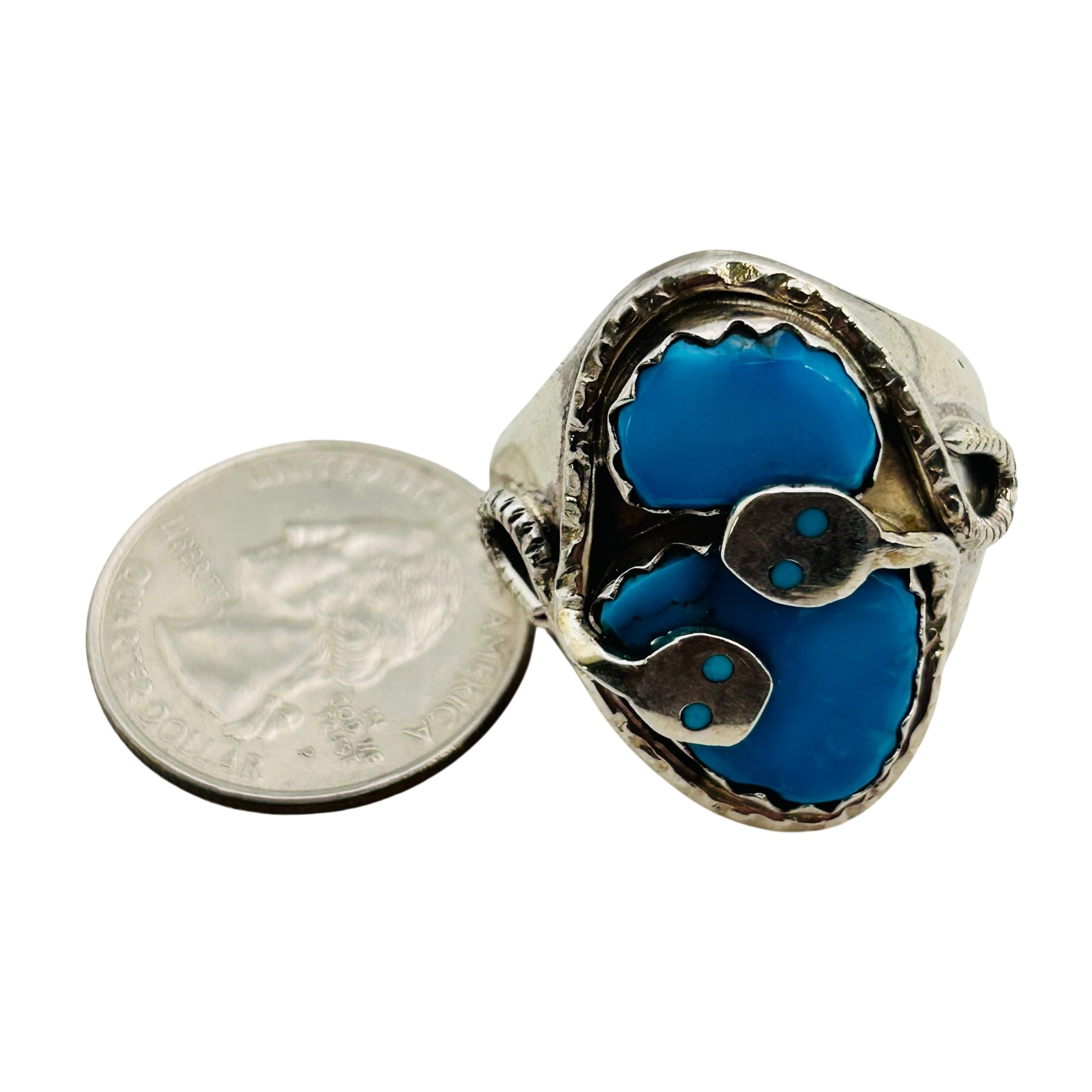 Effie Calavaza Zuni Sterling Kingman Turquoise Snake Statement Ring SZ. 11 23.85 grams