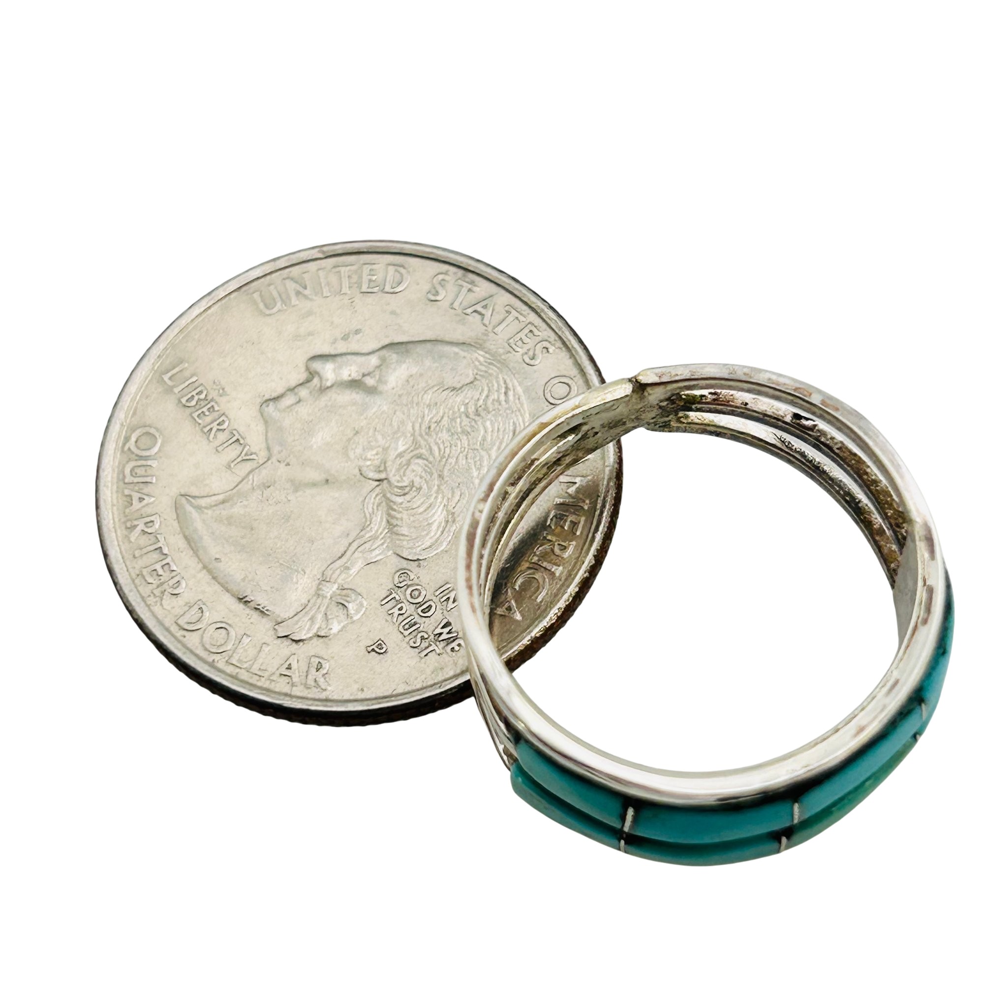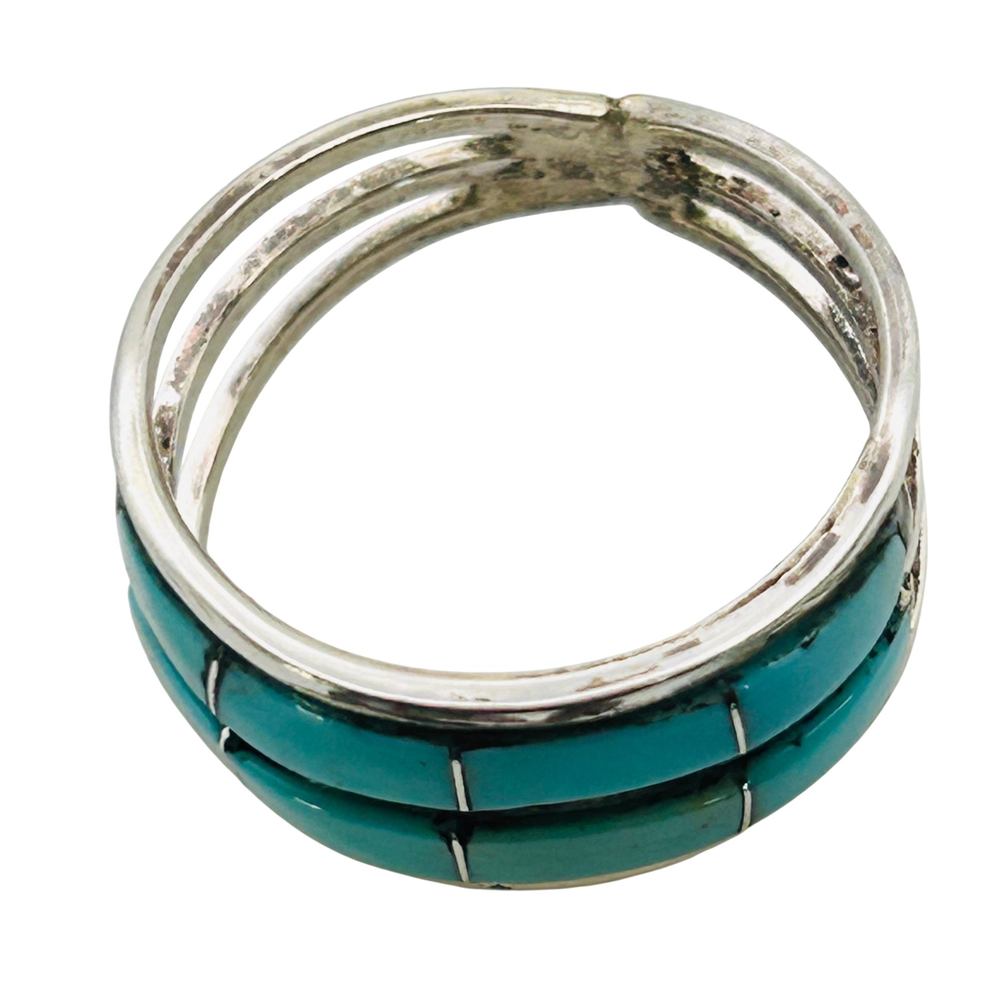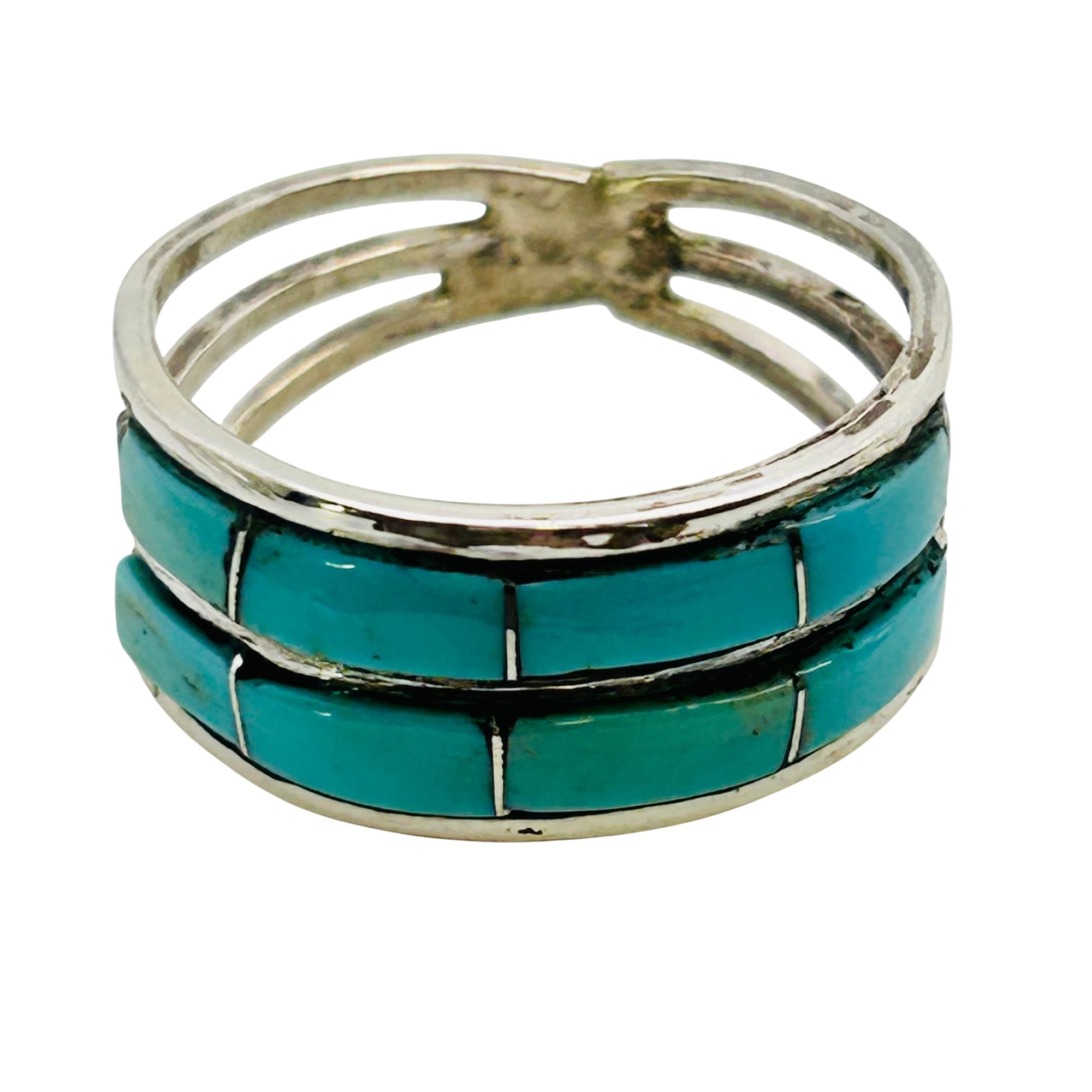 Debbie Livingston Navajo Sterling Kingman Turquoise Double Row inlay Ring SZ. 7.5 2.74 grams