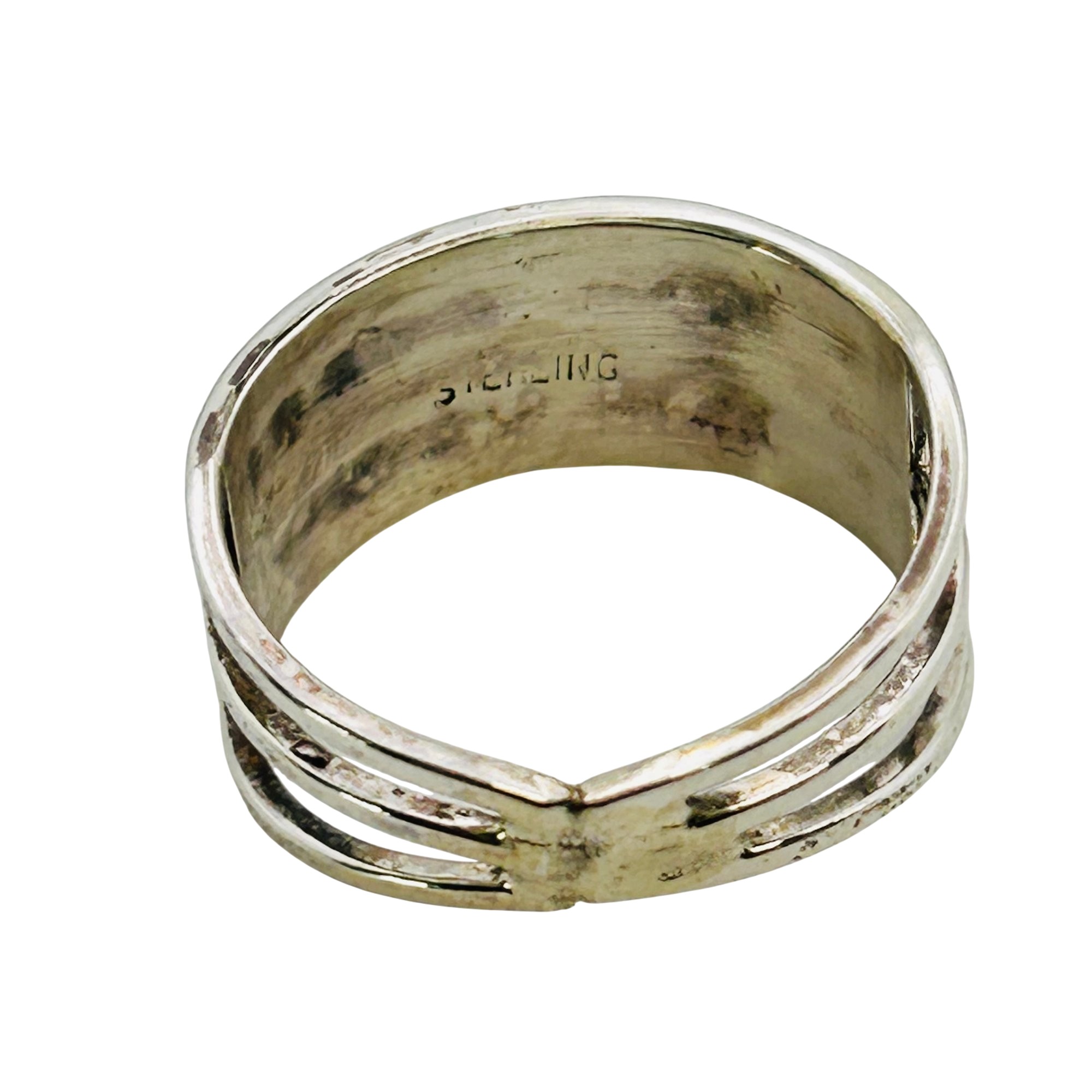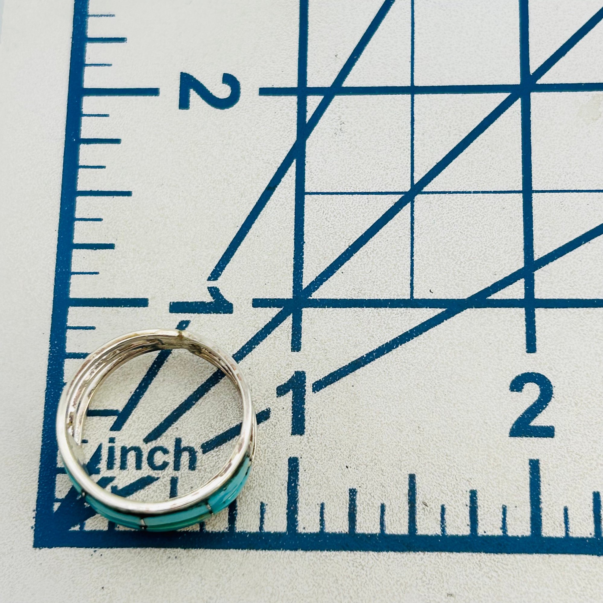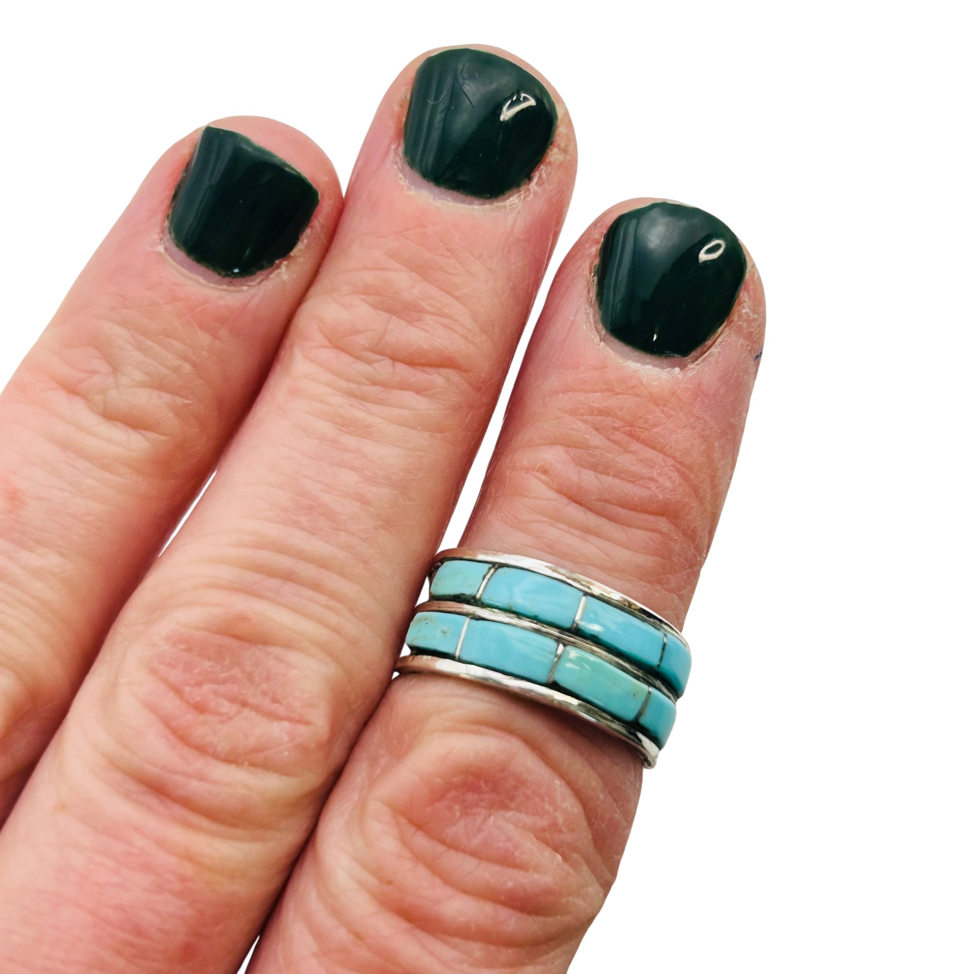 Debbie Livingston Navajo Sterling Kingman Turquoise Double Row inlay Ring SZ. 7.5 2.74 grams
