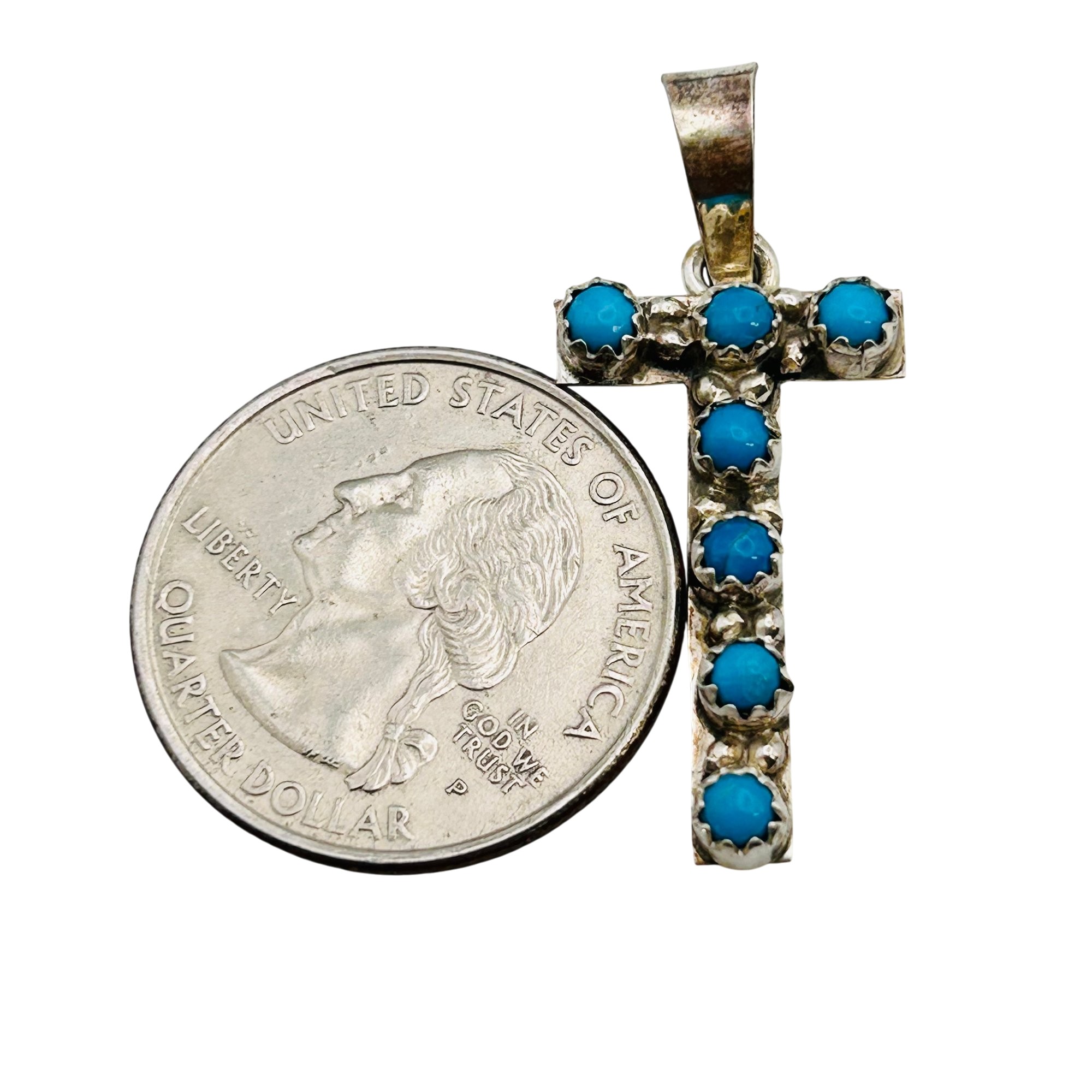 Scott Skeets Navajo Sterling Kingman Turquoise Inital “T” Pendant 2.26 grams