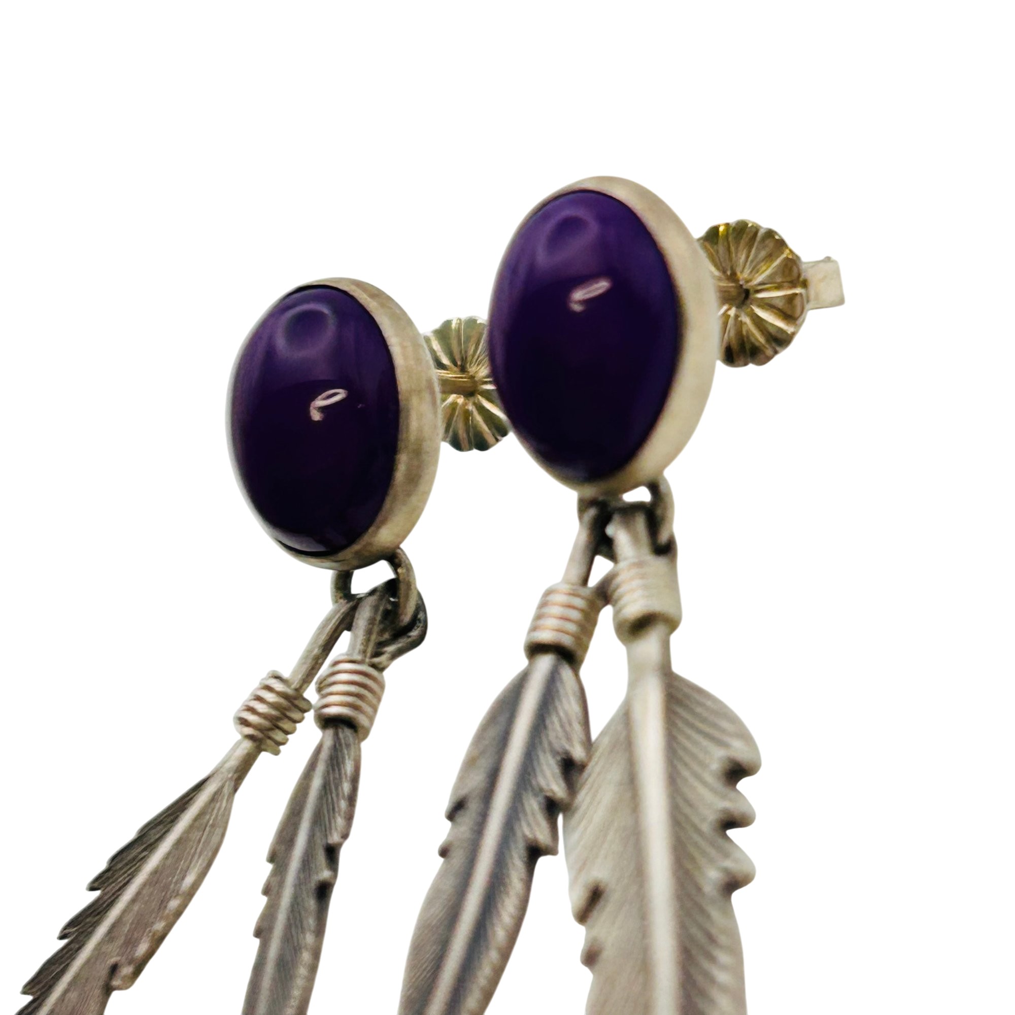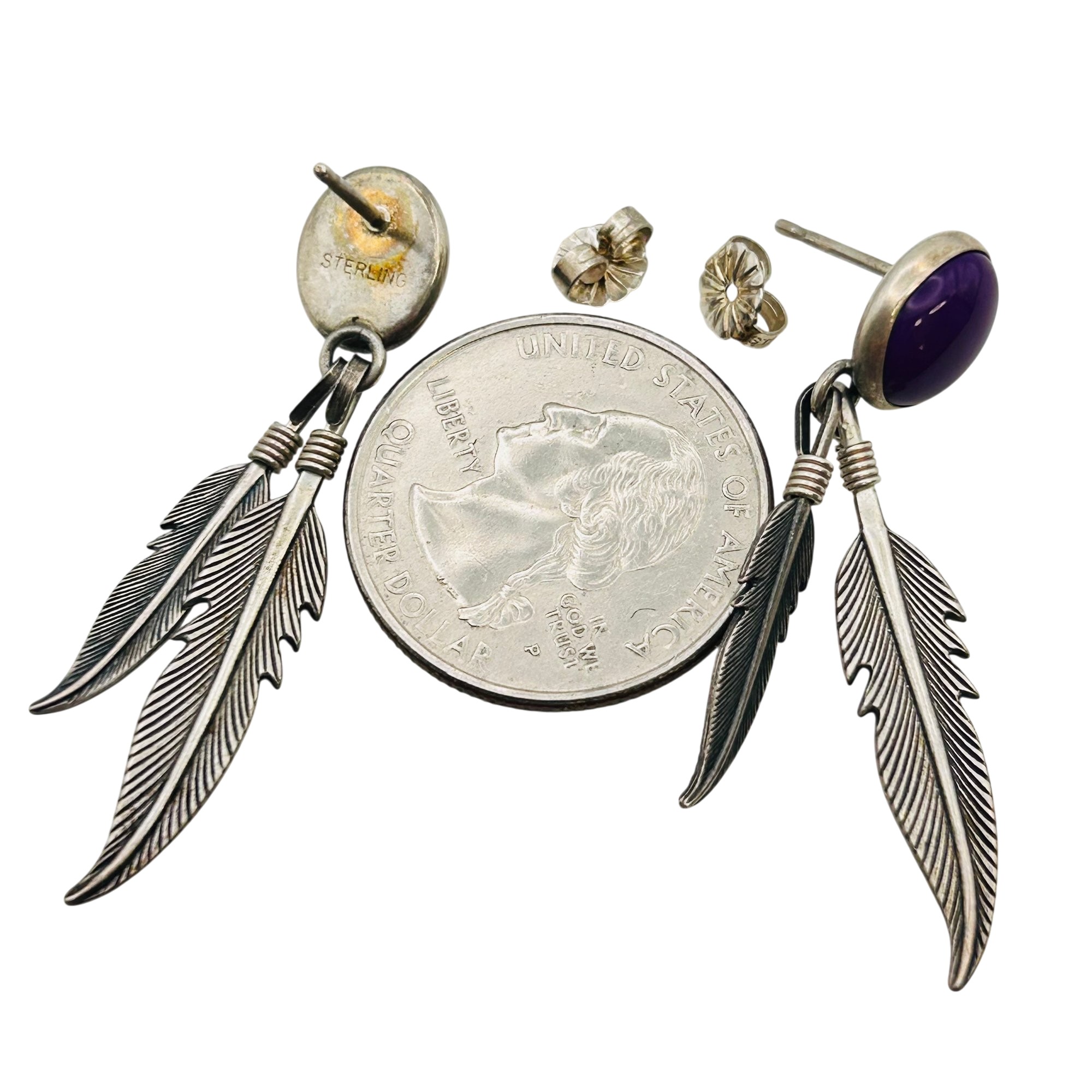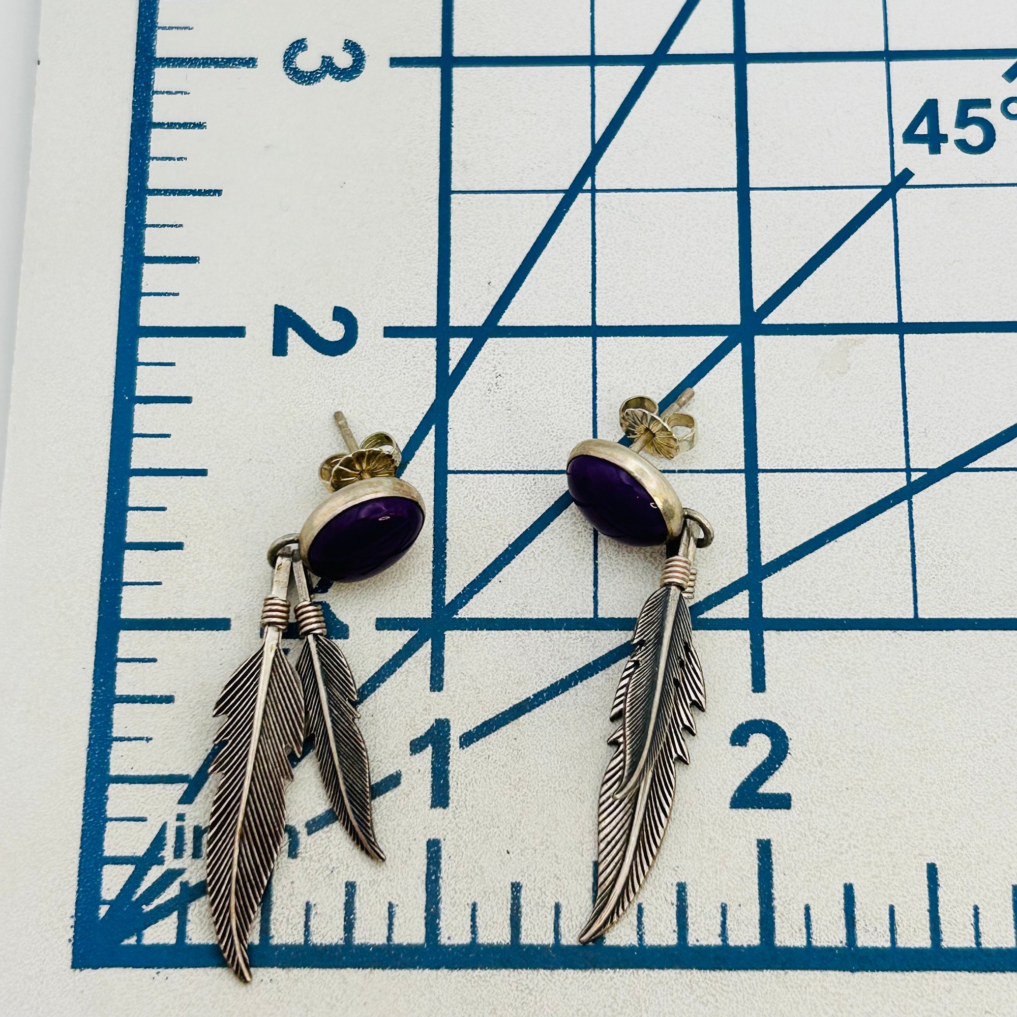 Navajo Sterling Purple Stone Feather Earrings 4.71 grams