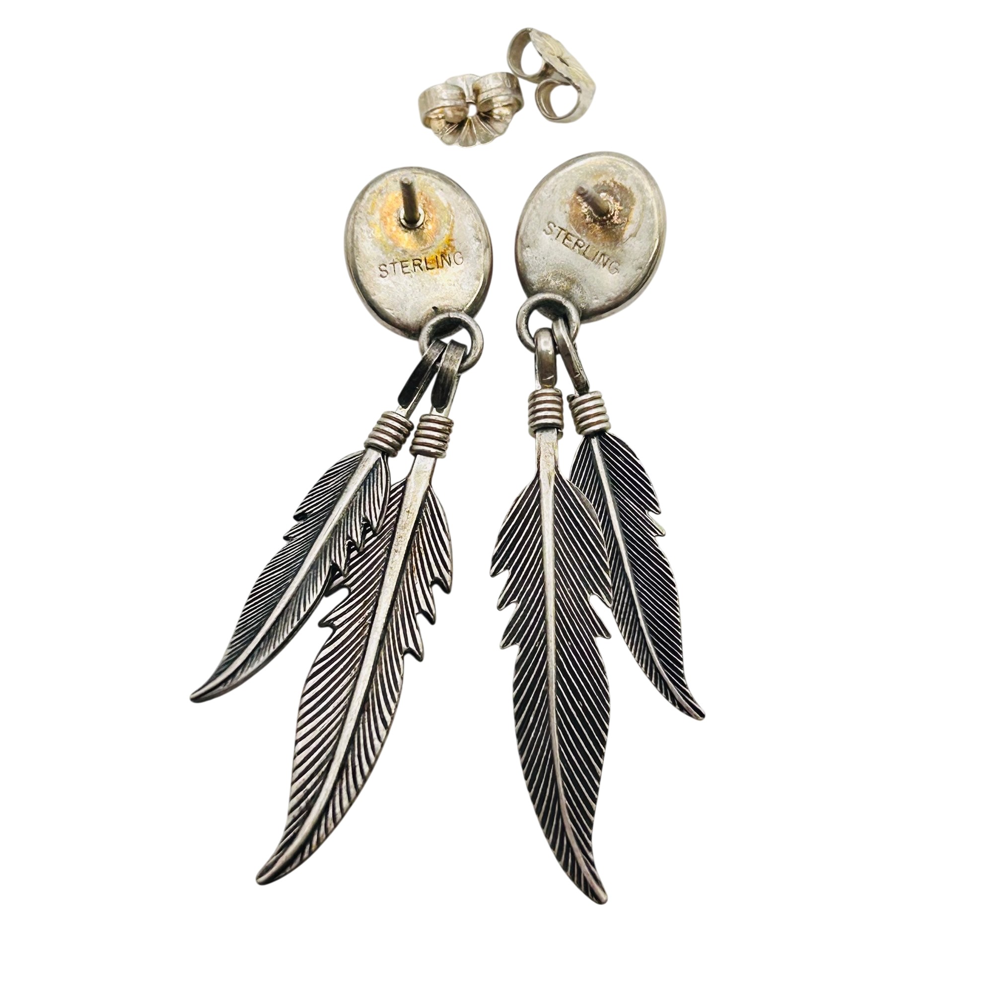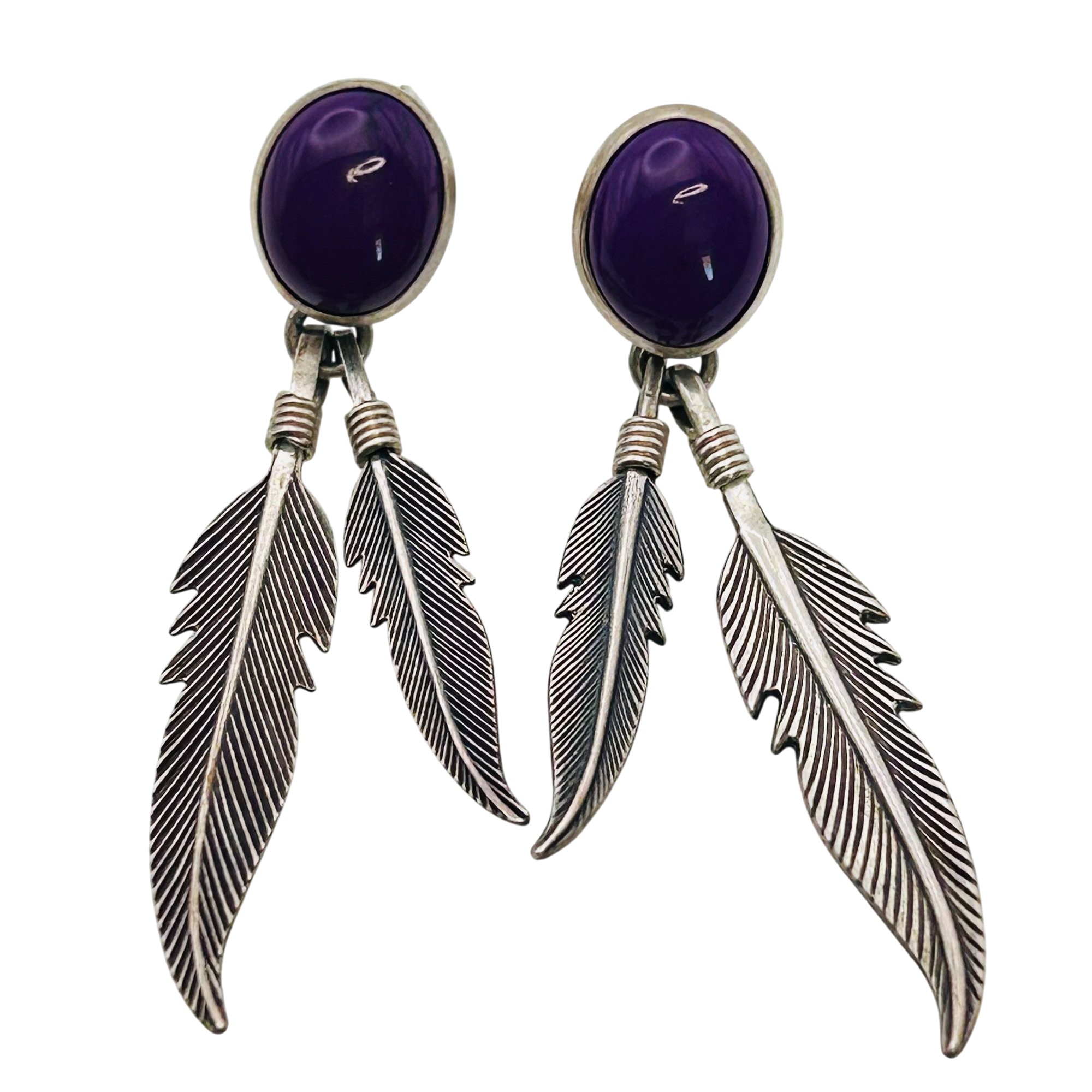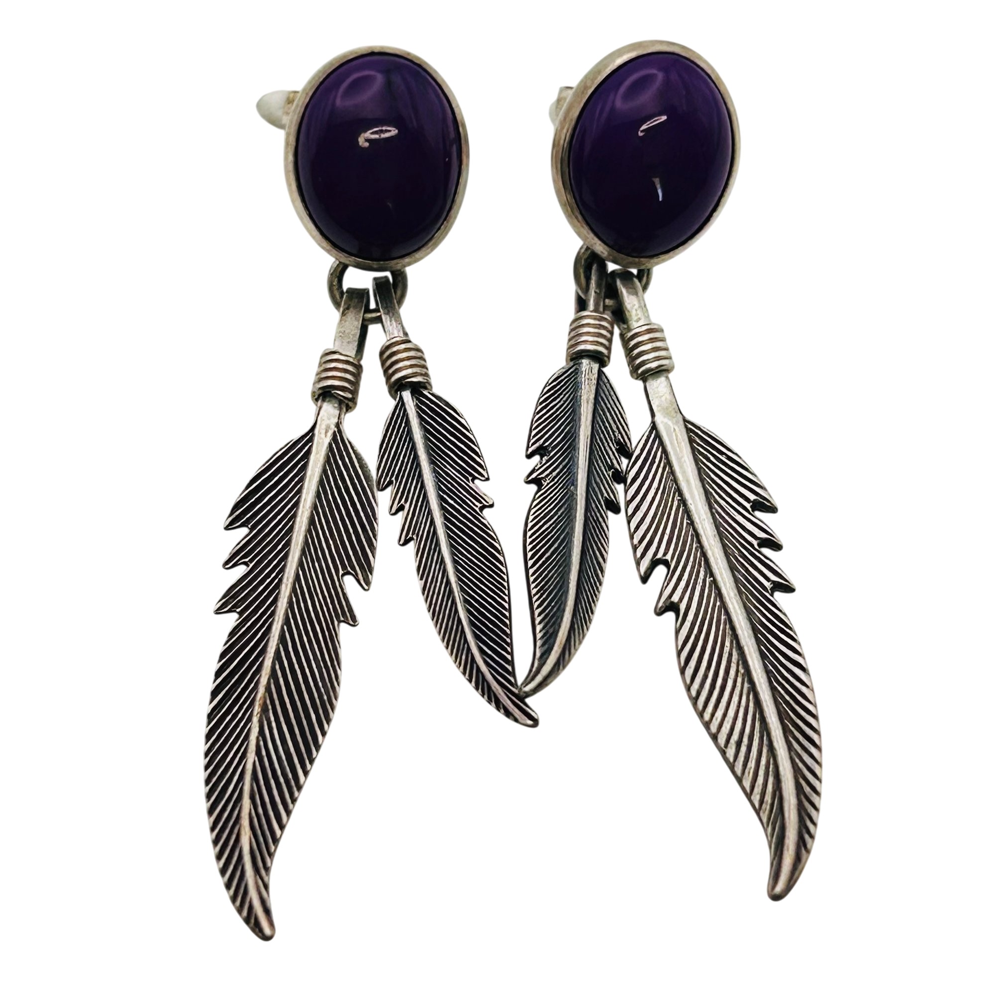 Navajo Sterling Purple Stone Feather Earrings 4.71 grams