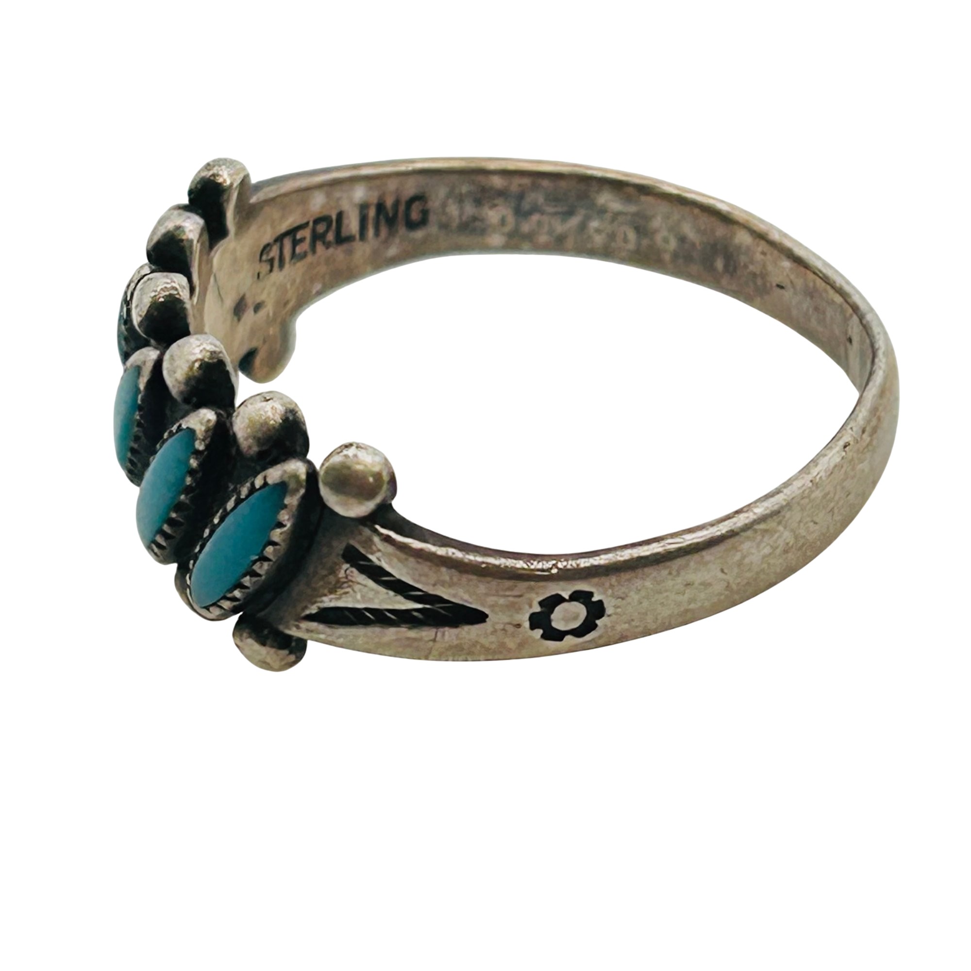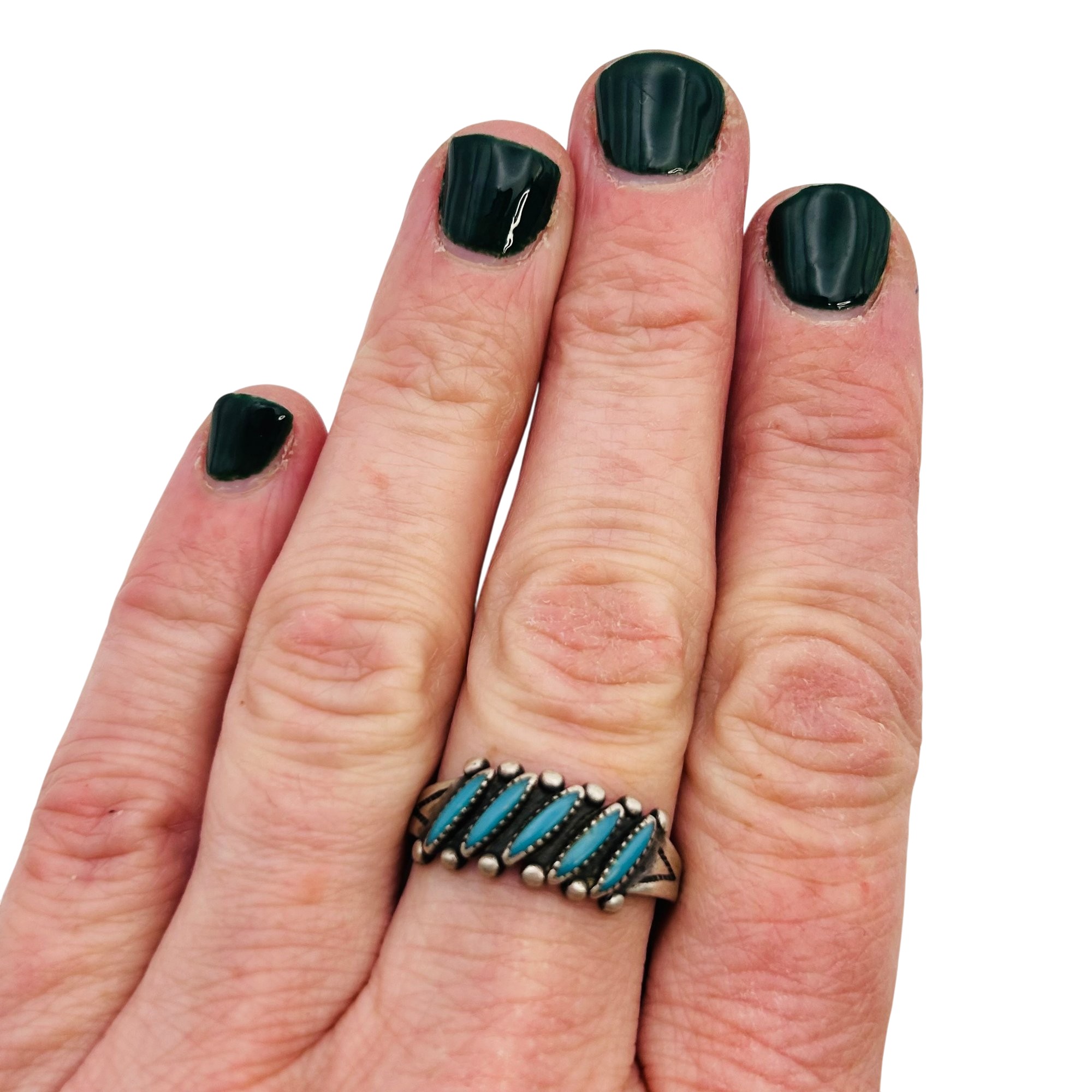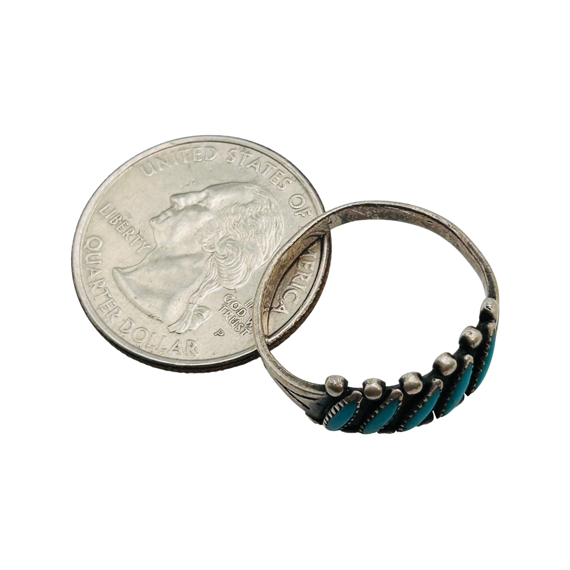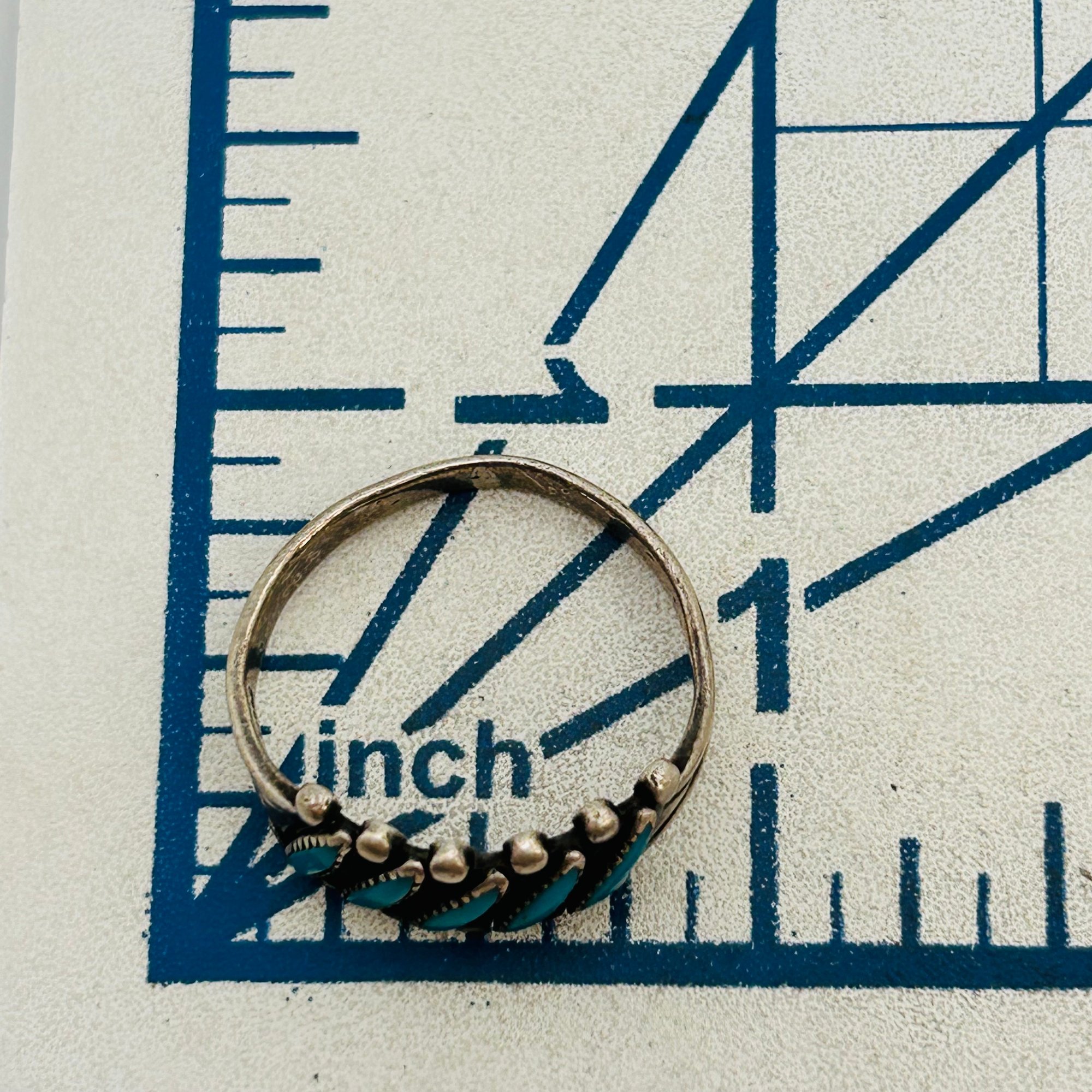 Vintage Zuni Needlepoint Turquoise Sterling Ring Size 8 3.09 grams