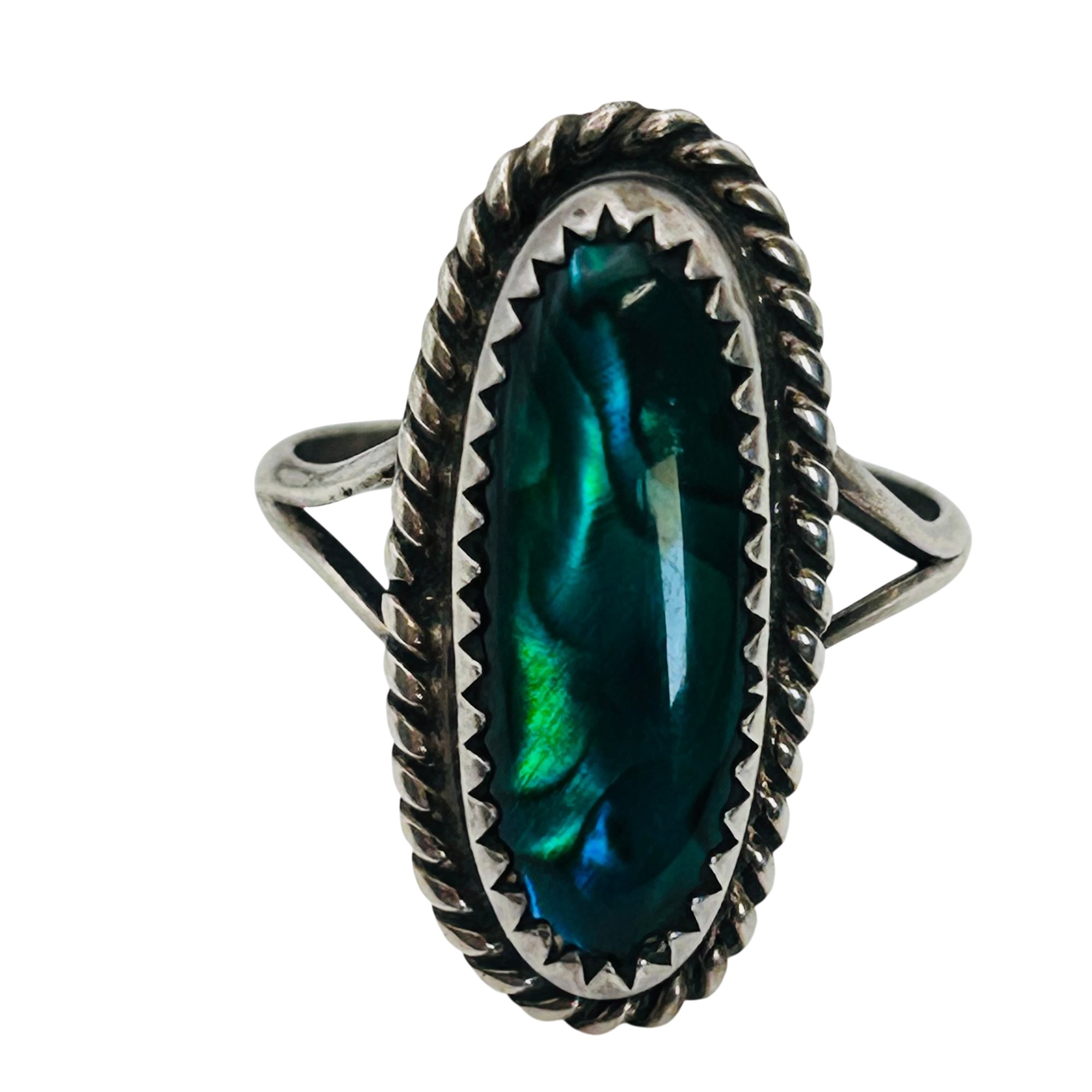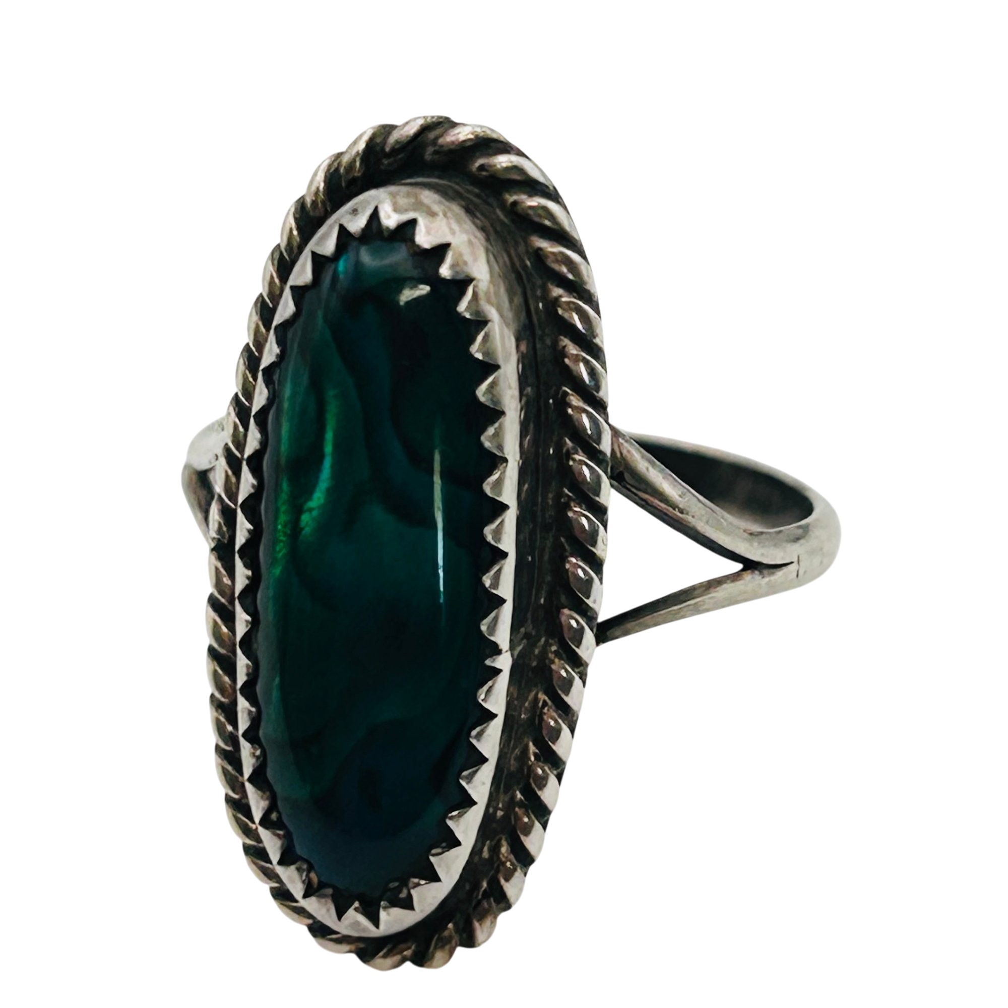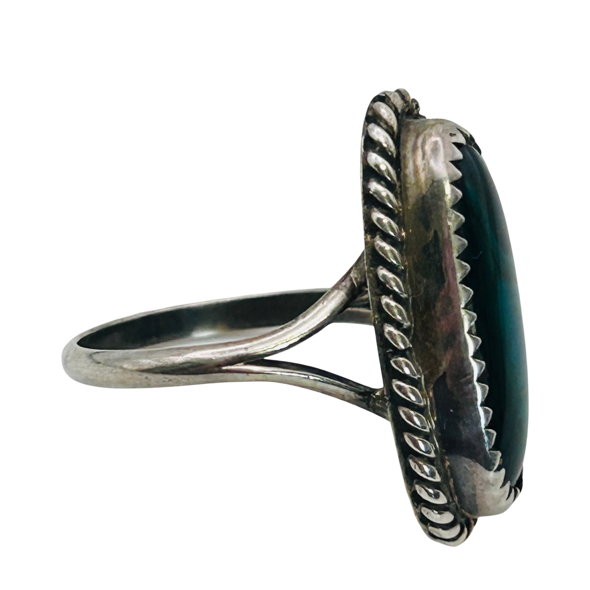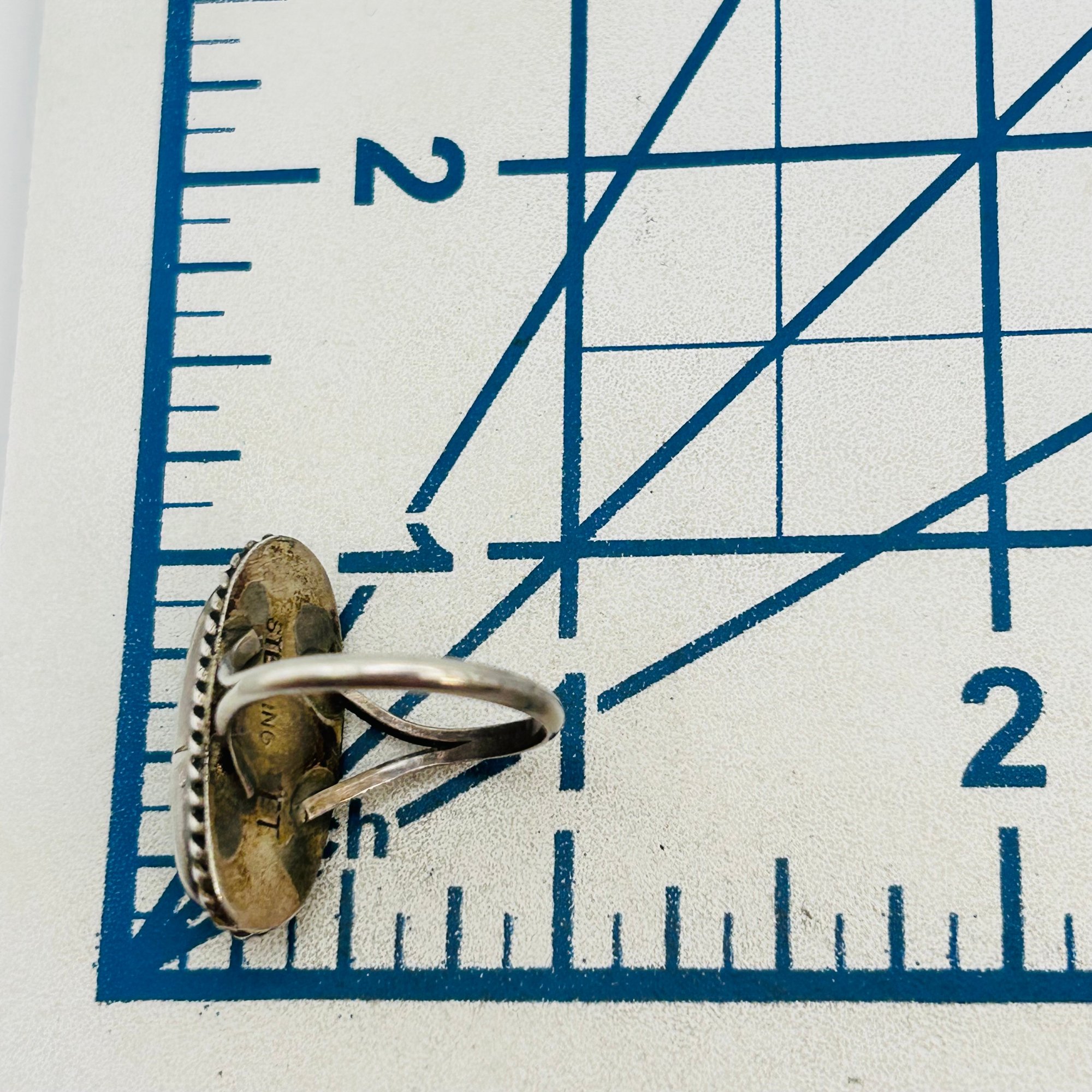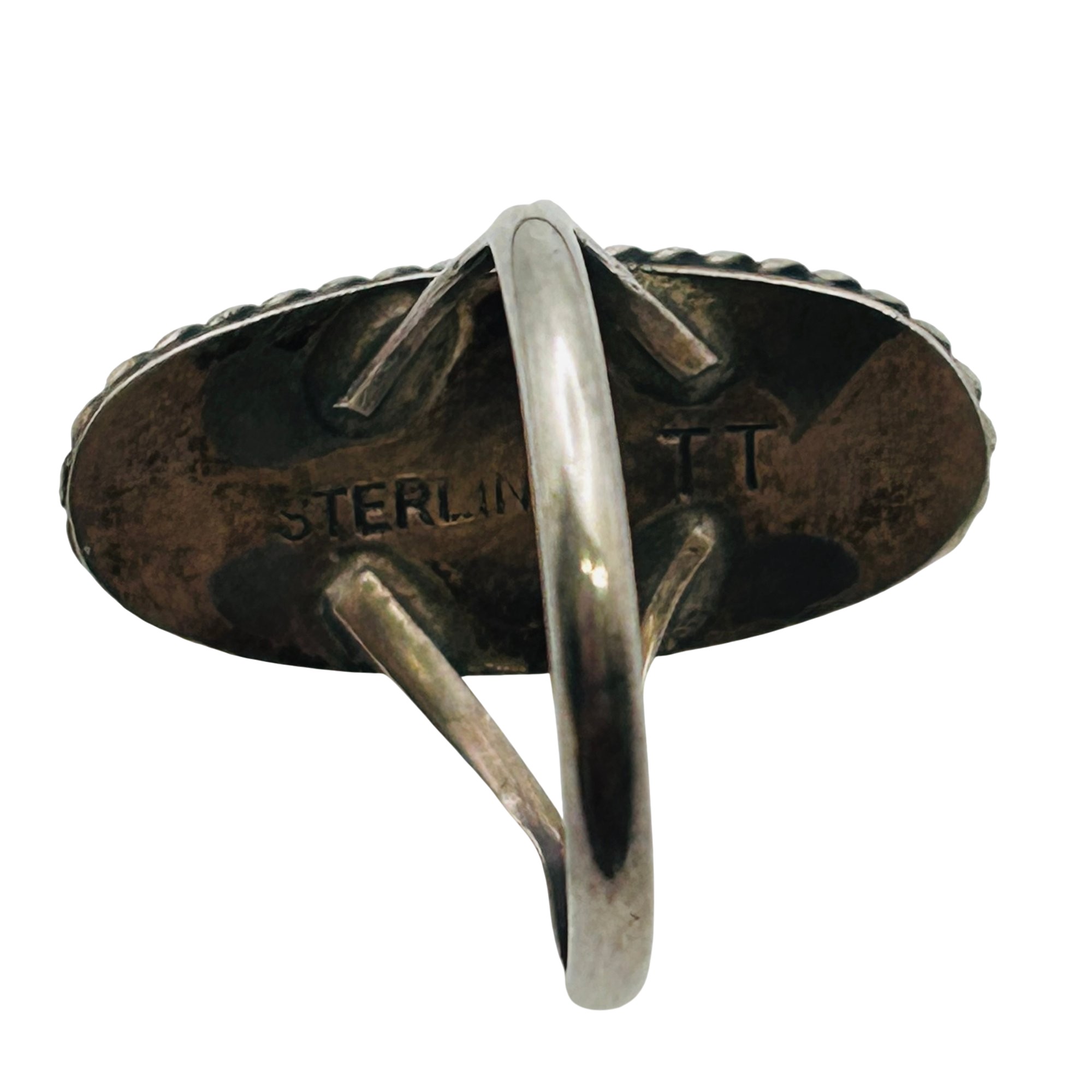 Navajo Signed T.T. Sterling Green Stone Oval Ring Size 7 3.45 grams