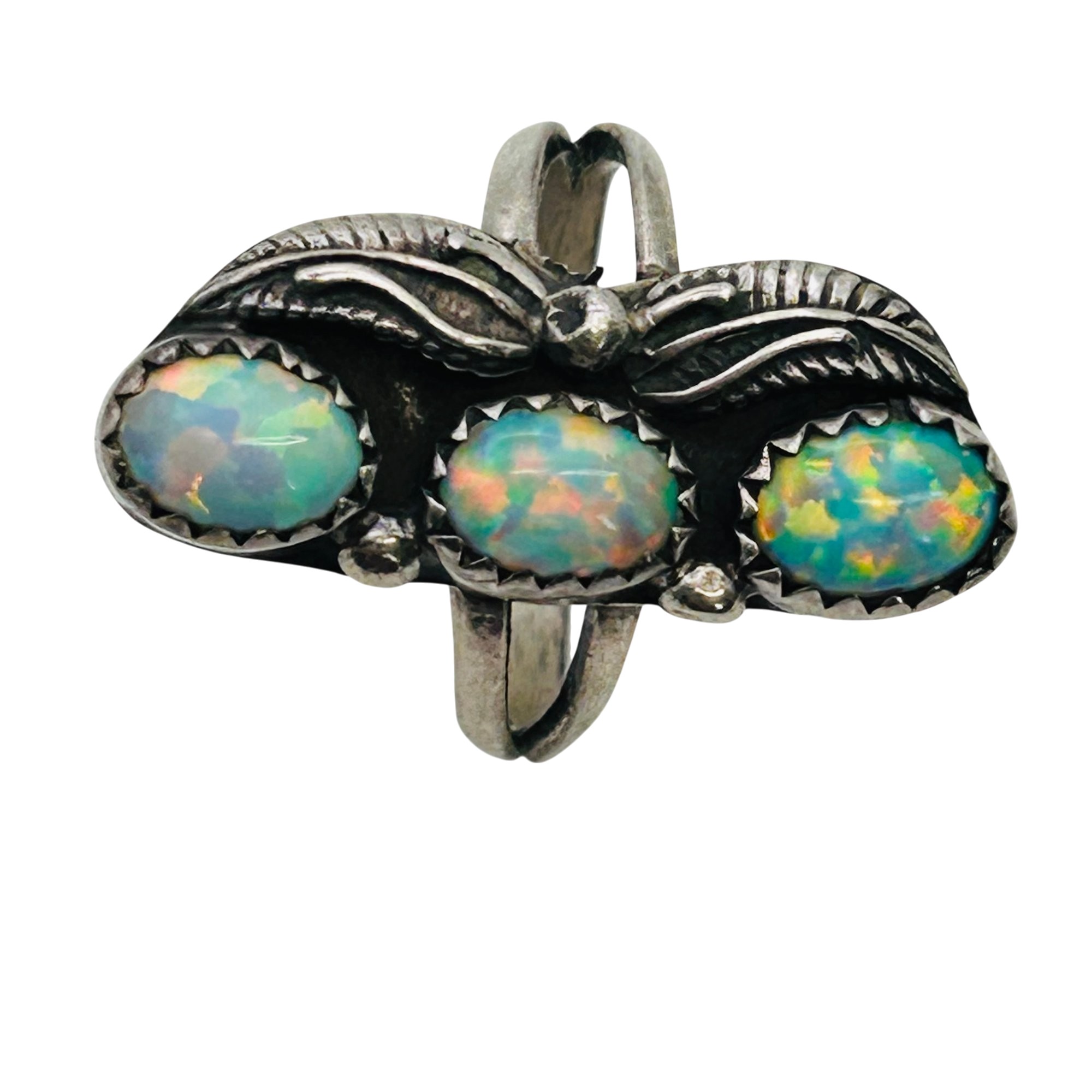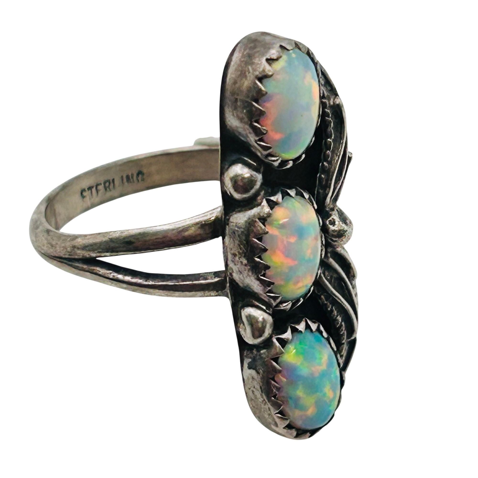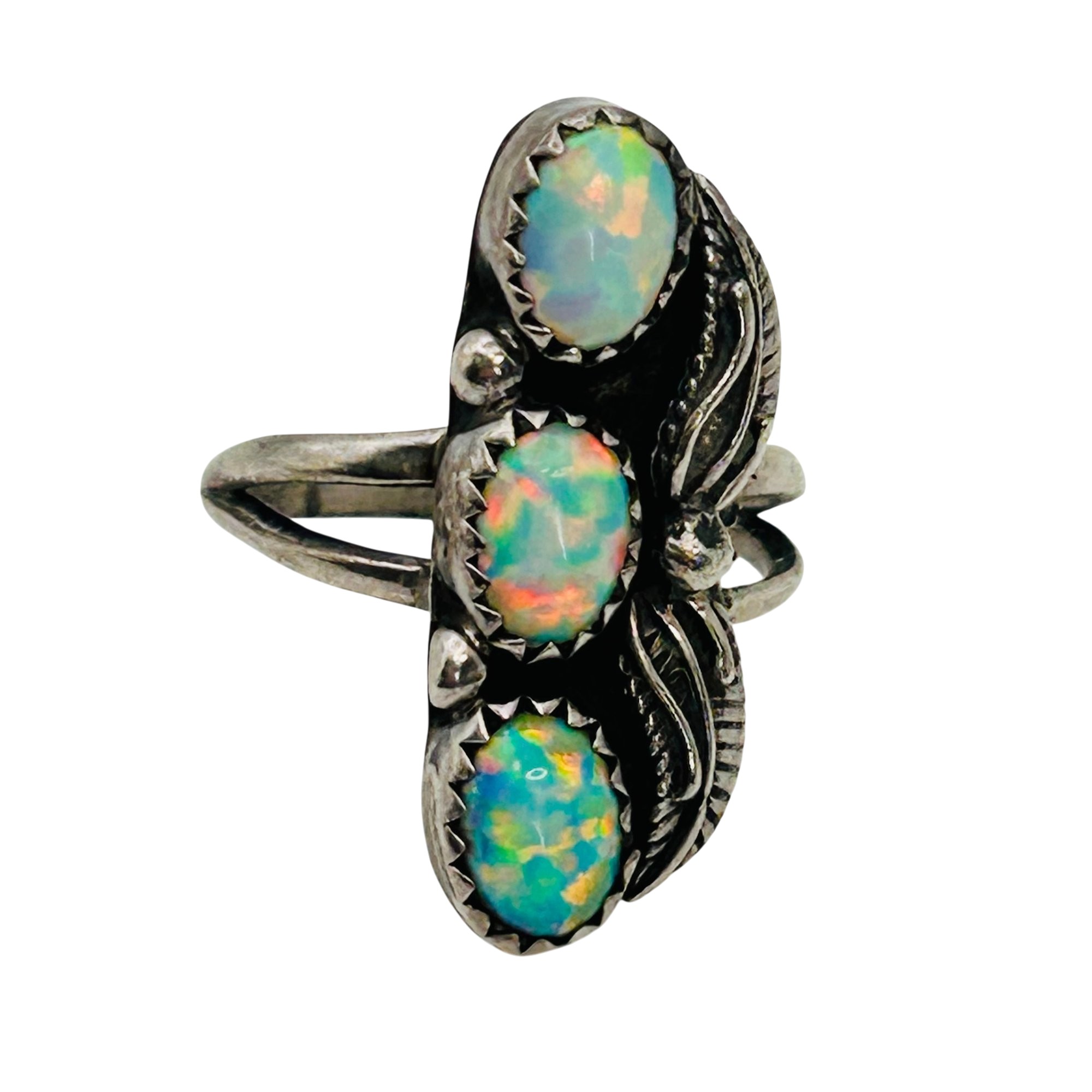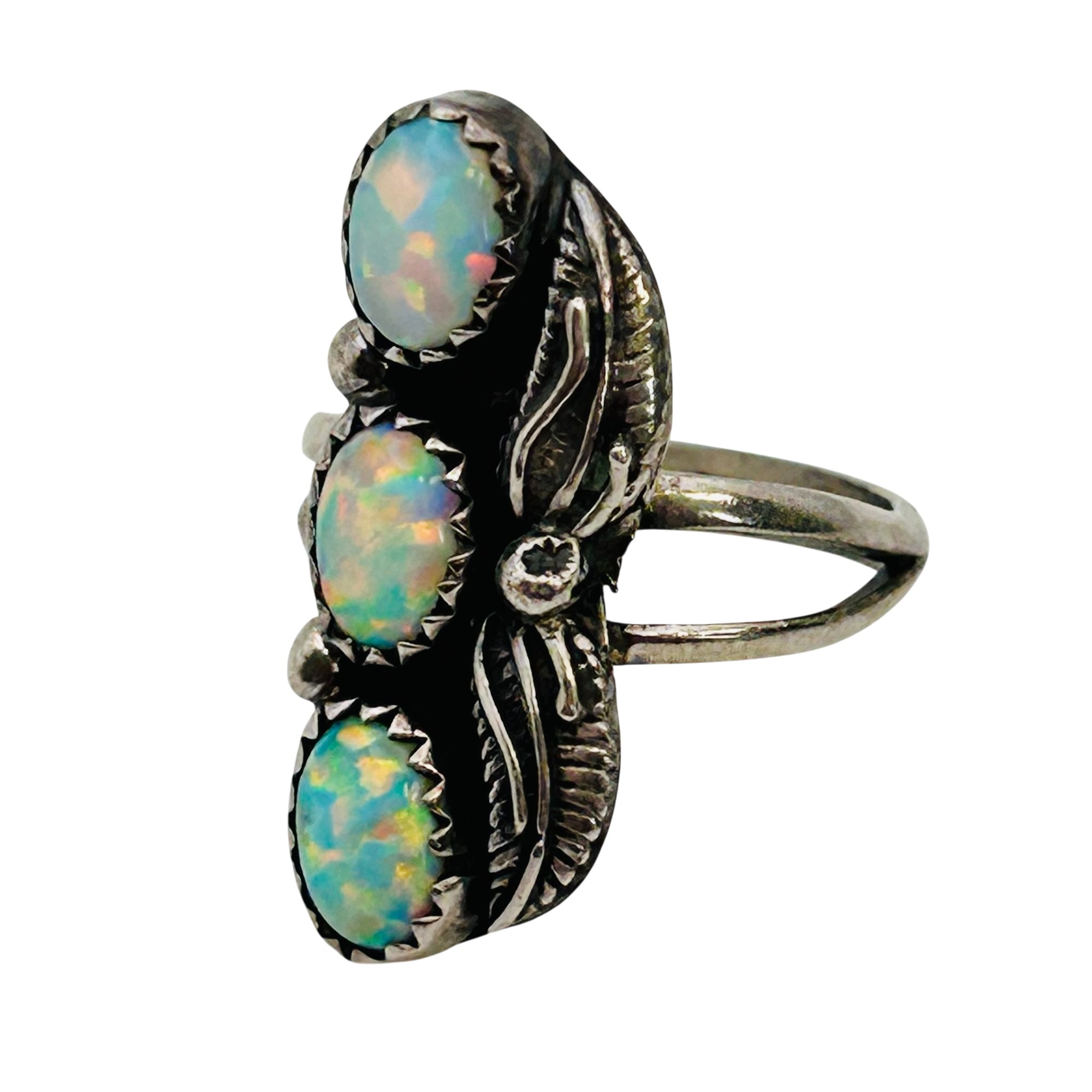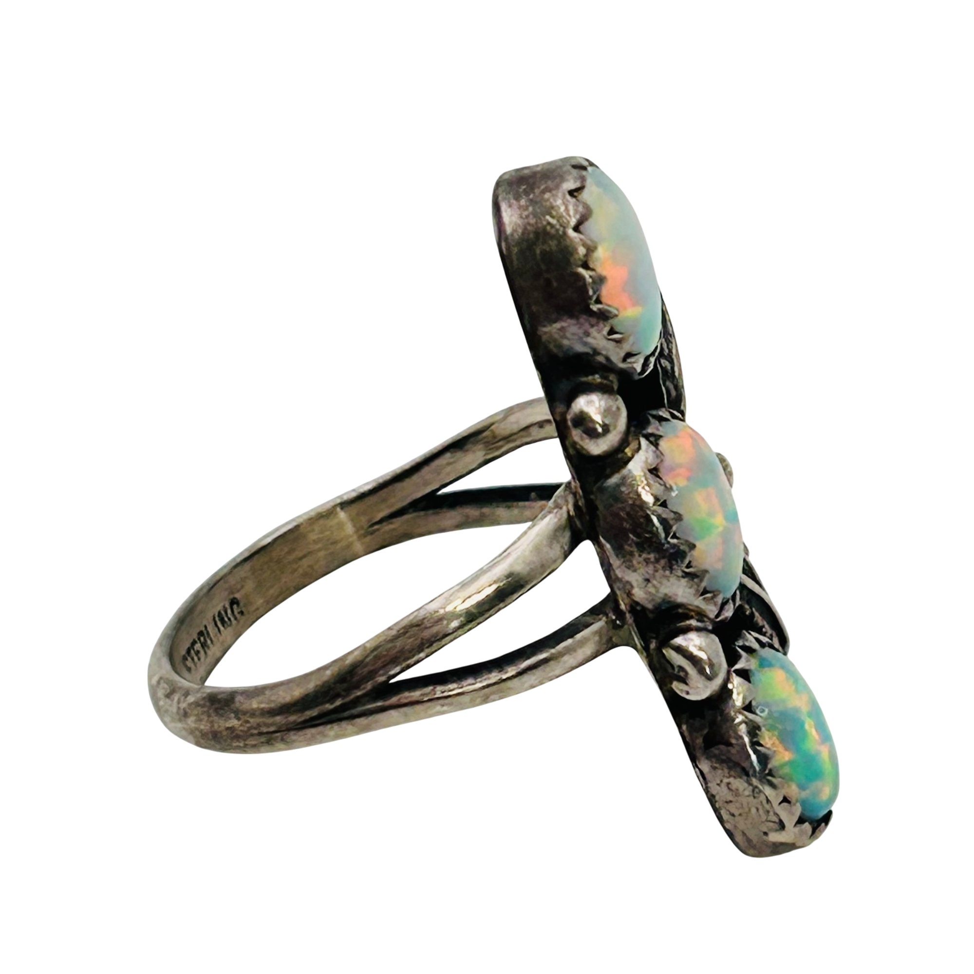 Vintage Navajo Sterling Opal Three Stone Ring Sz 6 3.8 grams