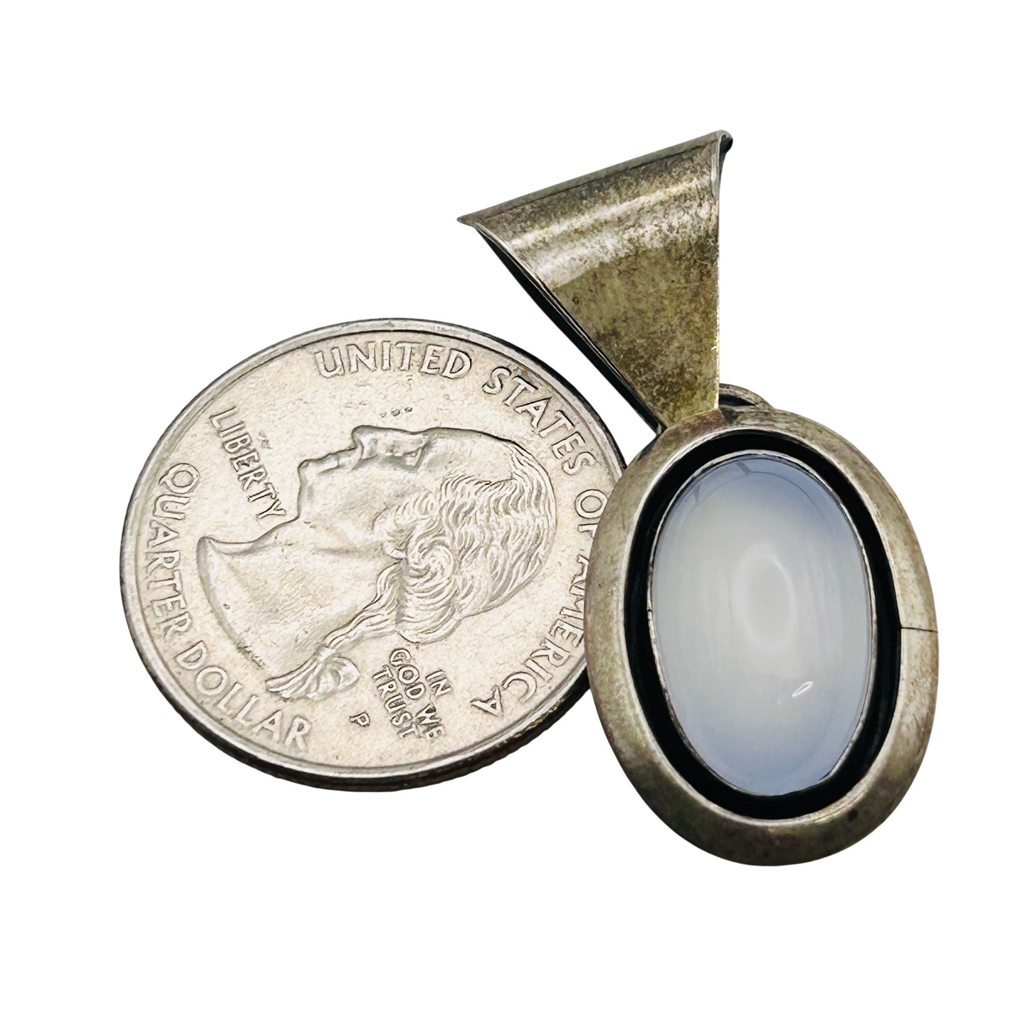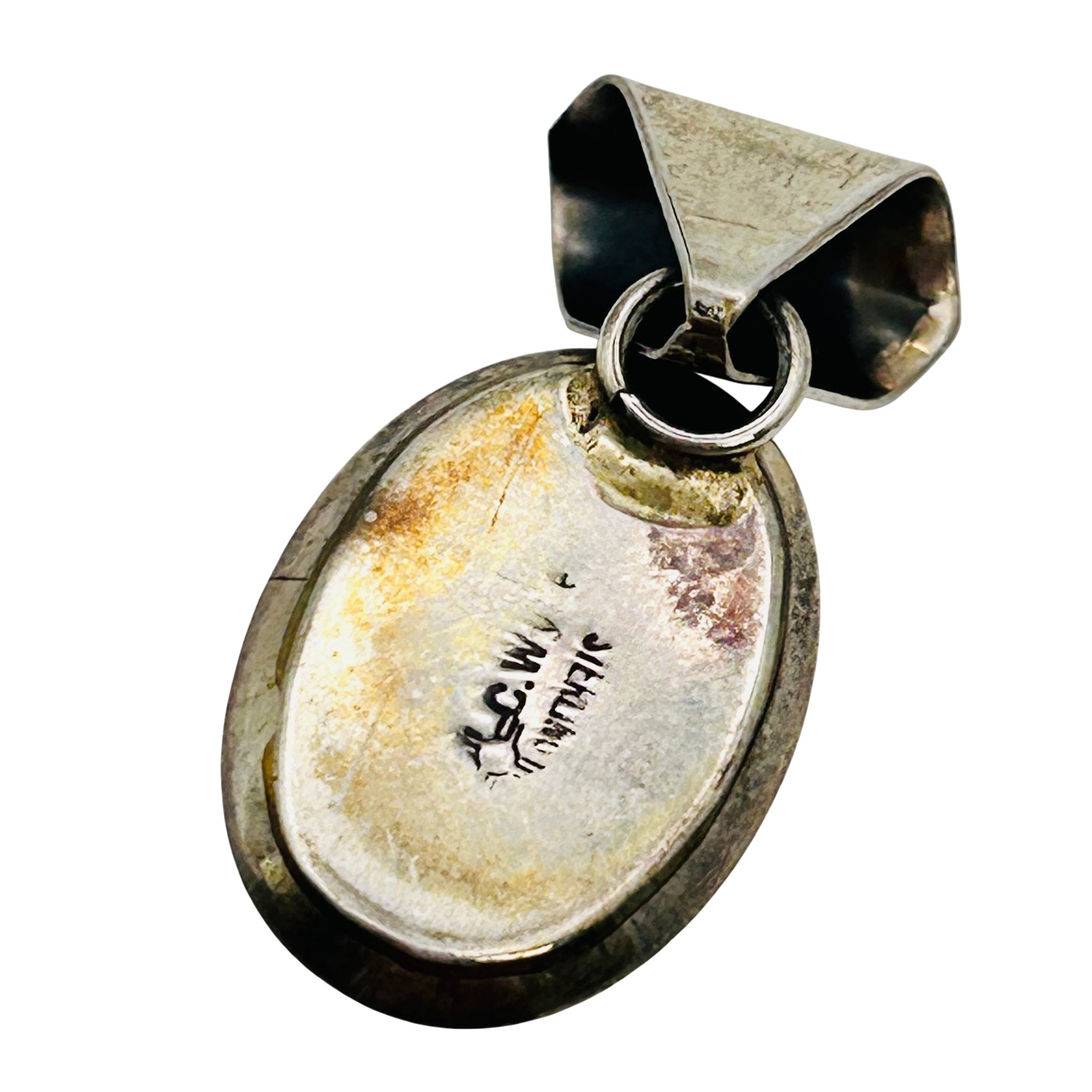 Navajo signed CW sterling Oval shadow box moonstone pendant 5.39 grams