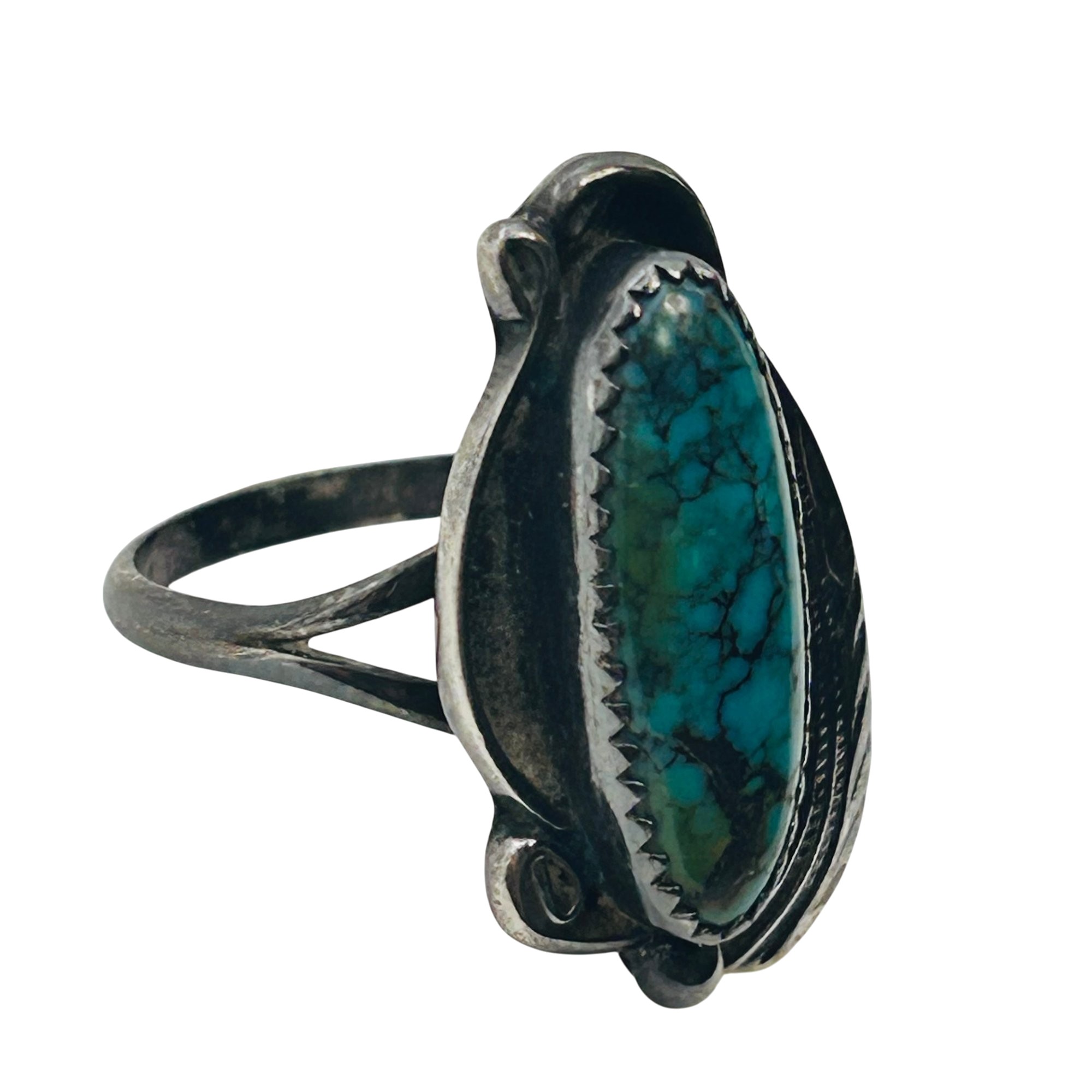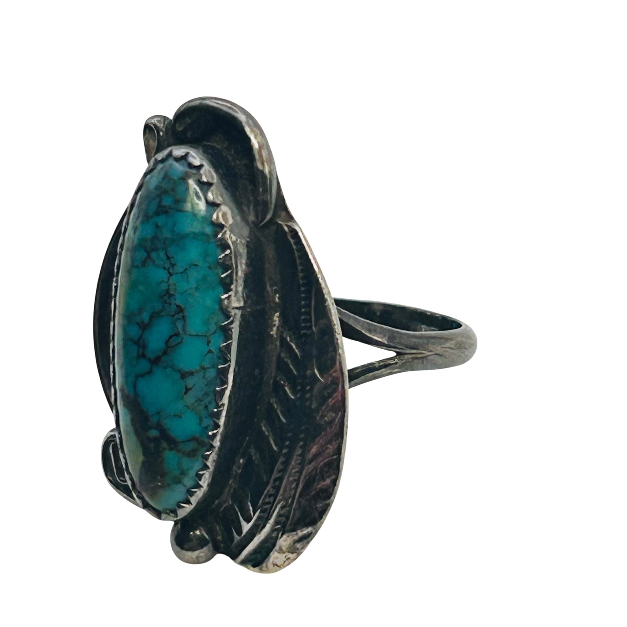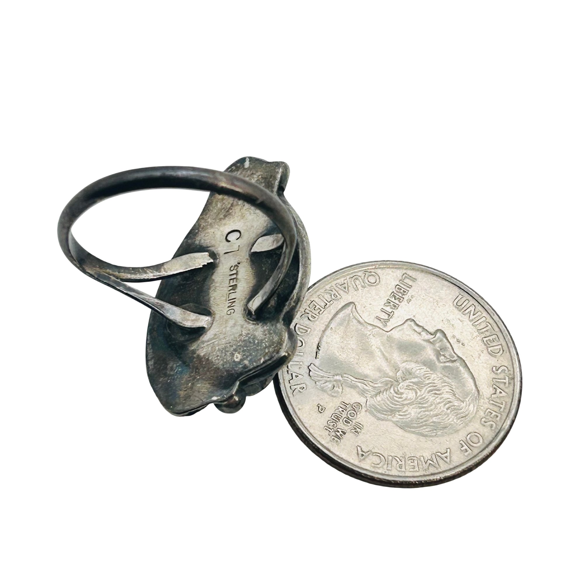 Vintage Navajo Signed CT Turquoise Oval Ring Size 9 5.43 grams