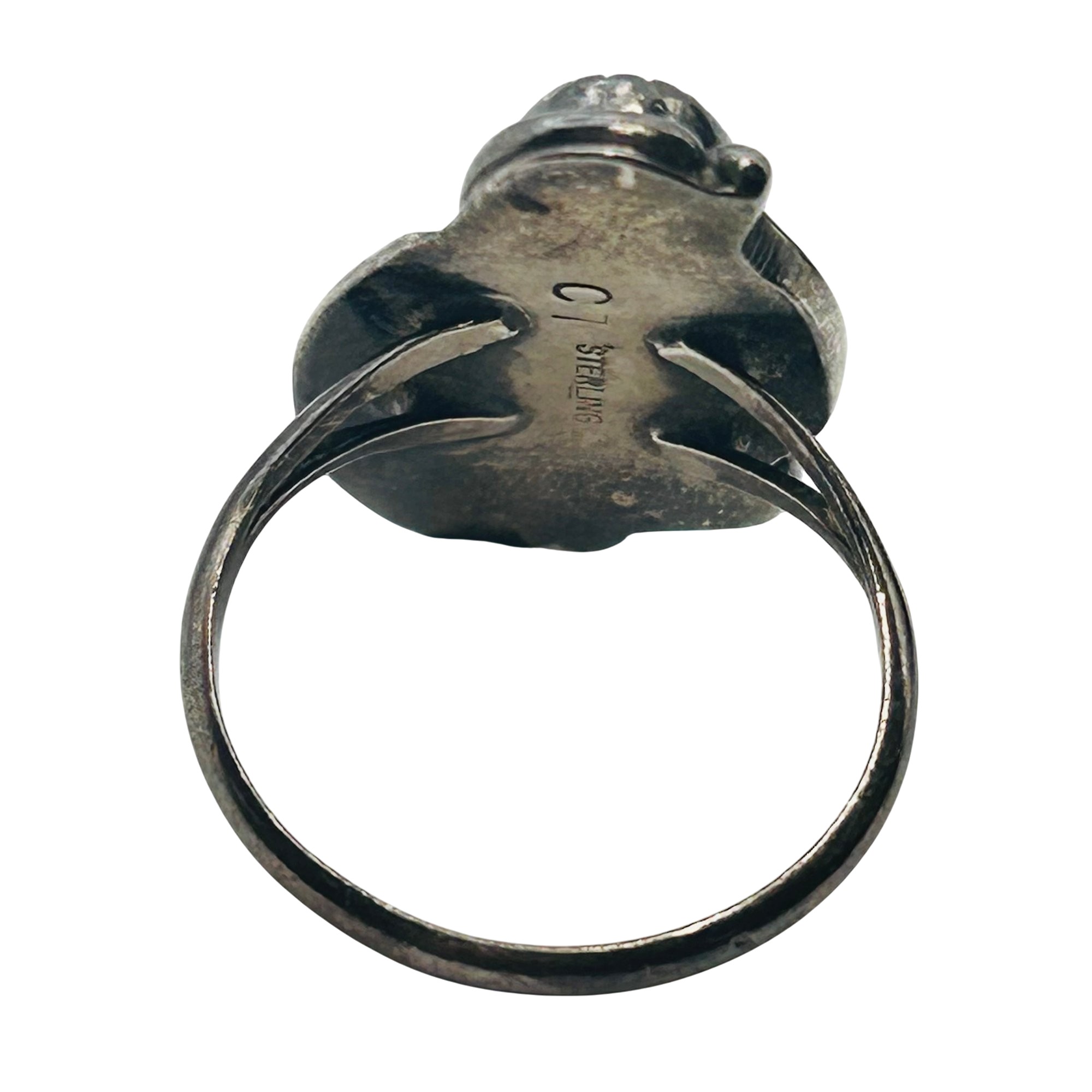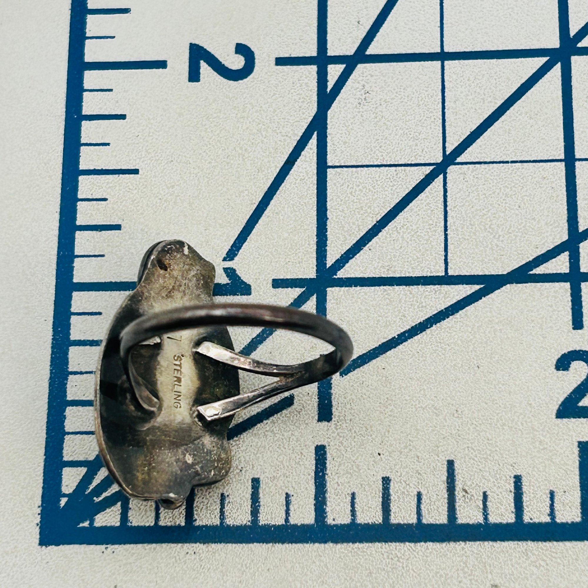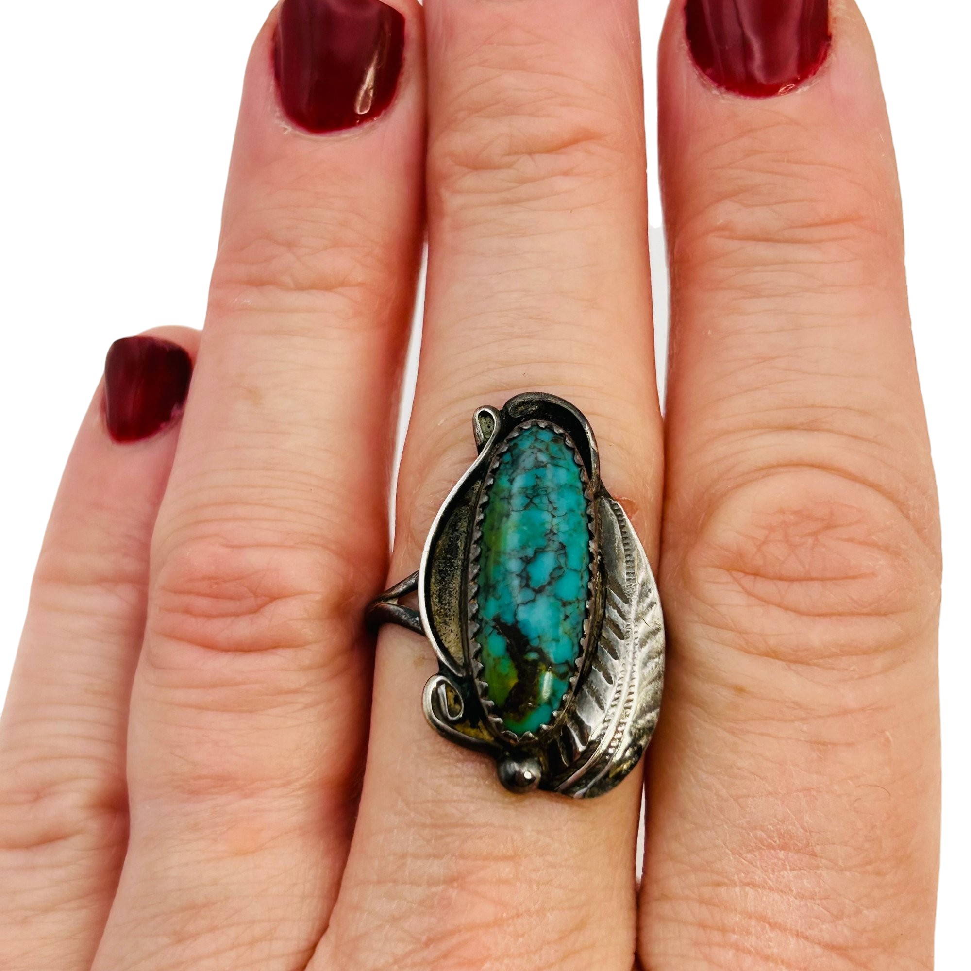 Vintage Navajo Signed CT Turquoise Oval Ring Size 9 5.43 grams