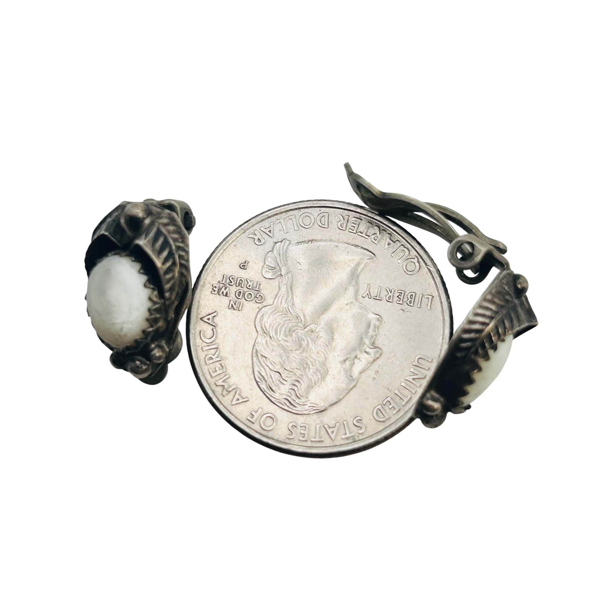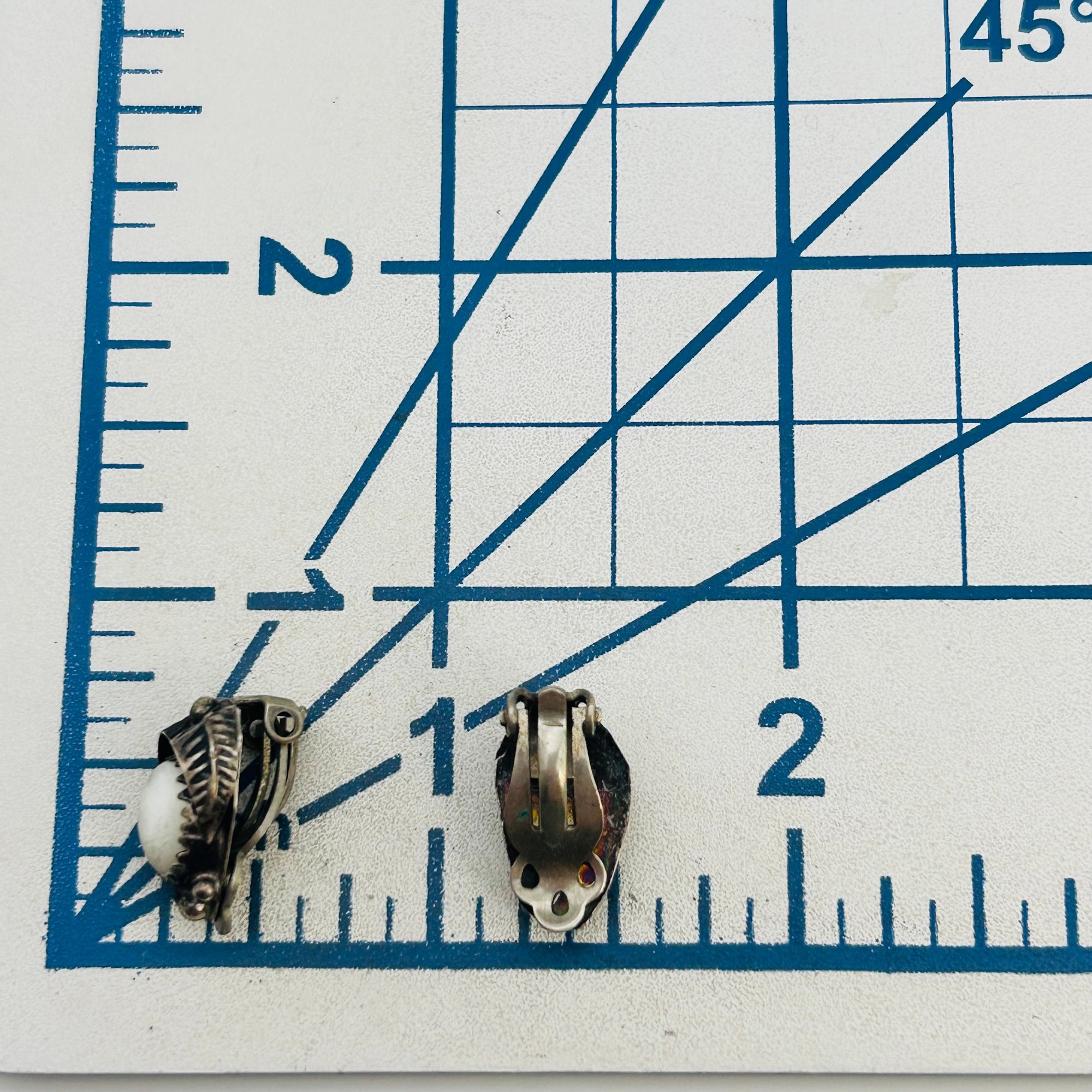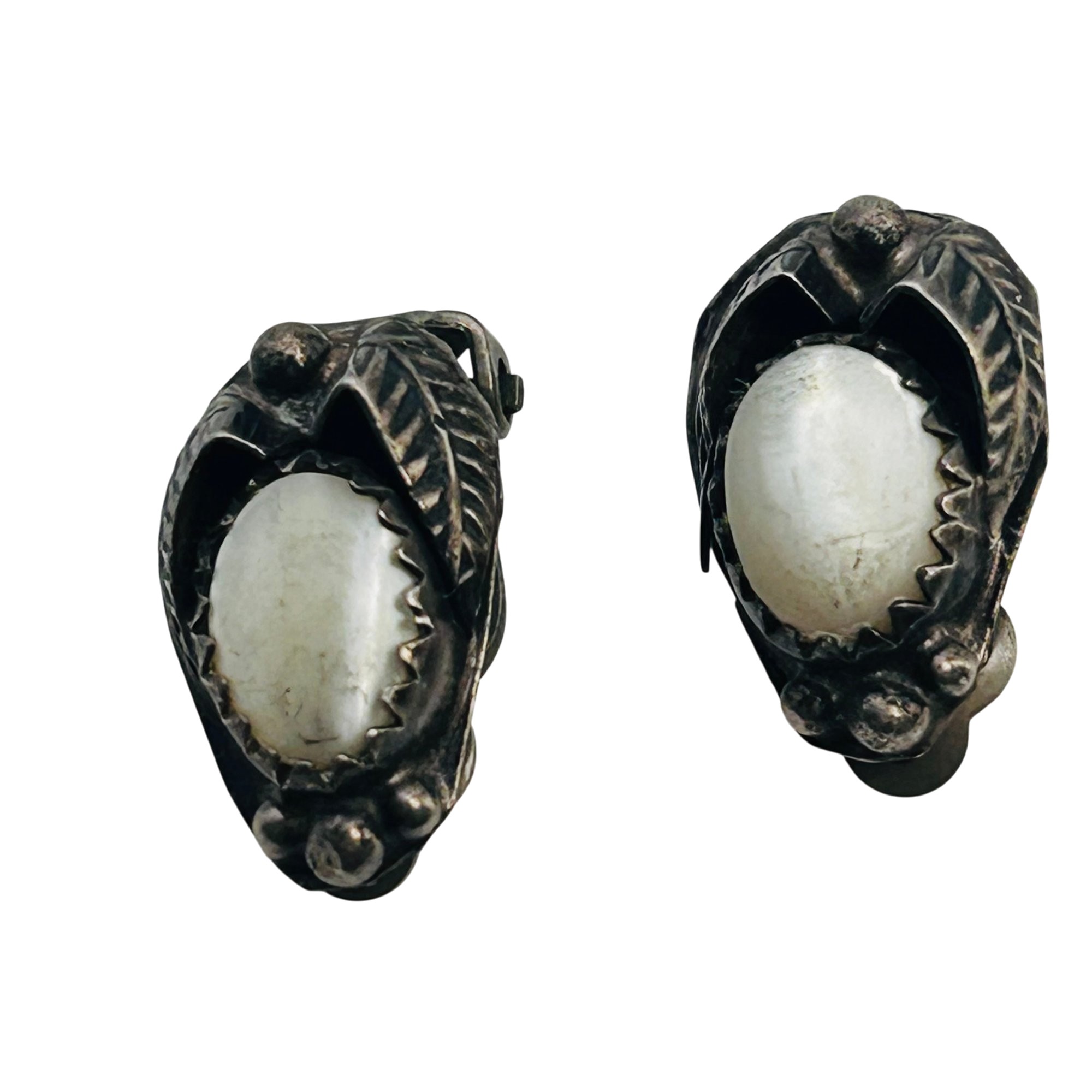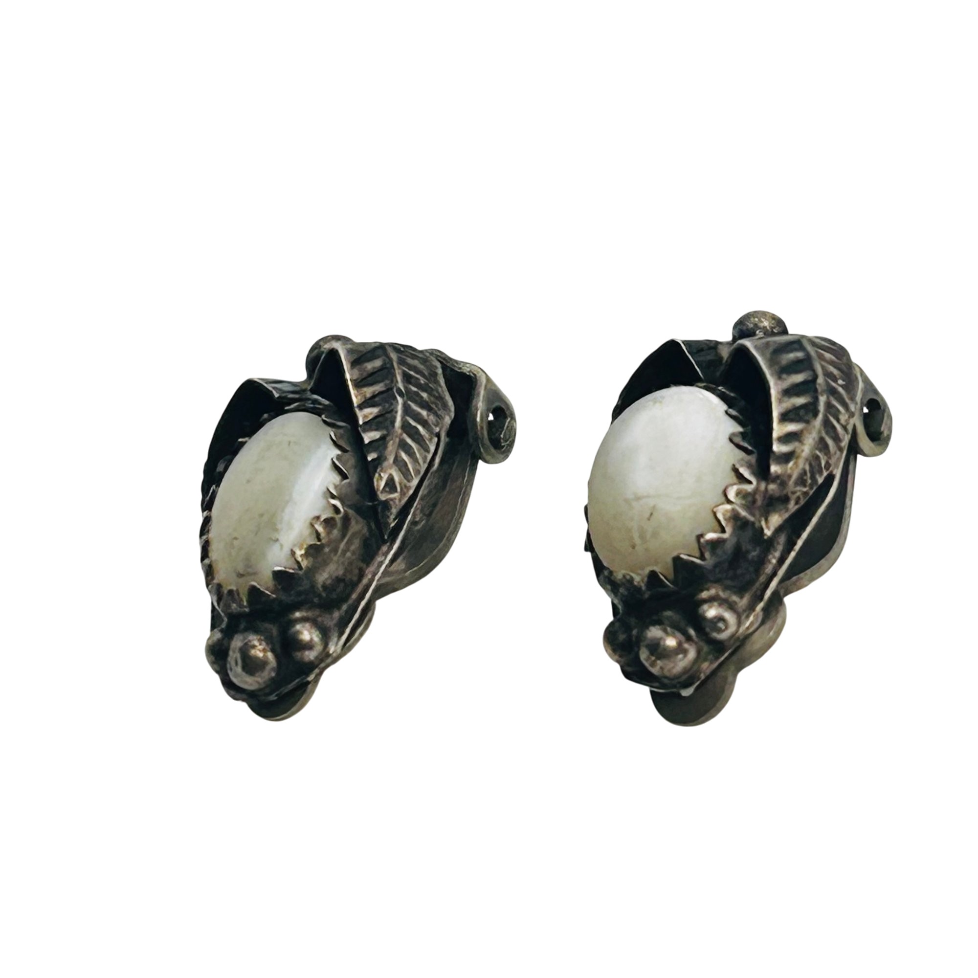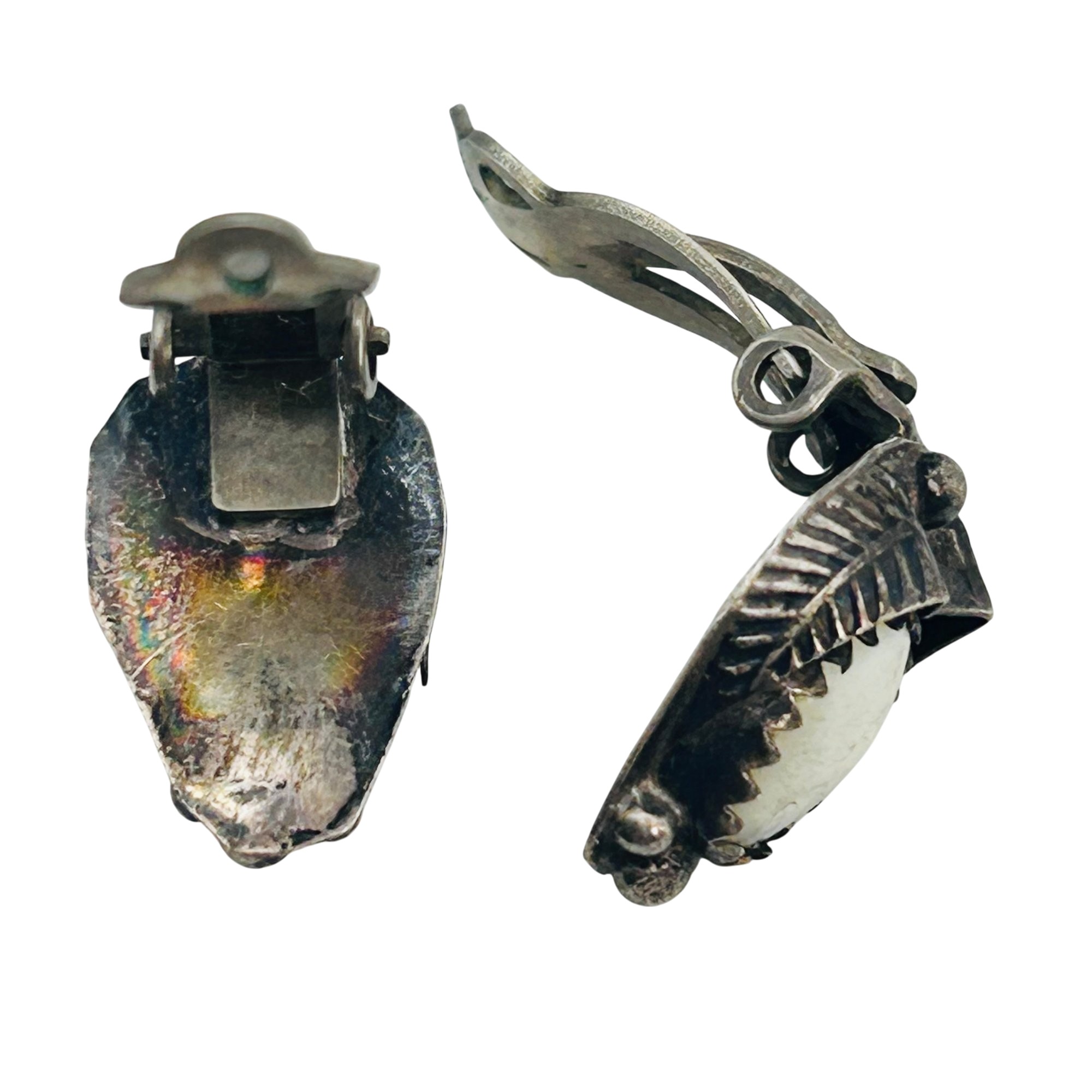 Vintage Navajo Mother Of Pearl Sterling Clip On Earrings 3.78 grams