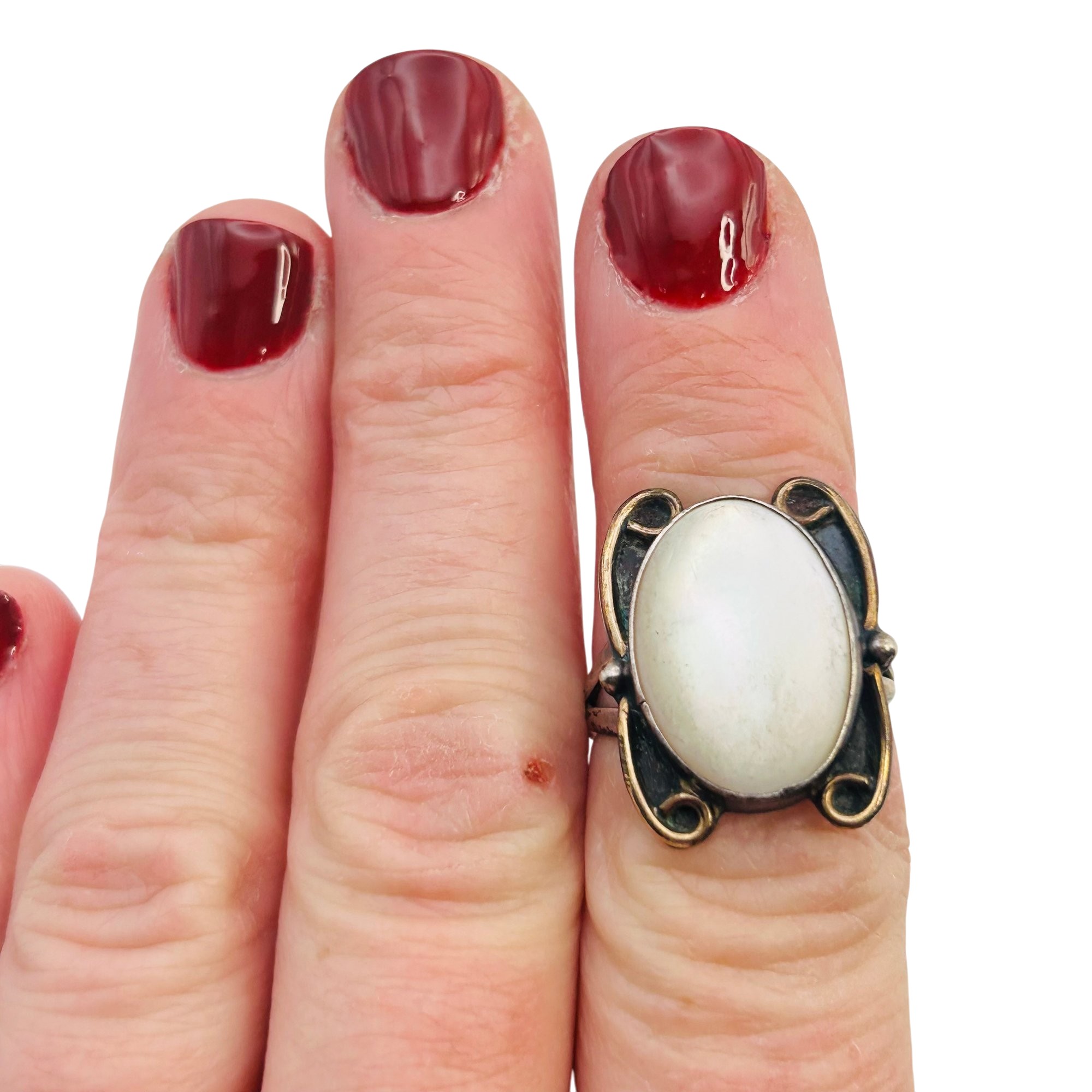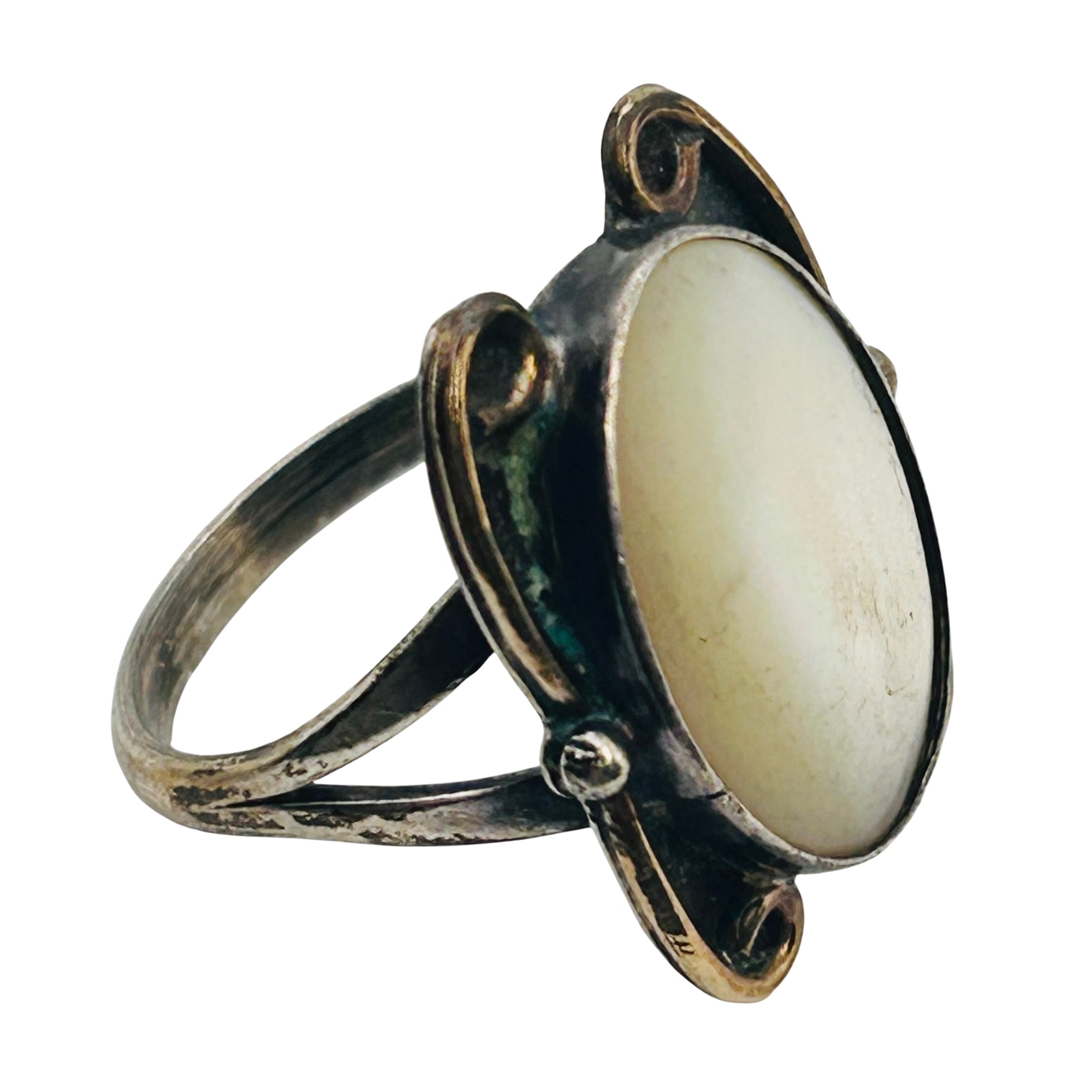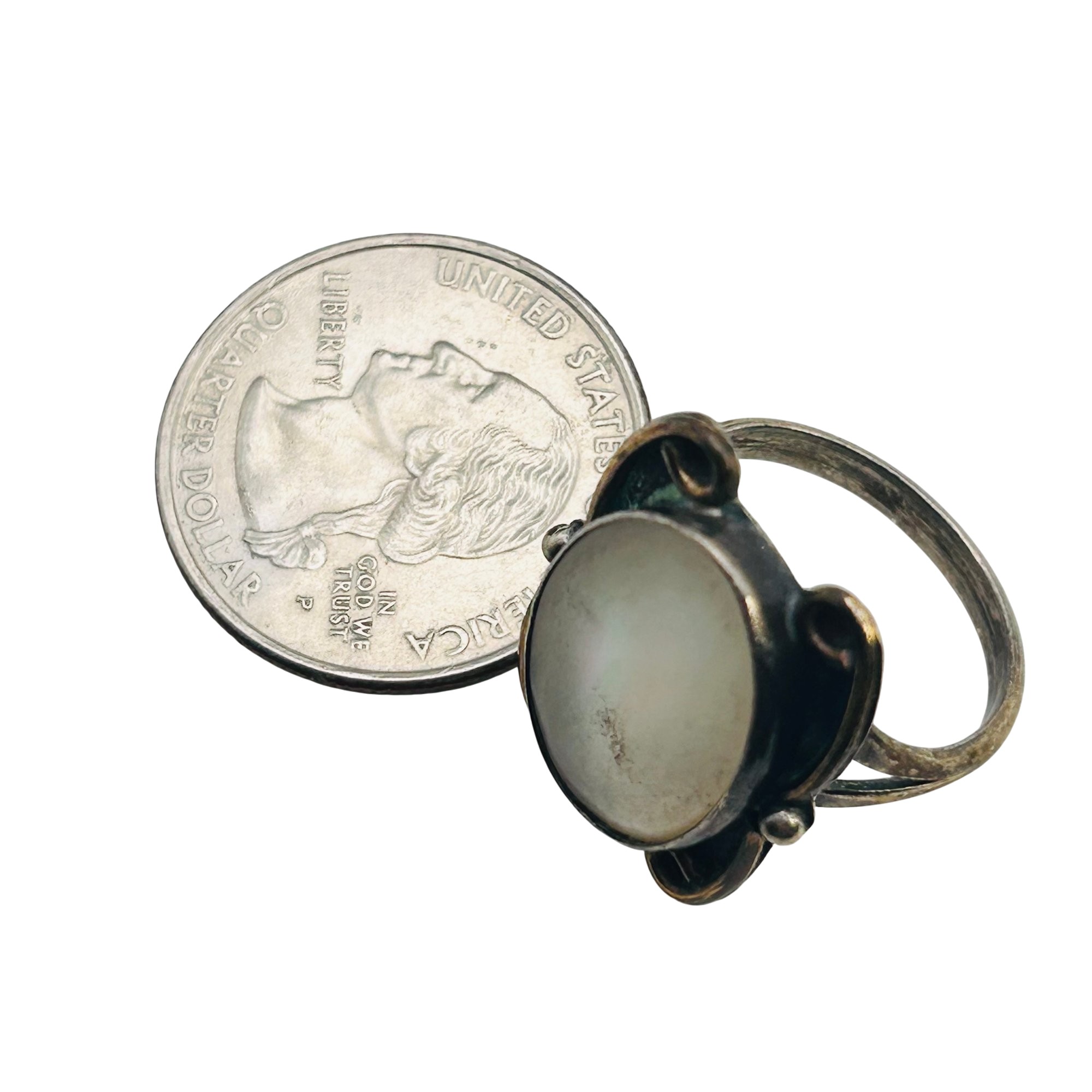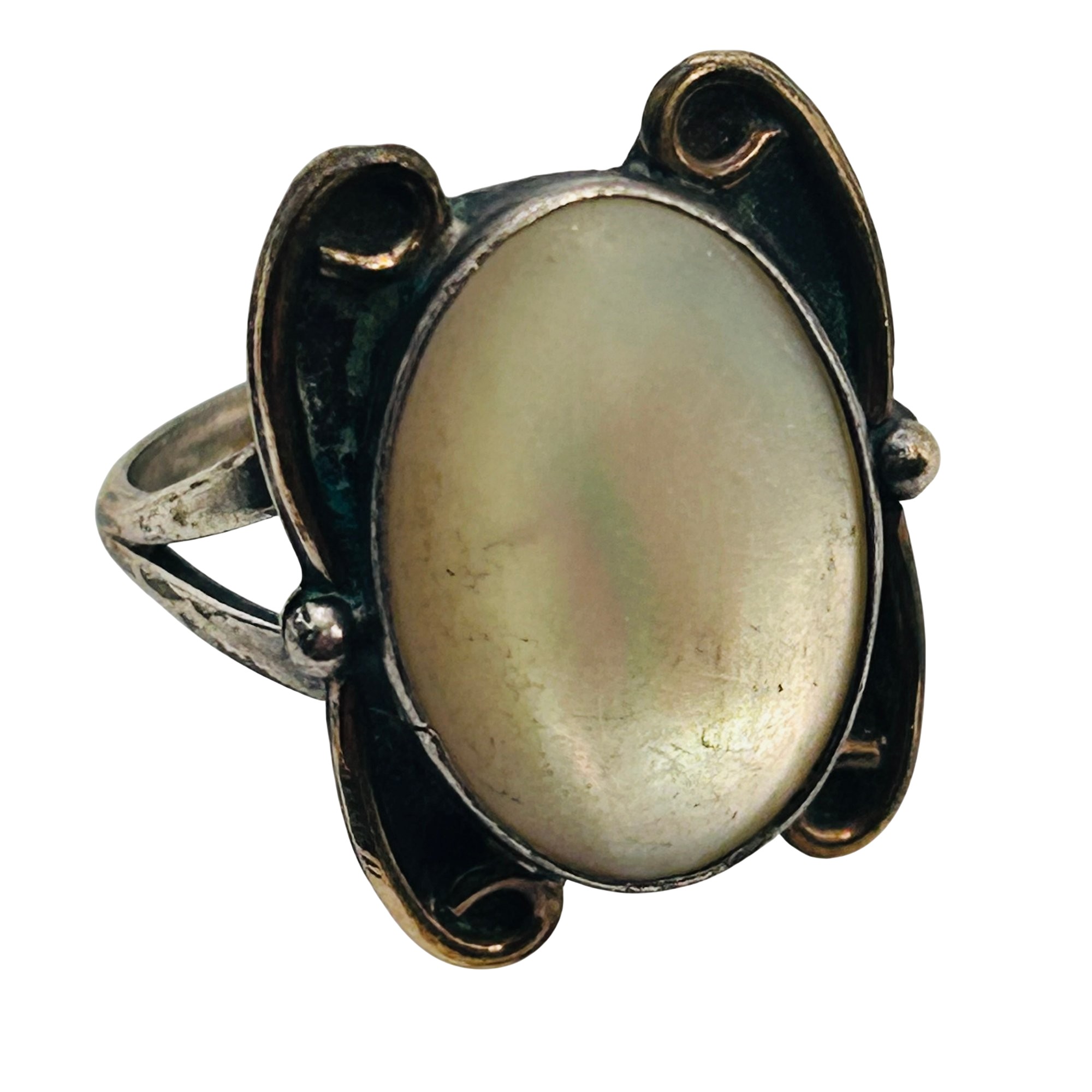 Native Mother of Pearl Sterling round ring size 7 4.42 g