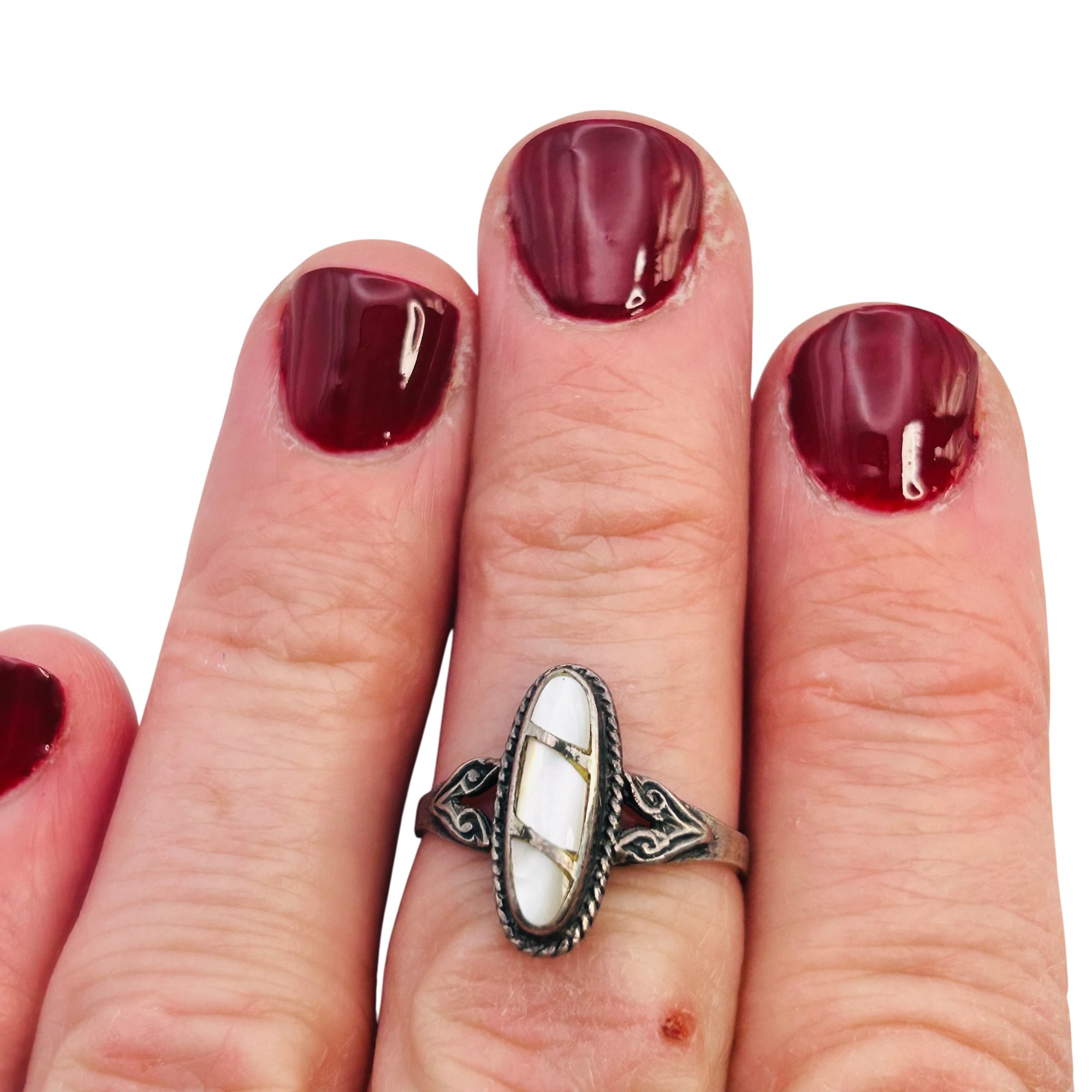 Southwest mother of Pearl Sterling oval ring size 7 2.08 g