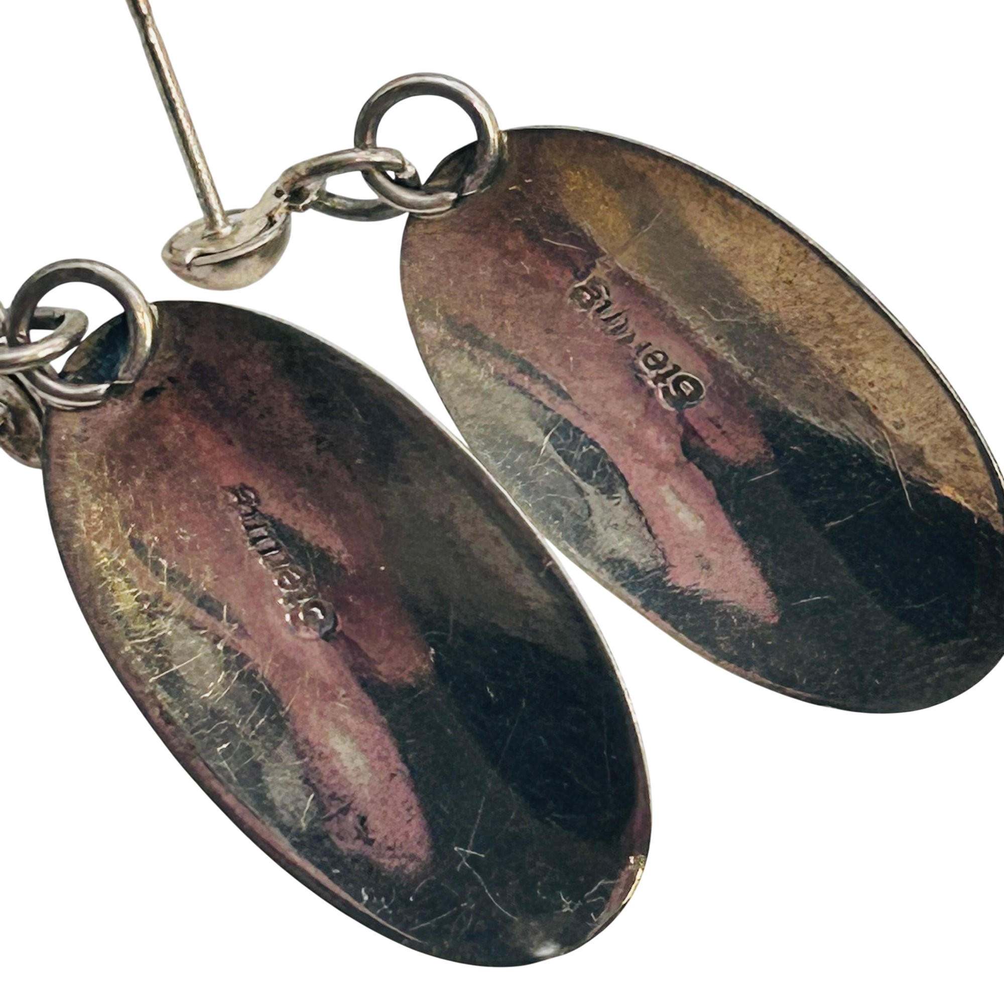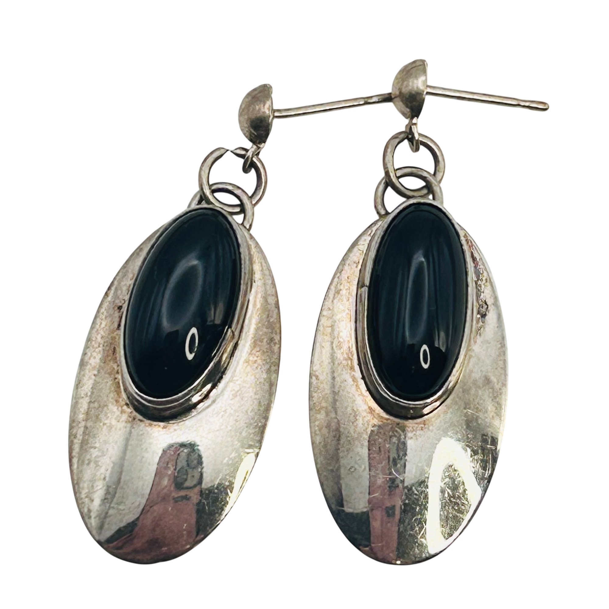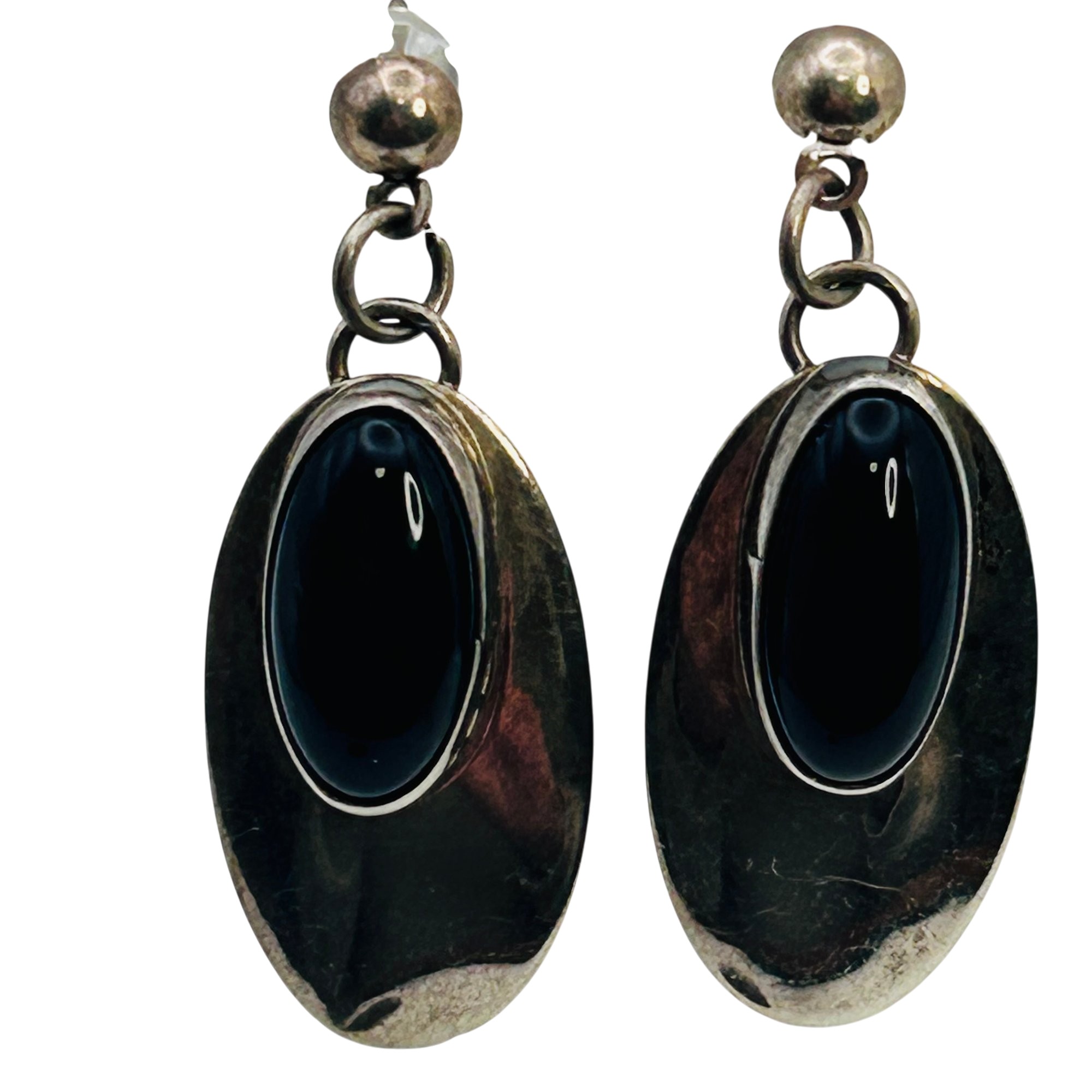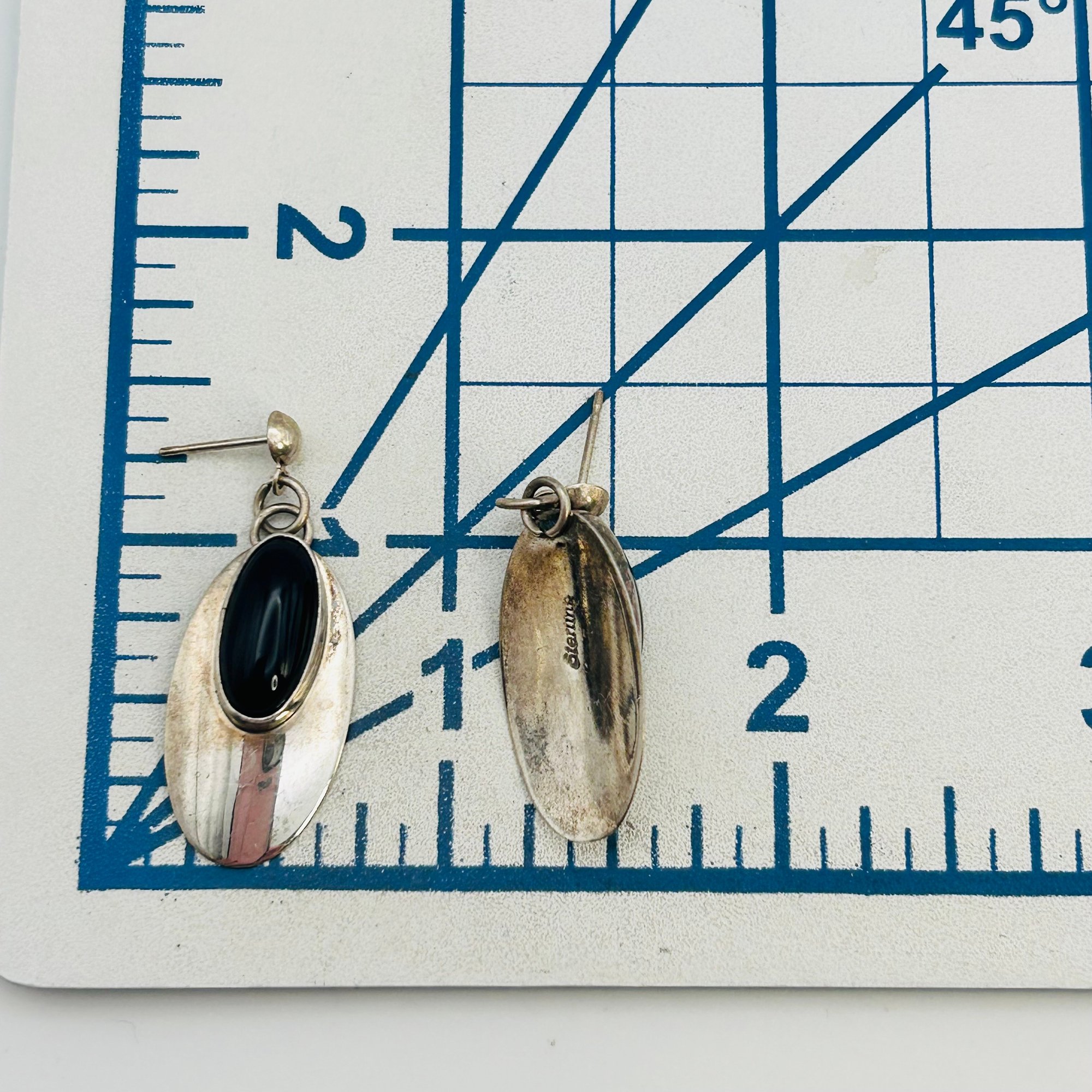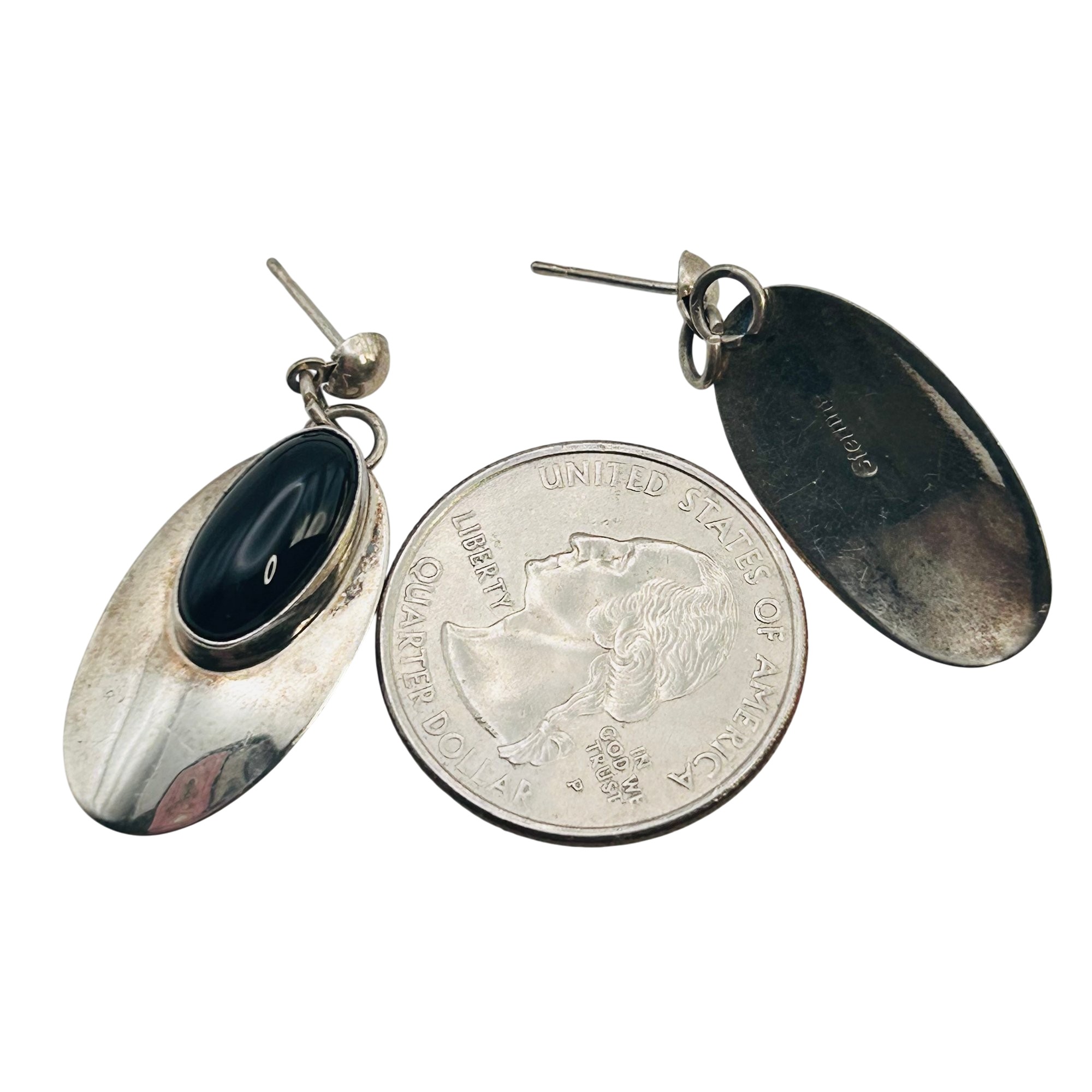 Navajo ONYX Sterling oval dangle pushback earrings 4.8 g