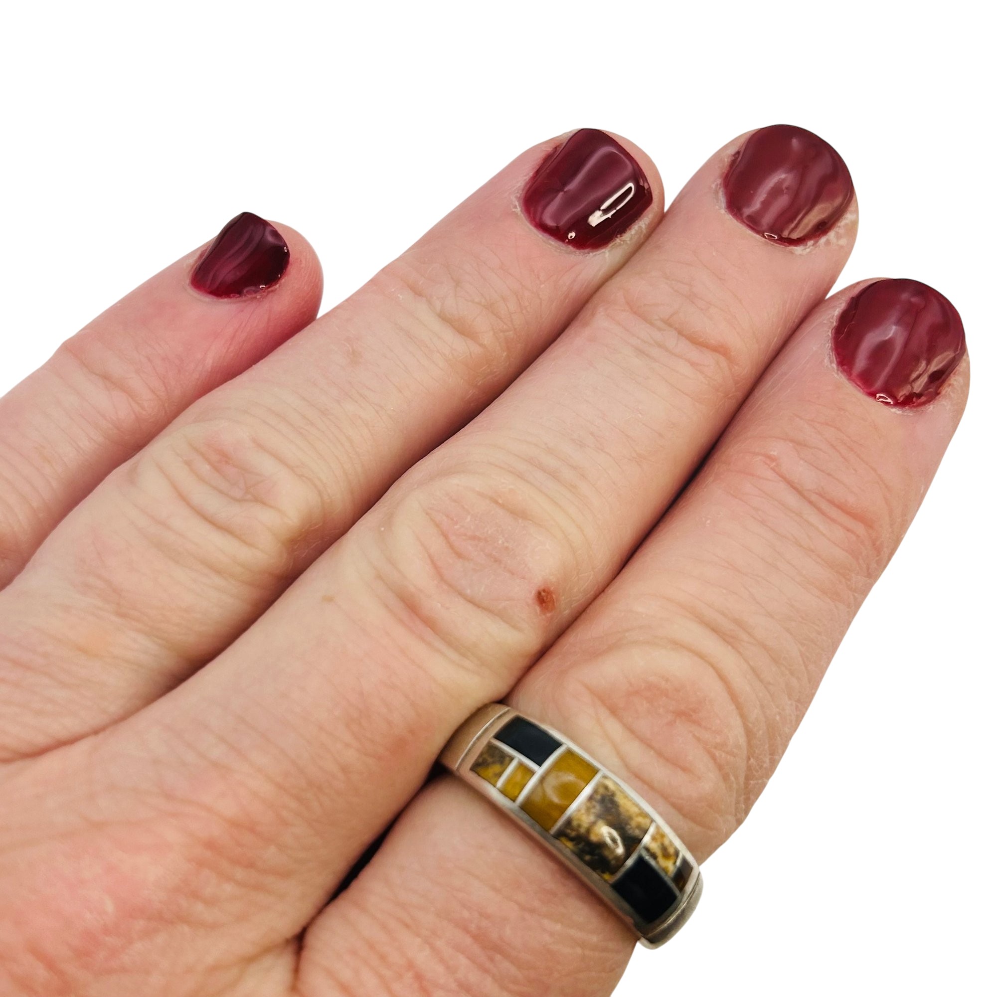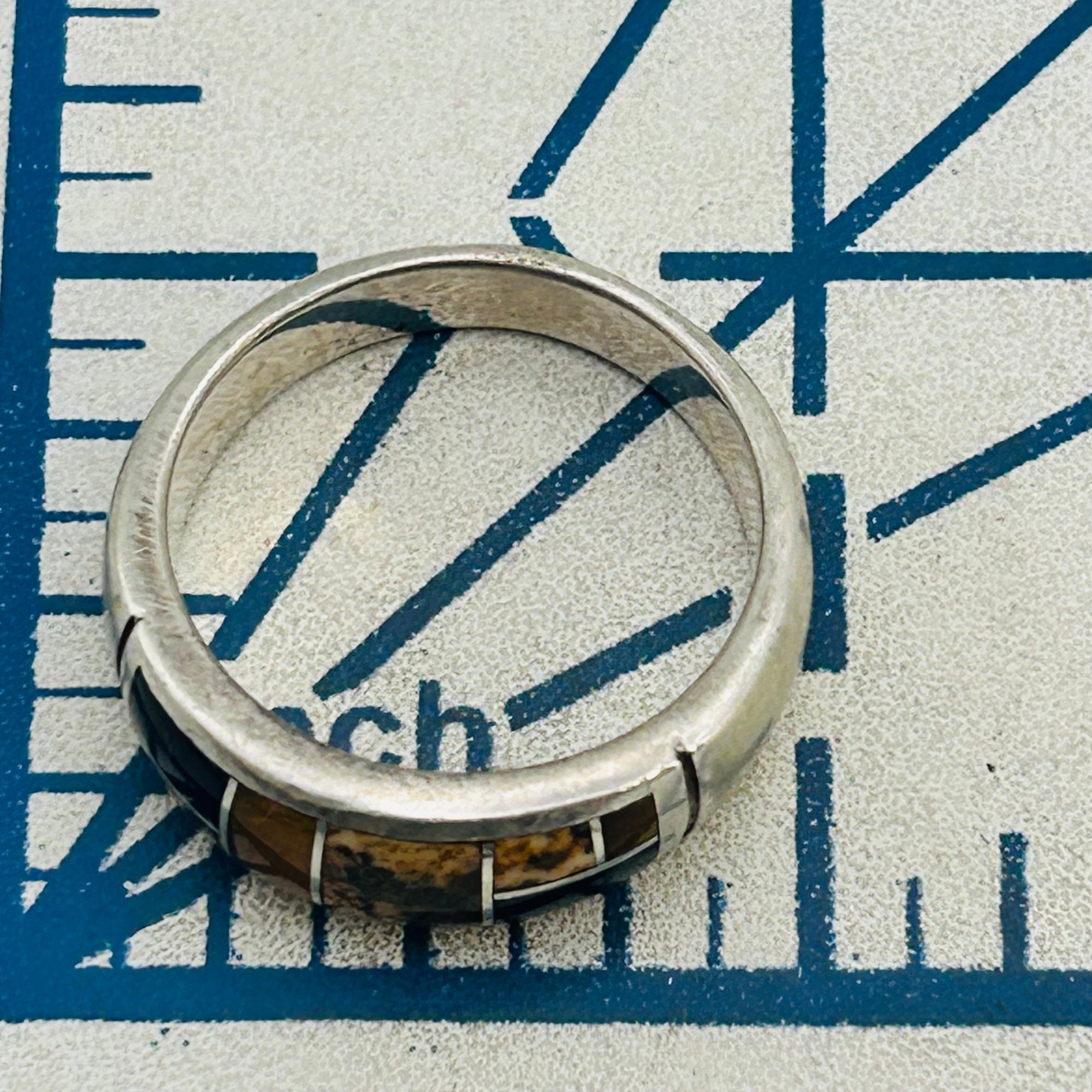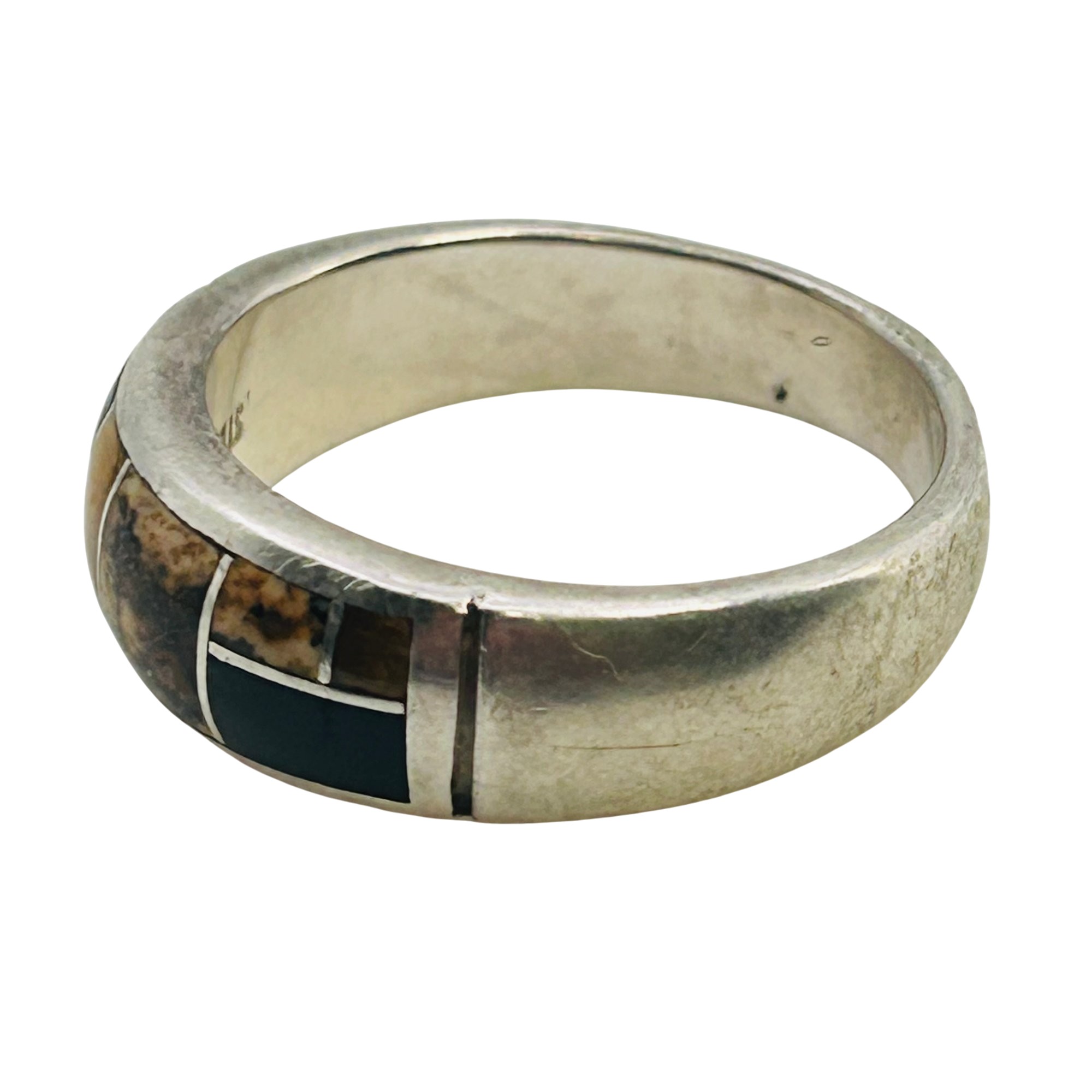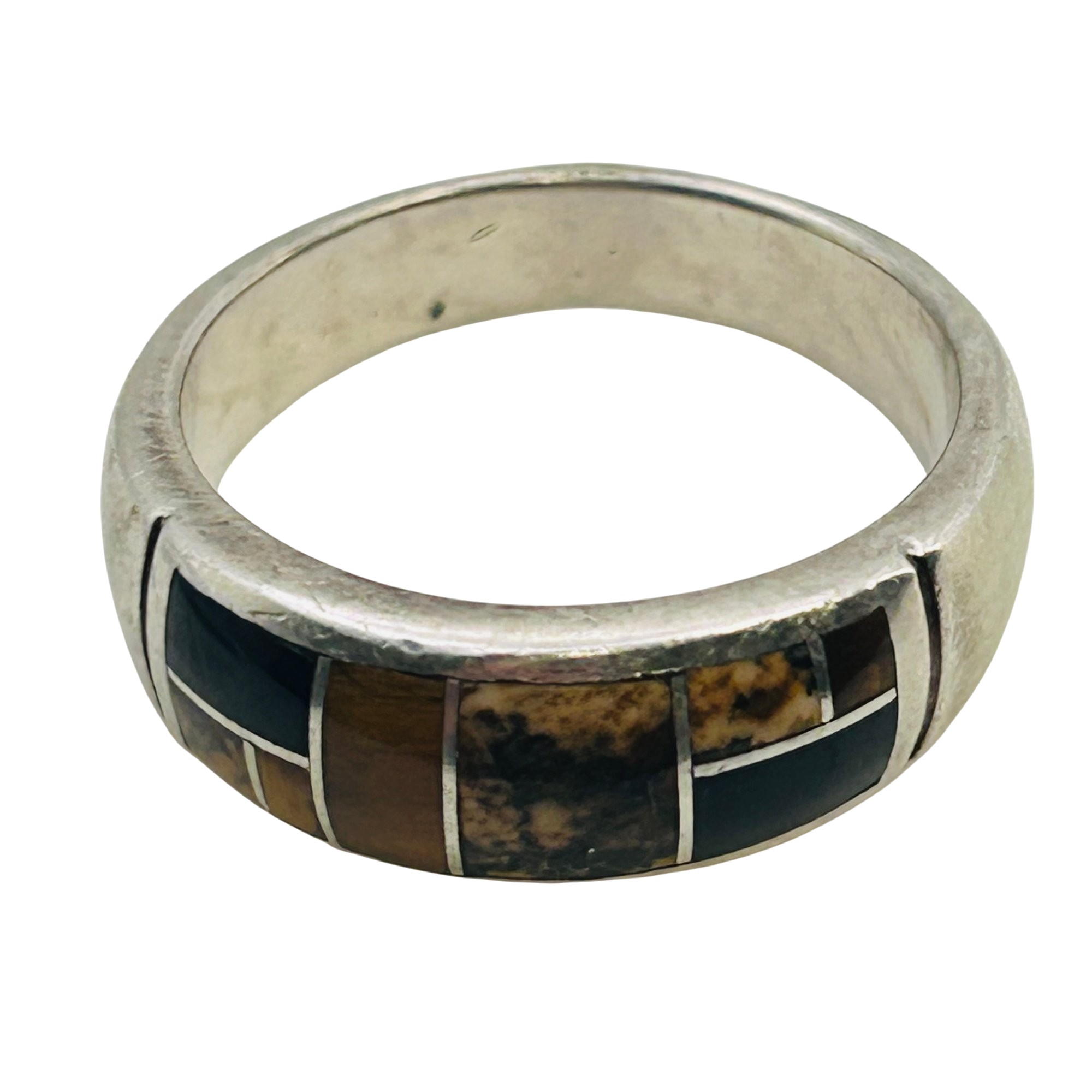 Navajo Inlay Tigers Eye, Jasper Signed TS Sterling Band Size 9