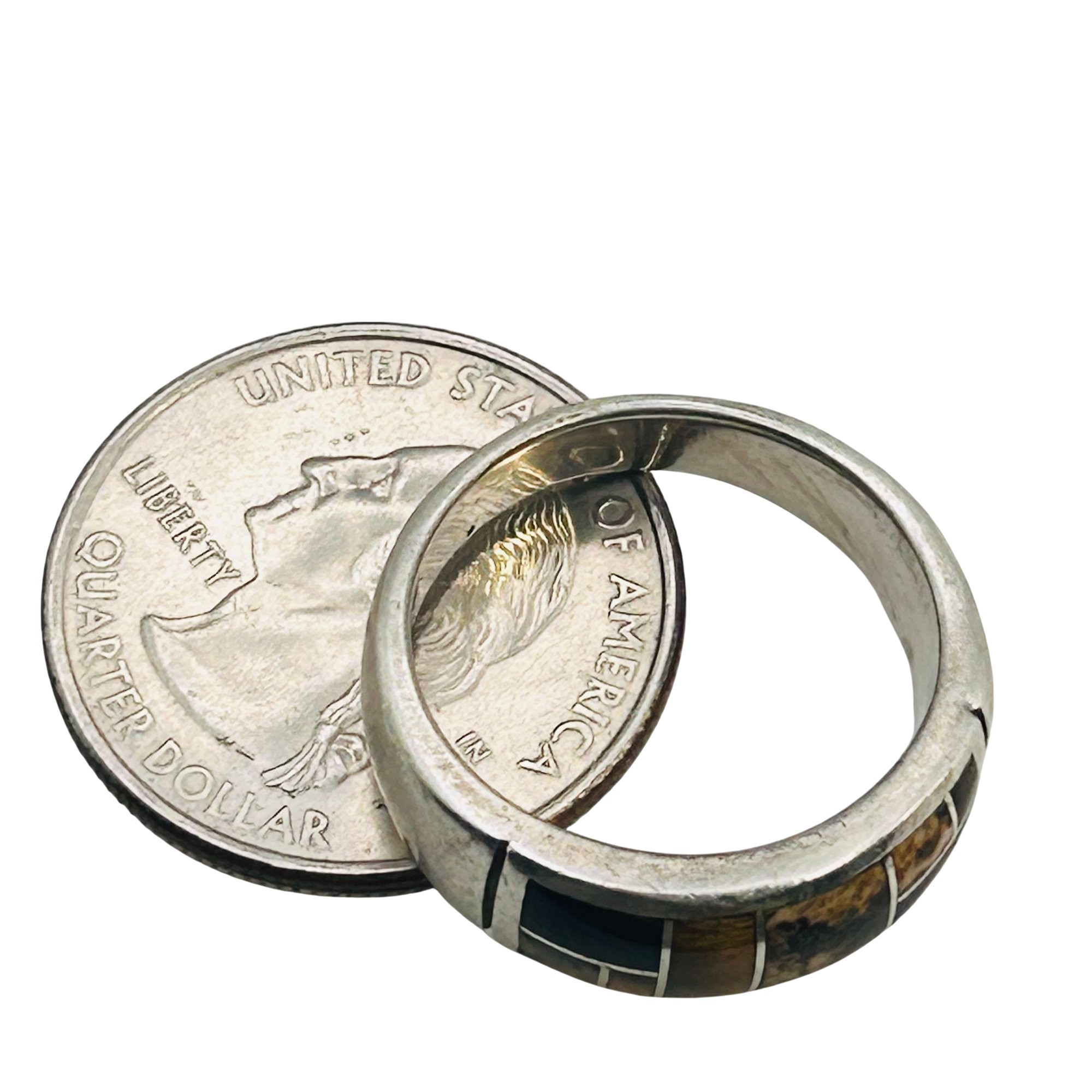 Navajo inlay Tigers eye Jasper signed TS Sterling band size 9 6.1 g