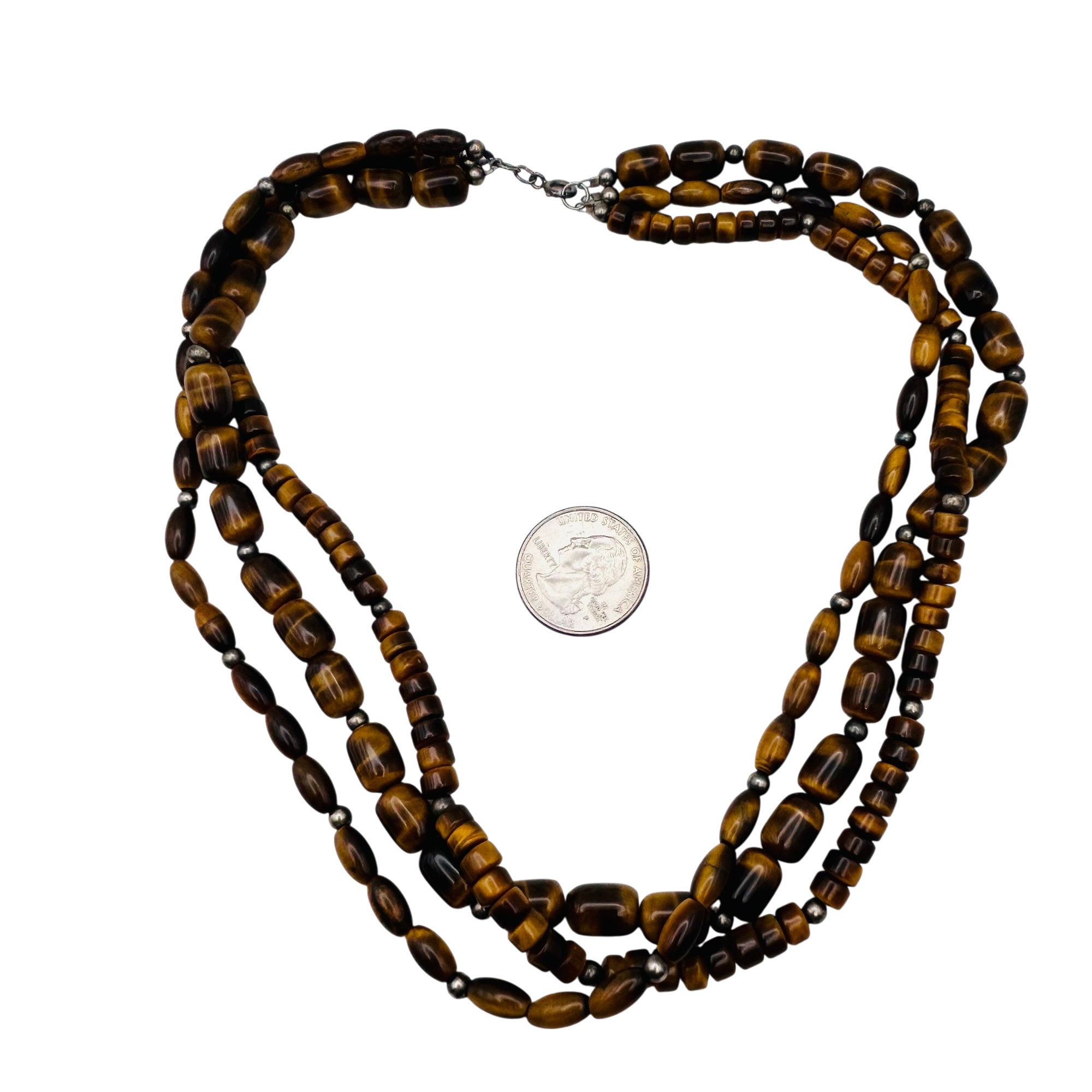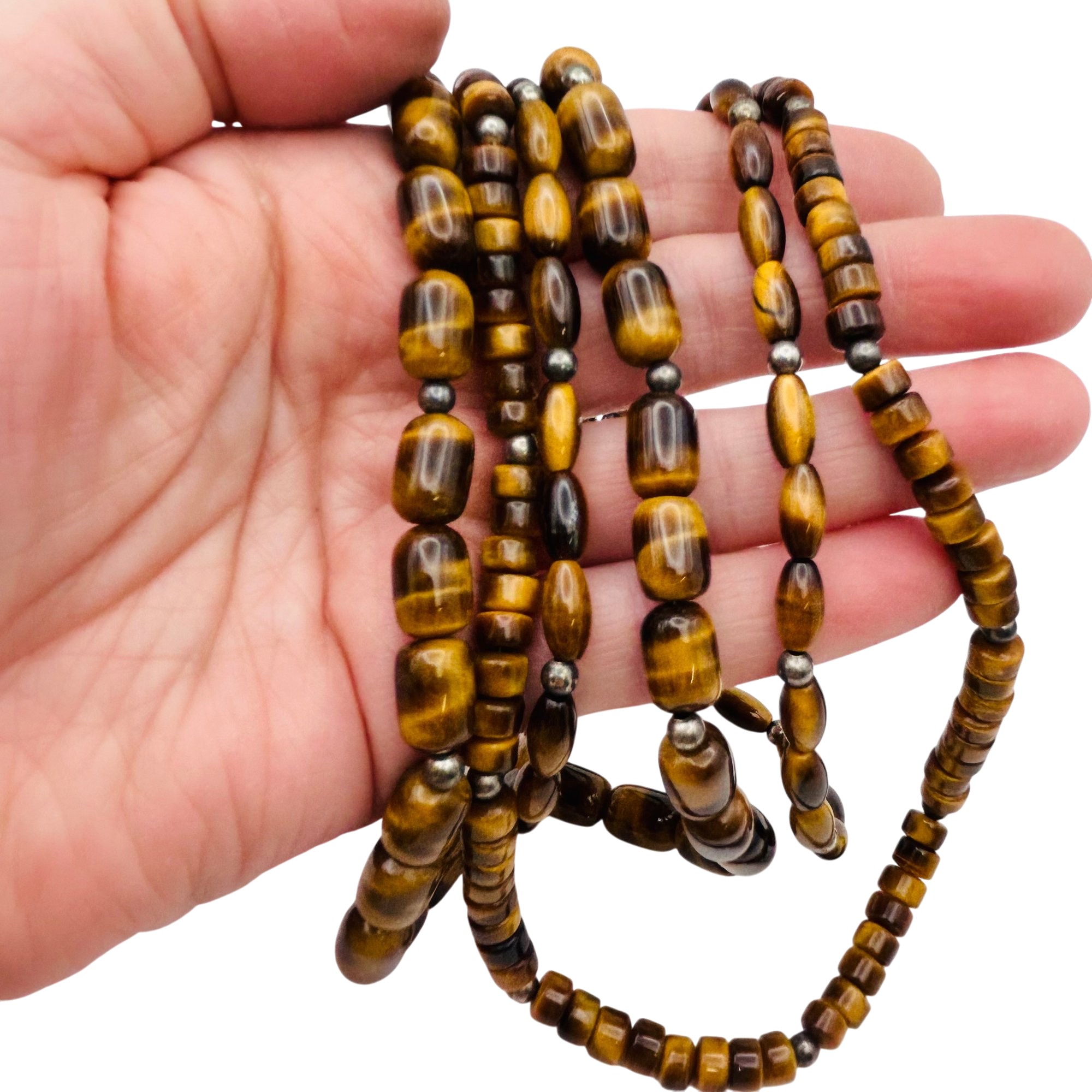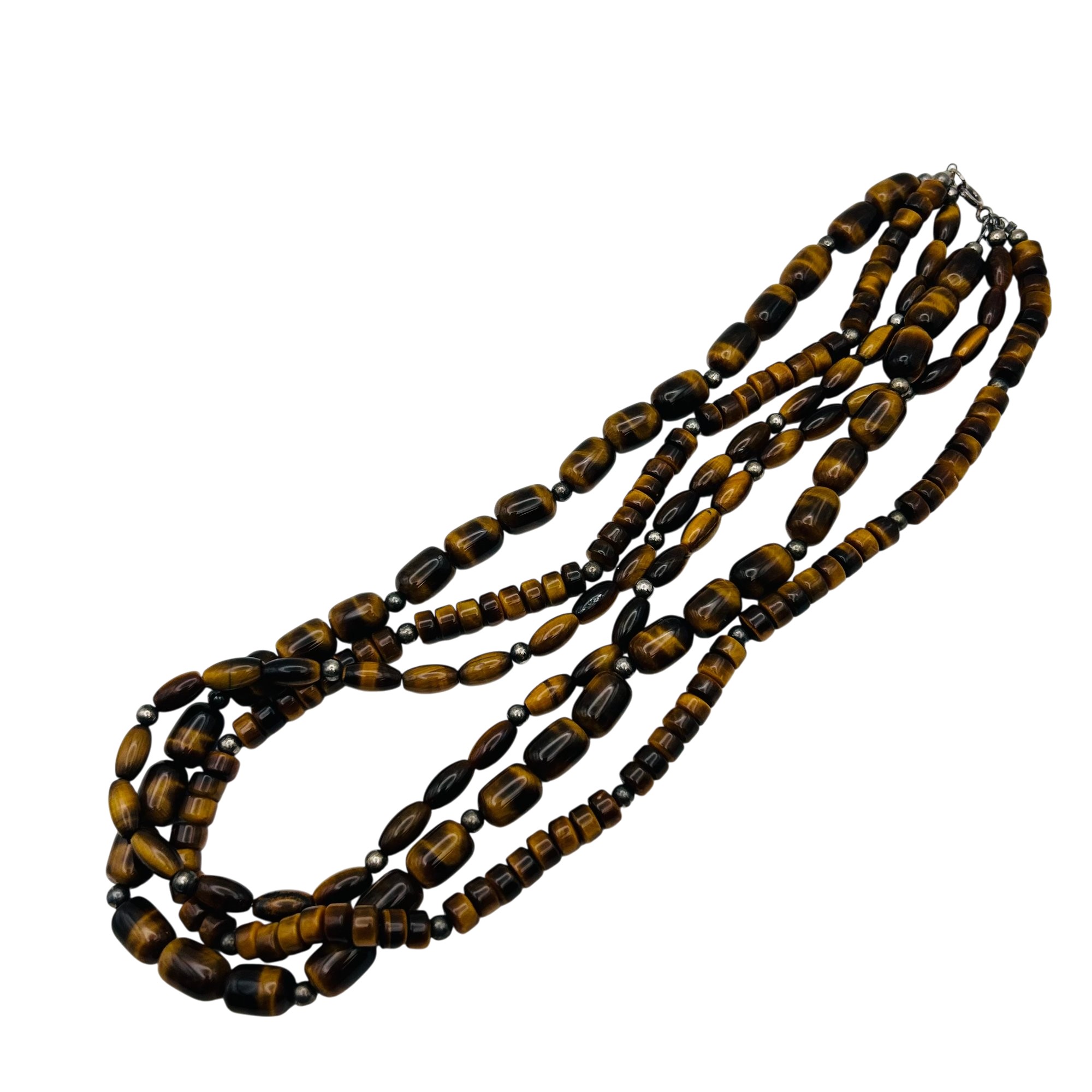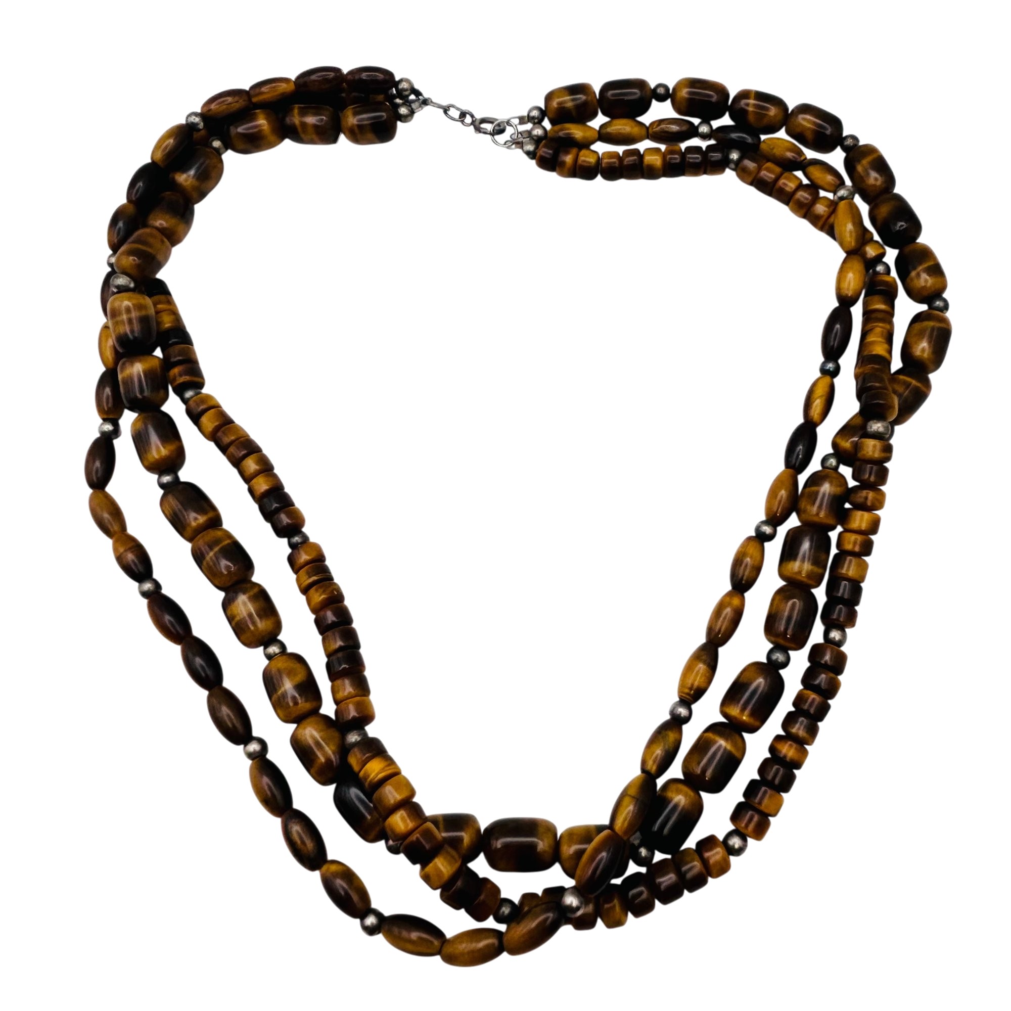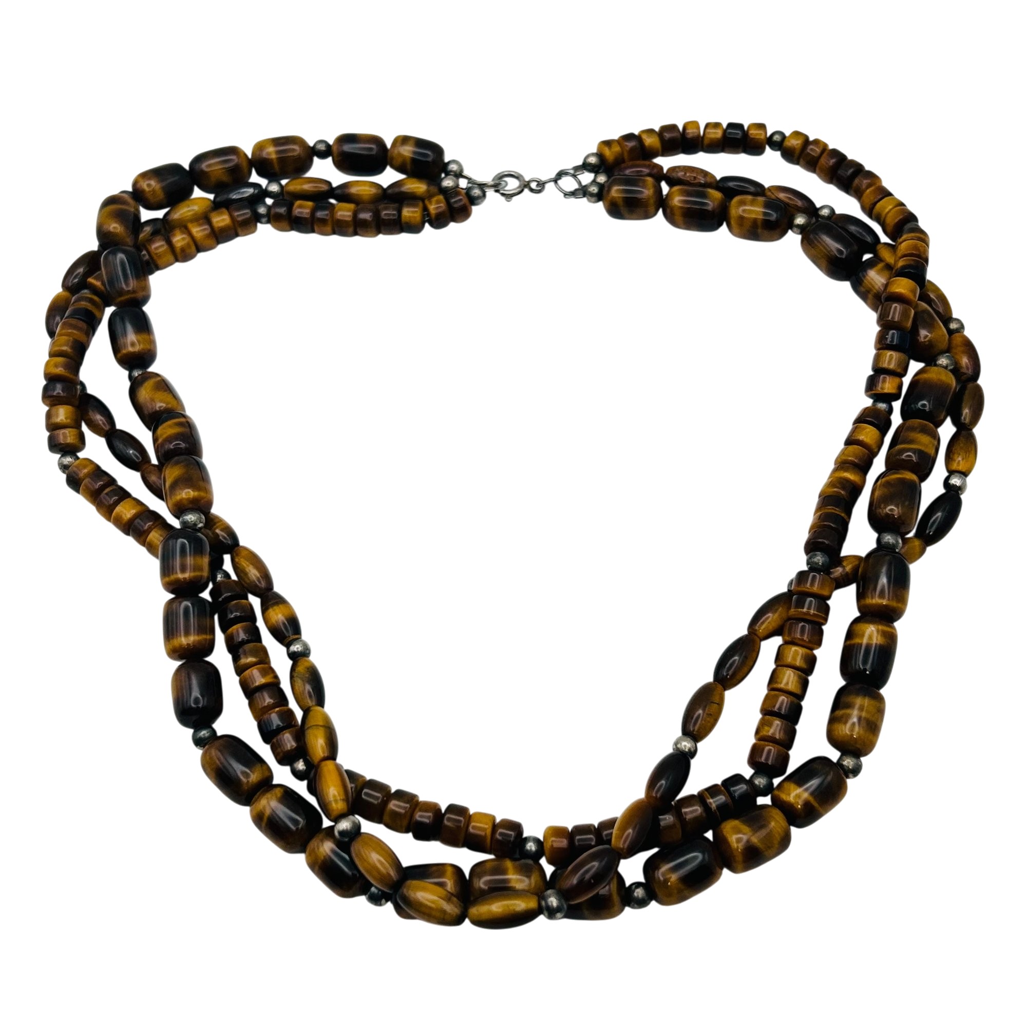 Tiger’s eye beaded multi strand sterling necklace 90 g