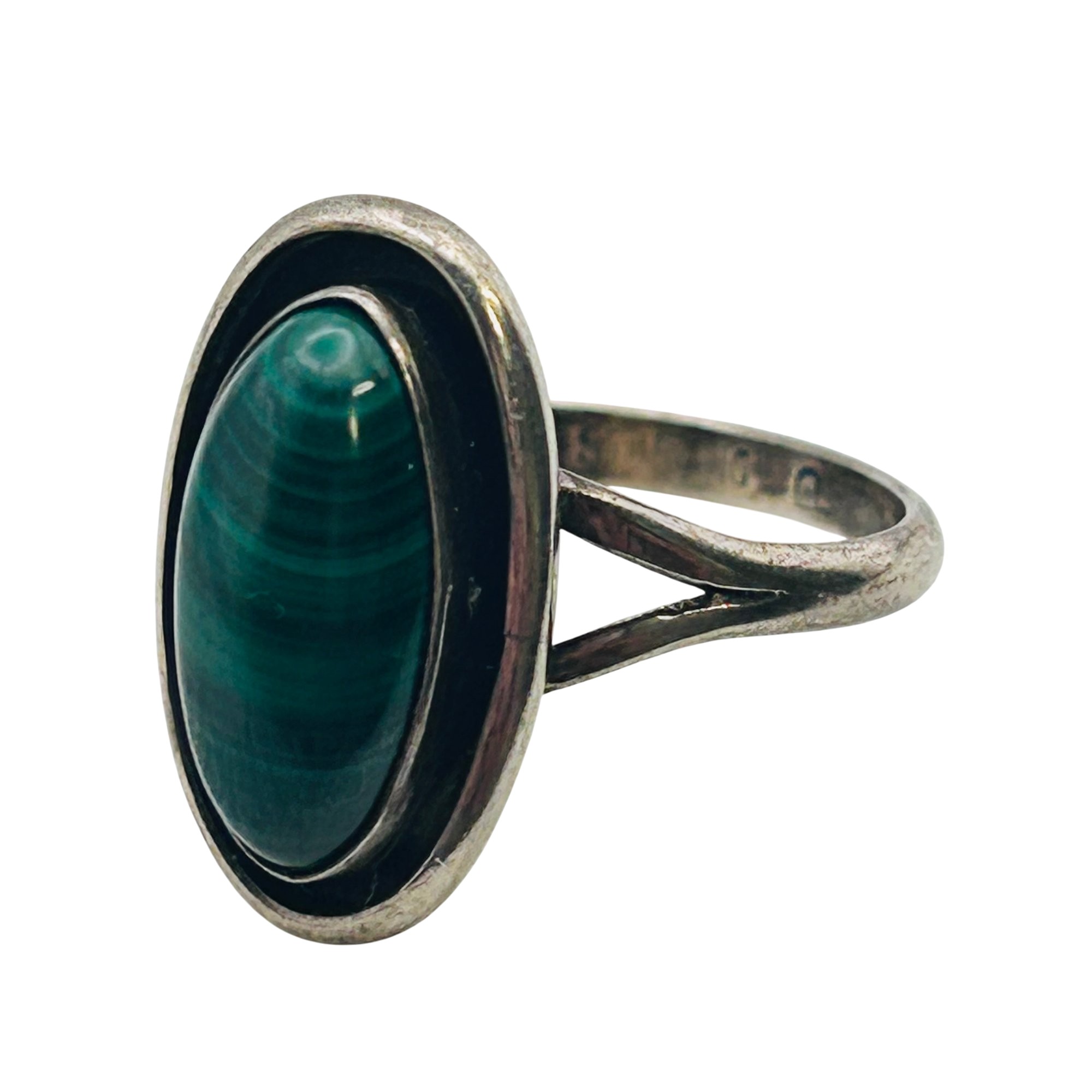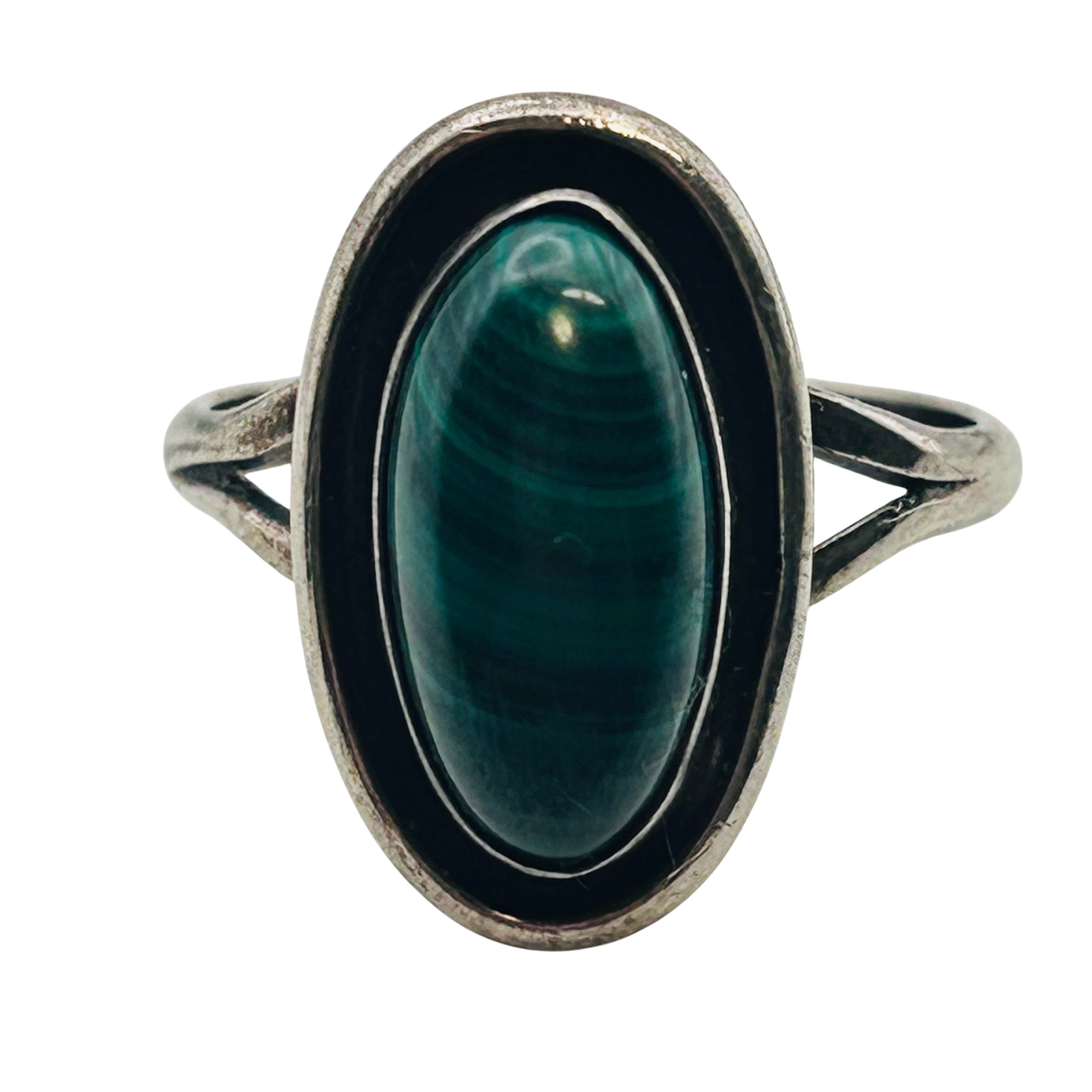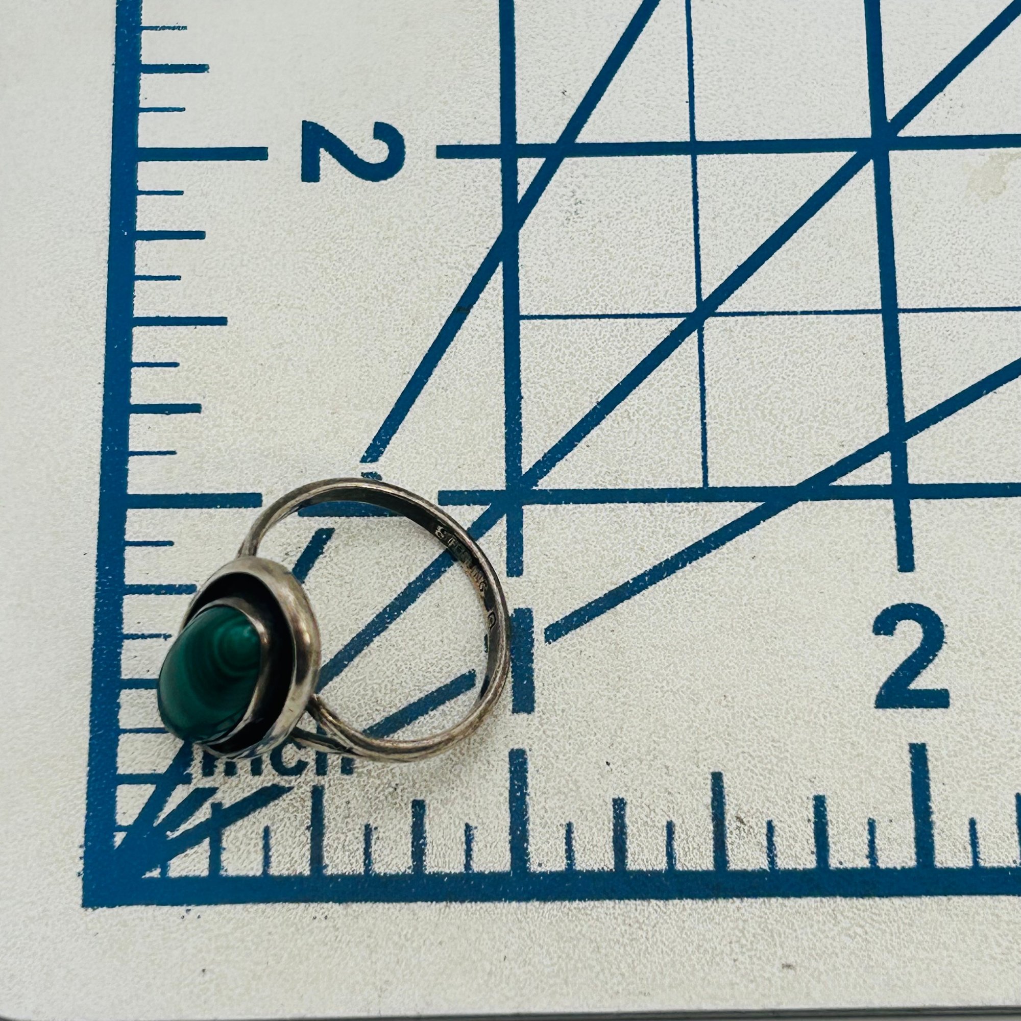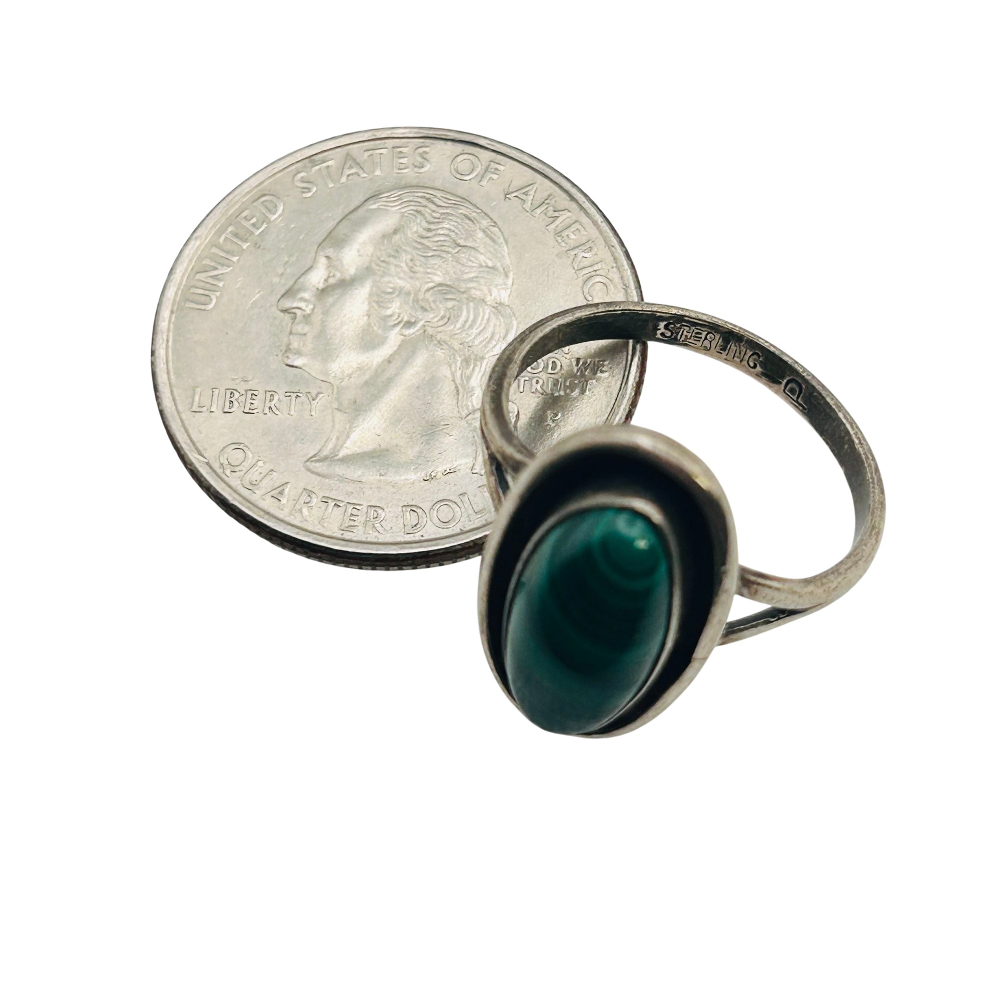 Navajo signed P Malachite Sterling shadowbox ring size 6.5 3.06 g