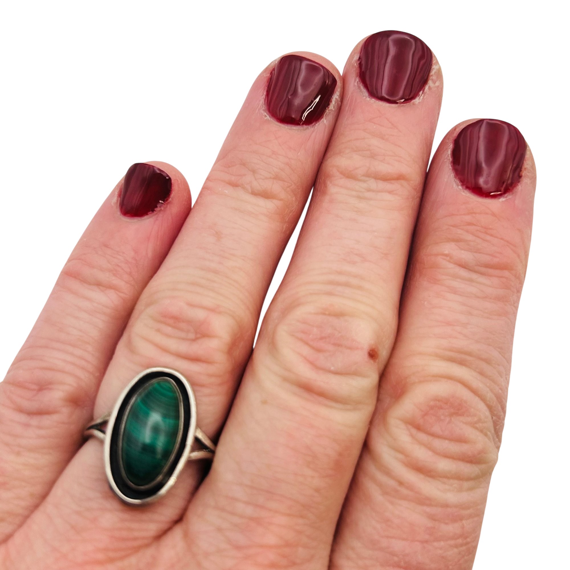 Navajo Signed P Malachite Sterling Shadowbox Ring Size 6.5