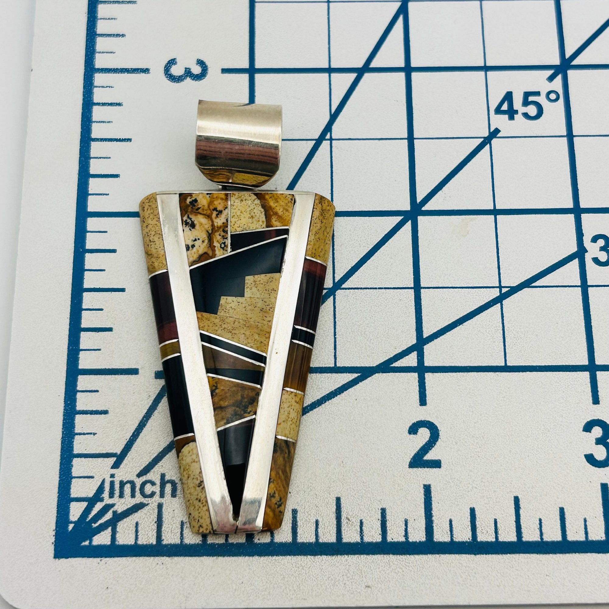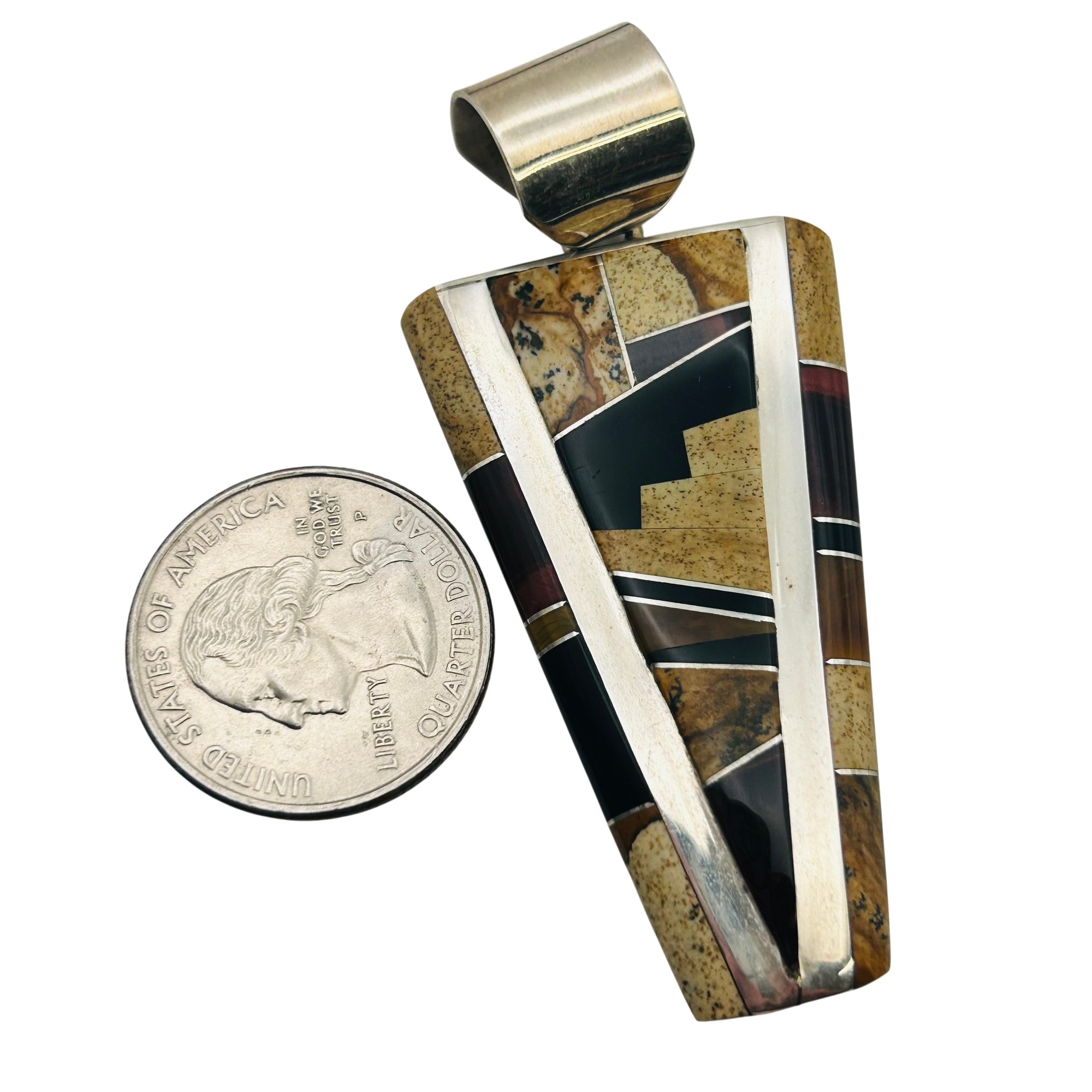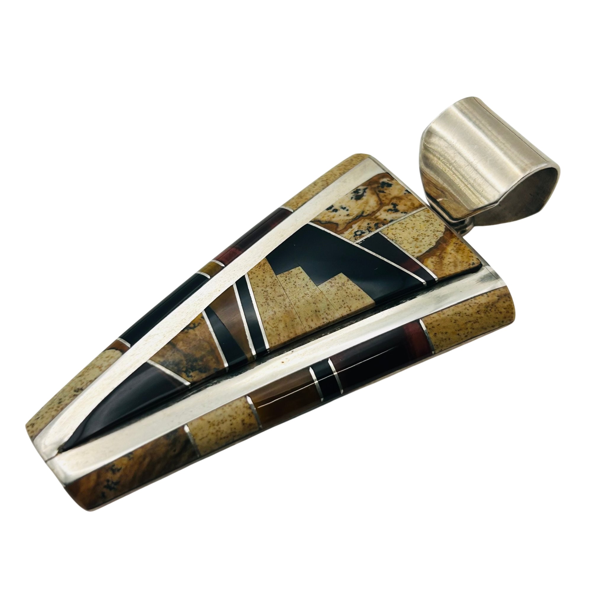 Wayne Muskett Navajo inlay Jasper ONYX Sterling pendant 25.9 g