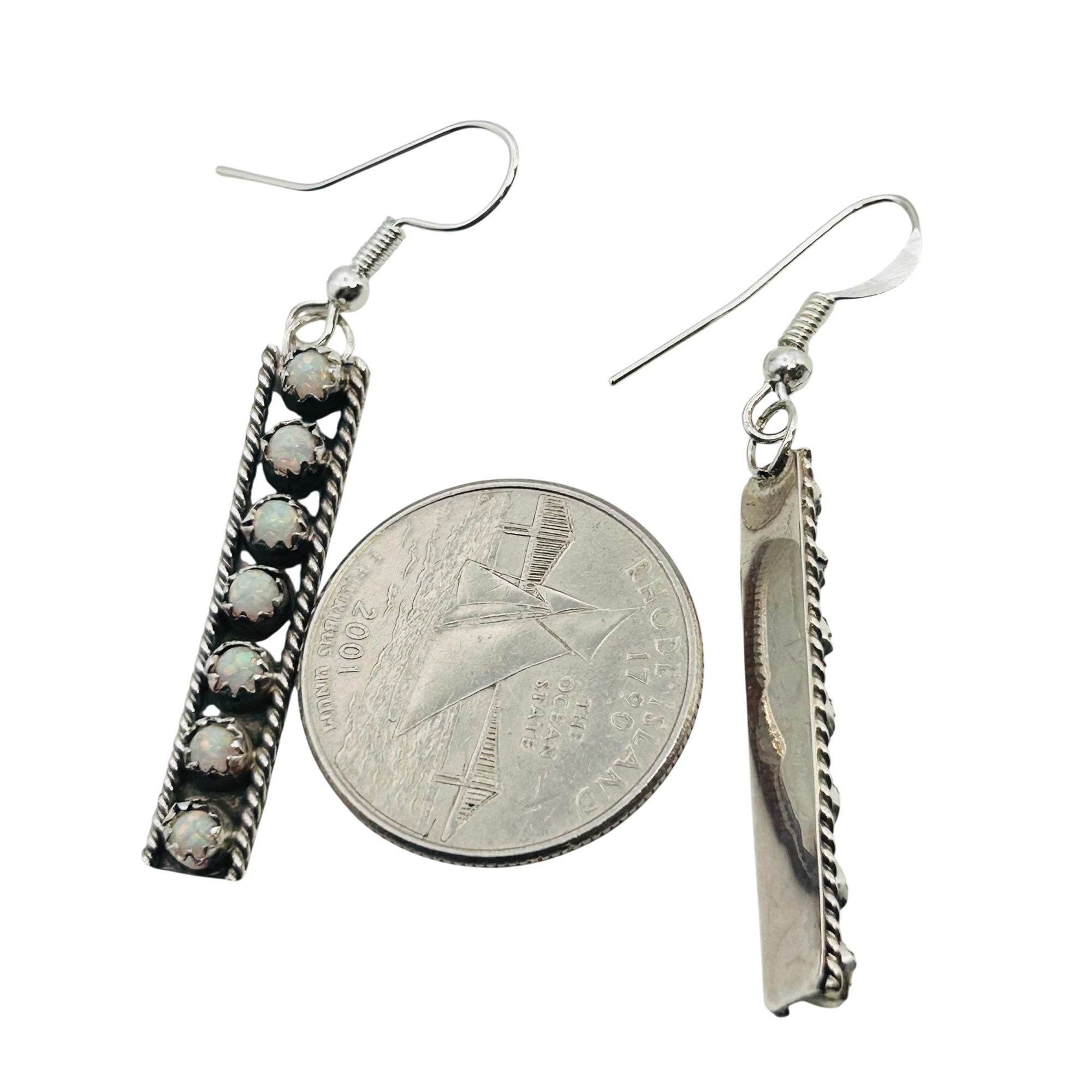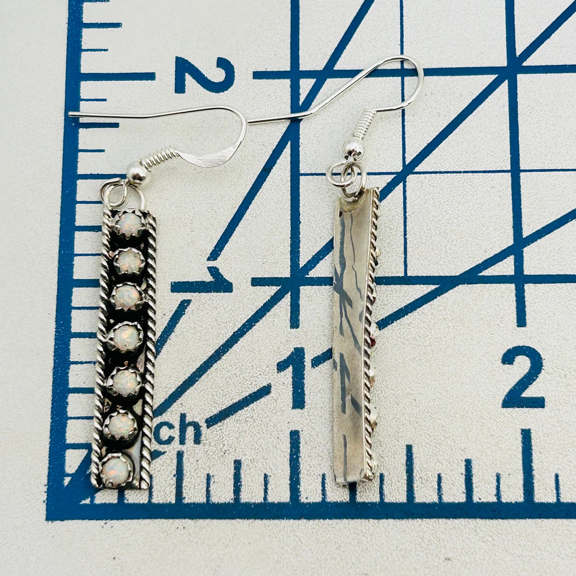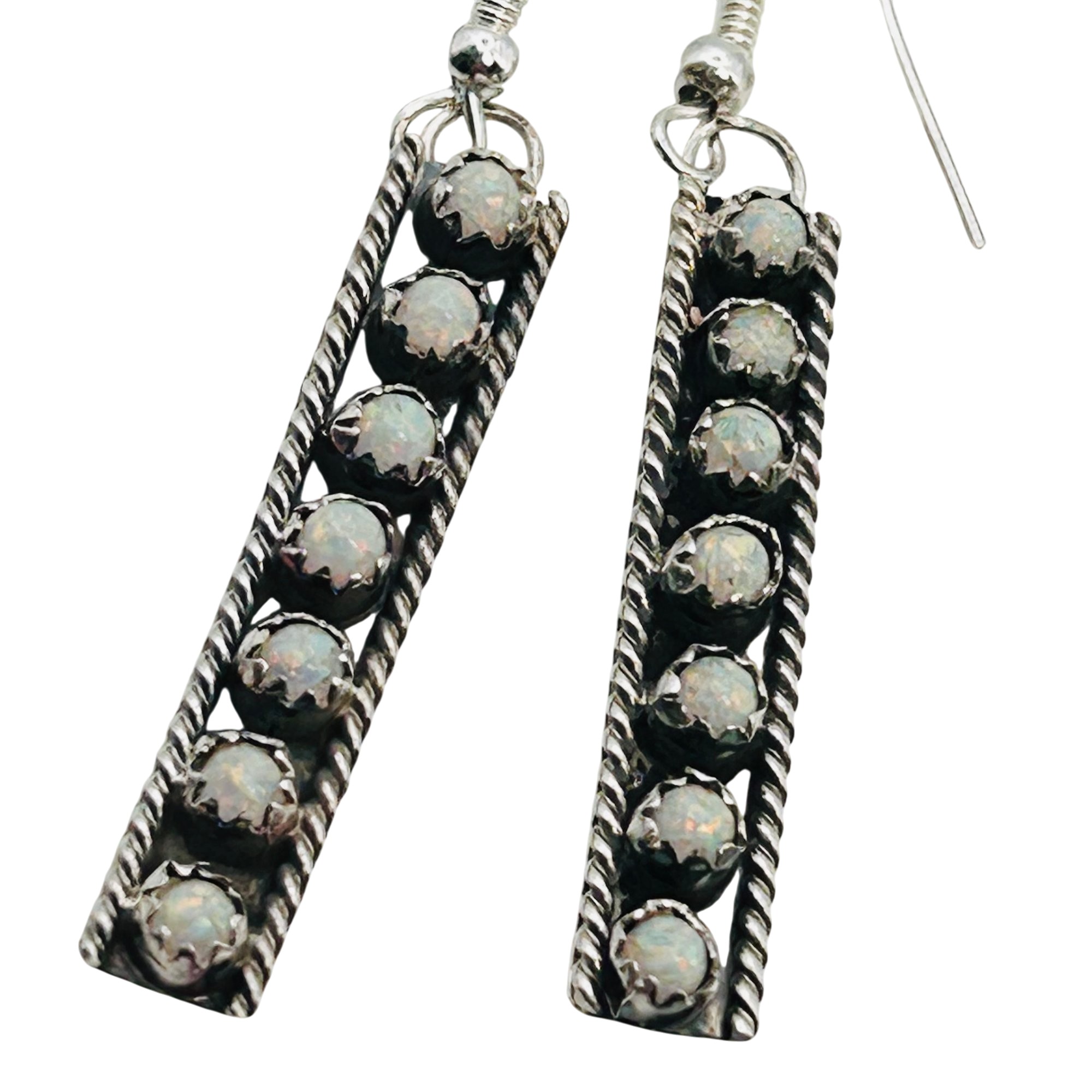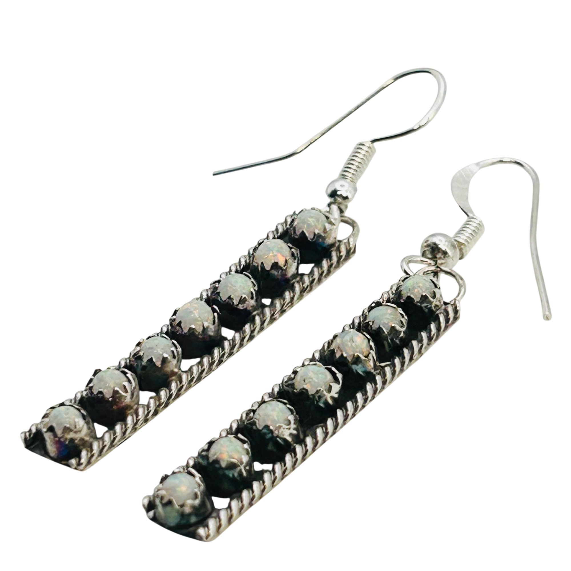 Esther white Navajo Staight Sterling 7 stone opal hookback Earrings 3.95 grams
