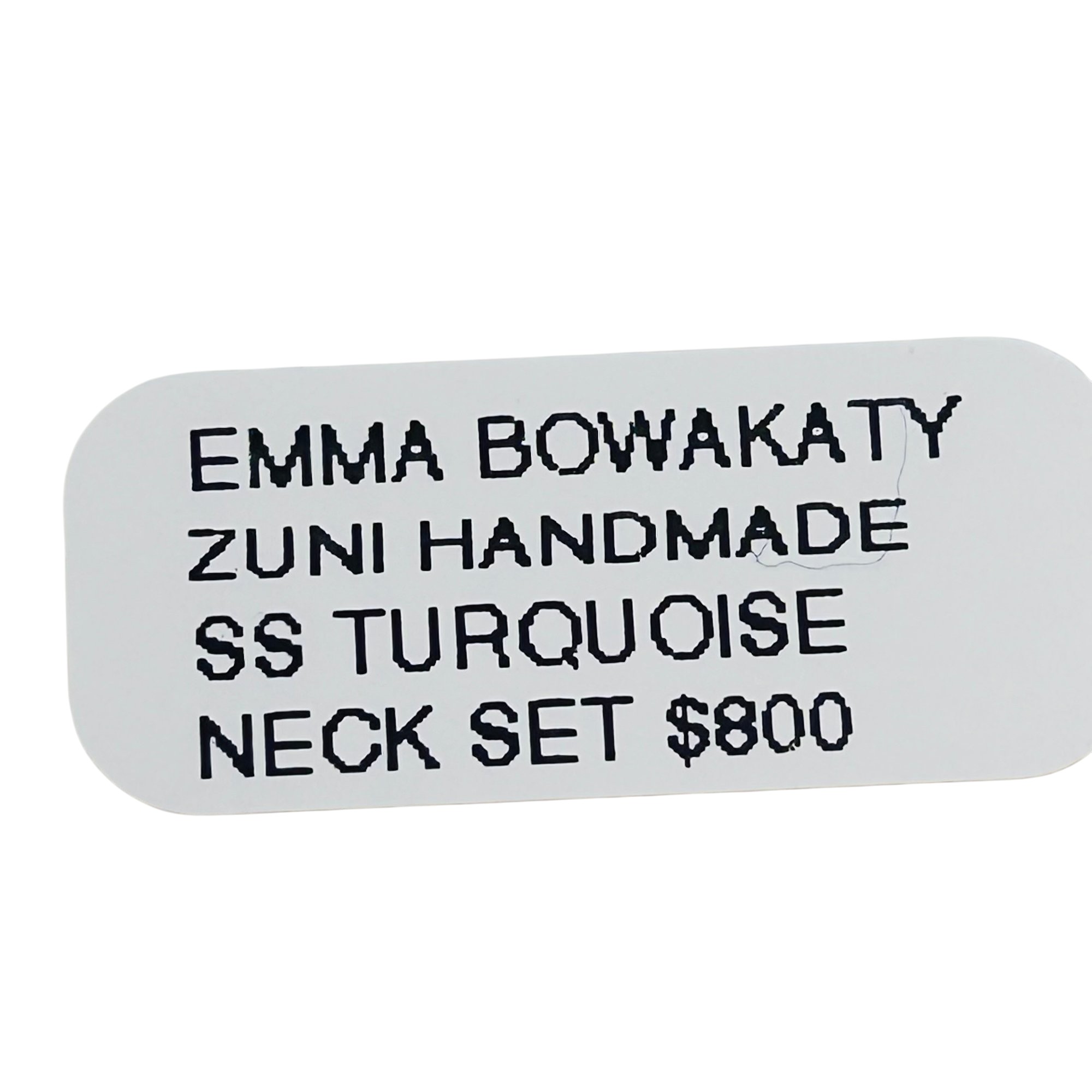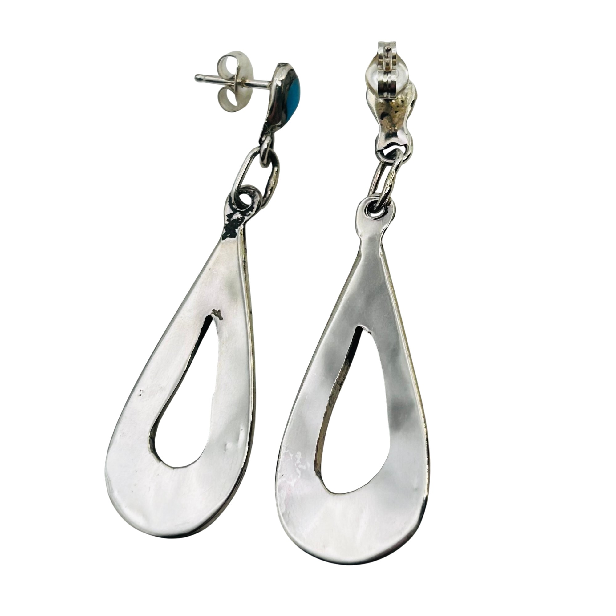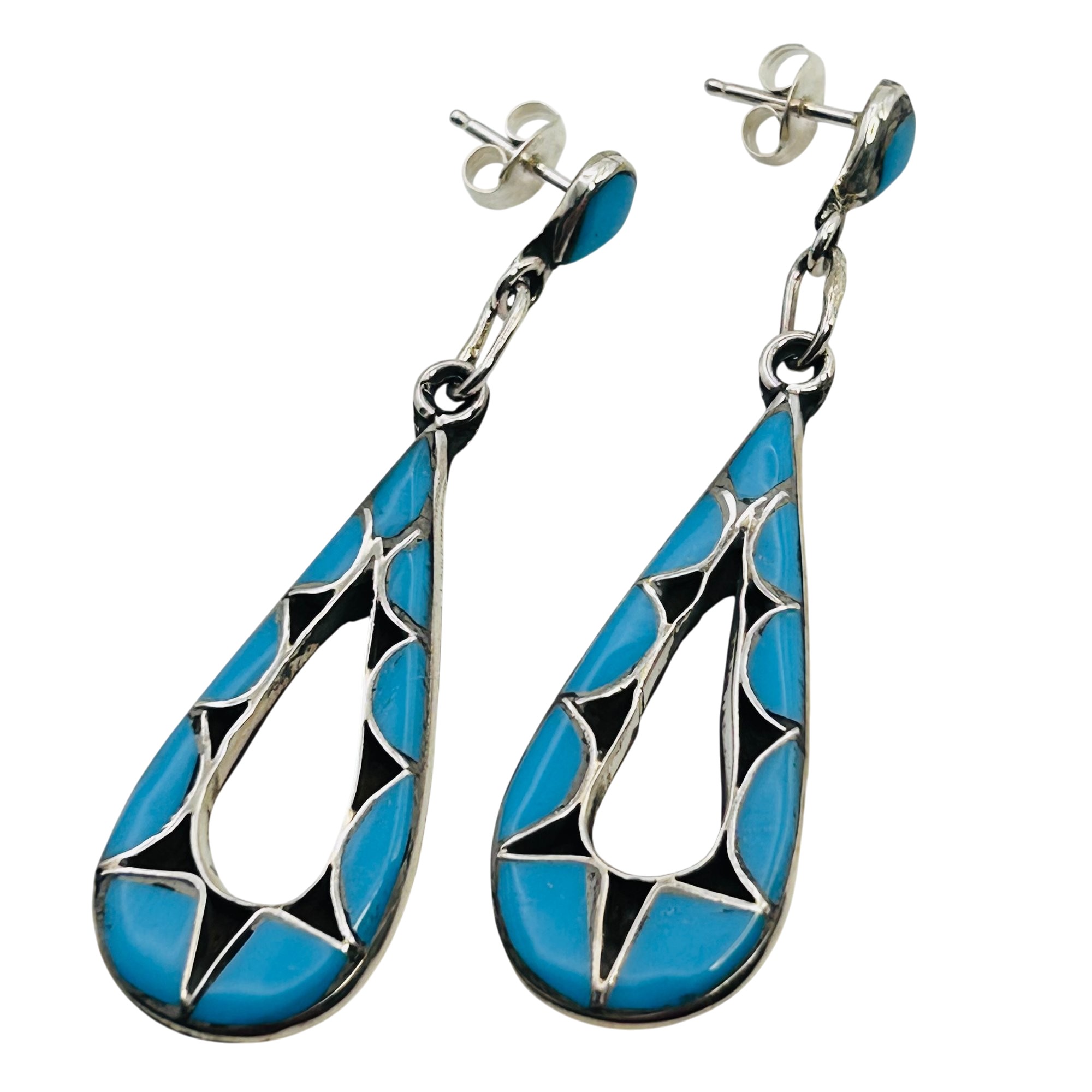 Emma Bowakaty Zuni Sterling Turquoise onyx oval cutout dangle Earrings 5.53grams