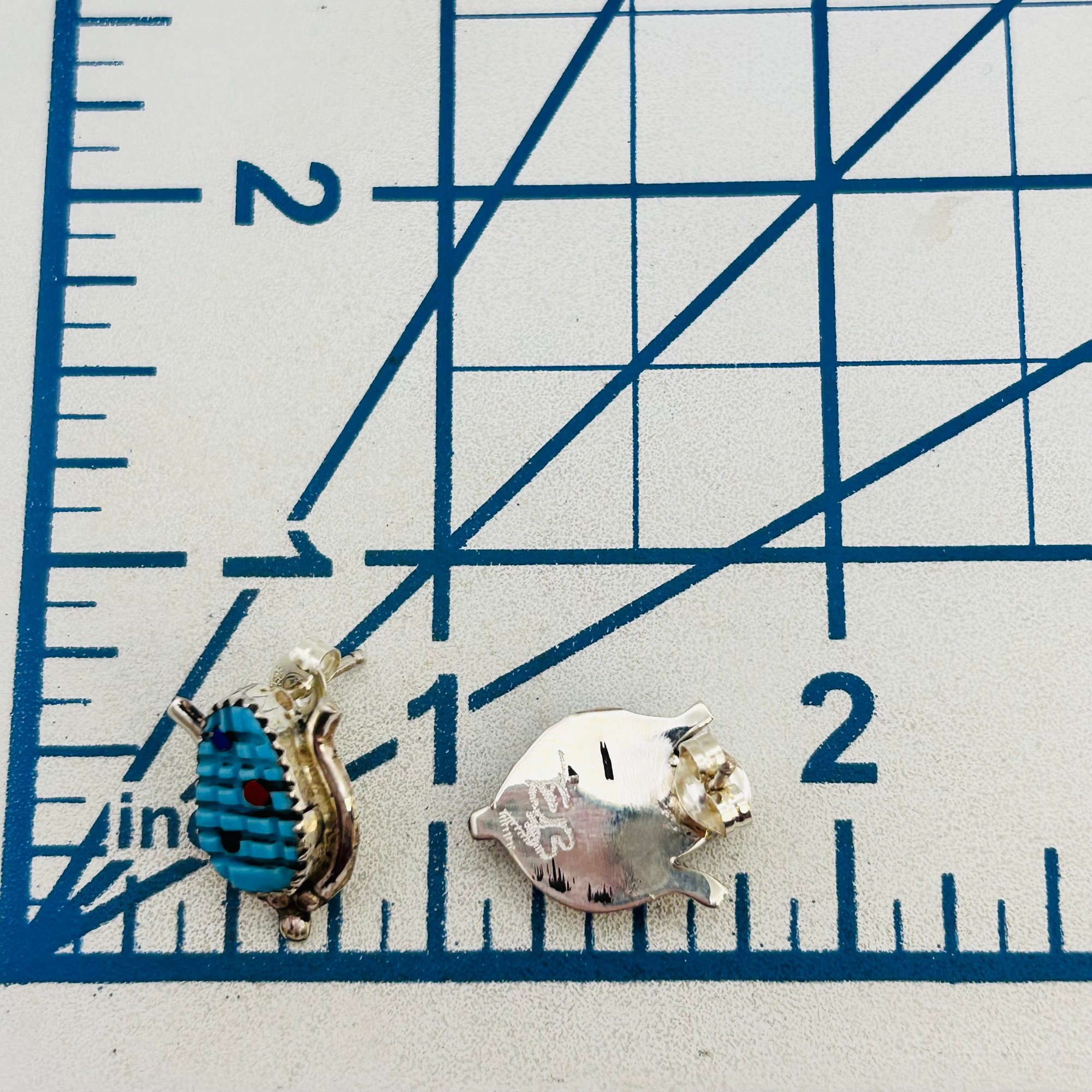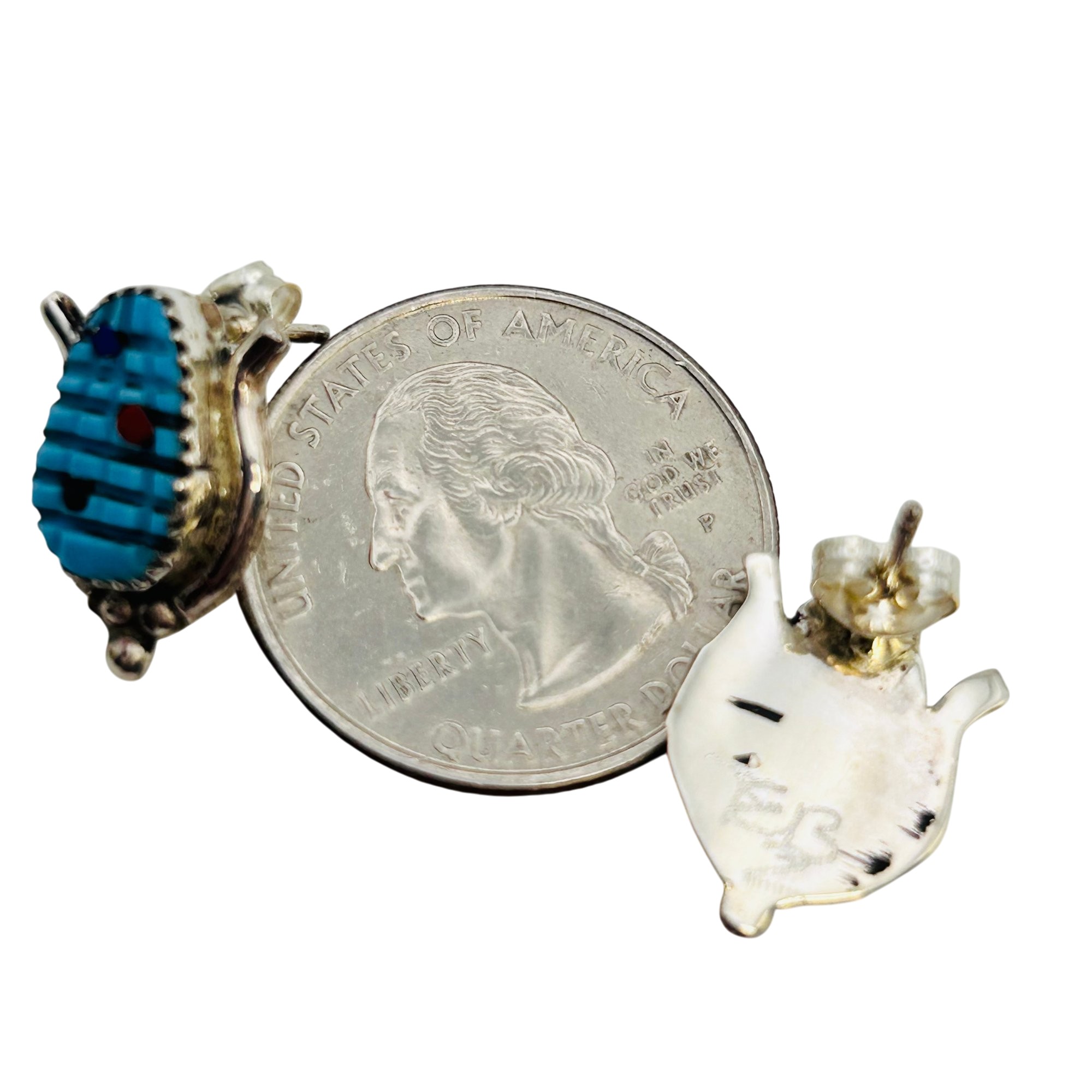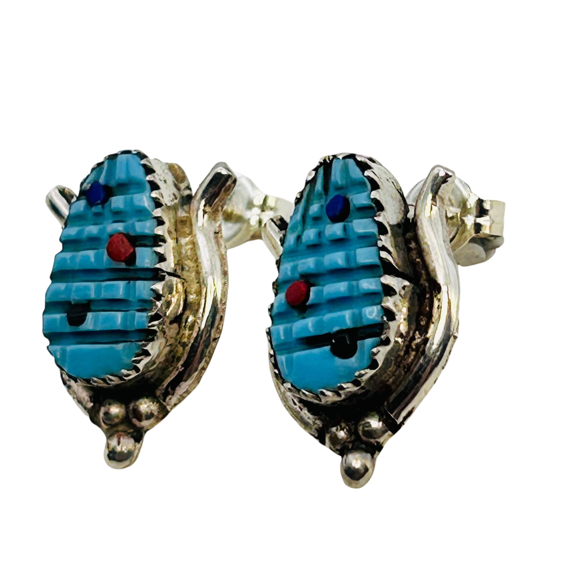 Tracy Bowekati Zuni Sterling Multi Stone carved turquoise Corncob Earrings 2.72 grams
