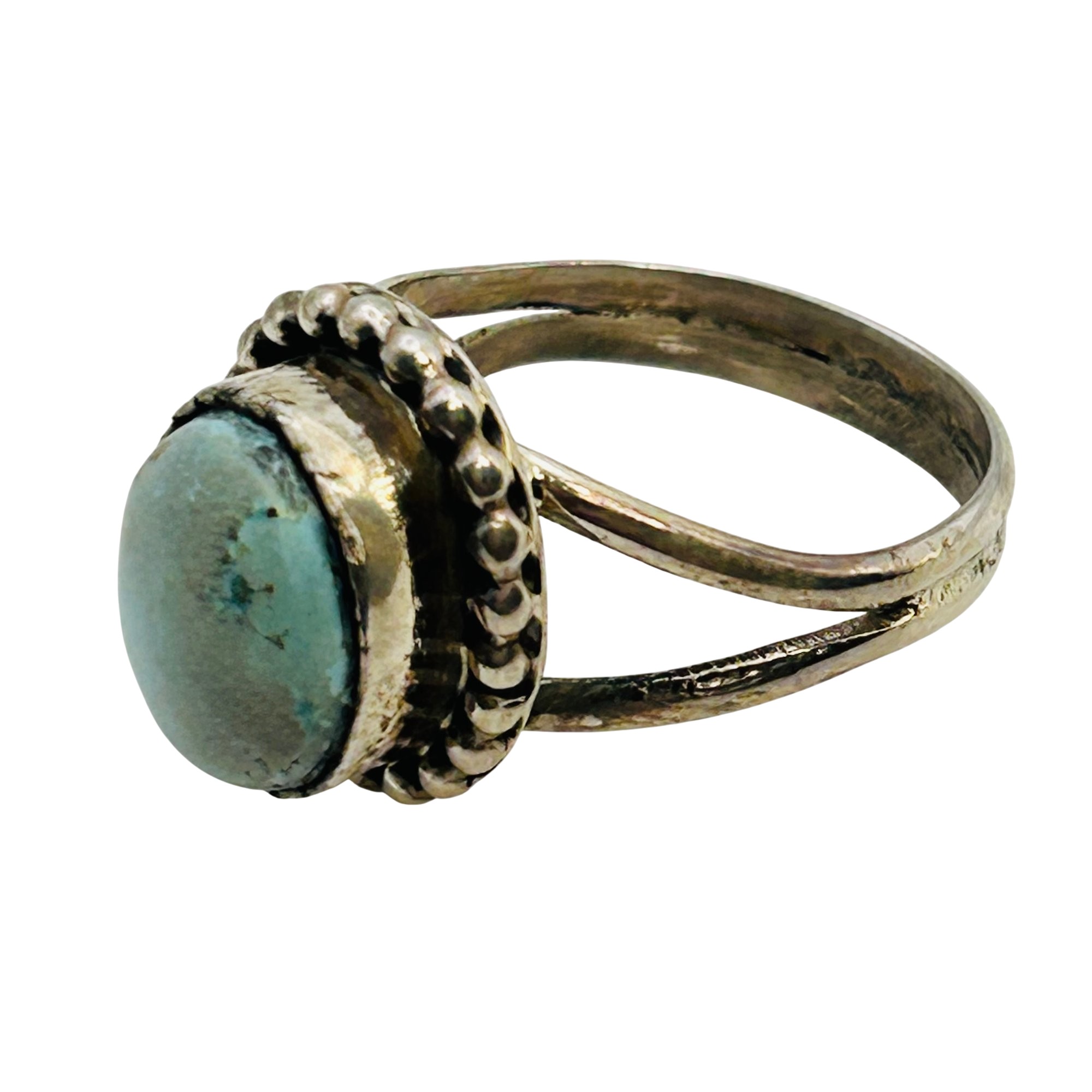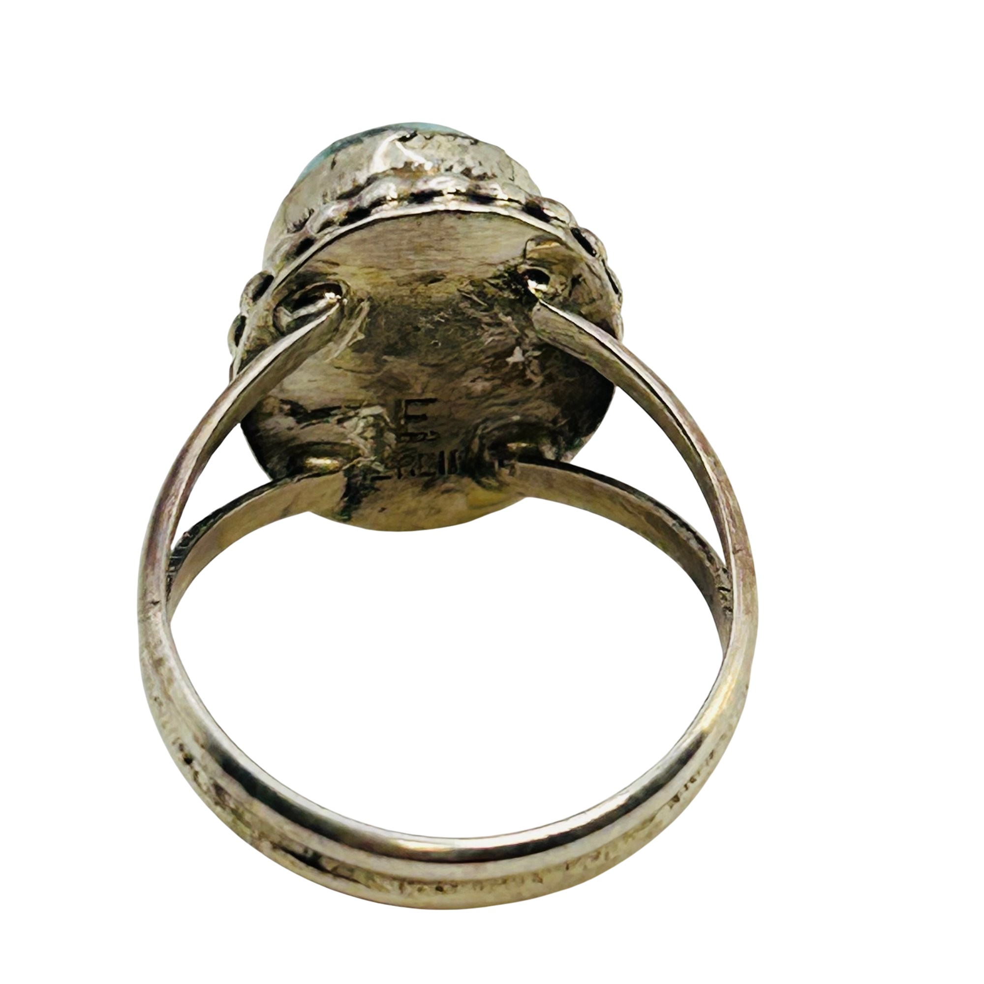 Kathleen Chavez Native Sterling Turquoise oval Ring Size 6 3.66 grams