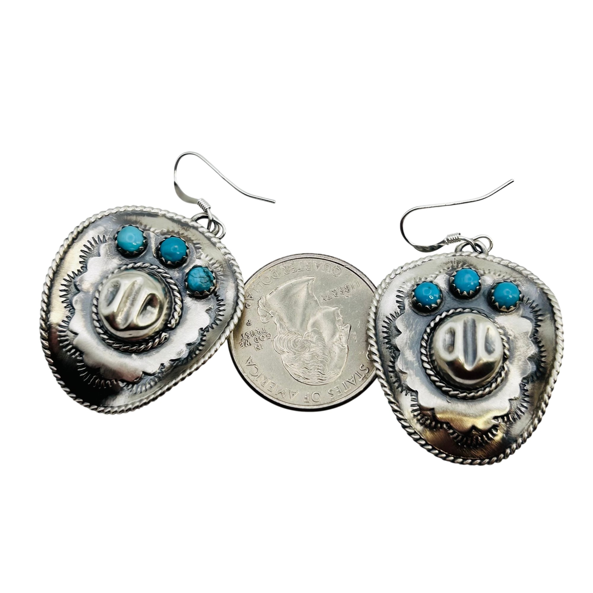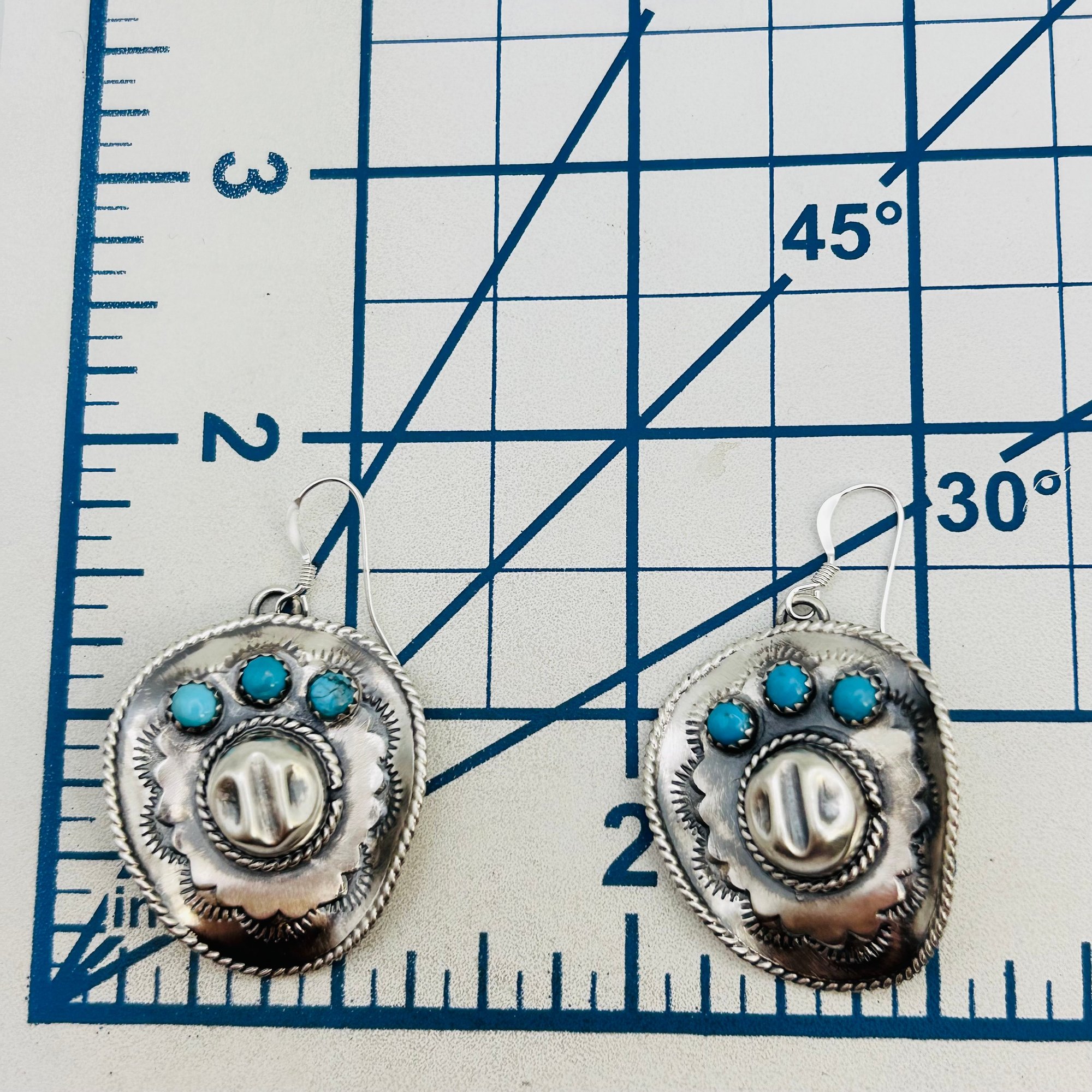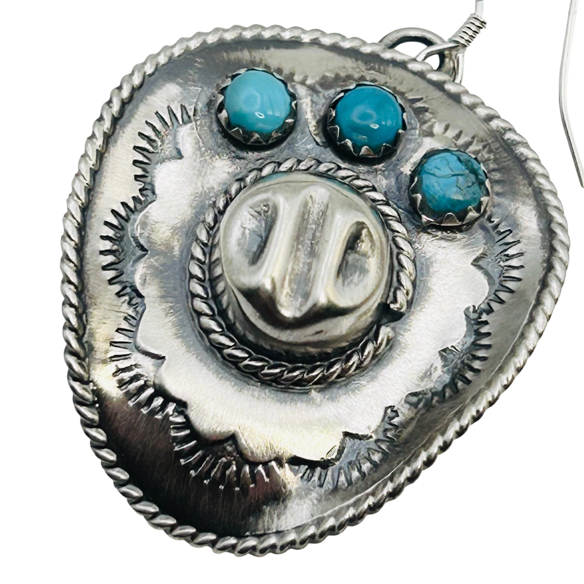 Bobby Platero Navajo Sterling Kingman Turquoise Cowboy Hat Earrings