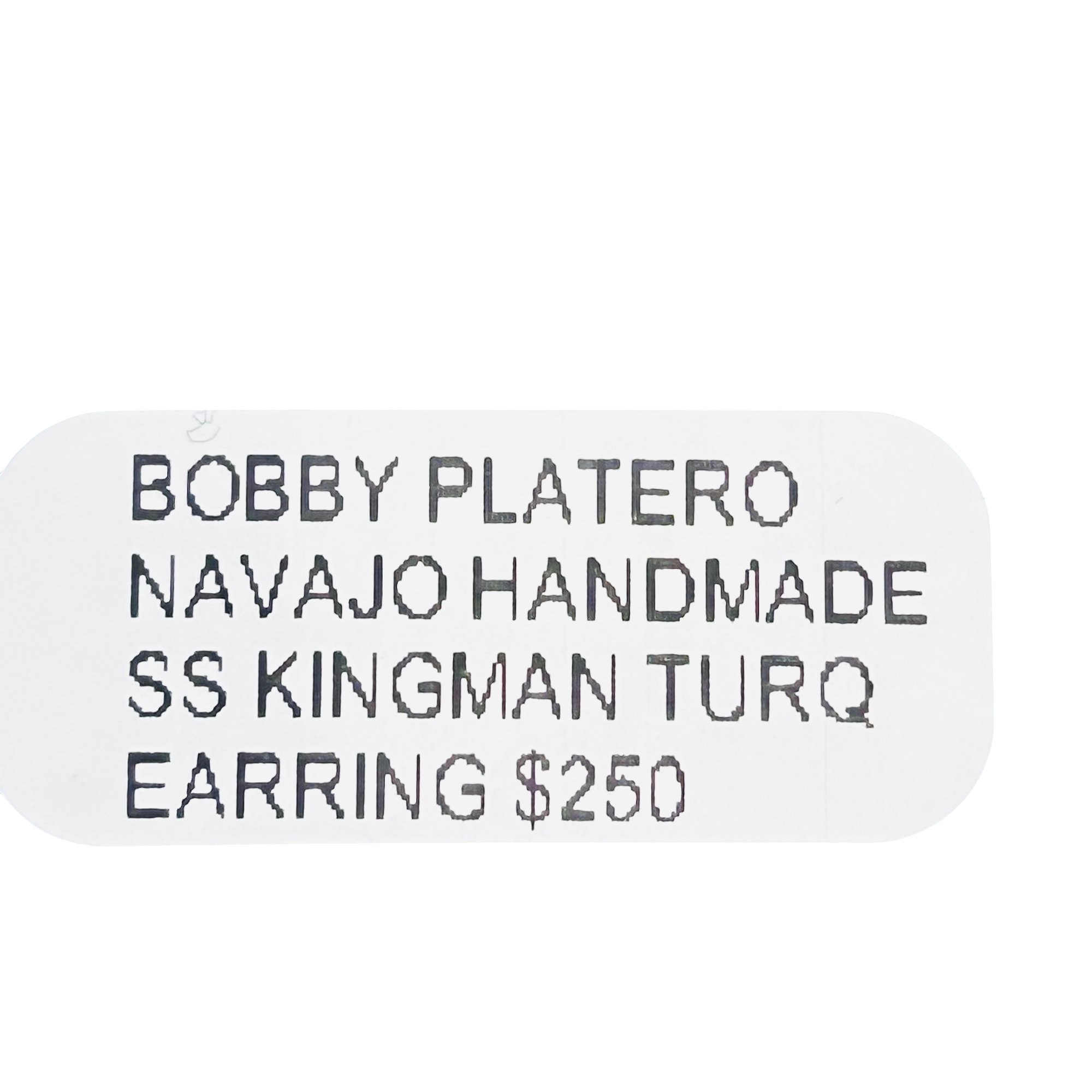 Bobby Platero Navajo Sterling Kingman Turquoise cowboy hat hook back Earrings 13.3 grams