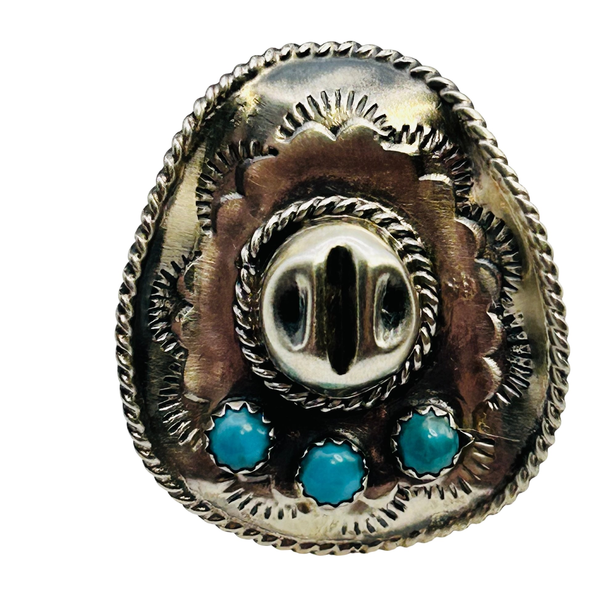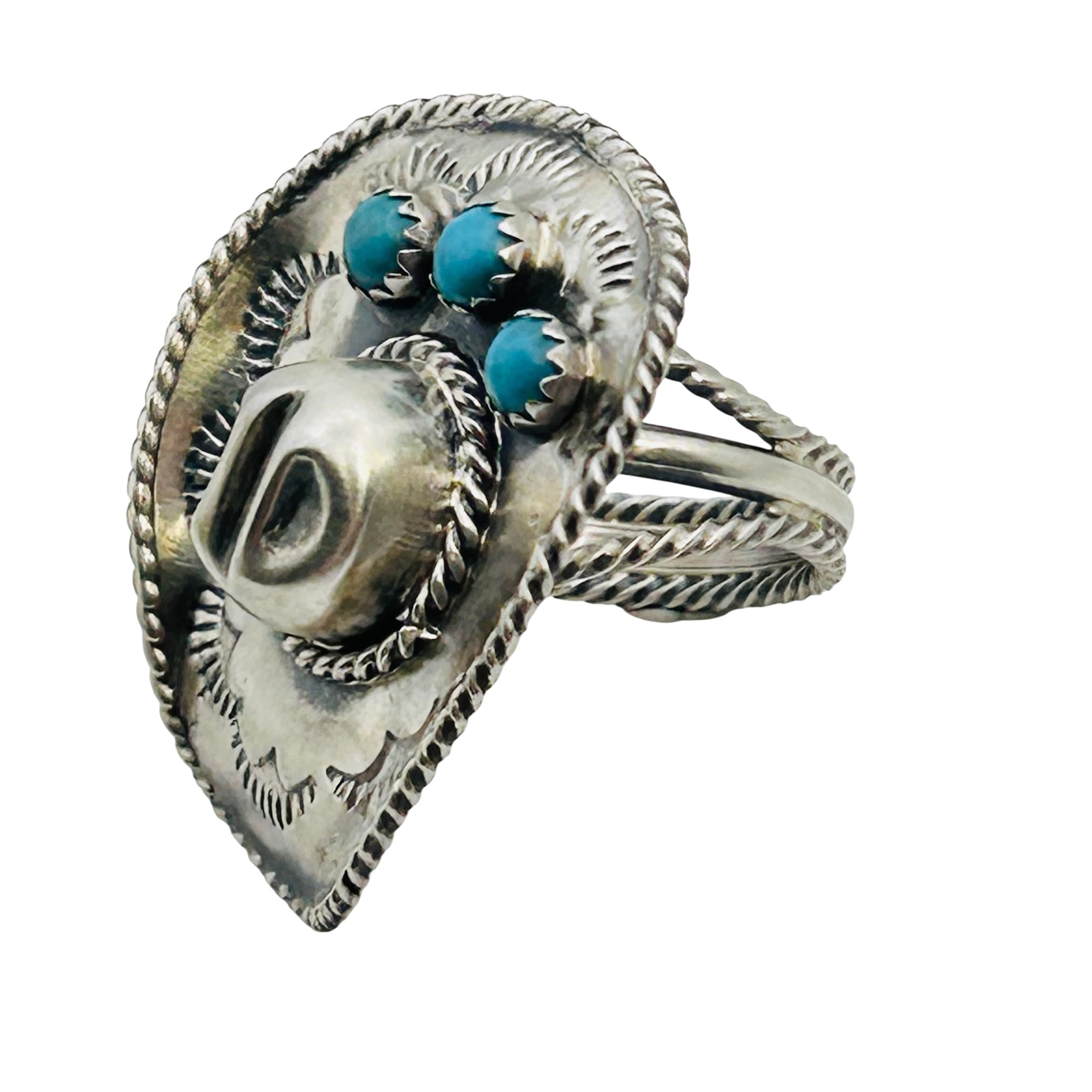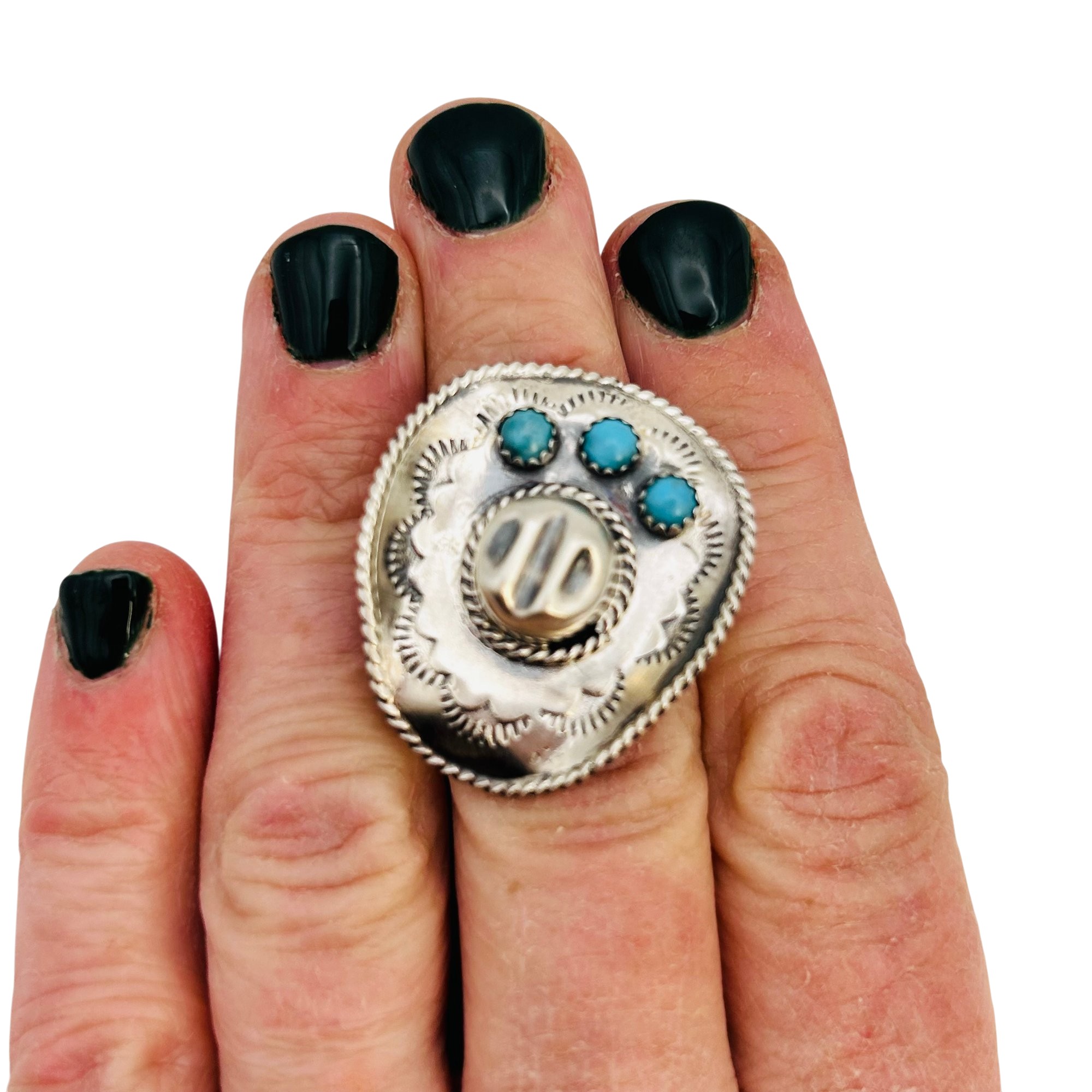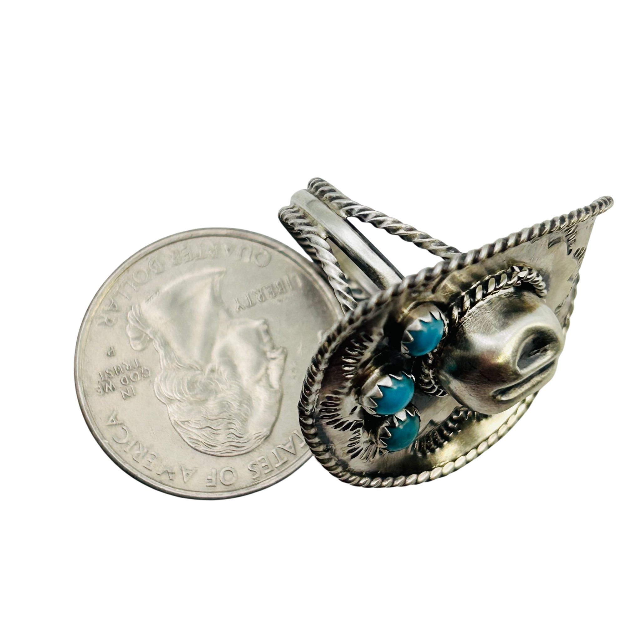 Bobby Platero Navajo Sterling Kingman Turquoise Cowboy Hat Ring Sz. 5