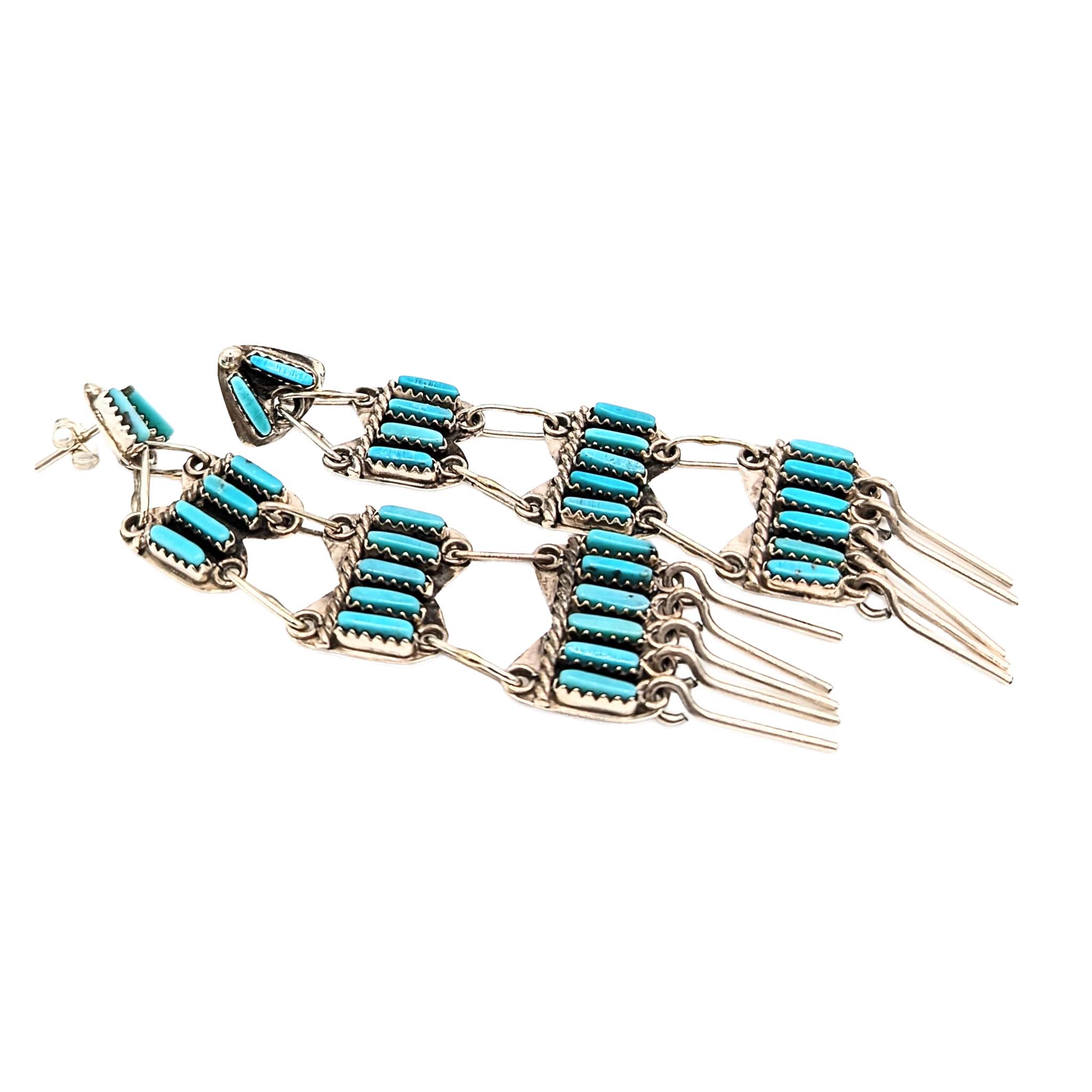 Evonne Rogers Navajo Signed GF .925 Sterling Silver Turquoise Dangle Earrings with Stud Backs 18g