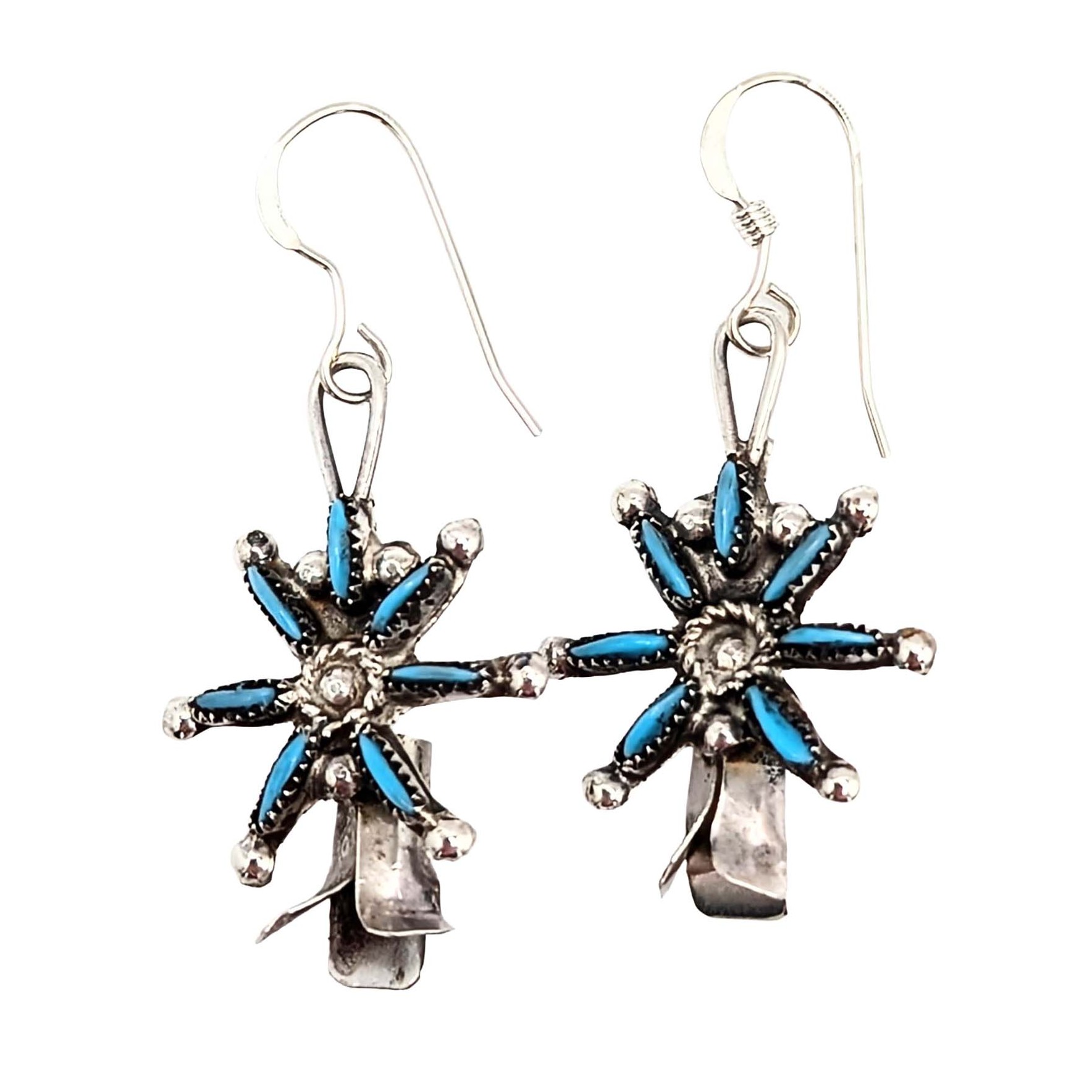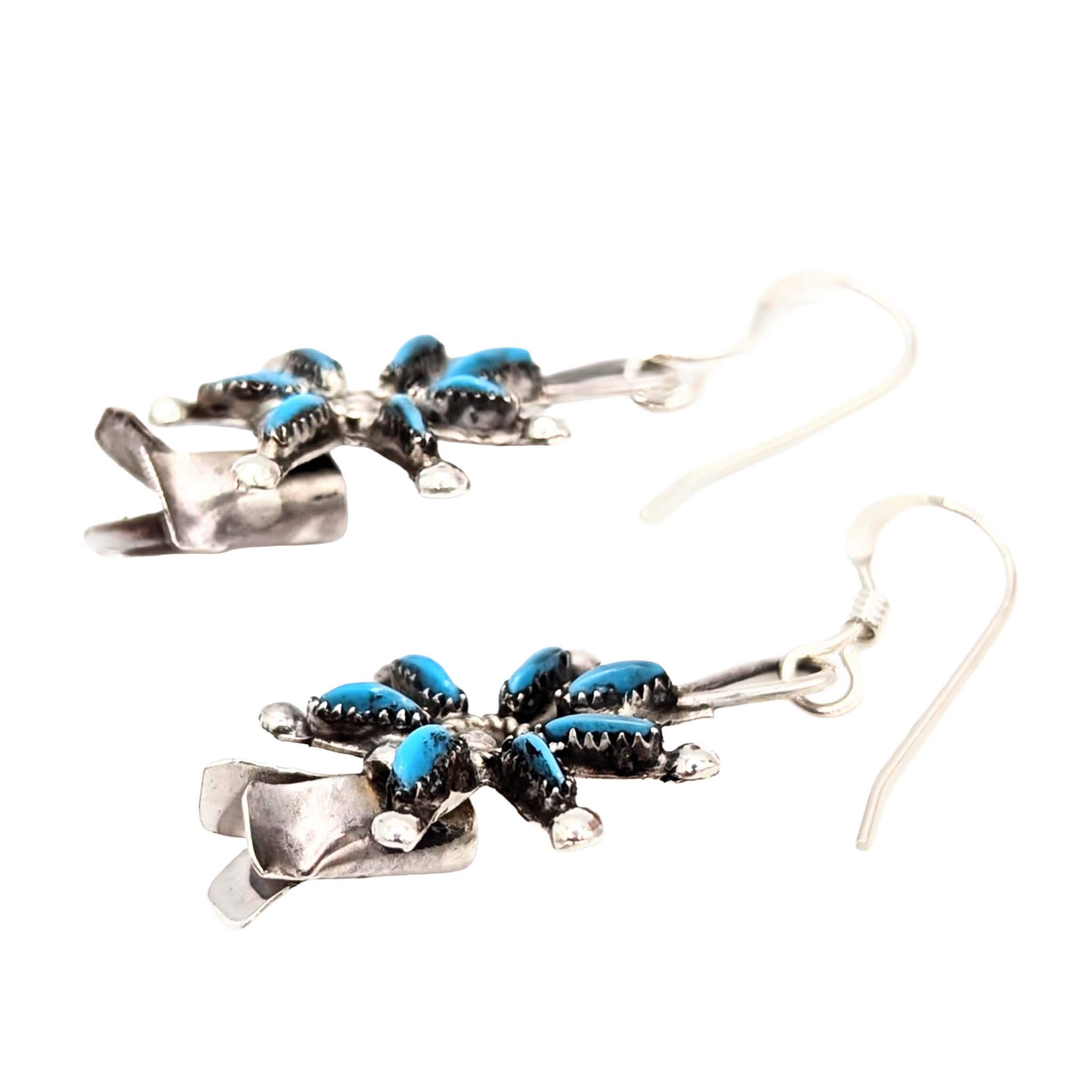 Mark Kee Zuni Sterling Silver Turquoise Squash Blossom Earrings 3g