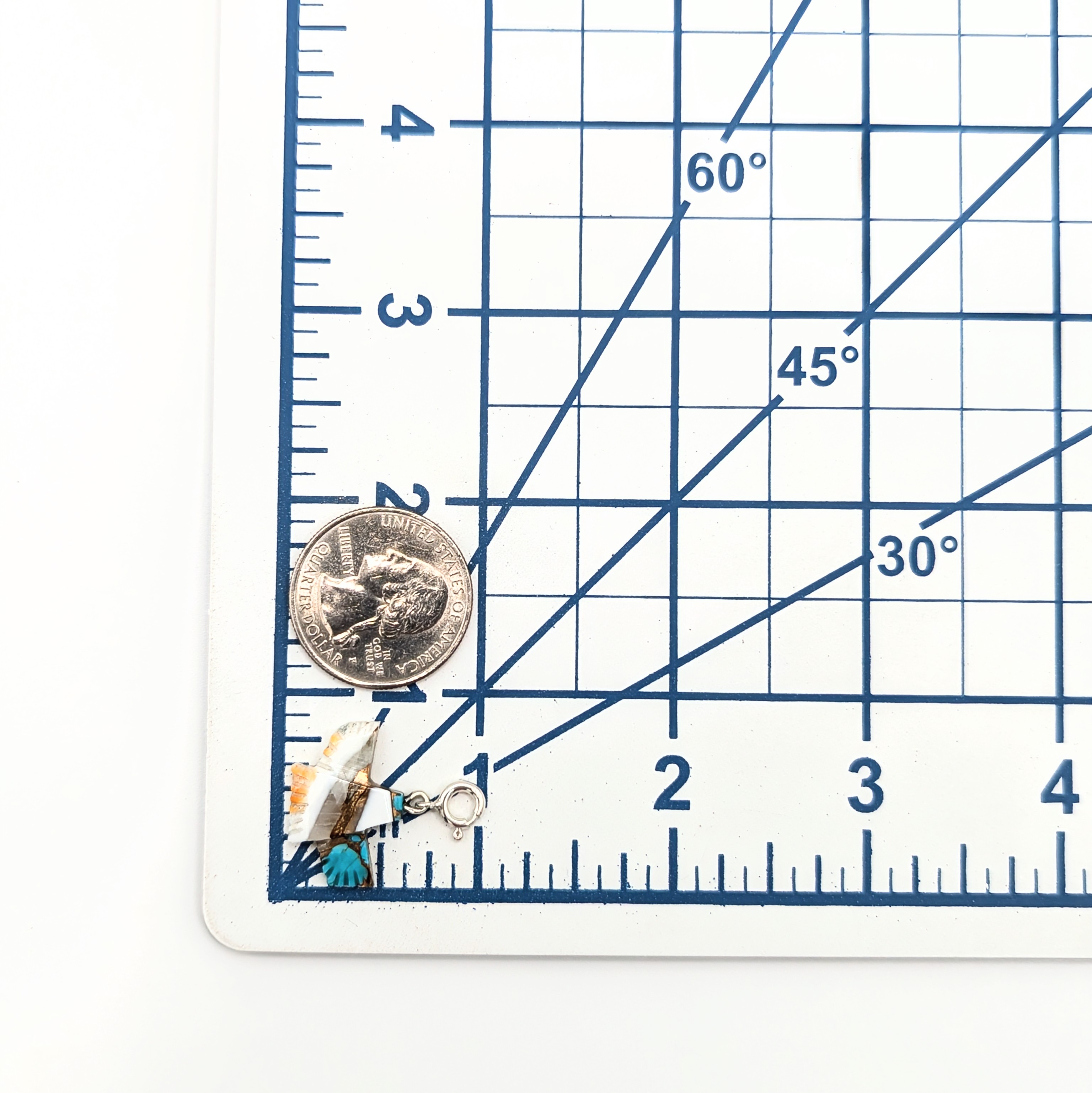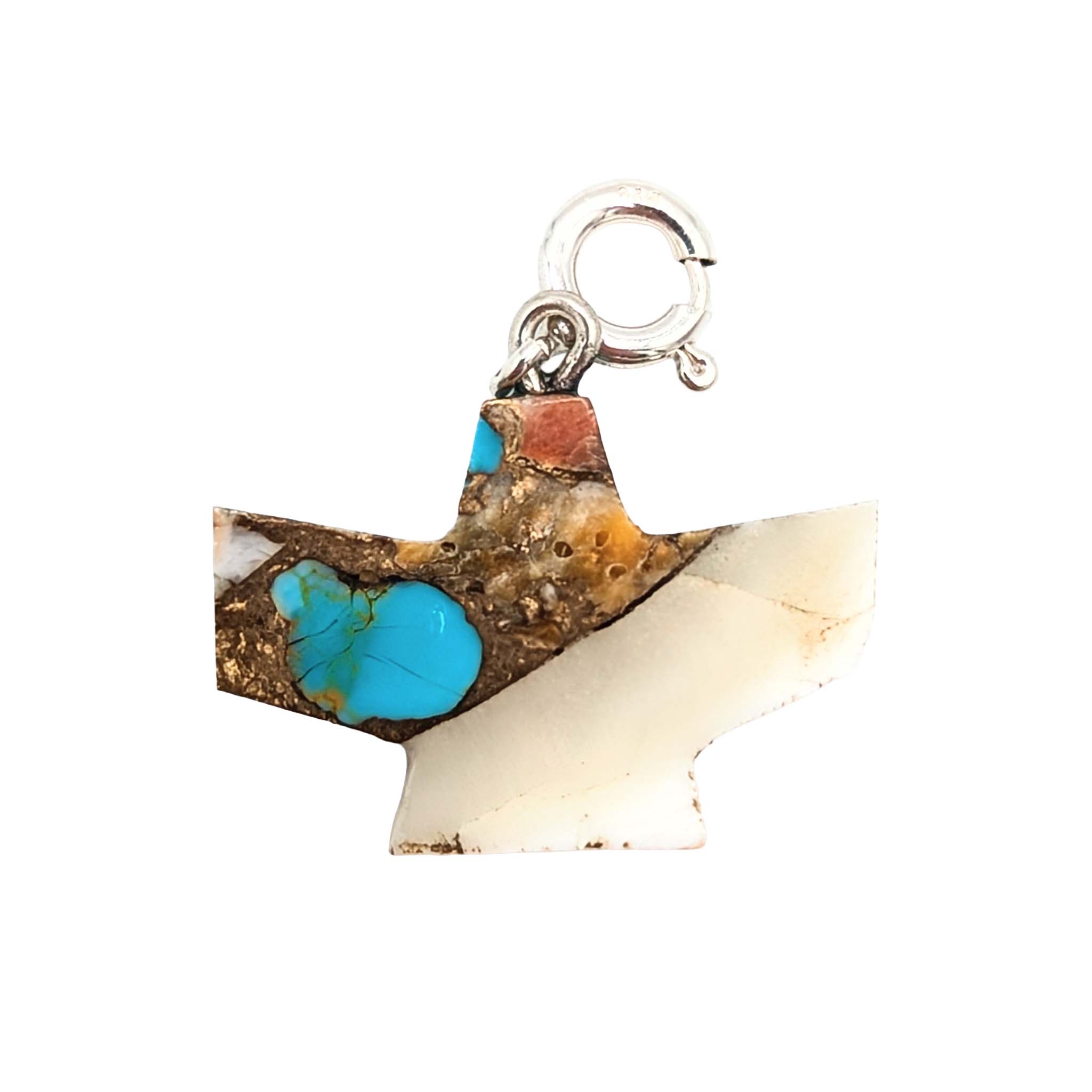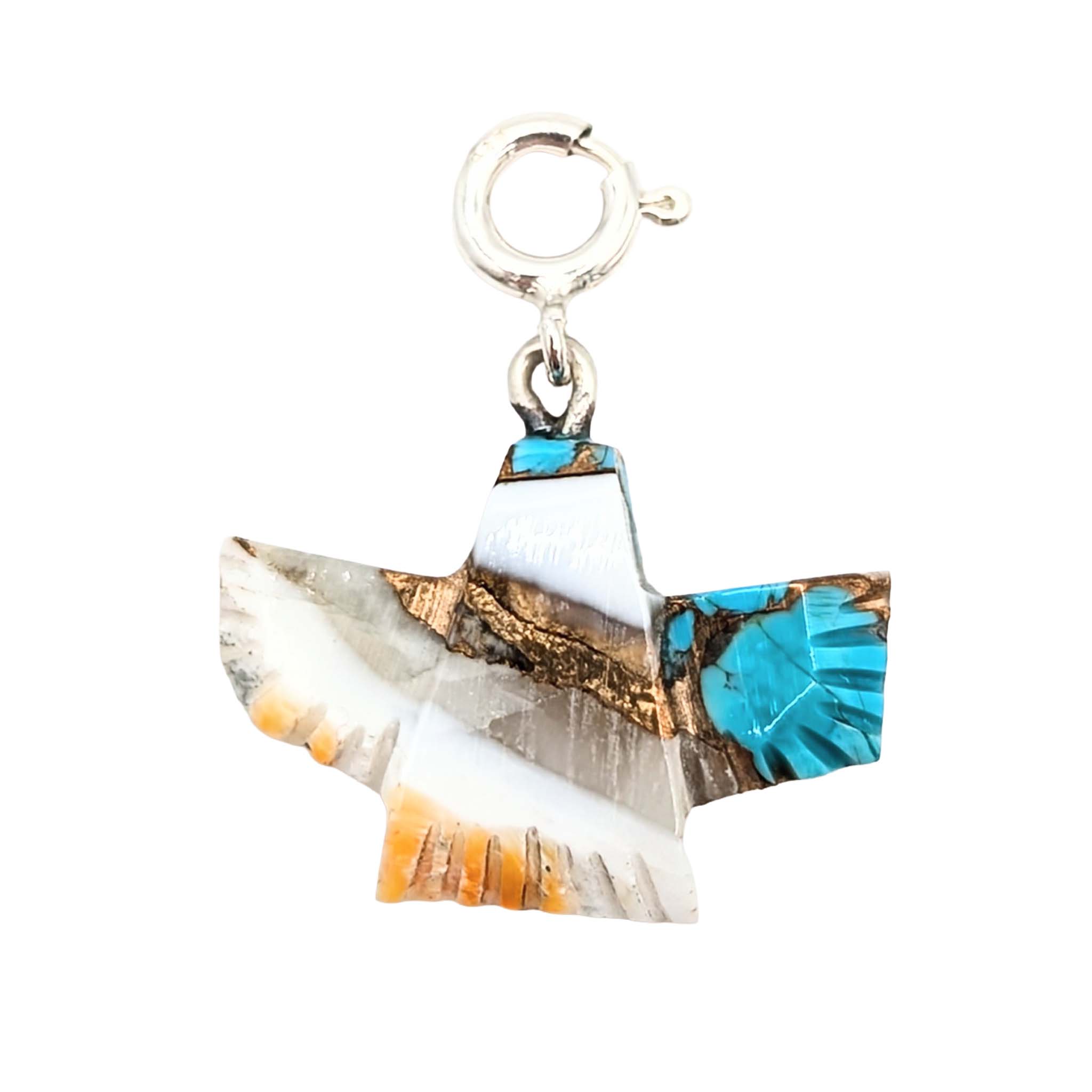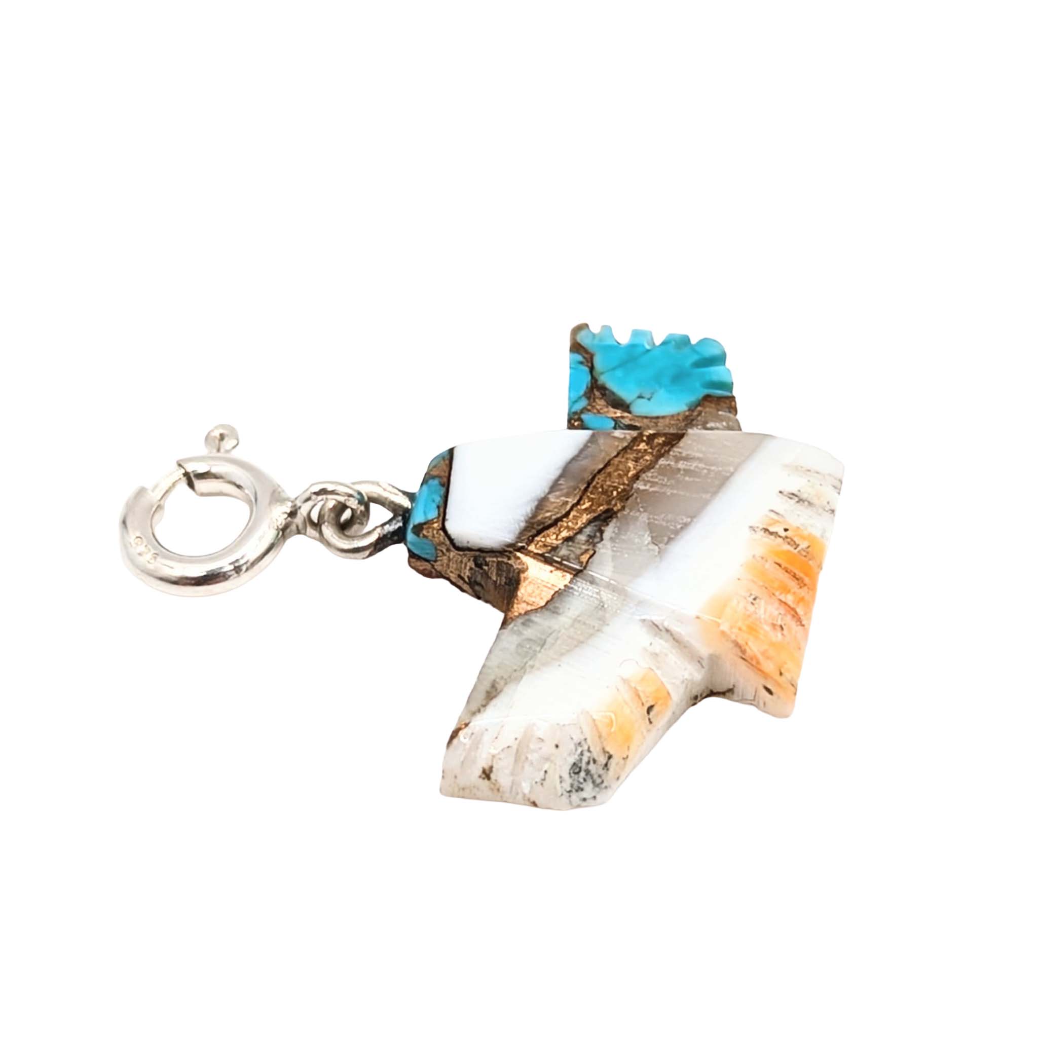 Native Hand Carved Spiny Mojave Turquoise Sterling Silver Knifewing Charm 1.8g