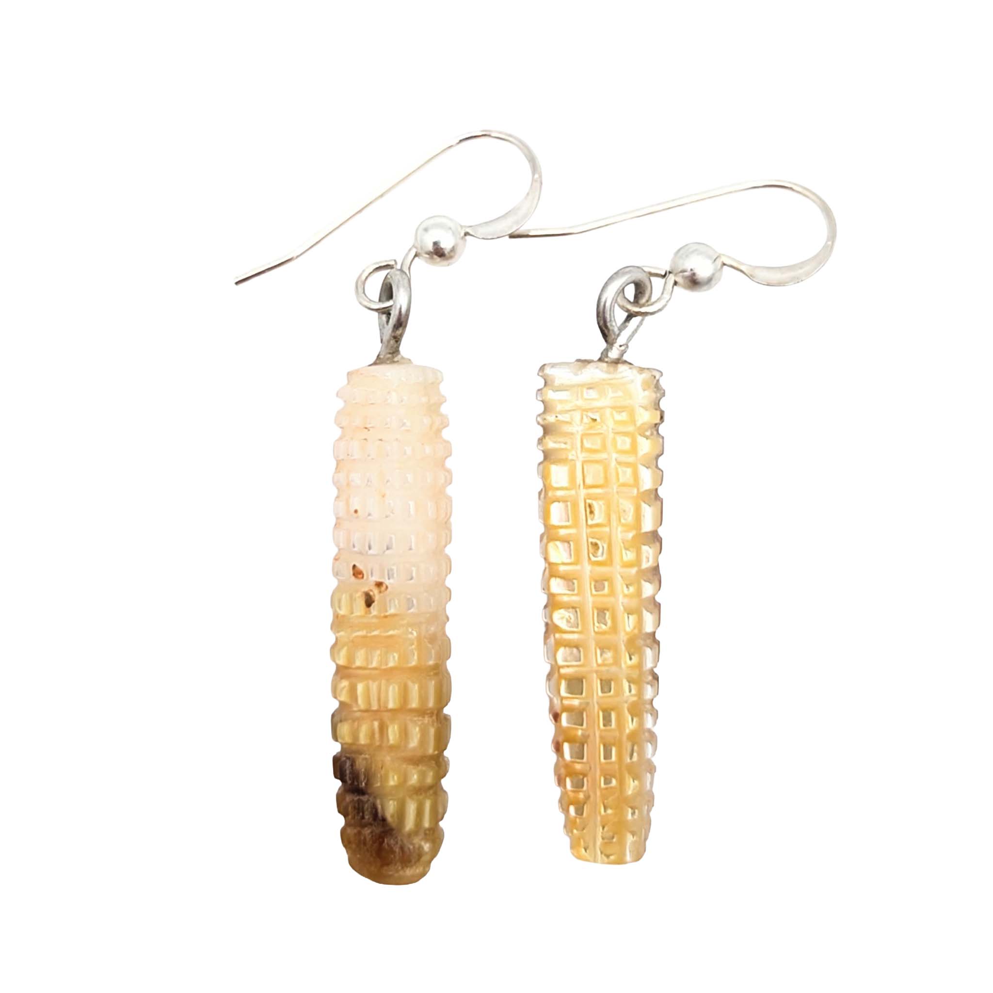 Daniel Aguilar Carved Mother of Pearl Corn Cob Earrings with Sterling Silver findings 4.6g