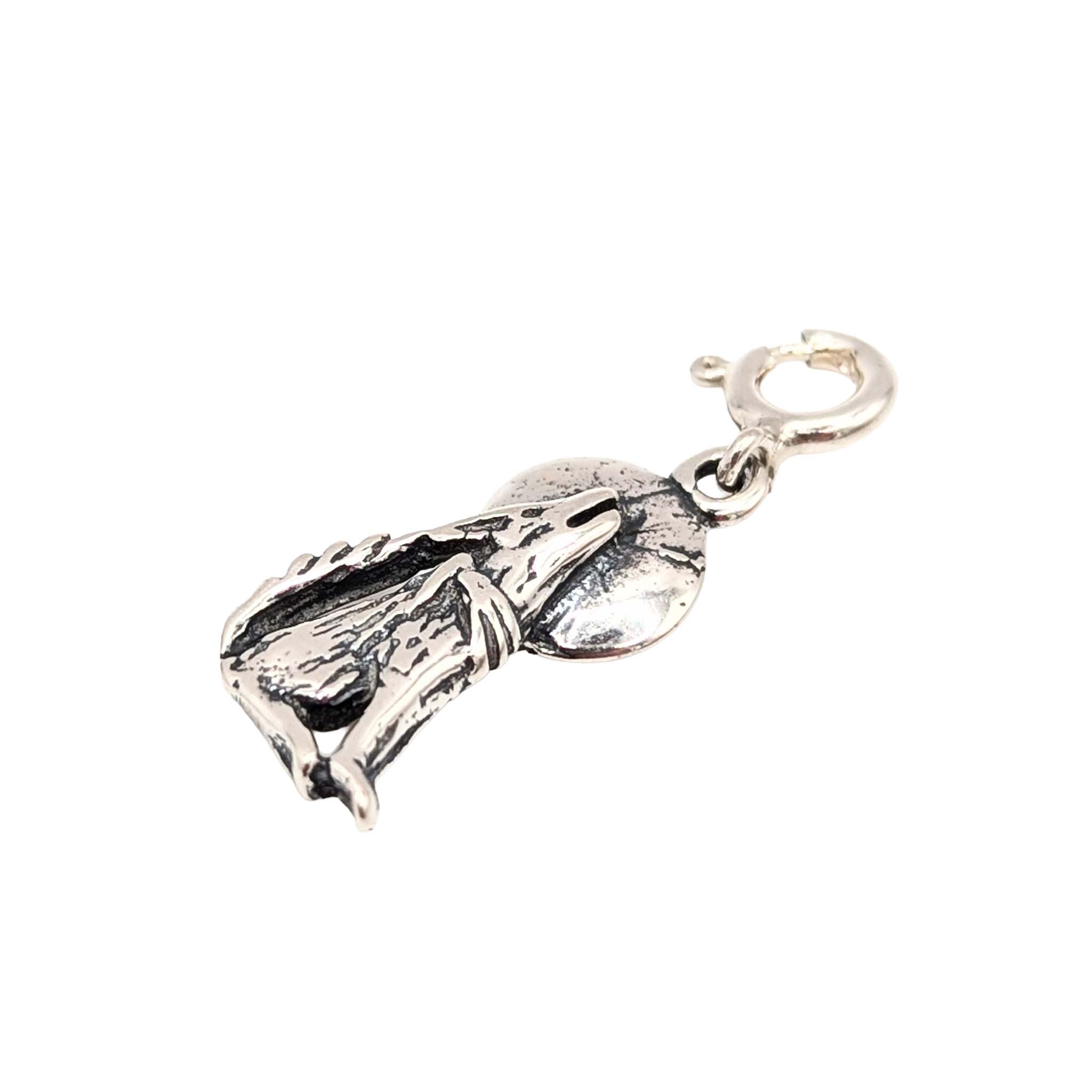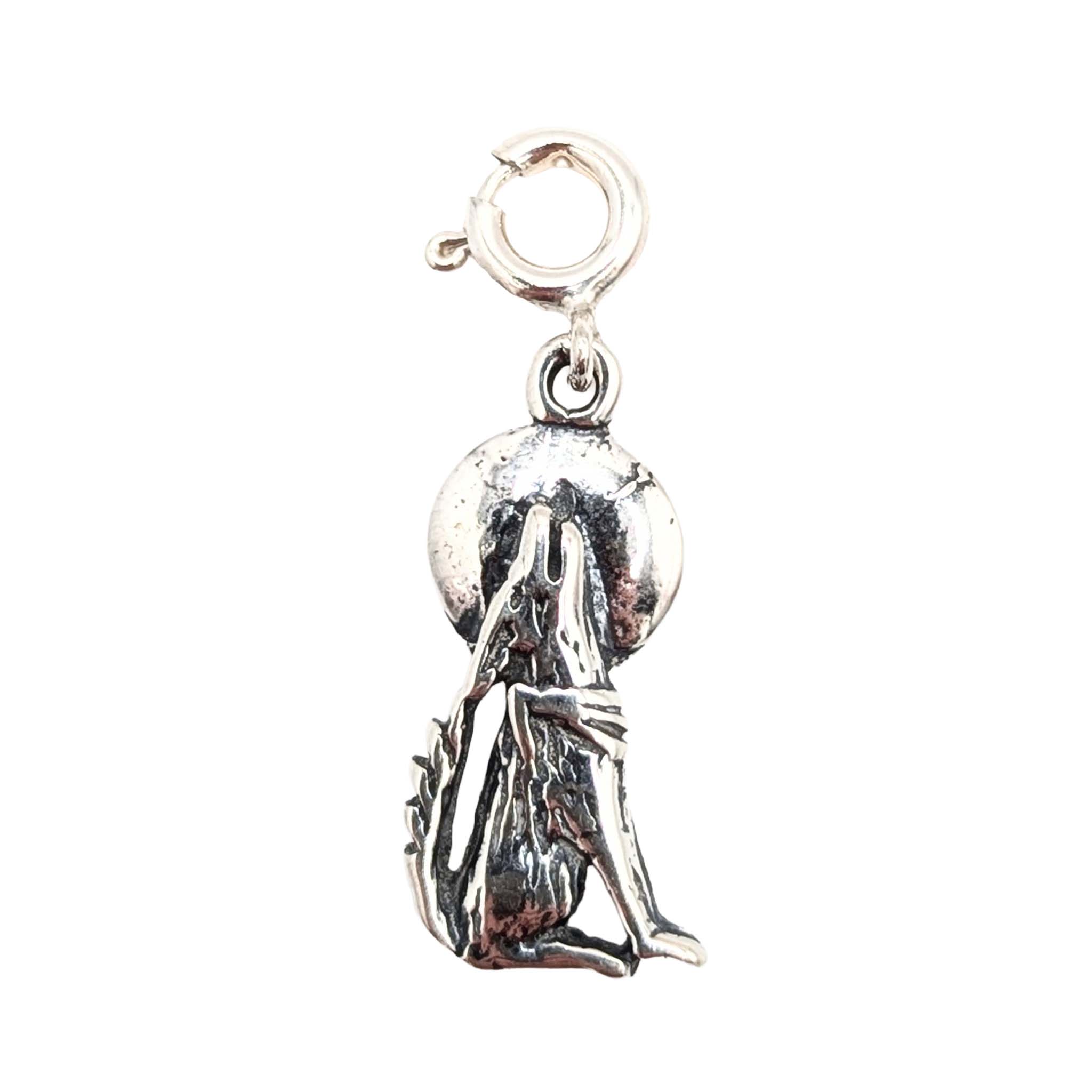 Native Made Sterling Silver Wolf Howling at the Moon Charm 1.6g