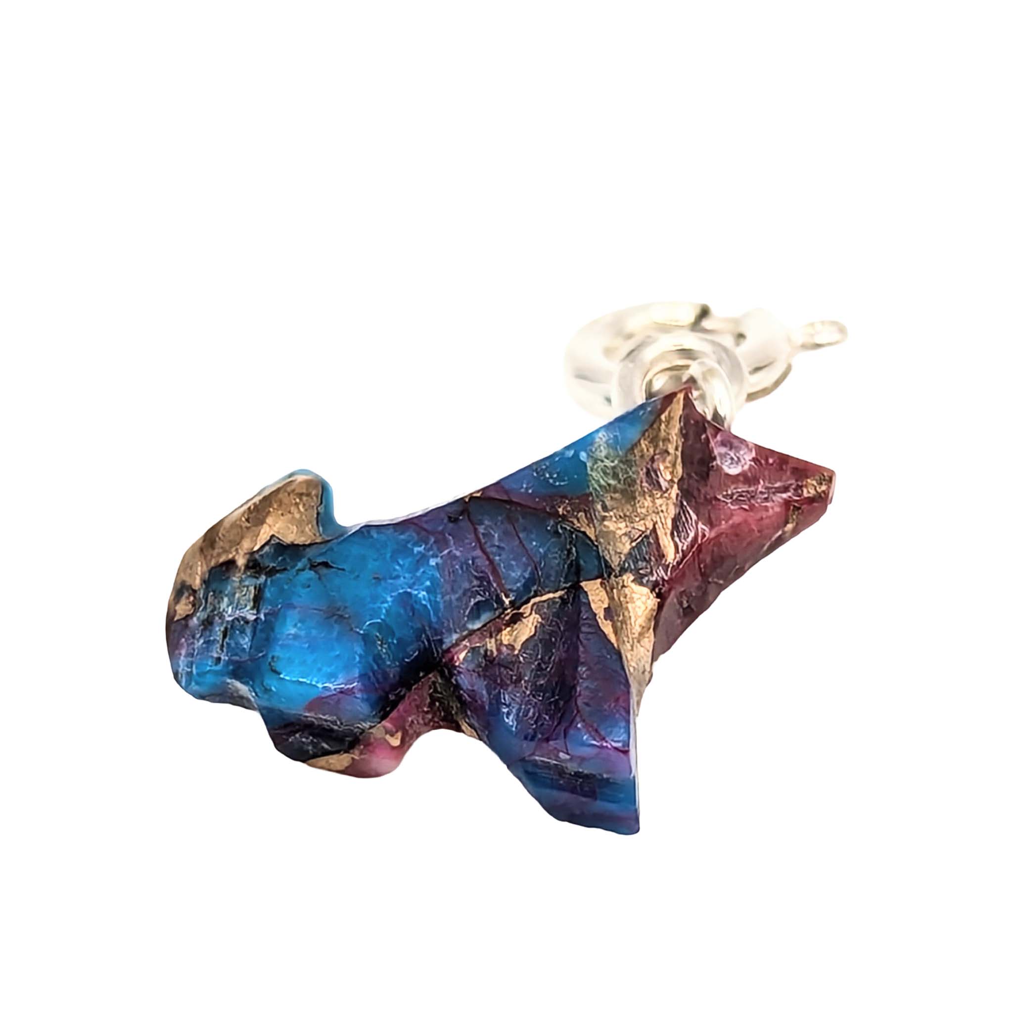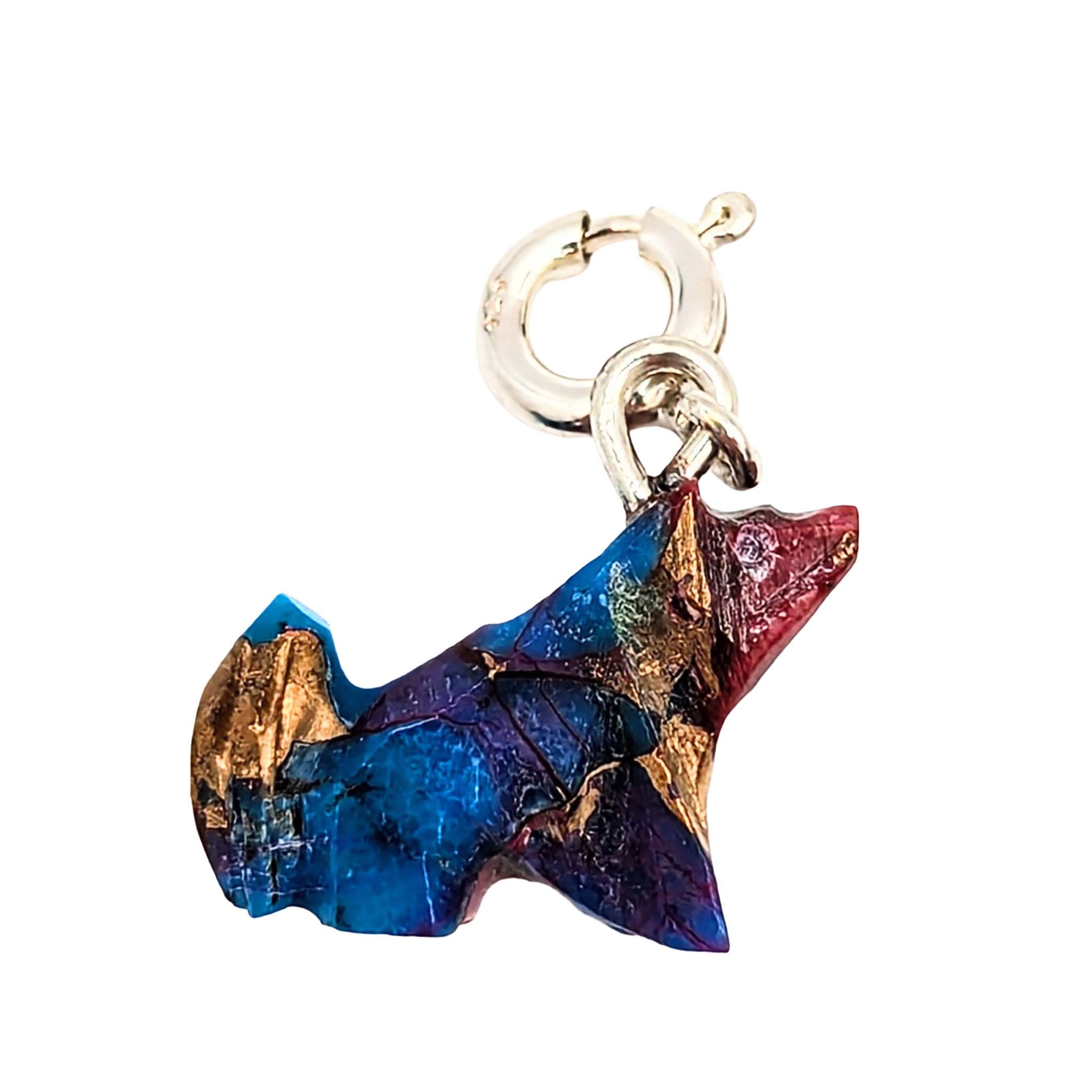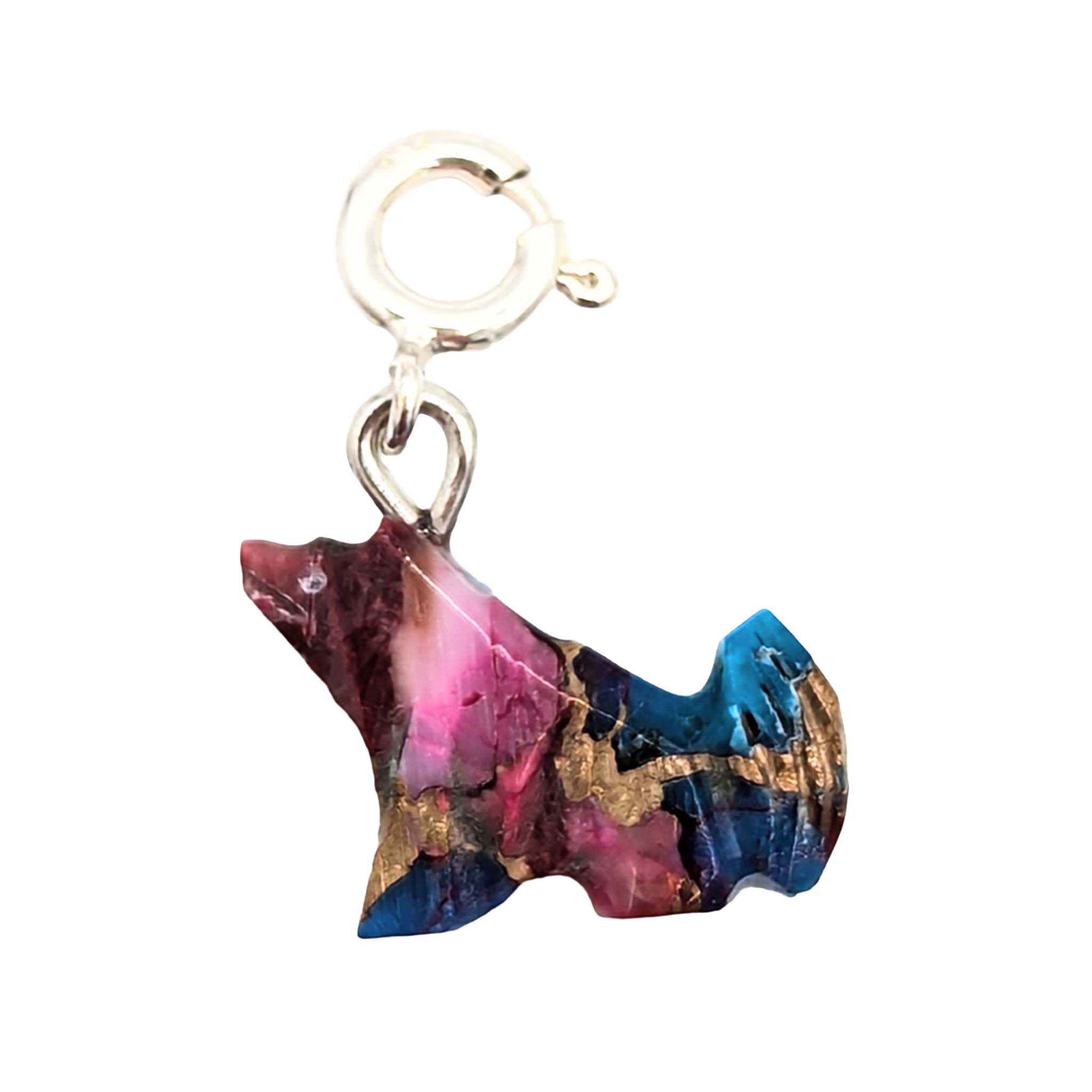 Native Hand Carved Pink Dream Dhalia Turquoise Sterling Silver Howling Wolf Charm 1g