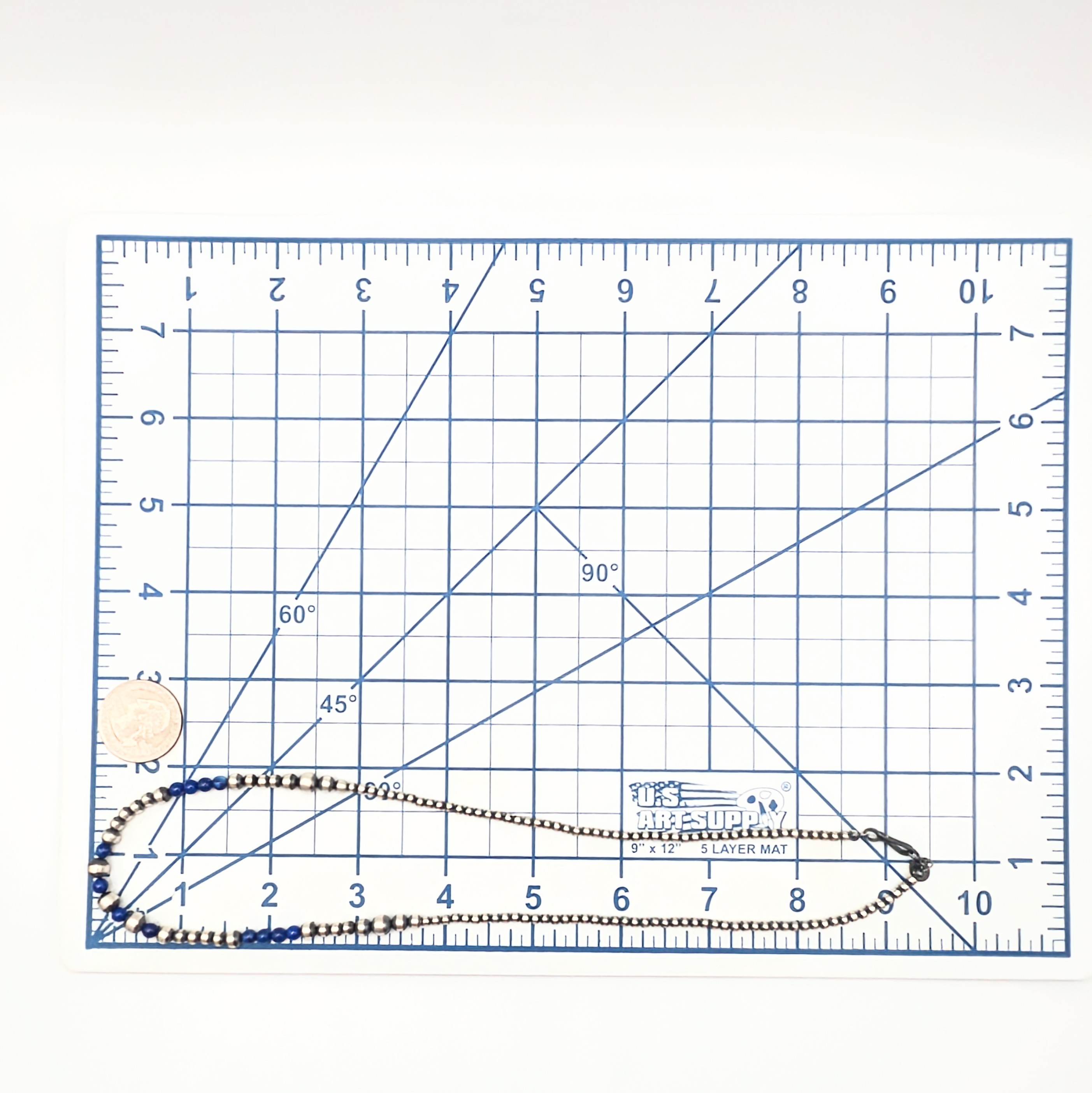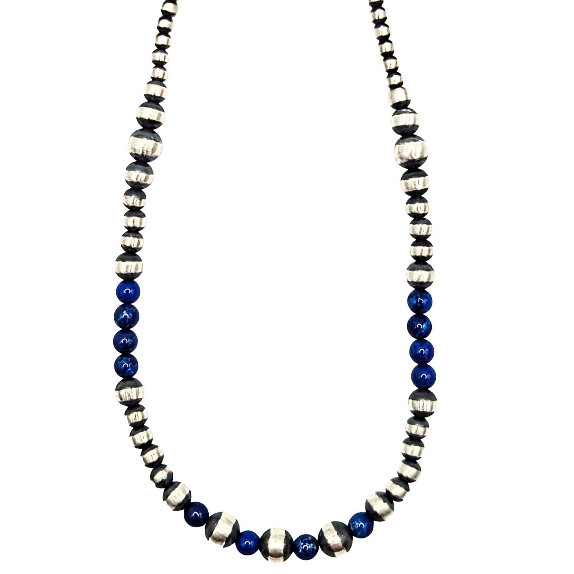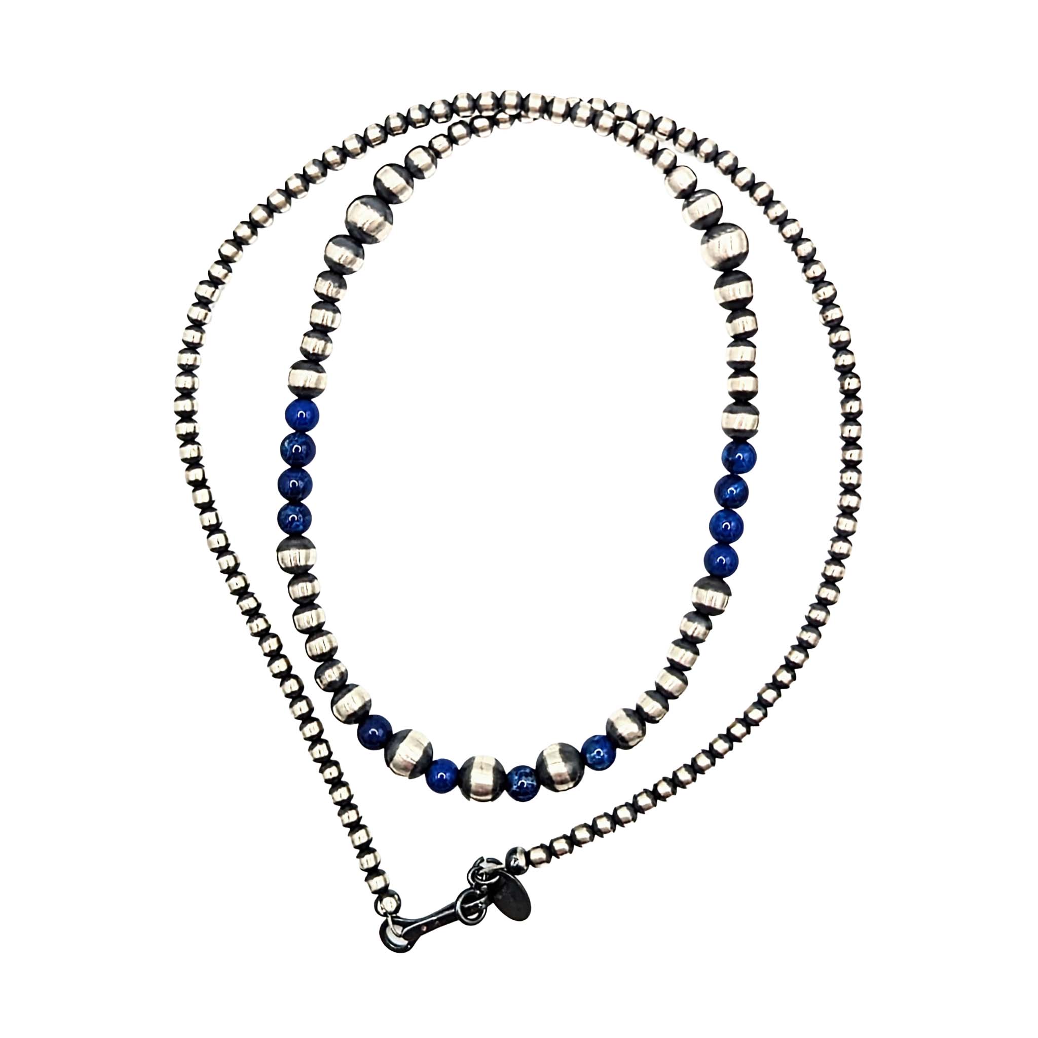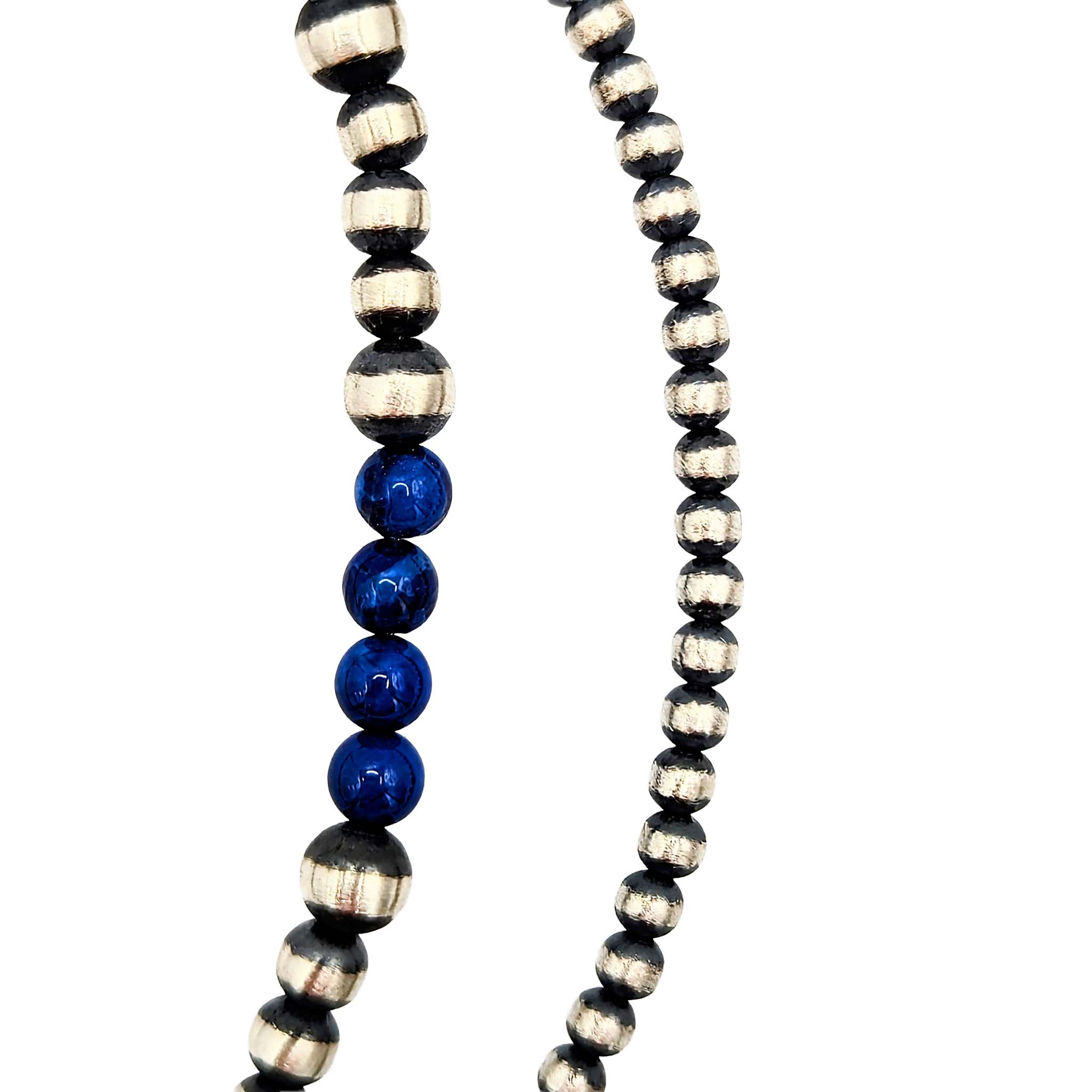 Native Made Sterling Silver Lapis Bead Necklace 20in Length