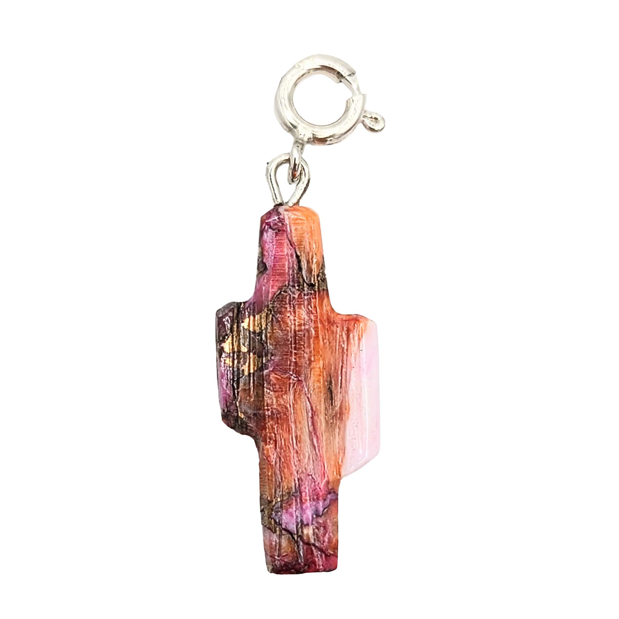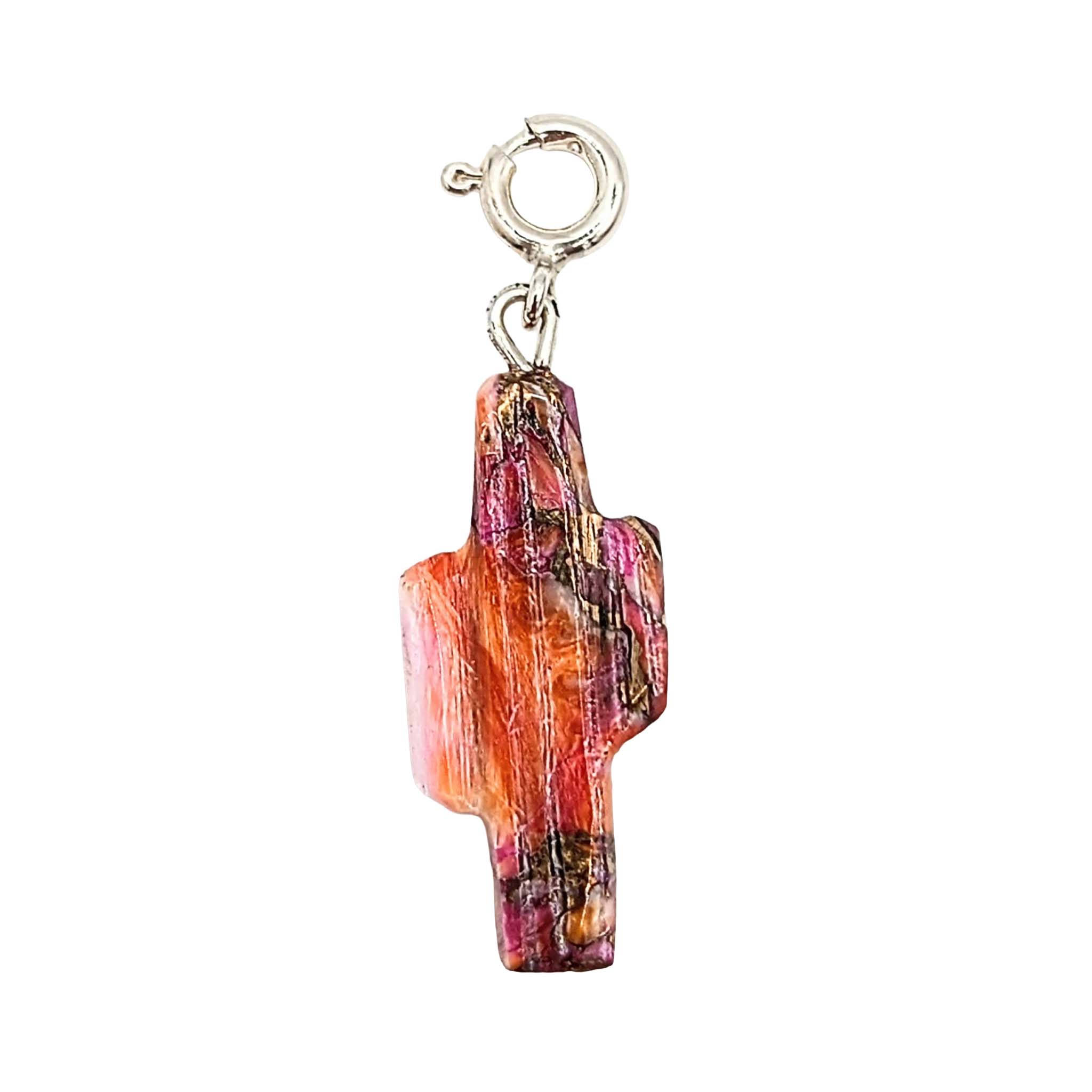 Native Hand Carved Pink Dhalia Turquoise Sterling Silver Cactus Charm