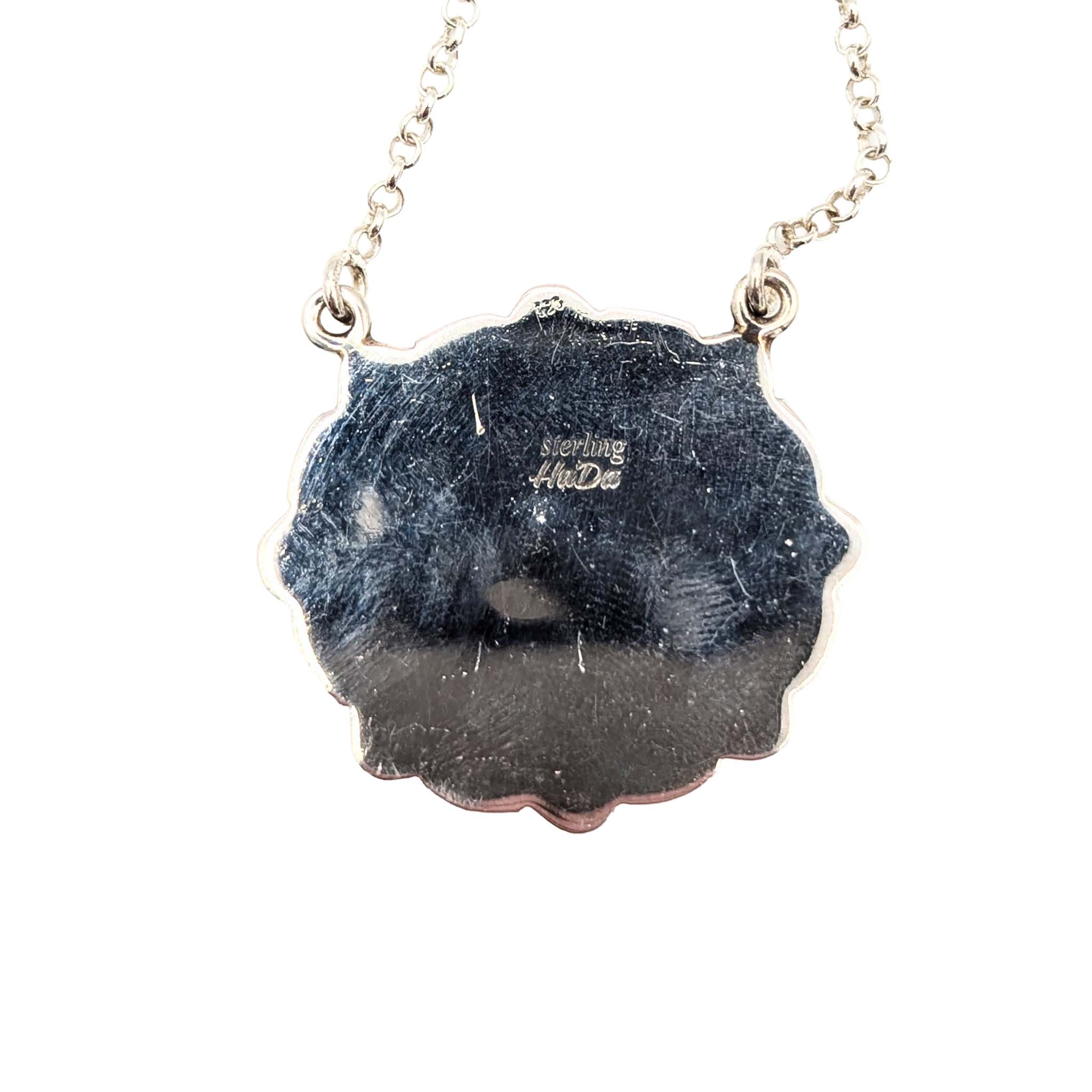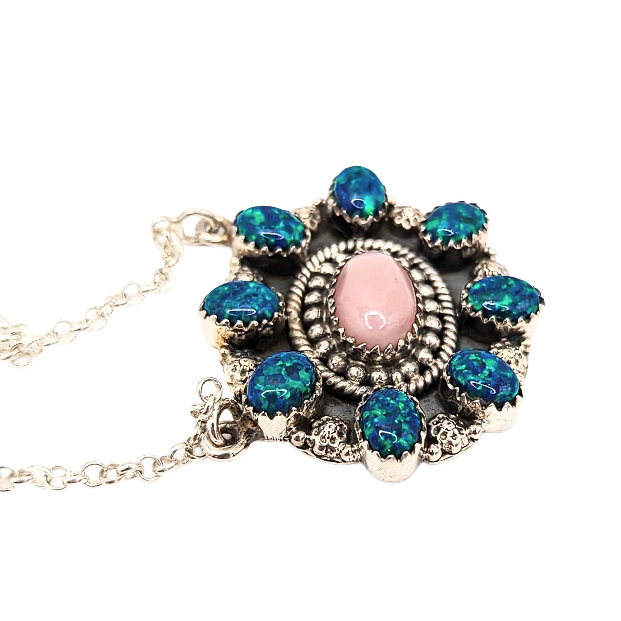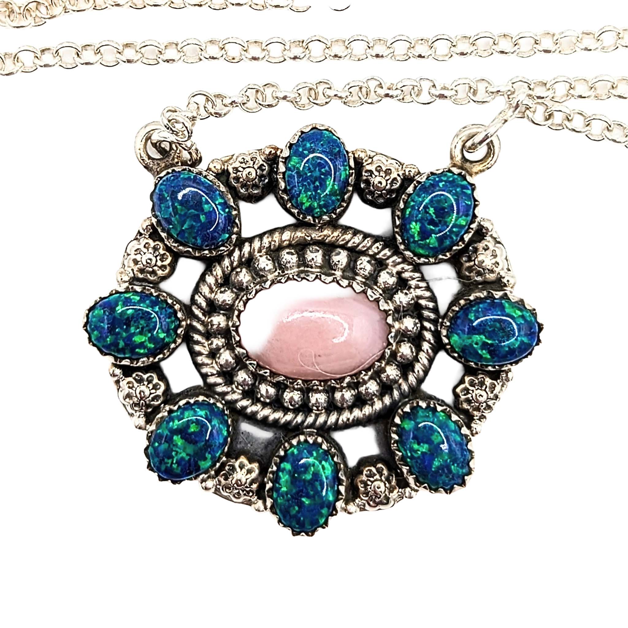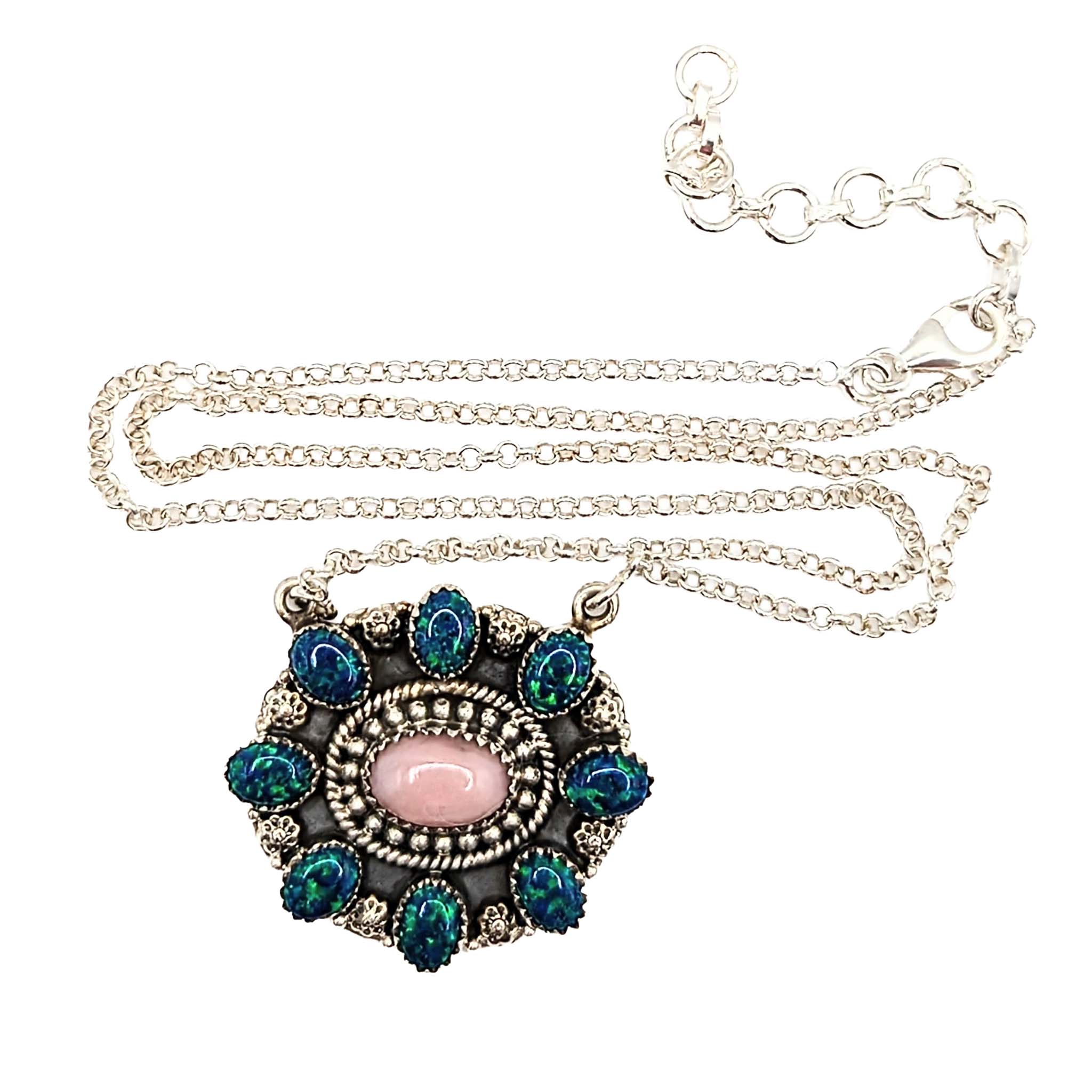 Southwest Sterling Silver Pink Opal Black Opal Necklace Signed Hada Sterling 18-20in Length Adjustable 19.6g