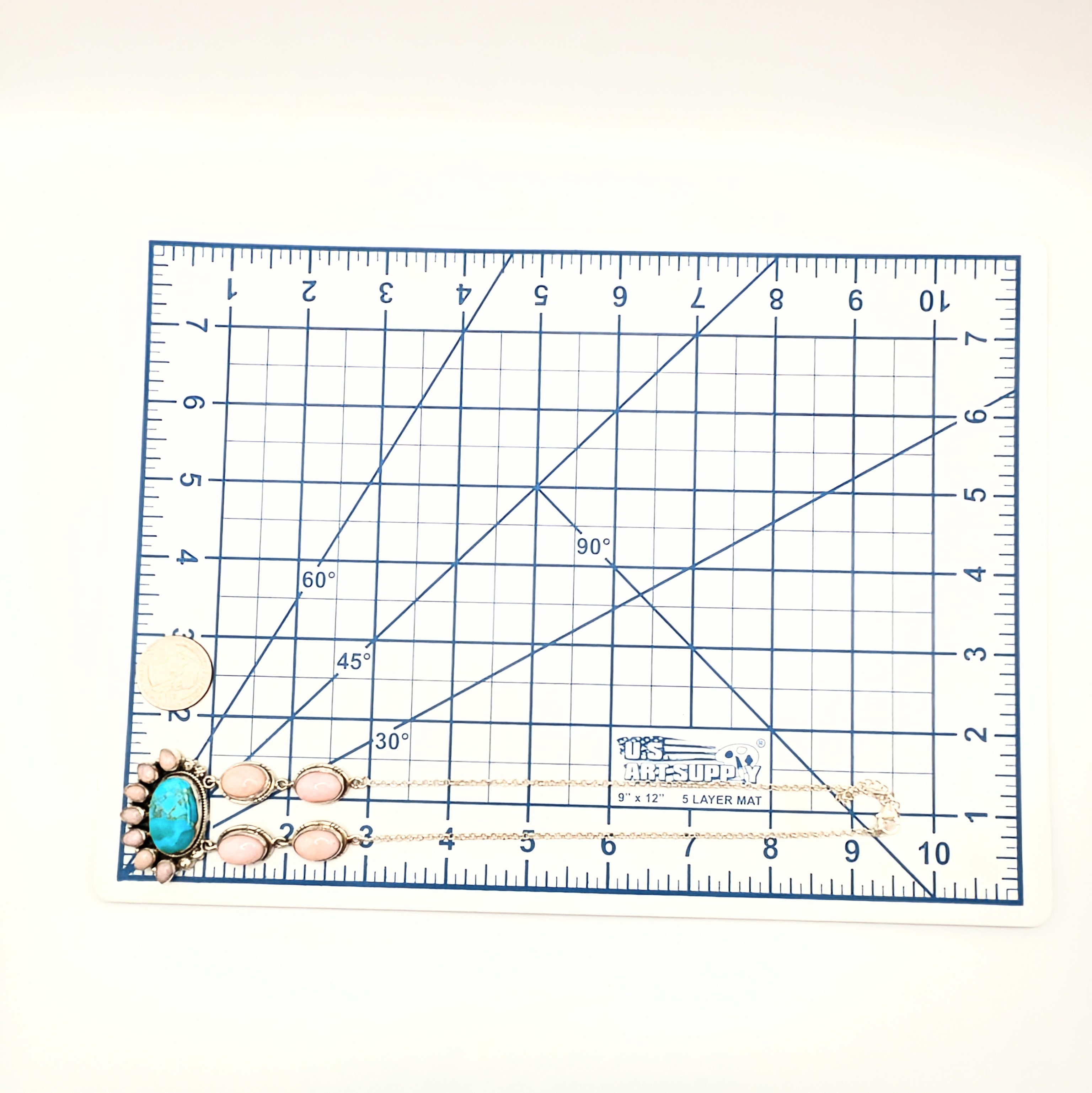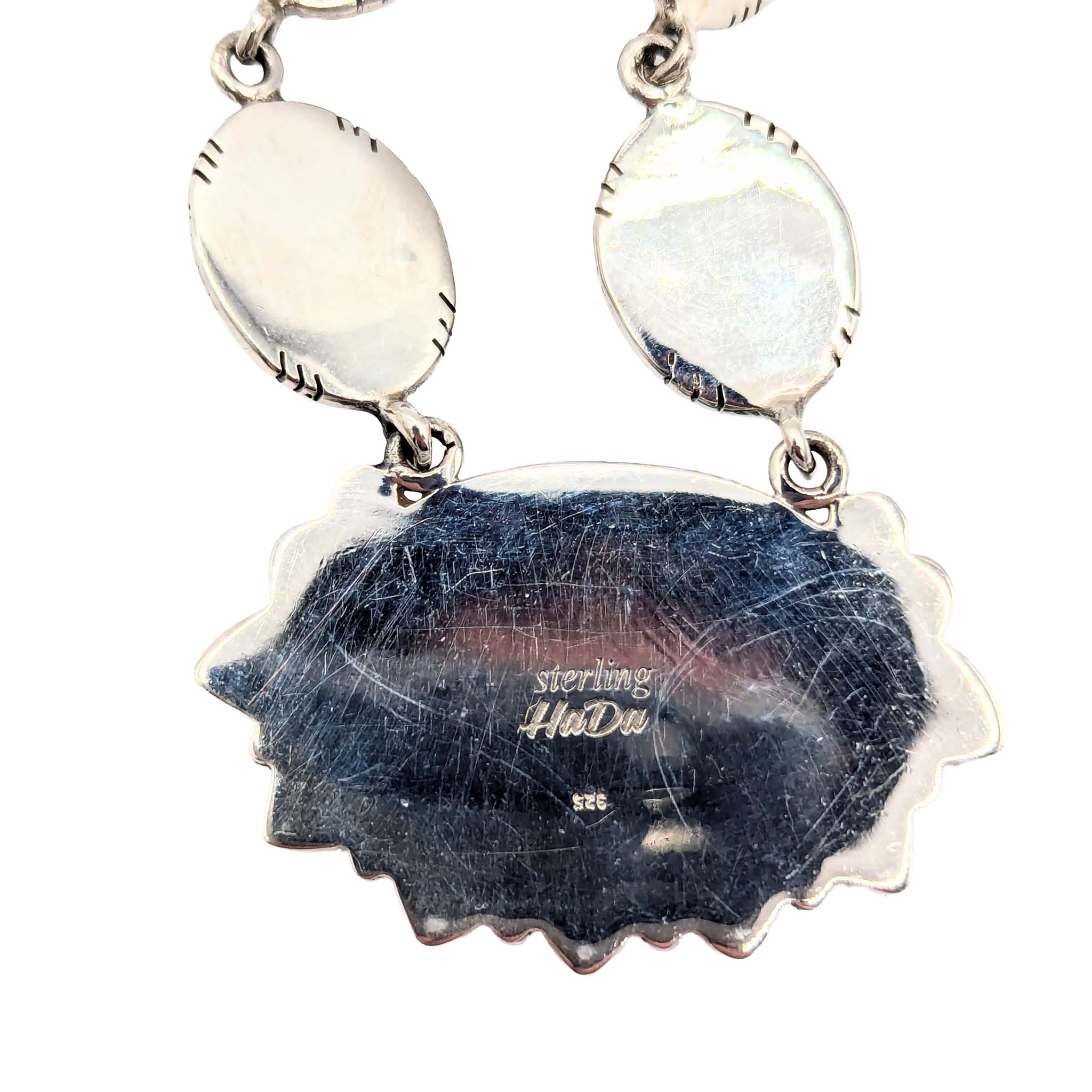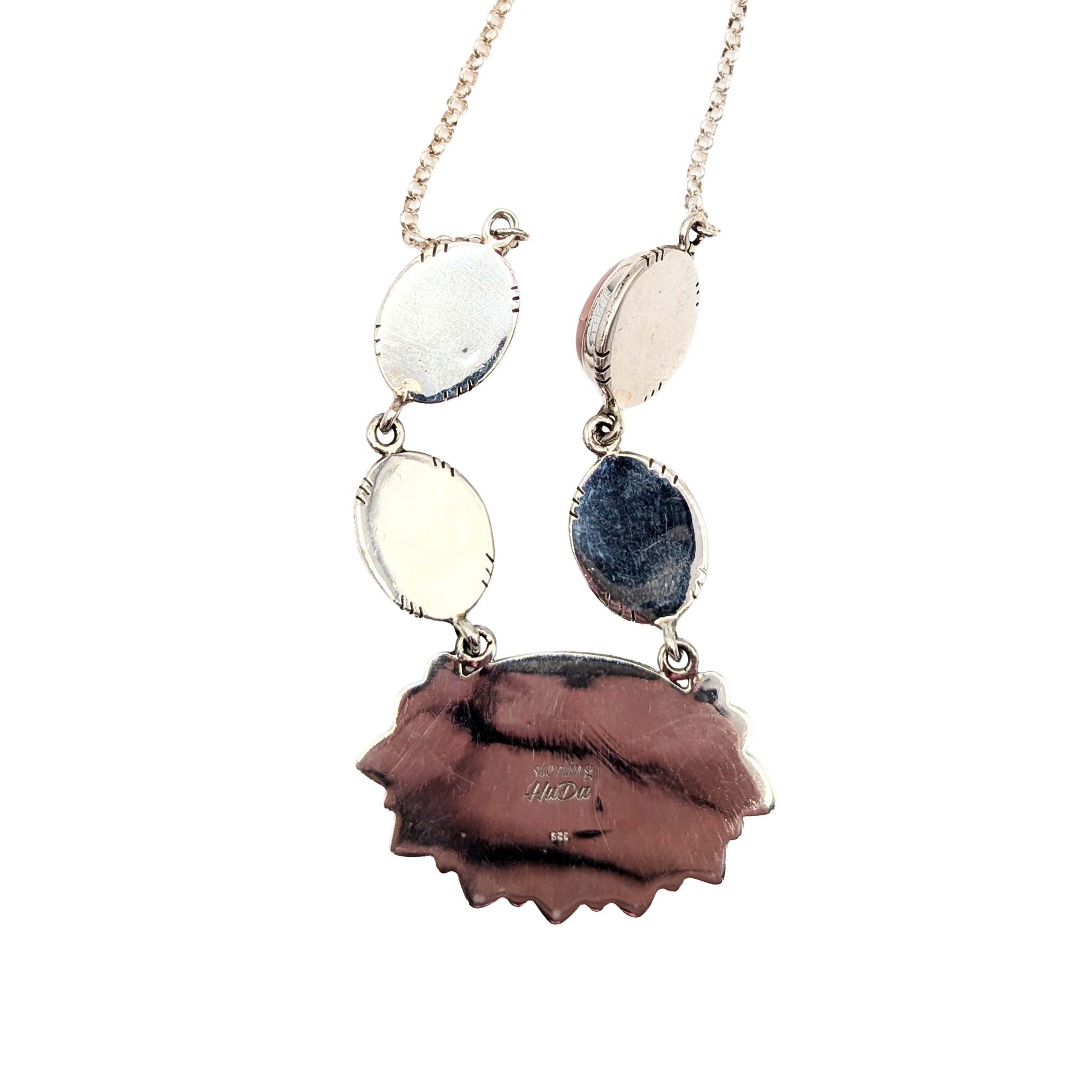 Southwest Sterling Silver Turquoise Pink Opal Necklace Signed Hada Sterling 18-20in Length 31.1g
