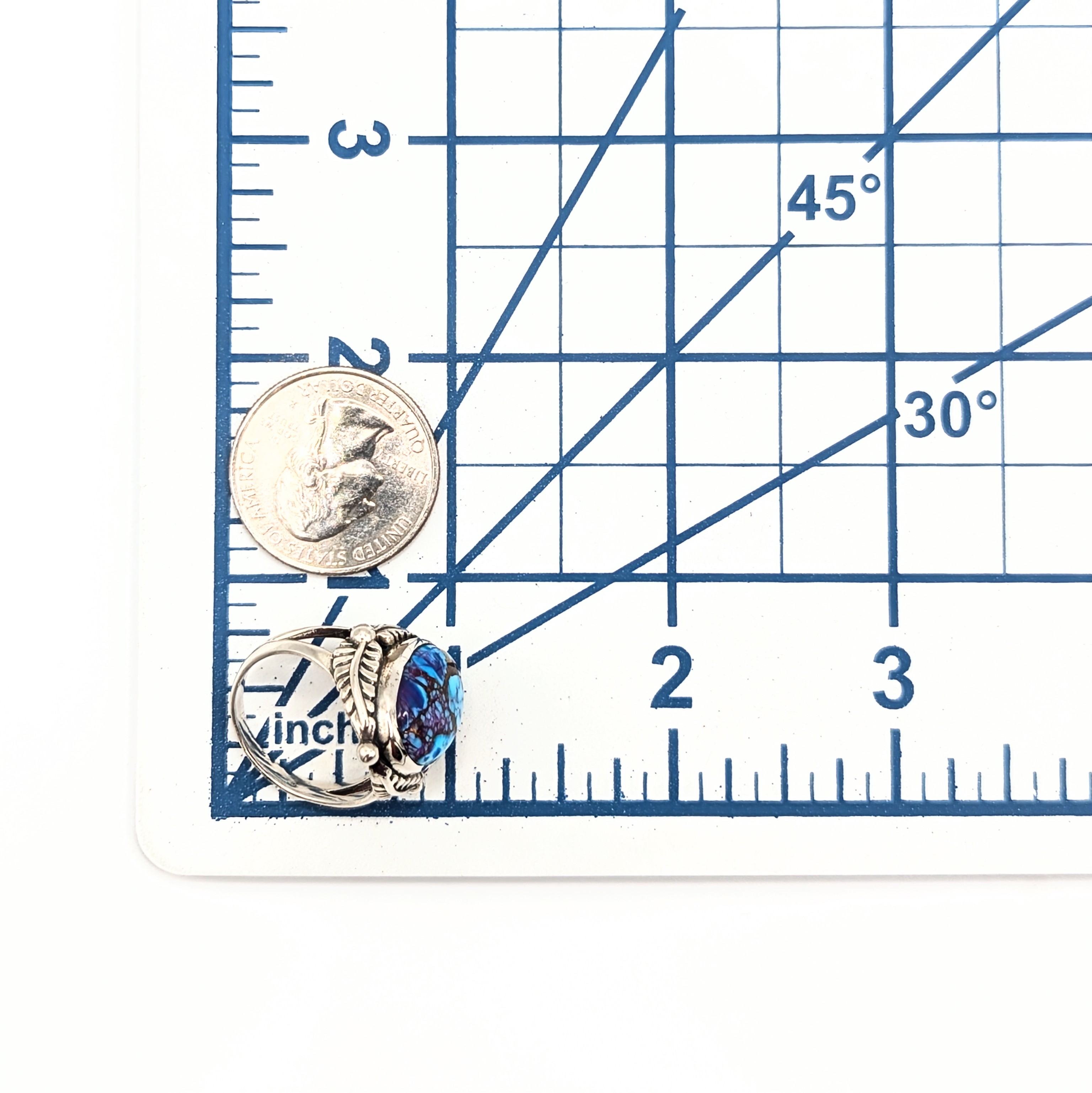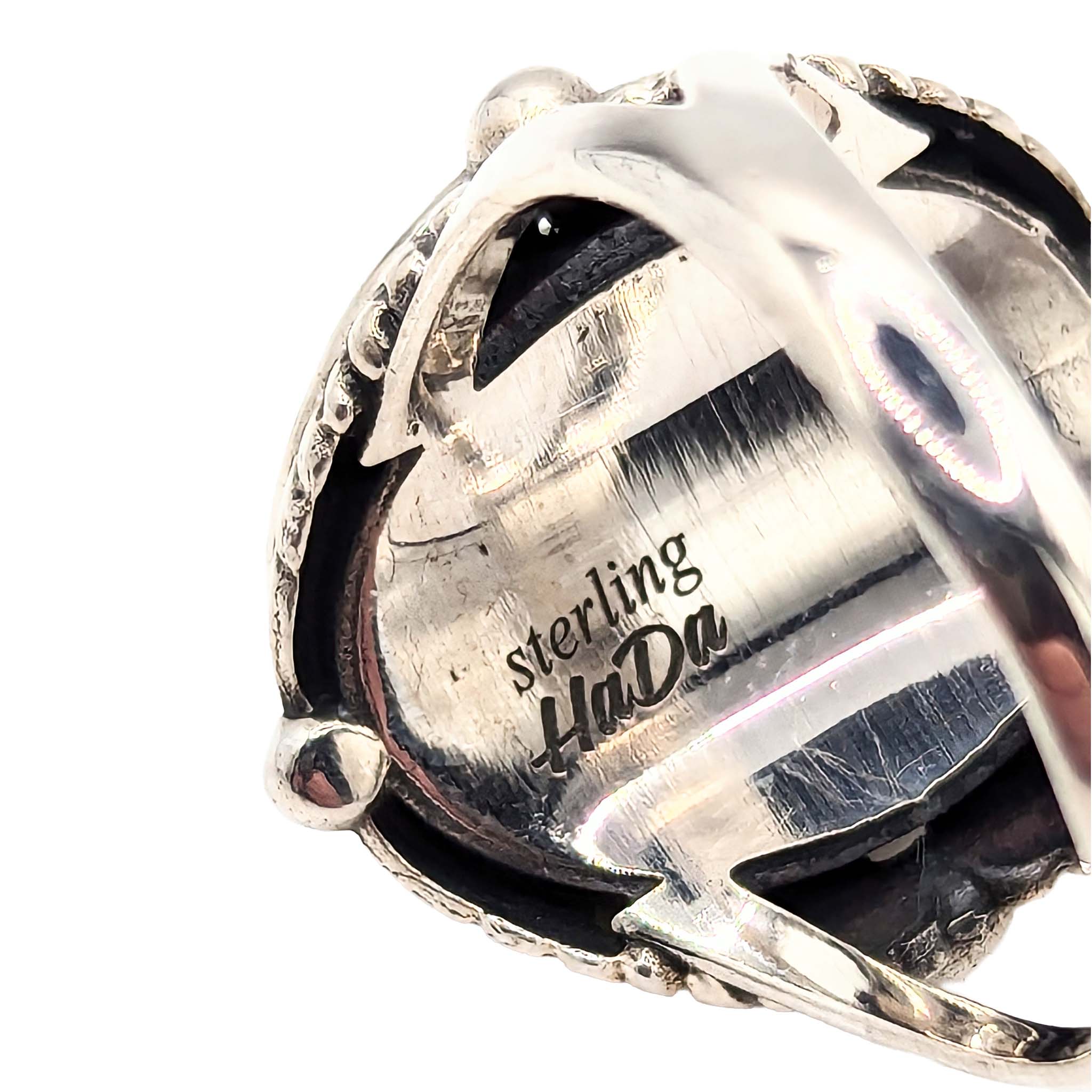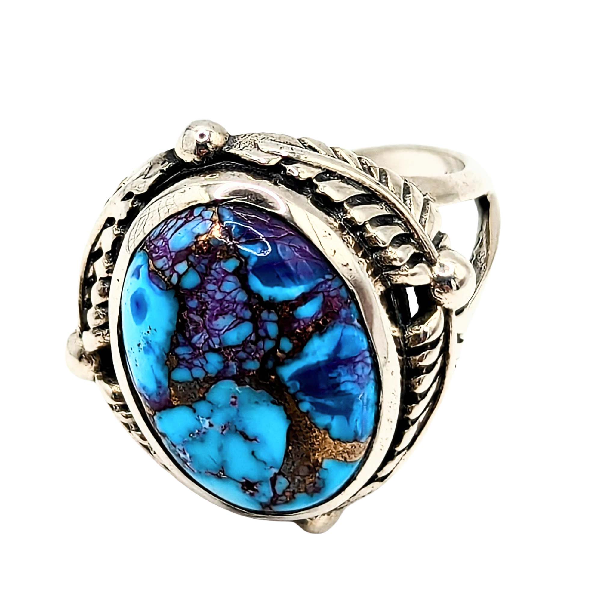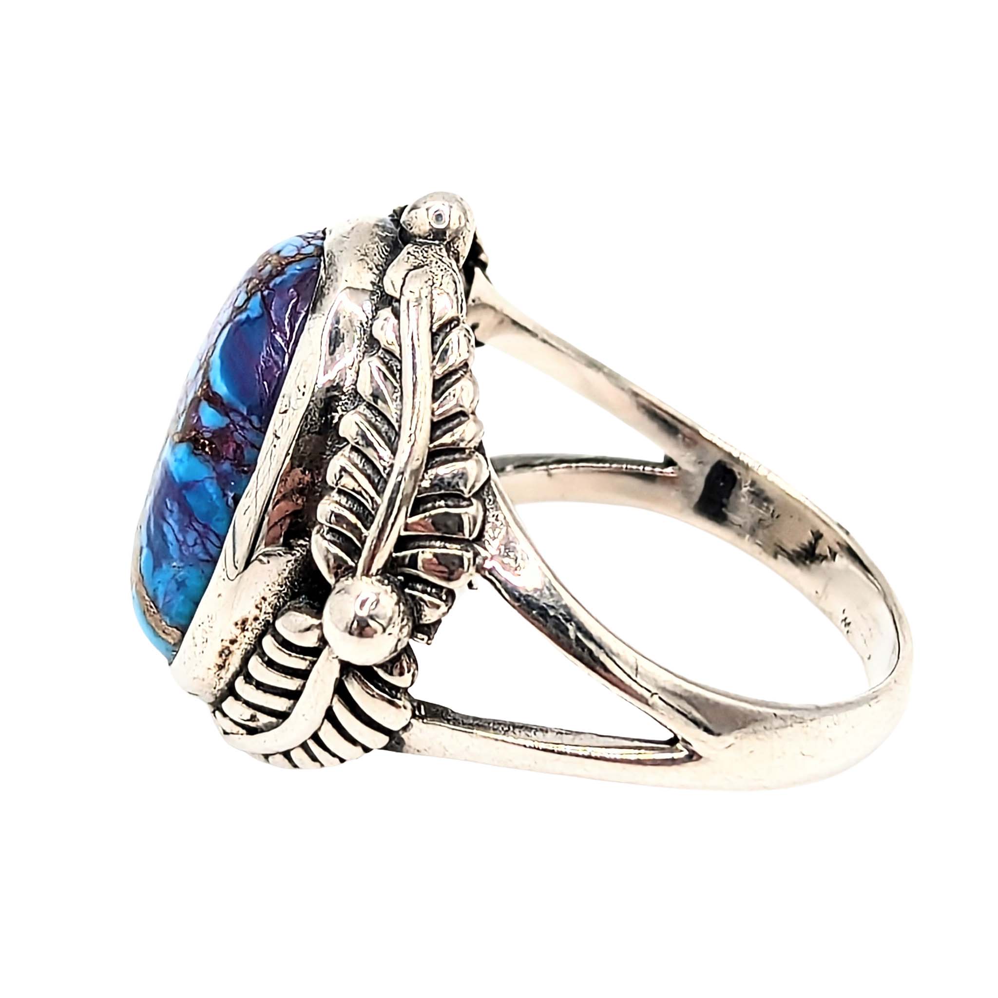 Southwest Sterling Silver Purple Mojave Turquoise Leaf Accent Ring Signed Hada Sterling Size 8 8.5g