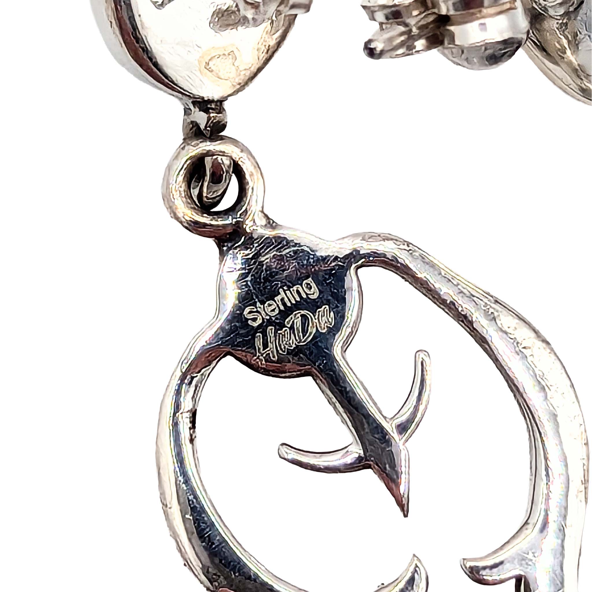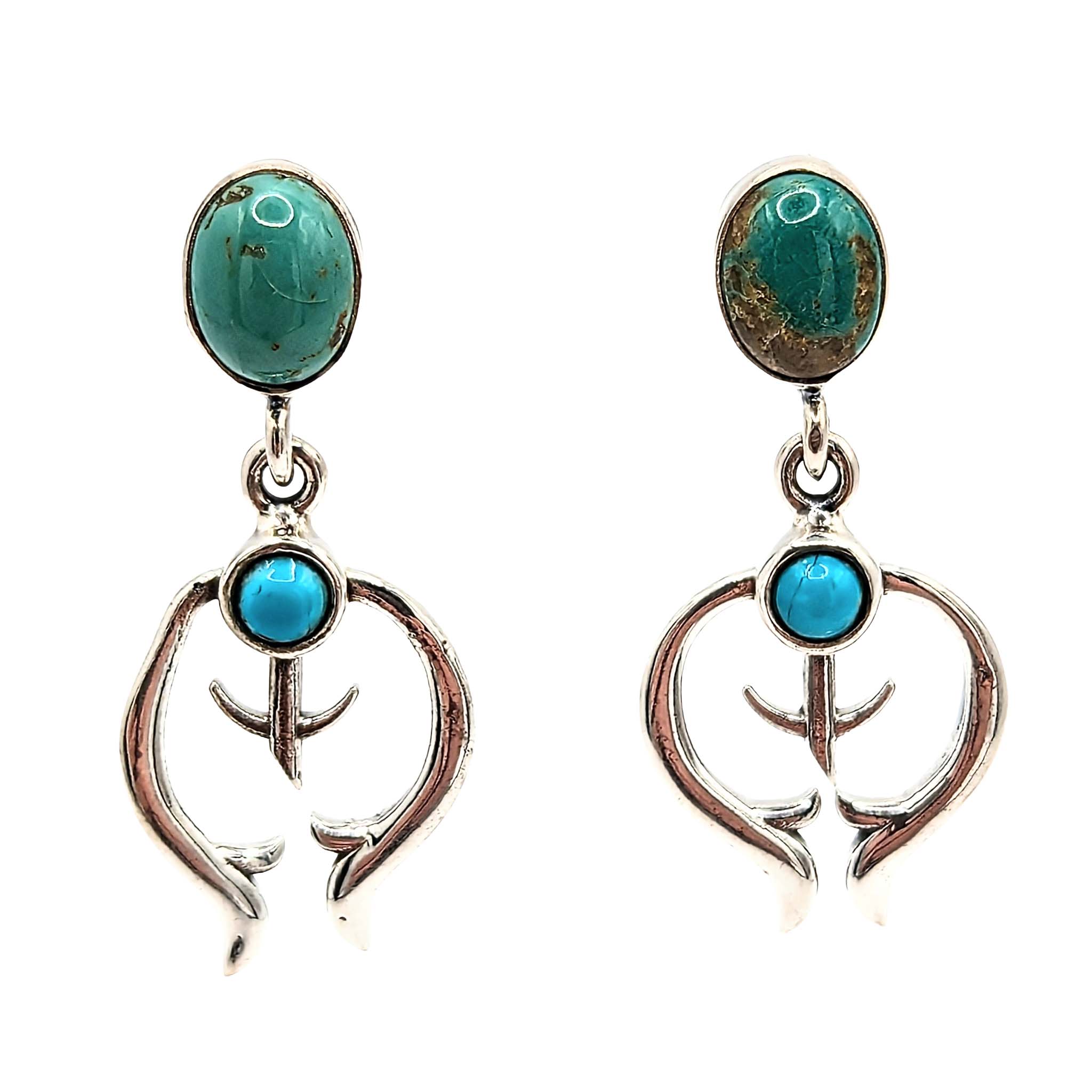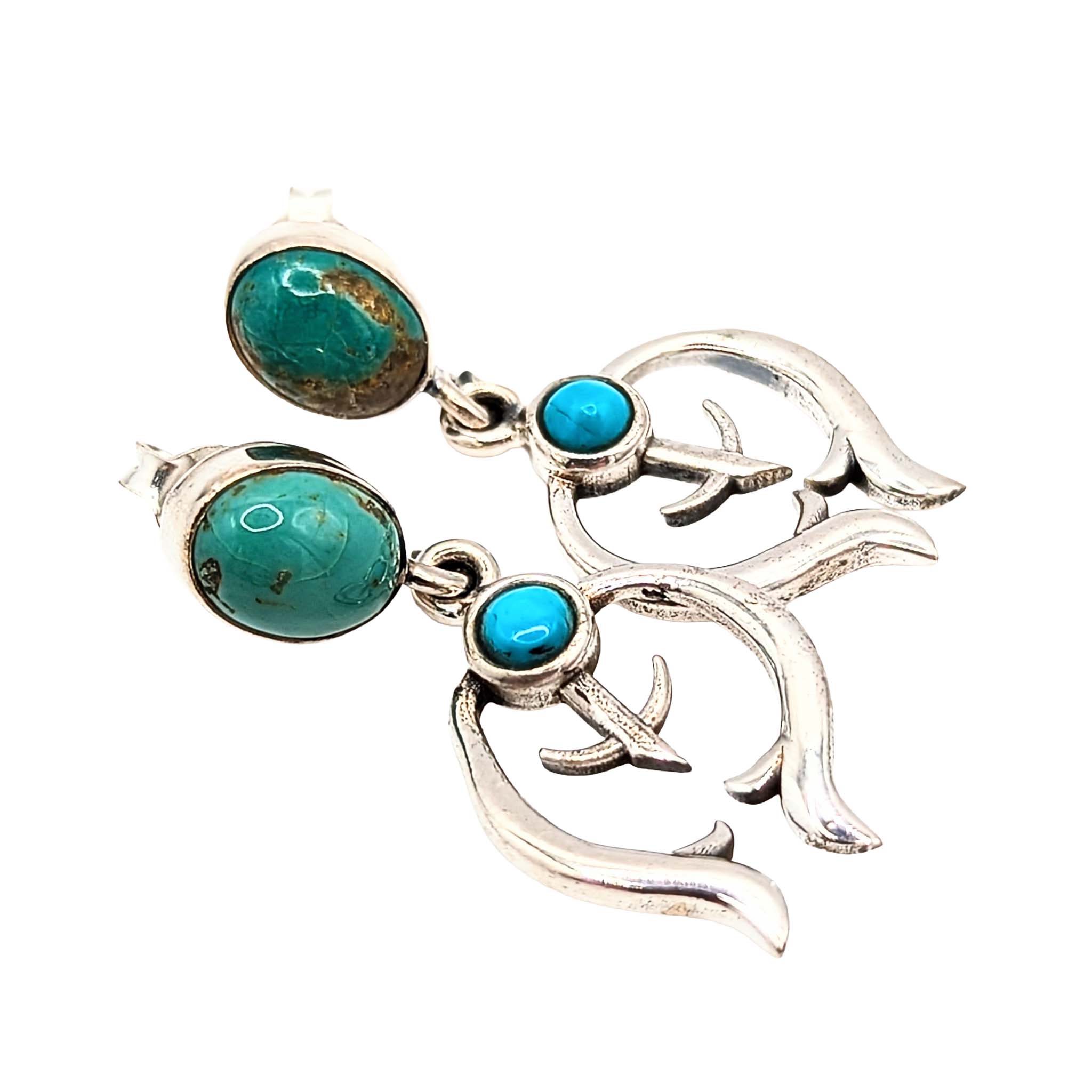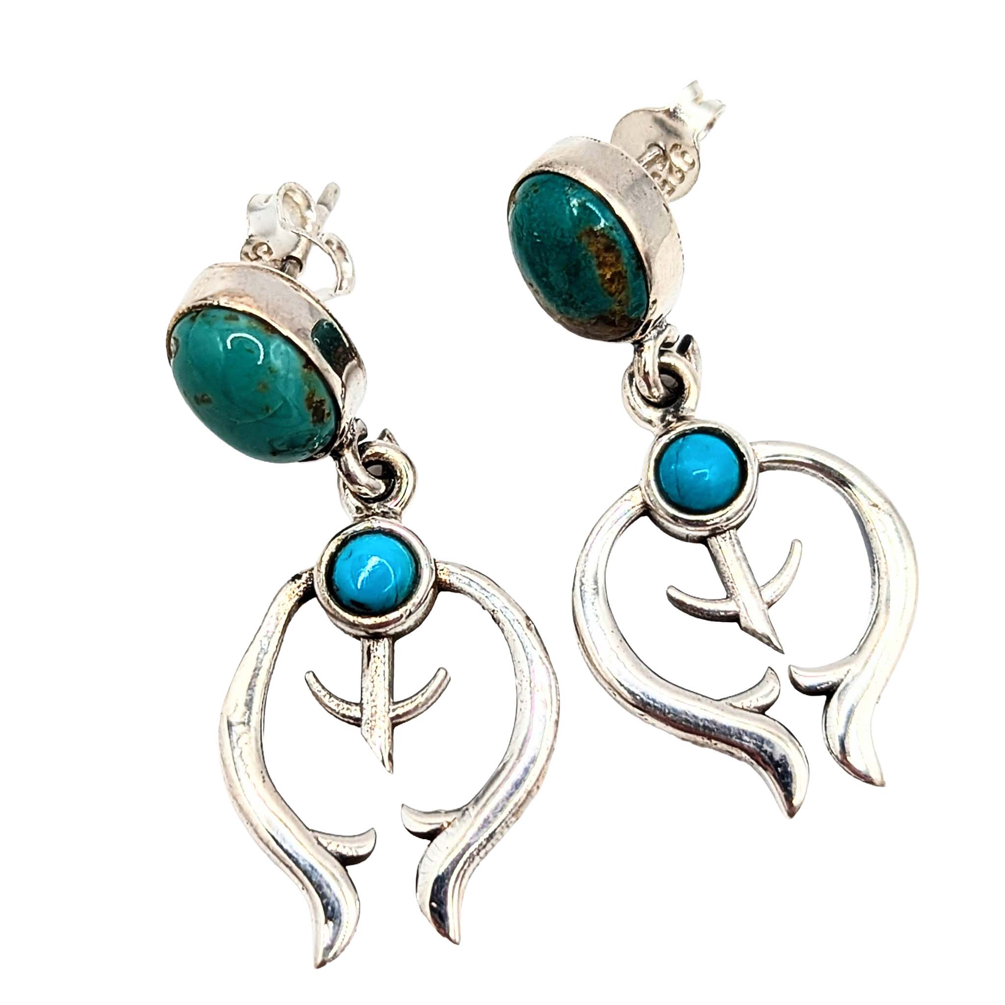 Southwest Sterling Silver Turquoise Naja Dangle Stud Earrings Signed Hada Sterling 6.7g